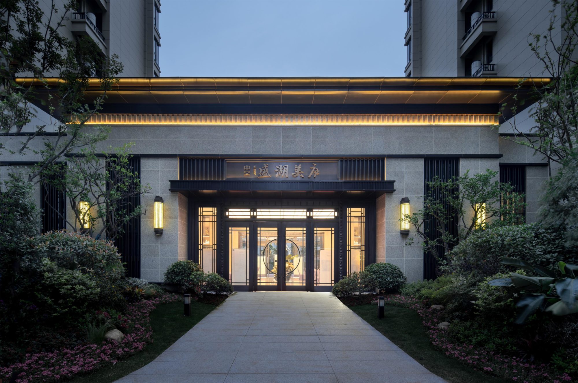 自然式种植道路渐近门廊,打造酒店般入口气质。精致的标识、辉煌的灯光、叠水与景墙交融,早已让客户脱离都市的繁杂,坠入度假胜地,置身其中,享受诗意生活;