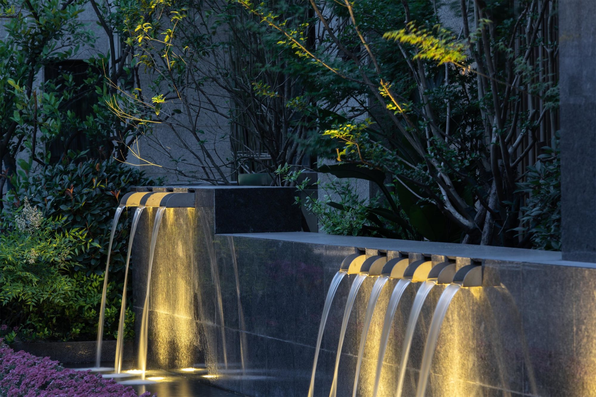 端景采用小品水景与垂直绿化相结合,虚实之间,丰富了空间层次,柔和地处理了空间。