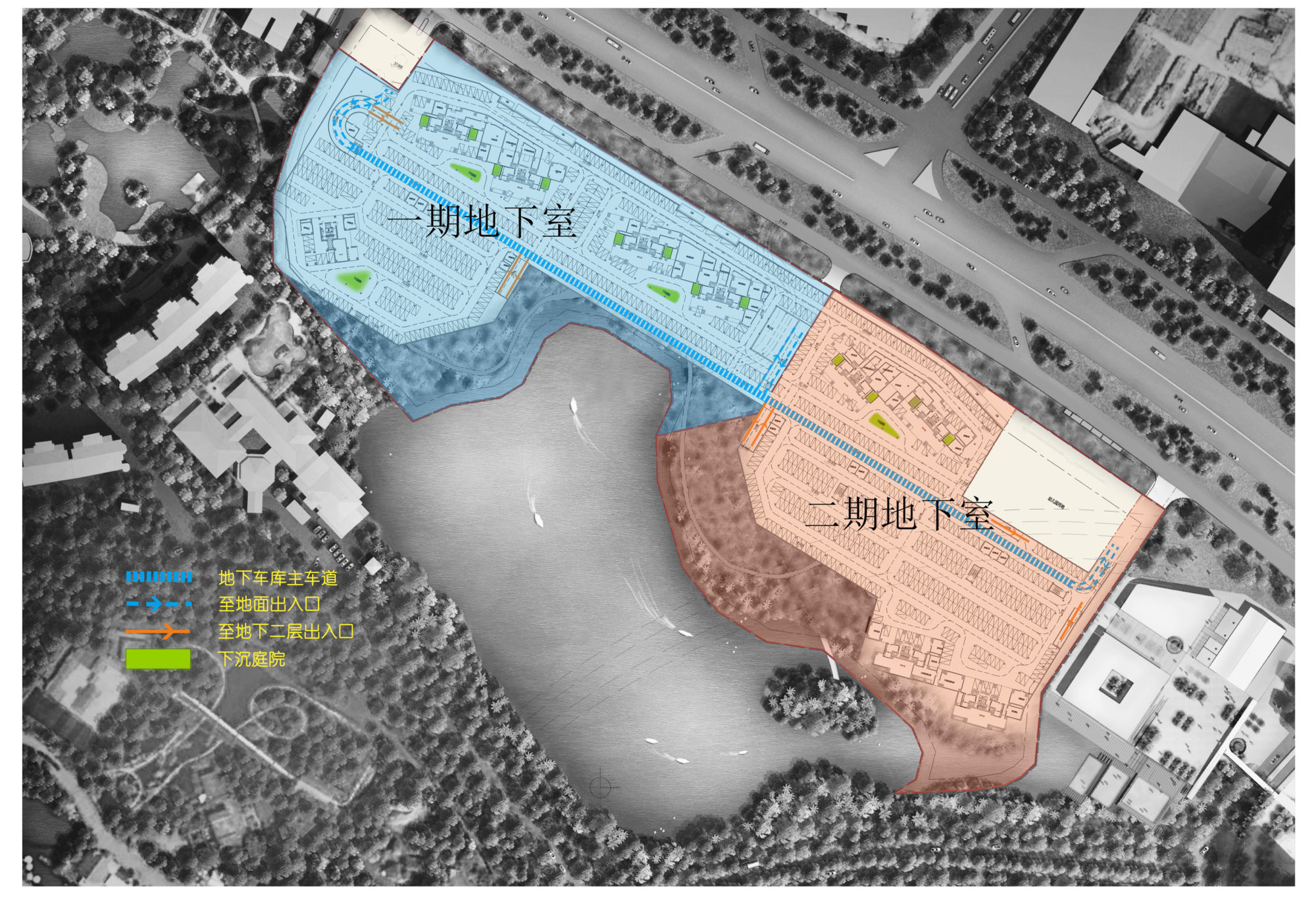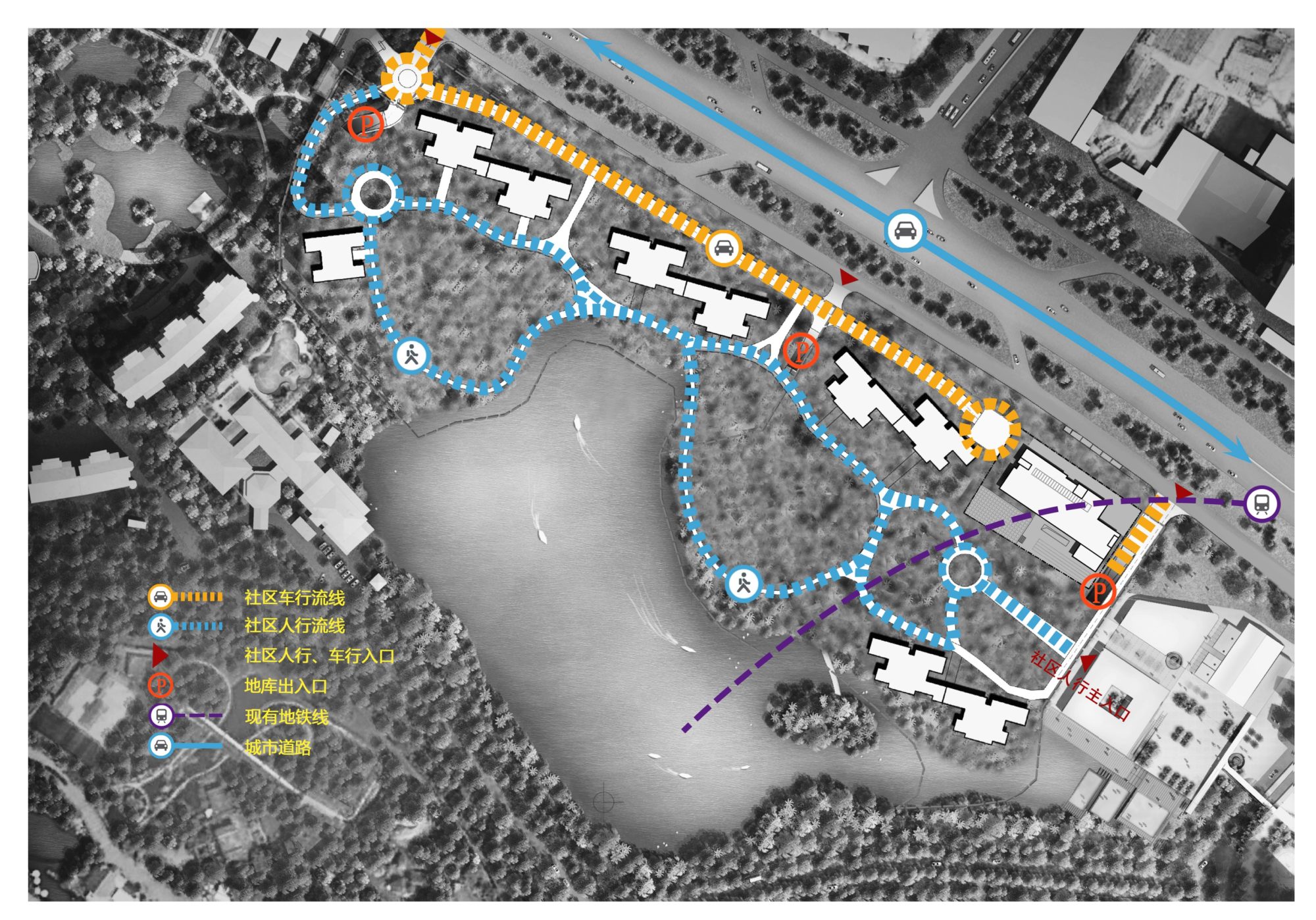 ![]() 01项目概况-2交通分析 人流组织:人流主要考虑东侧地块后期公建改造完成后作为人行主入口方向,进入中心花园平台后沿景观小道进入每单元一层架空层入户大堂。 车流组织:车流方向主要考虑北侧侨香路,共设置两处连通基地的开口,一个与原天鹅堡二期出入口共用,但重新设计入口形式,加大开口宽度及重新景观设计,使其能同时满足上下班高峰时两股车流同时进出,快速疏散车流;另一出入口位于东侧幼儿园处,设计上同时考虑方便幼儿园接送车及快速疏散地面车流,直接进出地下车库。地下车库的设计同样采用快速路与普通车行道相结合的形式,同时考虑与东西侧相邻地块的连通,形成整个片区完善地下的交通网络。停车数共1820辆,符合规划设计要点要求。 |