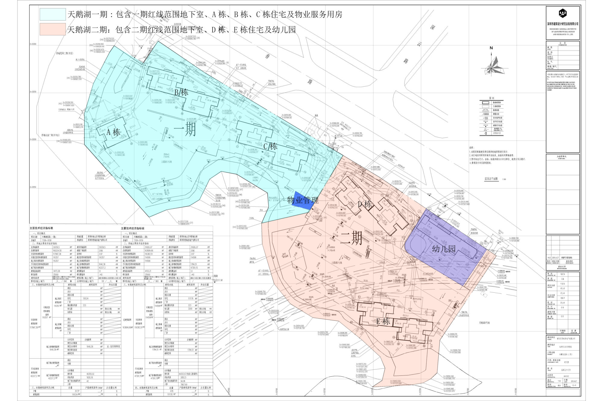![]() 02工程分期-1总平面图分期 一期工程:一期工程分为A、B、C三栋超高层住宅、物业管理用房、配建地下车库,停车位为840辆; 二期工程:二期工程分为D、E栋超高层住宅、配建幼儿园及地下车库,停车位为960辆 |