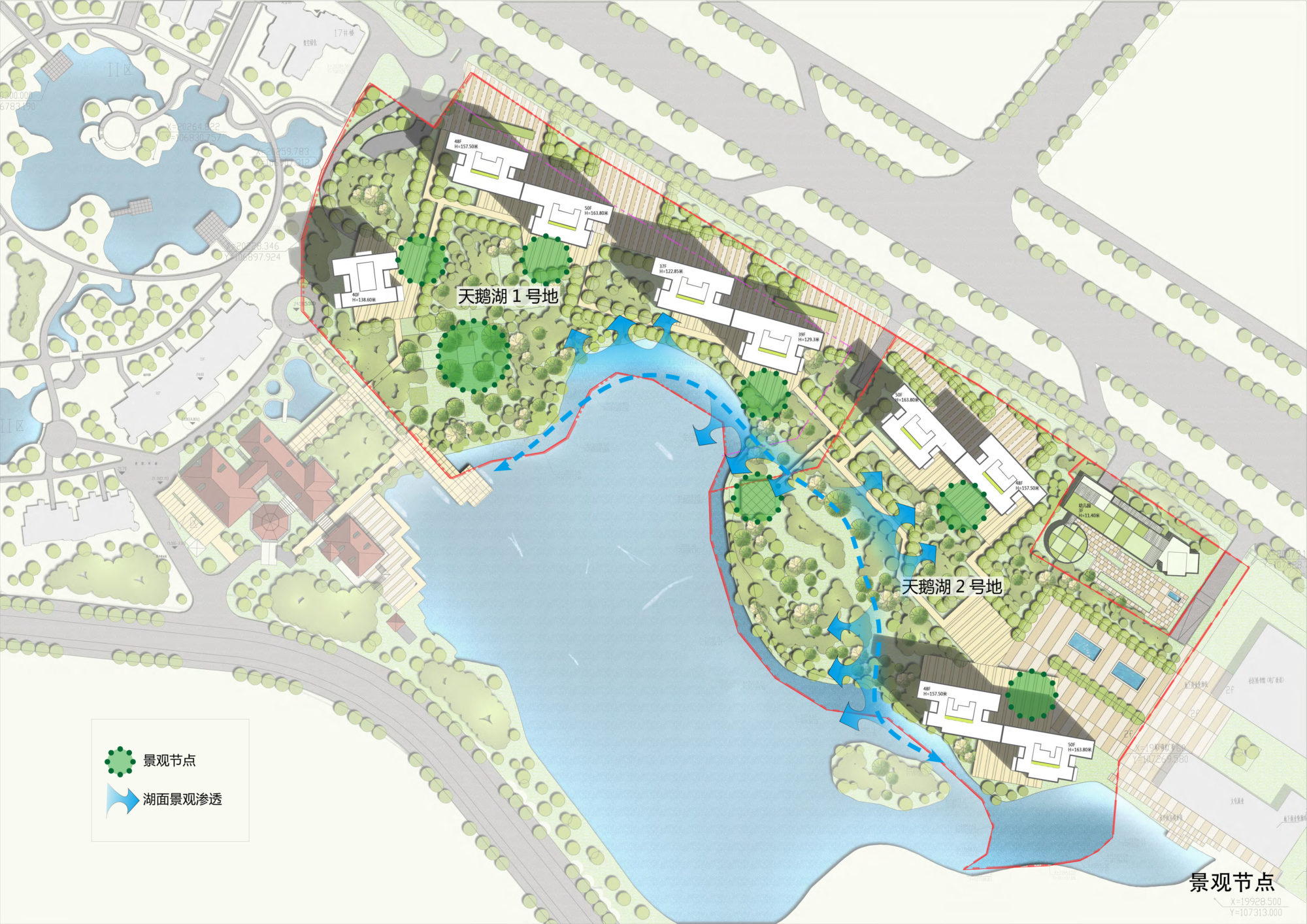 ![]() 04-景观规划1 景观设计以天鹅湖为中心:充分利用场地地形高差及场地内现有树木,尽可能地保留与就近移栽场地内高大树木,以建筑主体向东北延伸,以建筑首层建筑周边景观水体结合景观绿道至天鹅湖,或步道小径、或台阶、或绿化、或园林景观小品,融入中国古园林移步换景的设计理念,形成一个易于步行的公园场景。硬质景观和软质景观相结合,舒缓的地形将建筑立面和广场、景观小品融合在一起。每一块区域都具有独特的景观设计。居住公园区域景观设计为静谧并且具有禅境的私密。整个项目的各个组成部分都能享受花园景观,毫无疑问,该项目的这个特征会吸引众多的步行活动,尤其是湖边小径平至湖面水位,业主的亲水天性可以得到很好的释放。 |