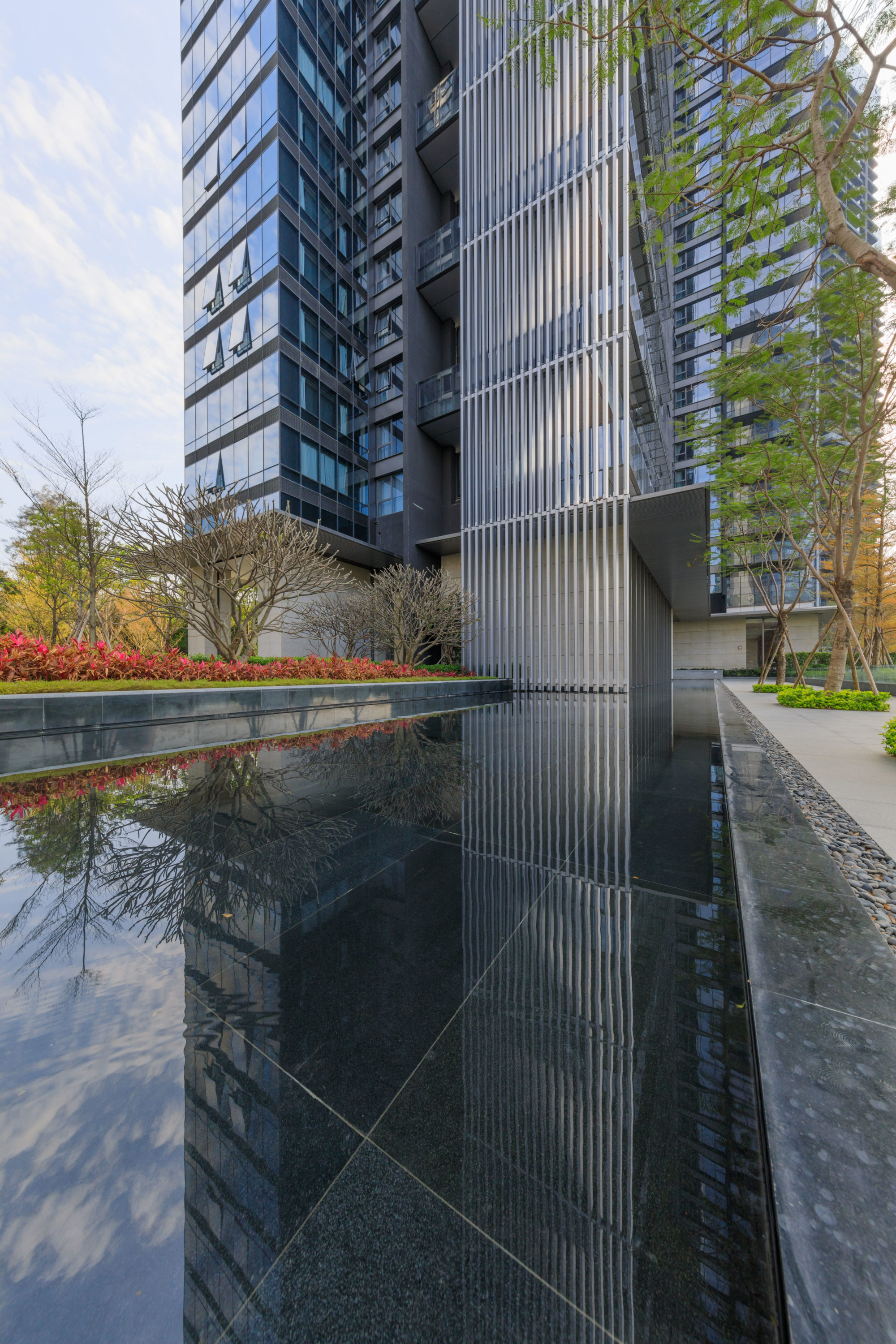 ![]() 立面设计/形式与材料:(05-A栋立面实景01) 综合分析了项目所处的片区及相邻建筑立面意向,我们没有因循原有天鹅堡二期设计风格,希望建筑能体现出深圳的快速发展特性,选择了现代建筑风格作为项目的形象,首先从大的体块关系方面,将几栋楼体作为立面总体考虑,通过对外墙体、门窗、顶部造型的线、面组织及色块处理,形成本身立面的体块、线、面逻辑关系,同时在材料、色彩选择上形成与周边项目的呼应,形成整体的城市片区意向。其次在立面细部及构造上精心设计,关注建造,实现精品建筑。 |