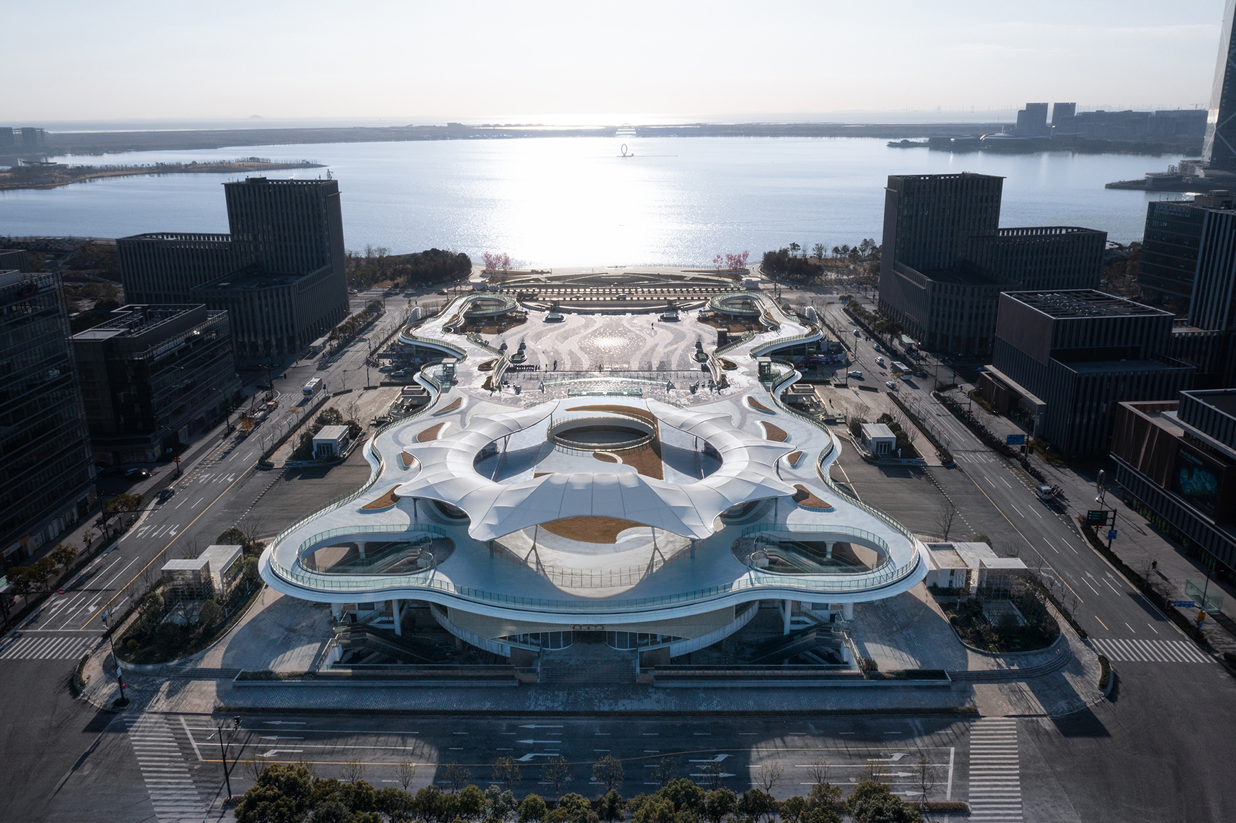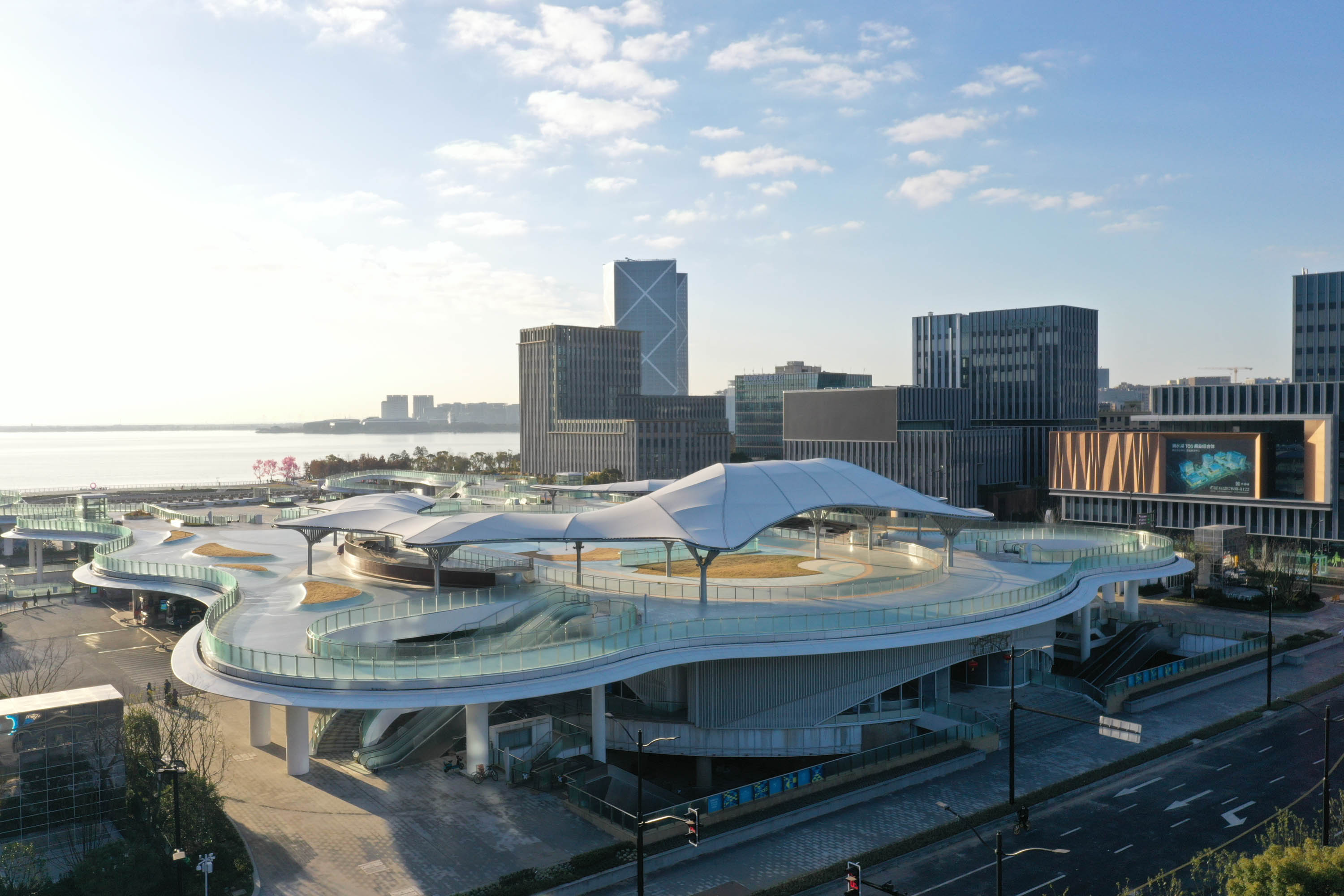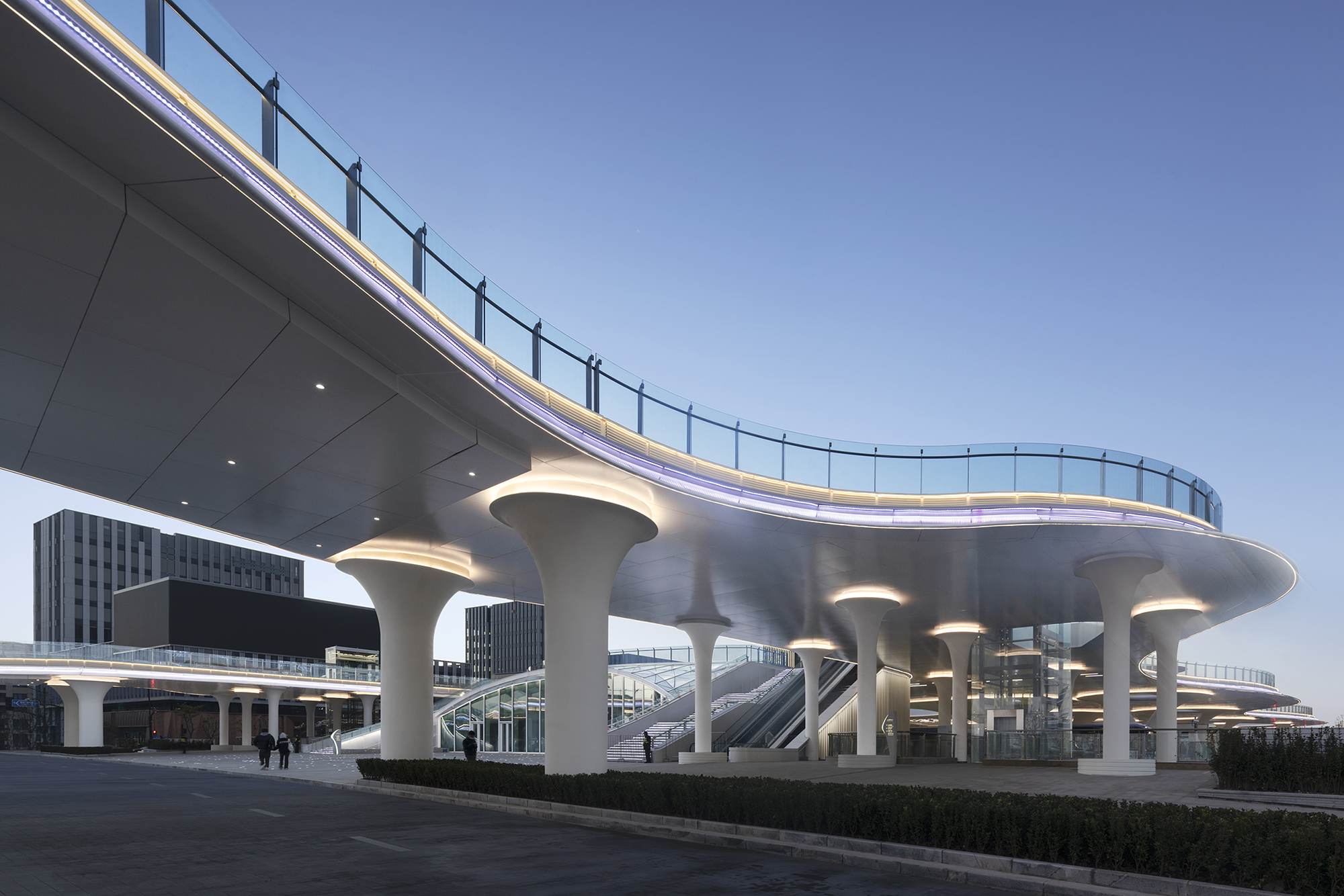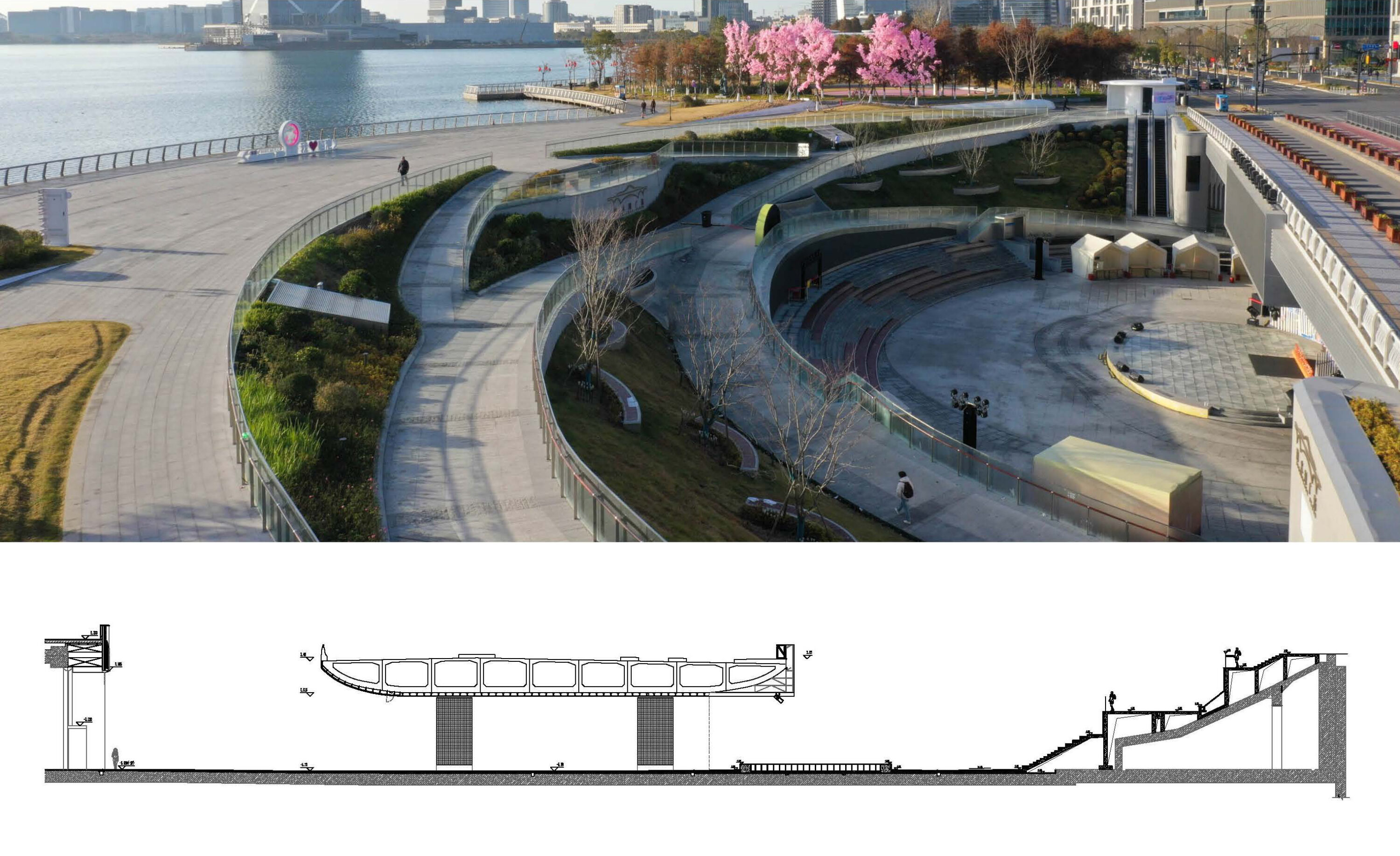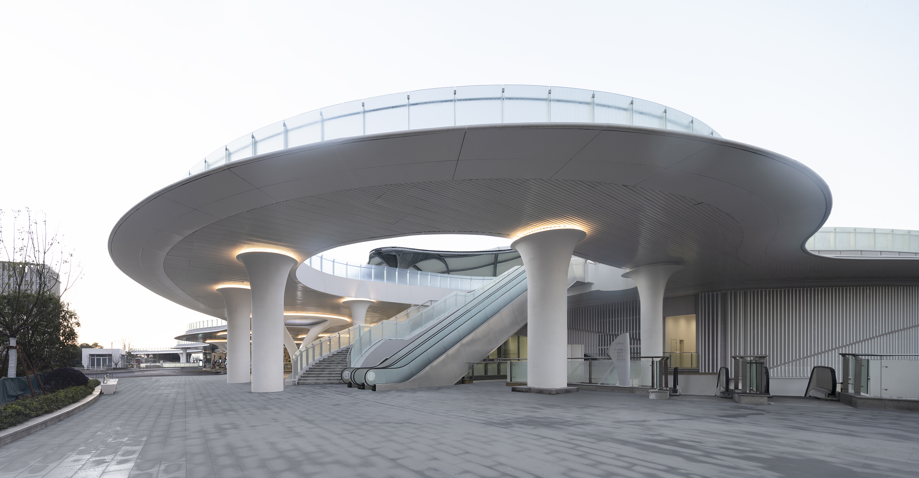 The project is situated in the Dishui Lake Central Activity Zone, with construction components including optimization of subway station hubs, improvement of surrounding road networks, renovation of transportation hubs, relocation and enhancement of ground facilities, and other supporting service engineering. The design addresses site challenges through function-oriented and problem-solving approaches, proposing three core strategies: integrated upgrading of ground facilities, optimized three-dimensional traffic organization, and strategic implantation of commercial activities. By consolidating public transportation hubs and incorporating landscape elements, an elevated platform will be created to synergize with adjacent urban spaces and existing underground commercial areas. This intervention aims to stimulate urban vitality by providing public activity spaces, ultimately shaping a world-class waterfront gateway landmark that serves as both an urban connector and a dynamic civic hub.