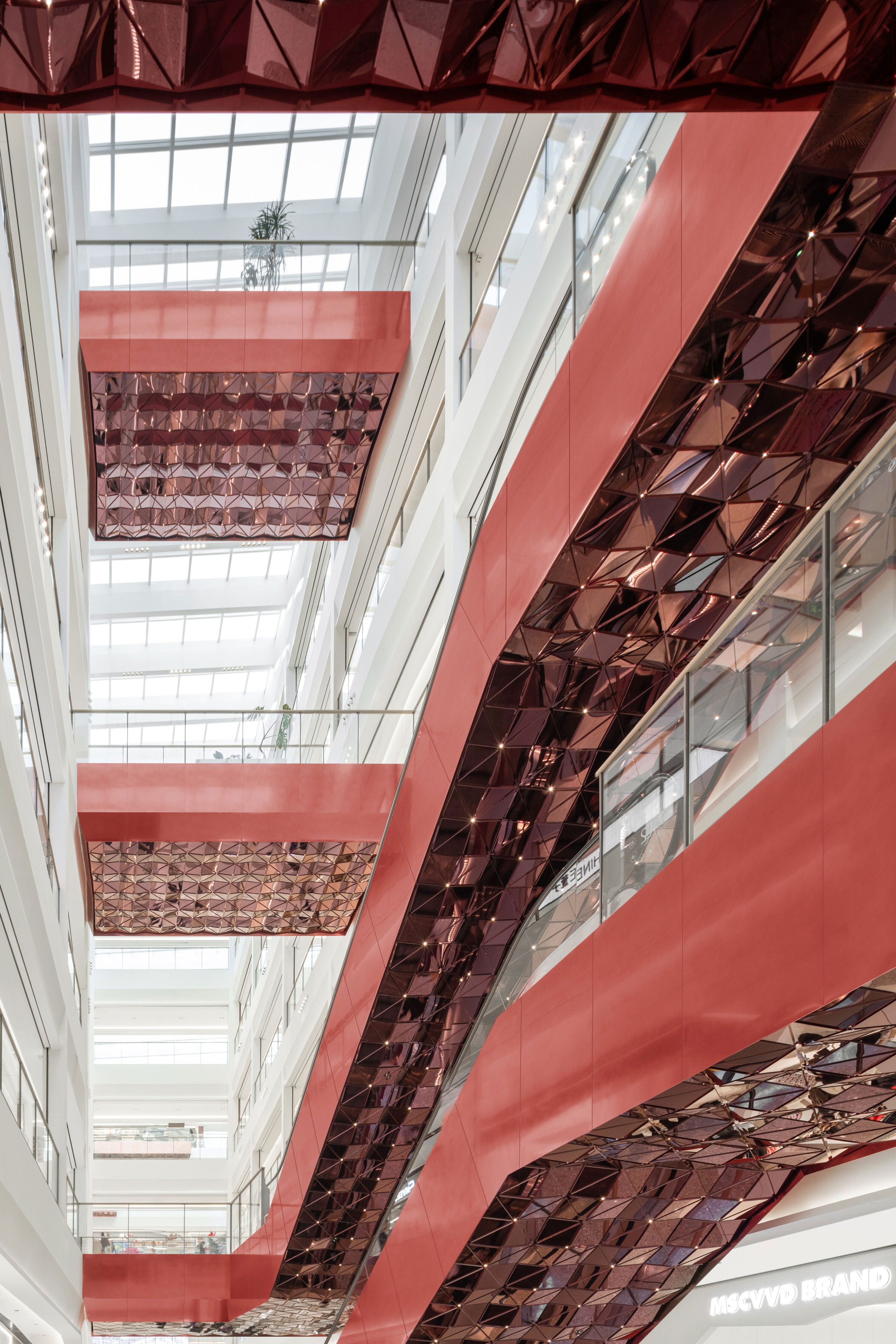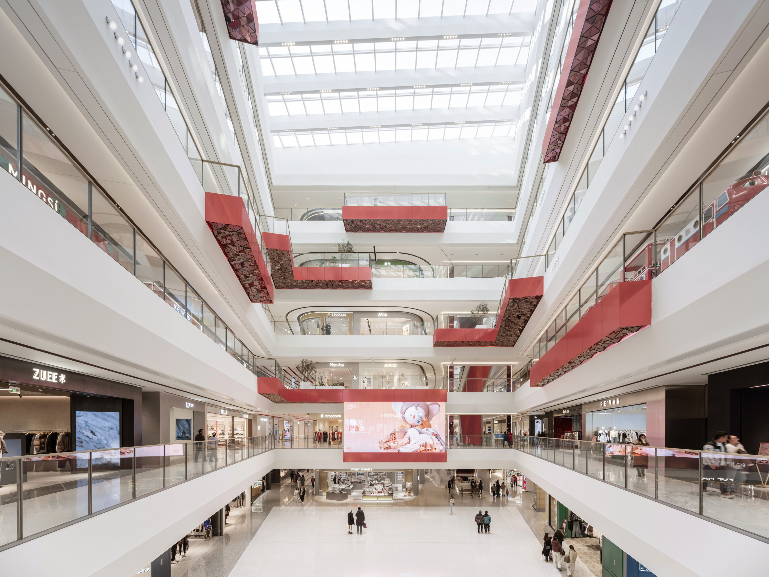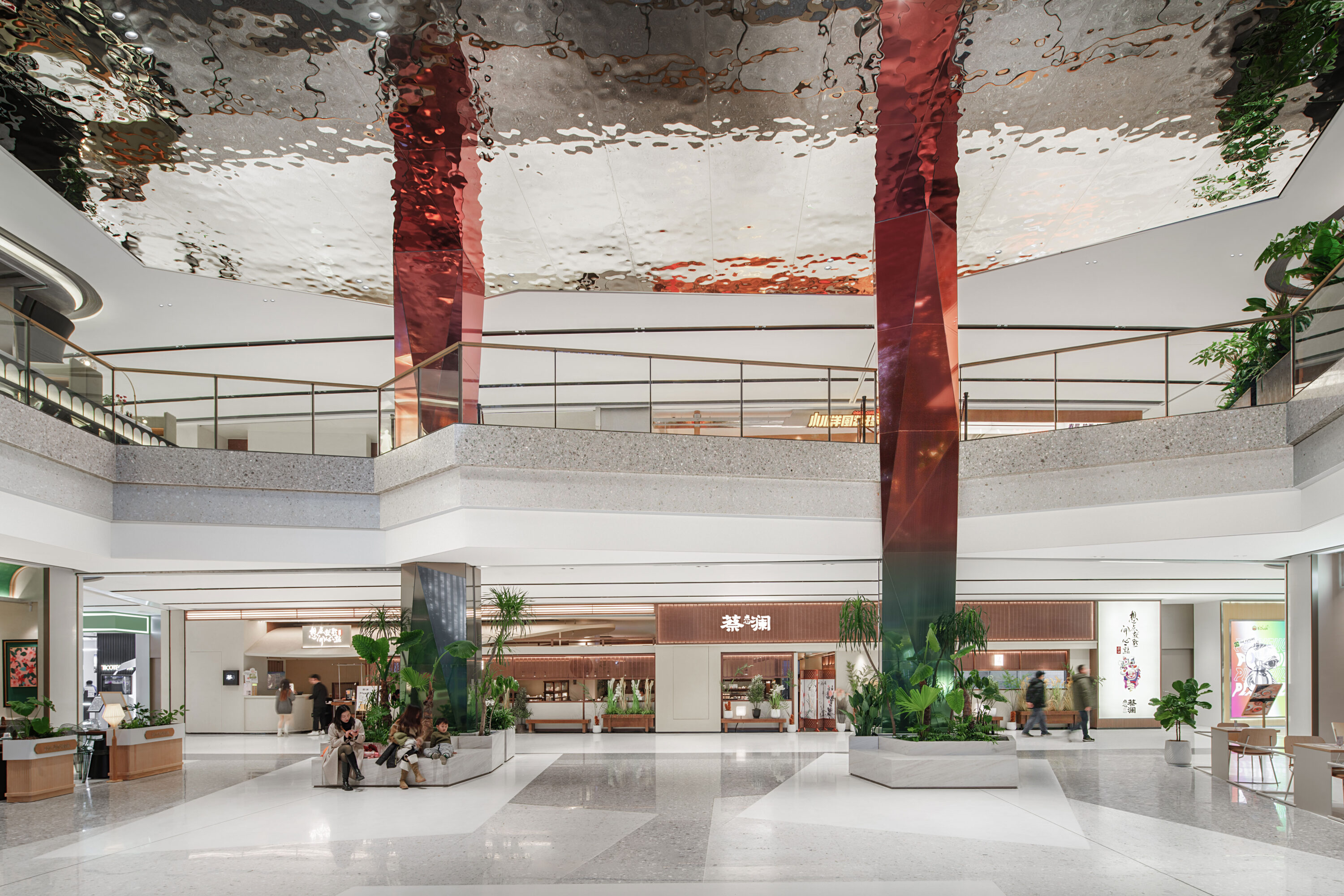 Wuxi MixC Mall features 360 shops, event spaces, a cinema, a food court, a rooftop garden, and a Riverside Market that extends outdoors, offering a vibrant and memorable experience. Connecting Wuxi’s business district with recreational spots like Tai Lake, Huishan Forest Park, and Meiyuan Hengshan Nature Reserve, the interior artfully balances lively activity with nods to the area’s natural and cultural heritage, displayed like exhibits in a museum. Designed as an urban space, it showcases architectural structures and unique façades, with balconies, bridges, escalators, and signage highlighted as sculptural artworks floating within the landscape. Visitors enter through three atriums of varying sizes, which also serve as exhibition spaces. This layout creates a network of streets, squares, and plazas, encouraging exploration and social interaction while establishing vibrant urban sub-centres where people love to gather and spend time.