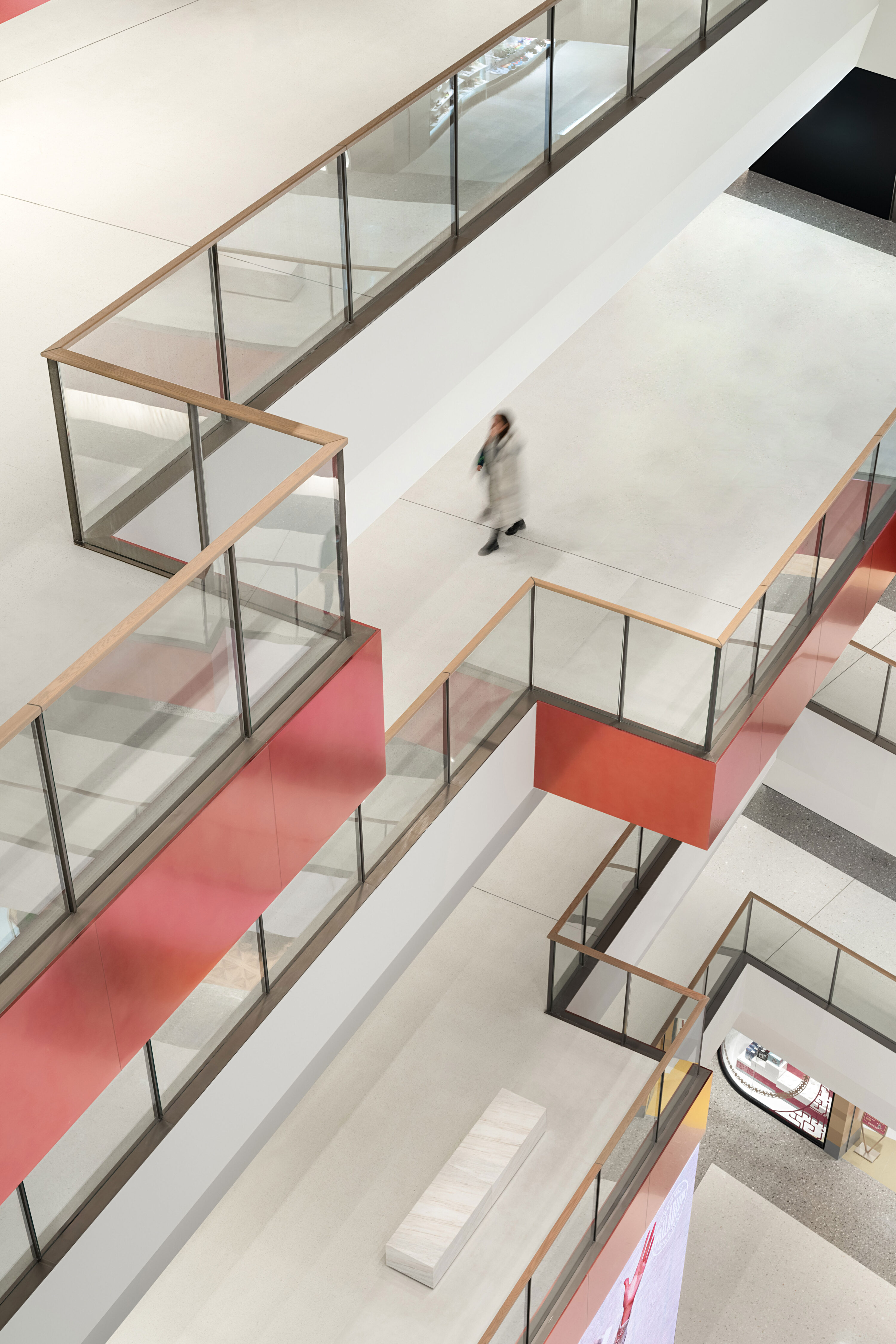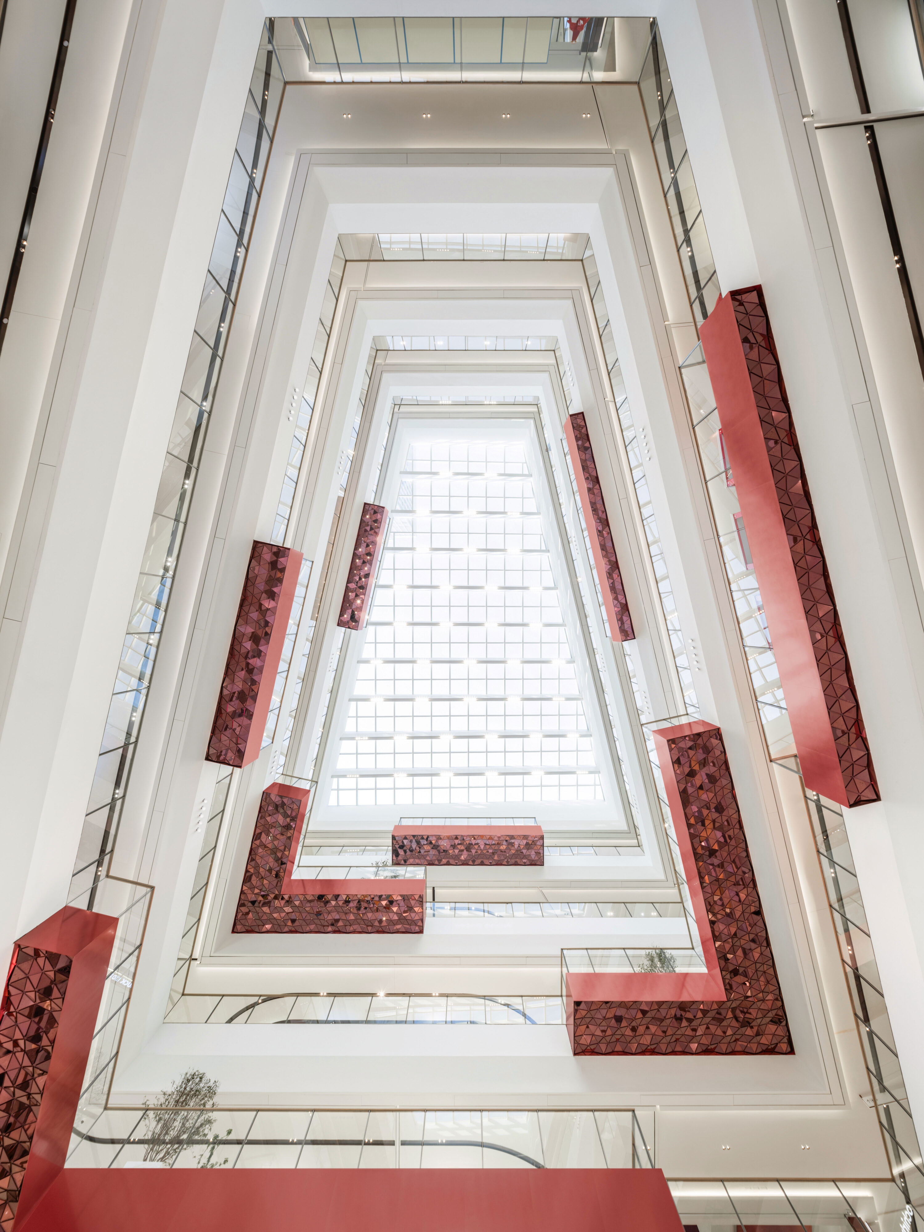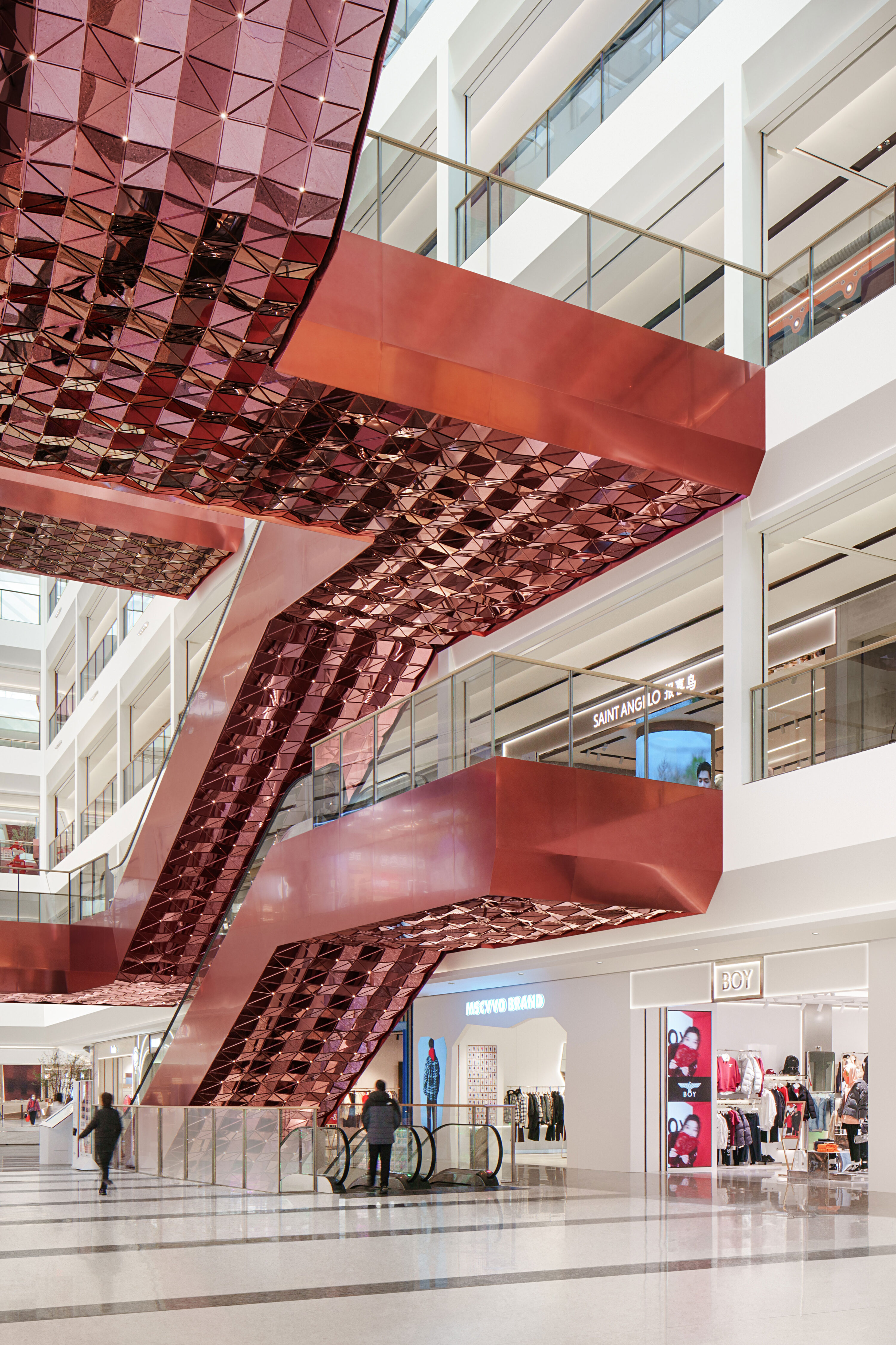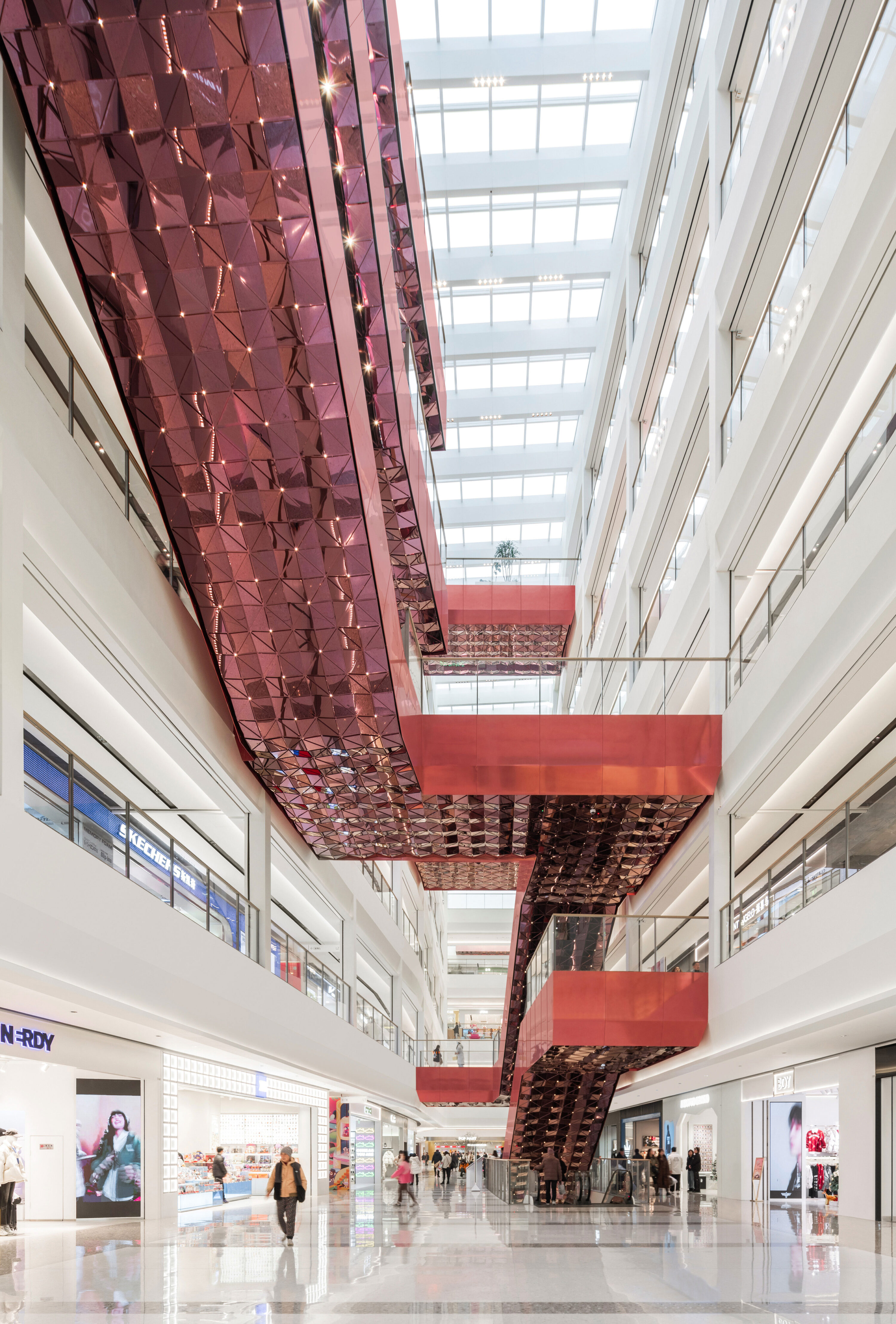 Wuxi MixC Mall features 360 shops, event spaces, a cinema, a food court, a rooftop garden, and a Riverside Market that extends outdoors, offering a vibrant and memorable experience. Connecting Wuxi’s business district with recreational spots like Tai Lake, Huishan Forest Park, and Meiyuan Hengshan Nature Reserve, the interior artfully balances lively activity with nods to the area’s natural and cultural heritage, displayed like exhibits in a museum. Designed as an urban space, it showcases architectural structures and unique façades, with balconies, bridges, escalators, and signage highlighted as sculptural artworks floating within the landscape. Visitors enter through three atriums of varying sizes, which also serve as exhibition spaces. This layout creates a network of streets, squares, and plazas, encouraging exploration and social interaction while establishing vibrant urban sub-centres where people love to gather and spend time.