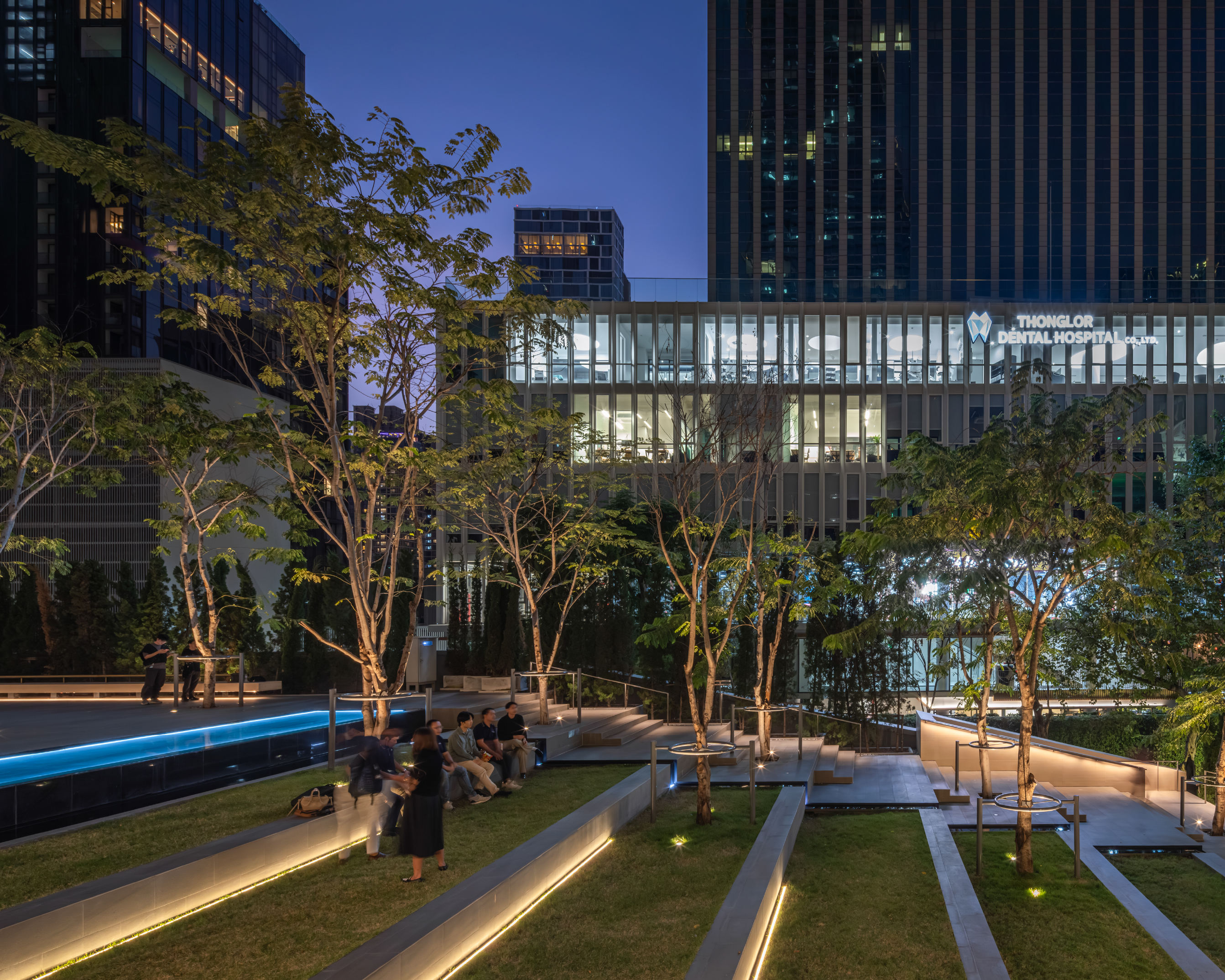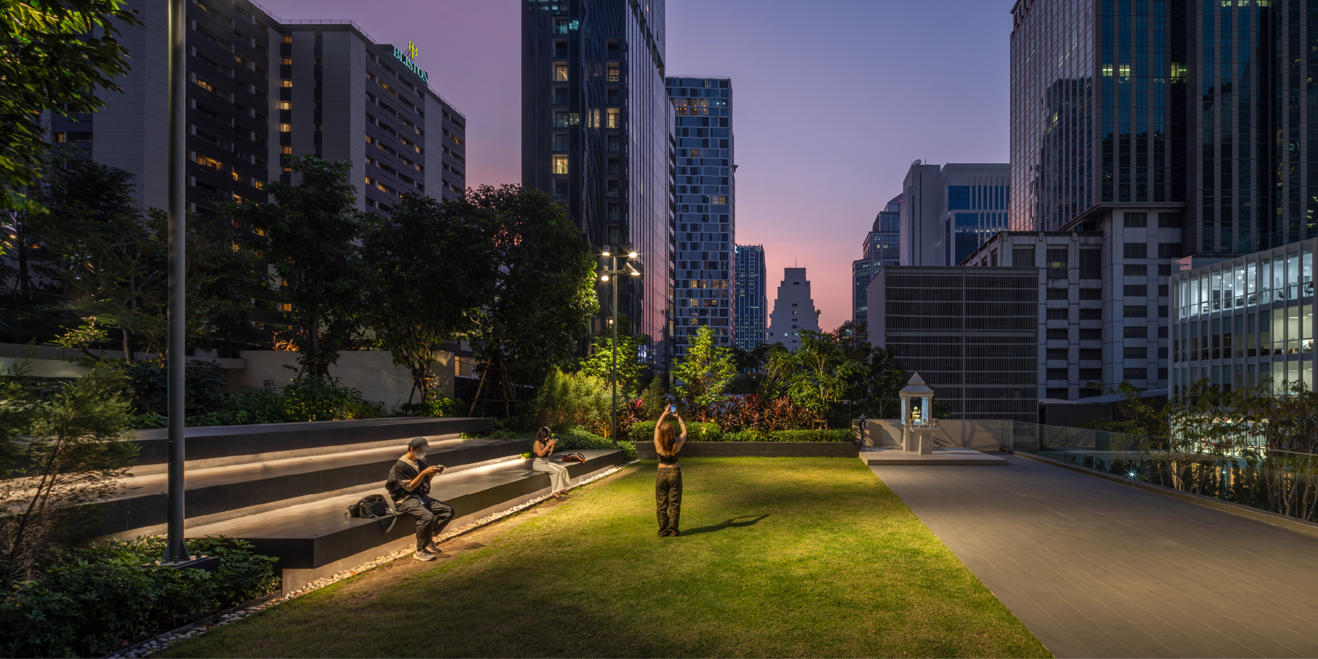 One City Centre (OCC) is more than Thailand’s tallest Grade A office tower—a transformative urban landmark redefining the Pleon Chit District in Bangkok. In an area where green spaces are scarce, OCC embraces the integration of Privately Owned Public Spaces (POPs), offering an 8,248 sqm elevated green sanctuary. Through innovative design, it transforms rooftops and podiums into lush, multi-layered landscapes, seamlessly connecting nature with the city. From its welcoming plaza and amphitheater to the tranquil Sunken Garden and iconic Overlooking Bridge, OCC fosters community engagement, well-being, and ecological resilience. As a LEED Gold and Fitwel-certified development, it mitigates urban heat, enhances air quality, and sets a new standard for sustainable city living. OCC demonstrates that true value lies in creating spaces that enrich both people and the environment—proving that the future of urban development is not just about building higher, but about building better for future.