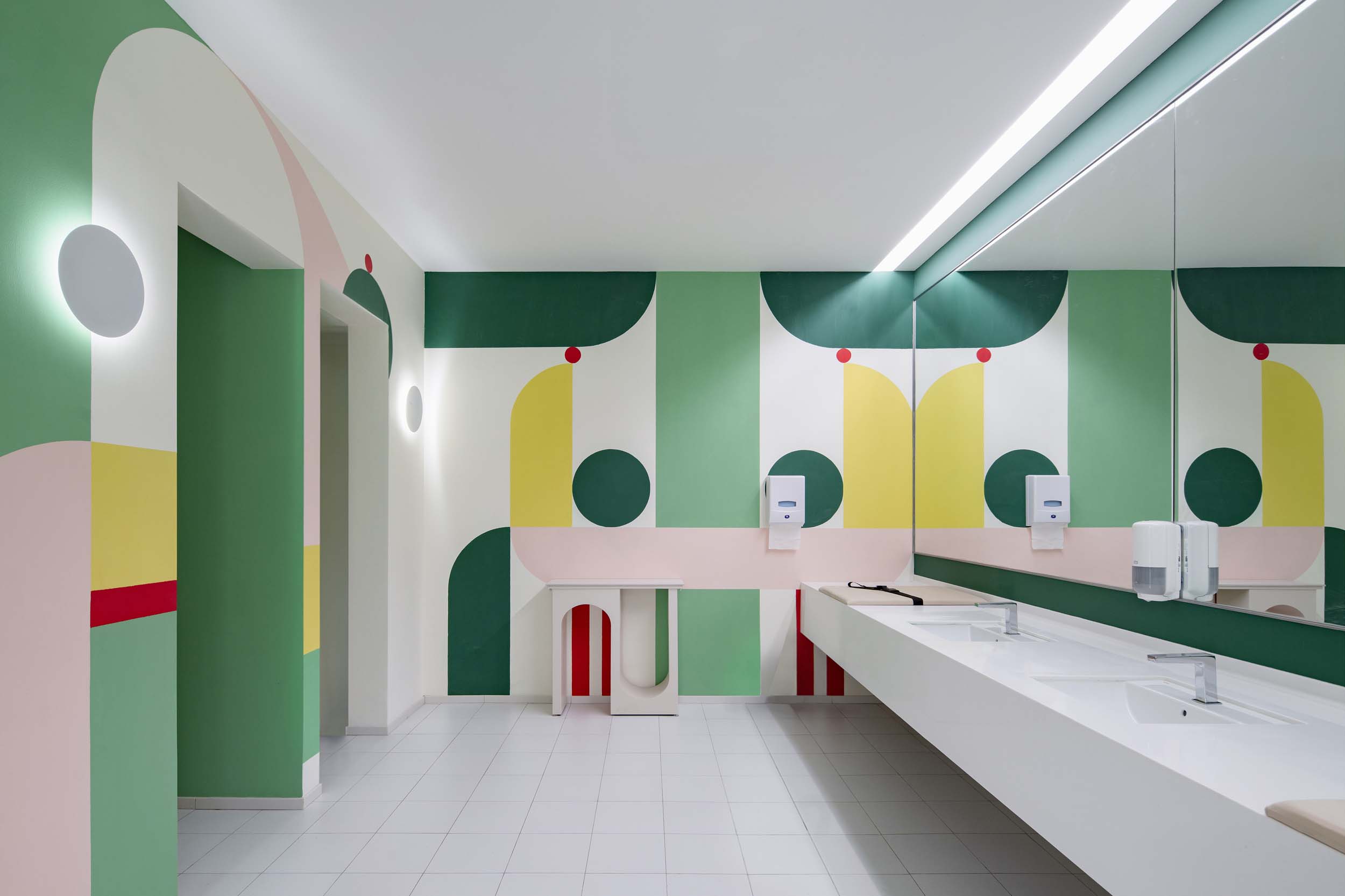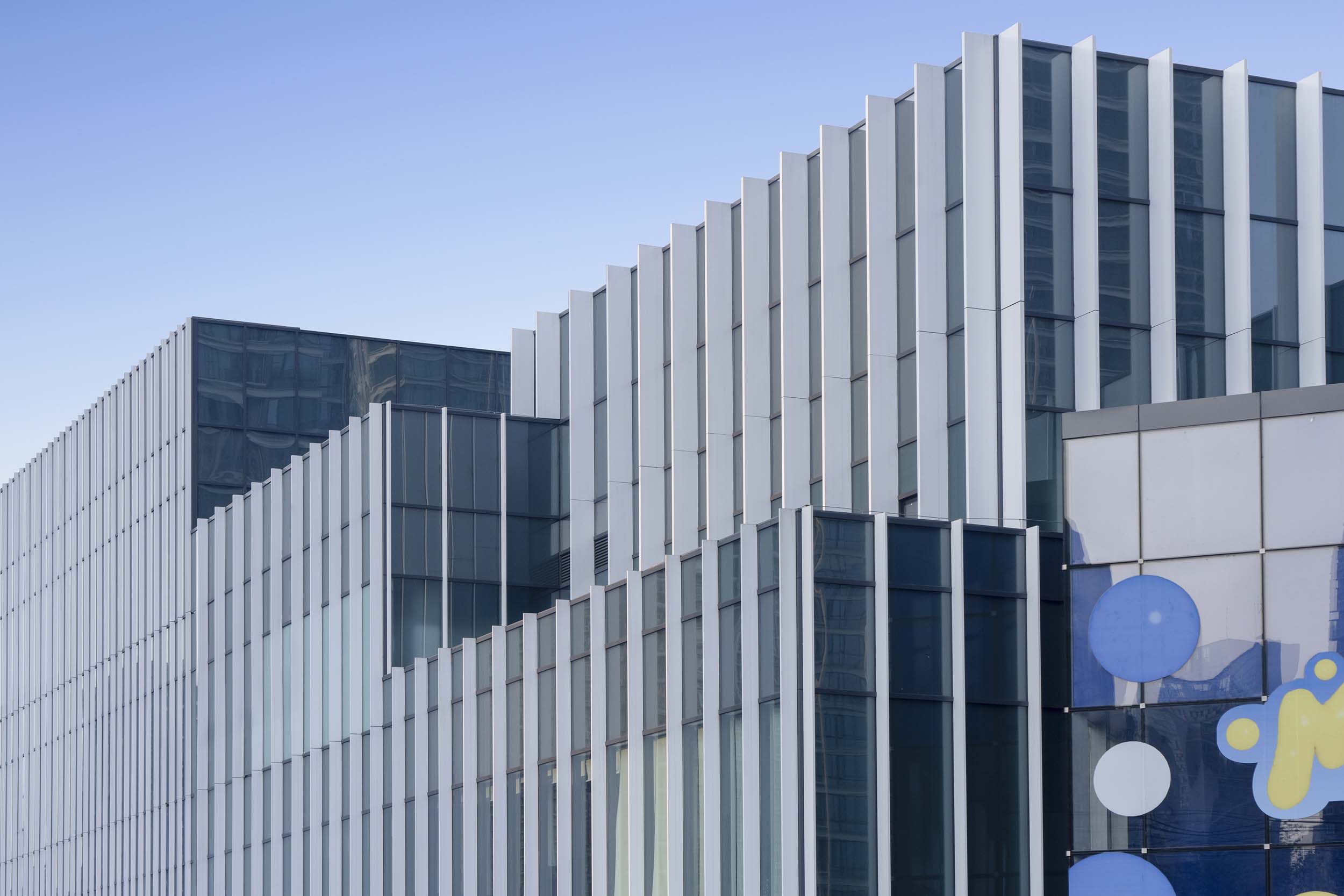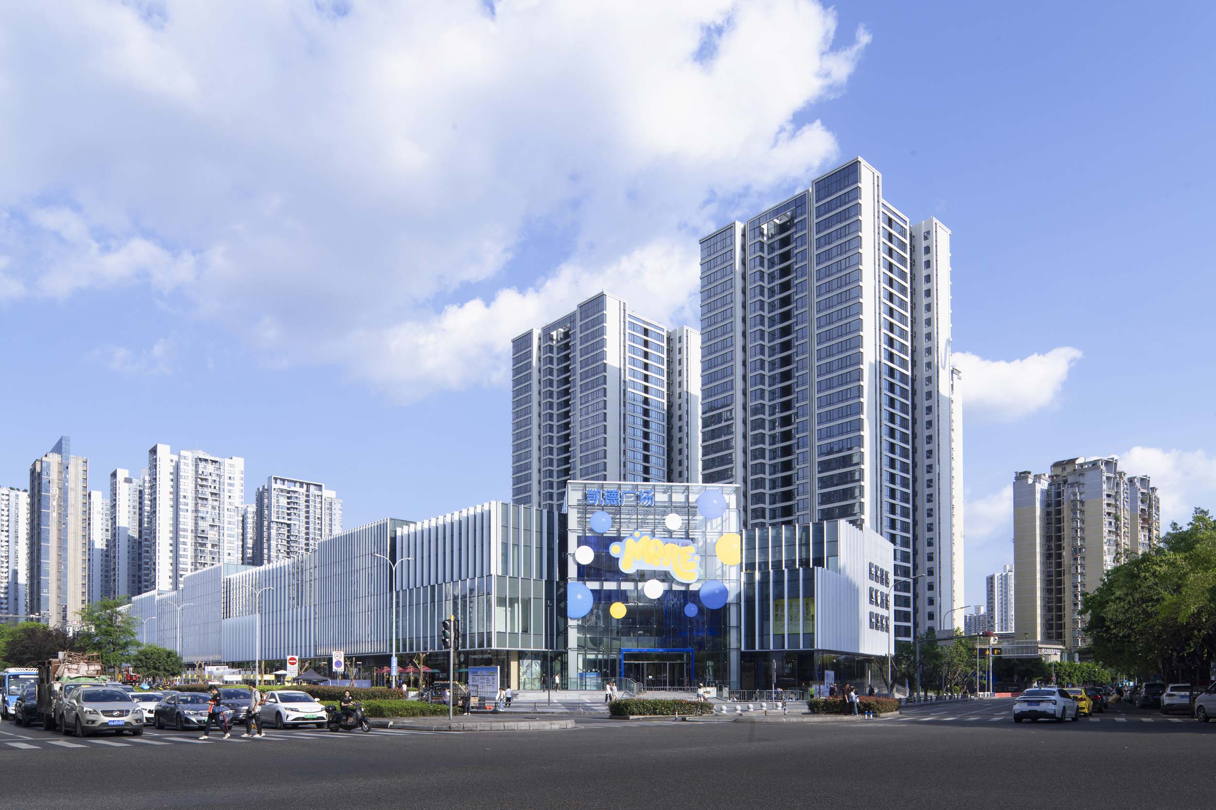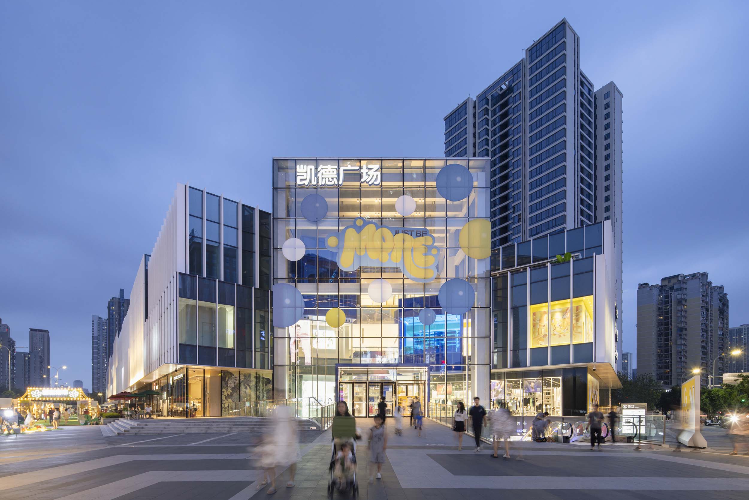 A Playful Urban Journey: CapitaMall Skyview’s Streetscape An interior streetscape is designed to evoke the feeling of exploring a vibrant urban environment. As visitors navigate the mall’s interconnected levels, they encounter a variety of engaging elements that create a playful and immersive experience. Inspired by Chongqing’s cinematic qualities, CLOU reinterprets this unique spatial experience, inviting visitors to navigate a colourful, interconnected environment that feels like a natural extension of Chongqing’s streetscape. The striking contrast between the blue signs and their monochrome surroundings shapes the architectural identity of CapitaMall Skyview, blending urban nostalgia with contemporary vibrancy.