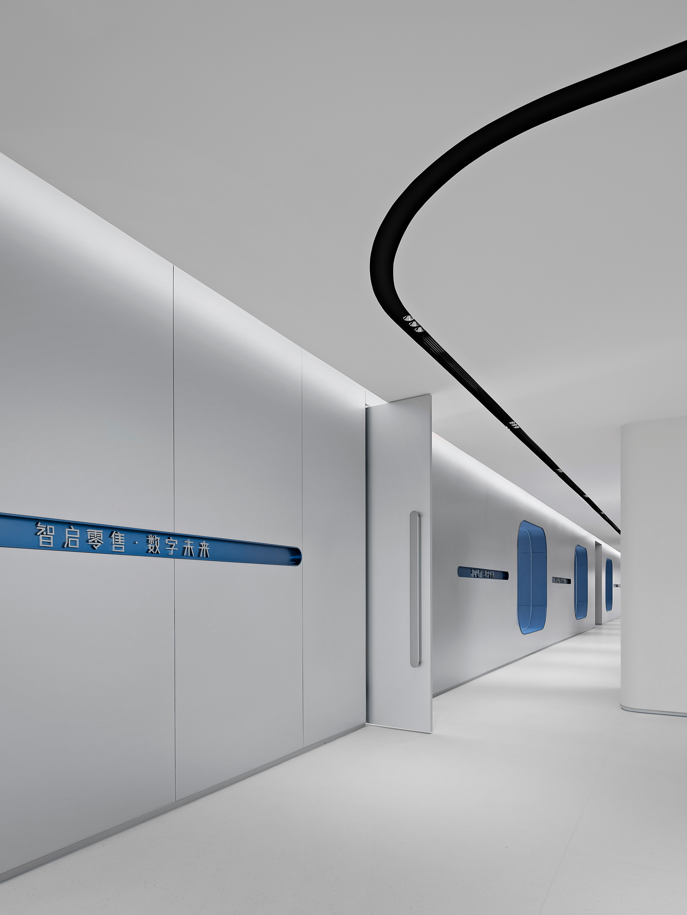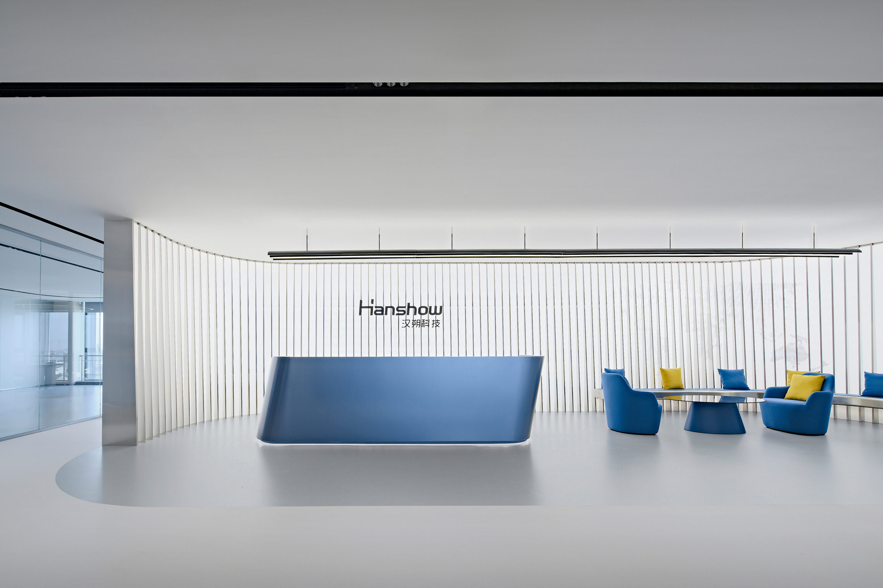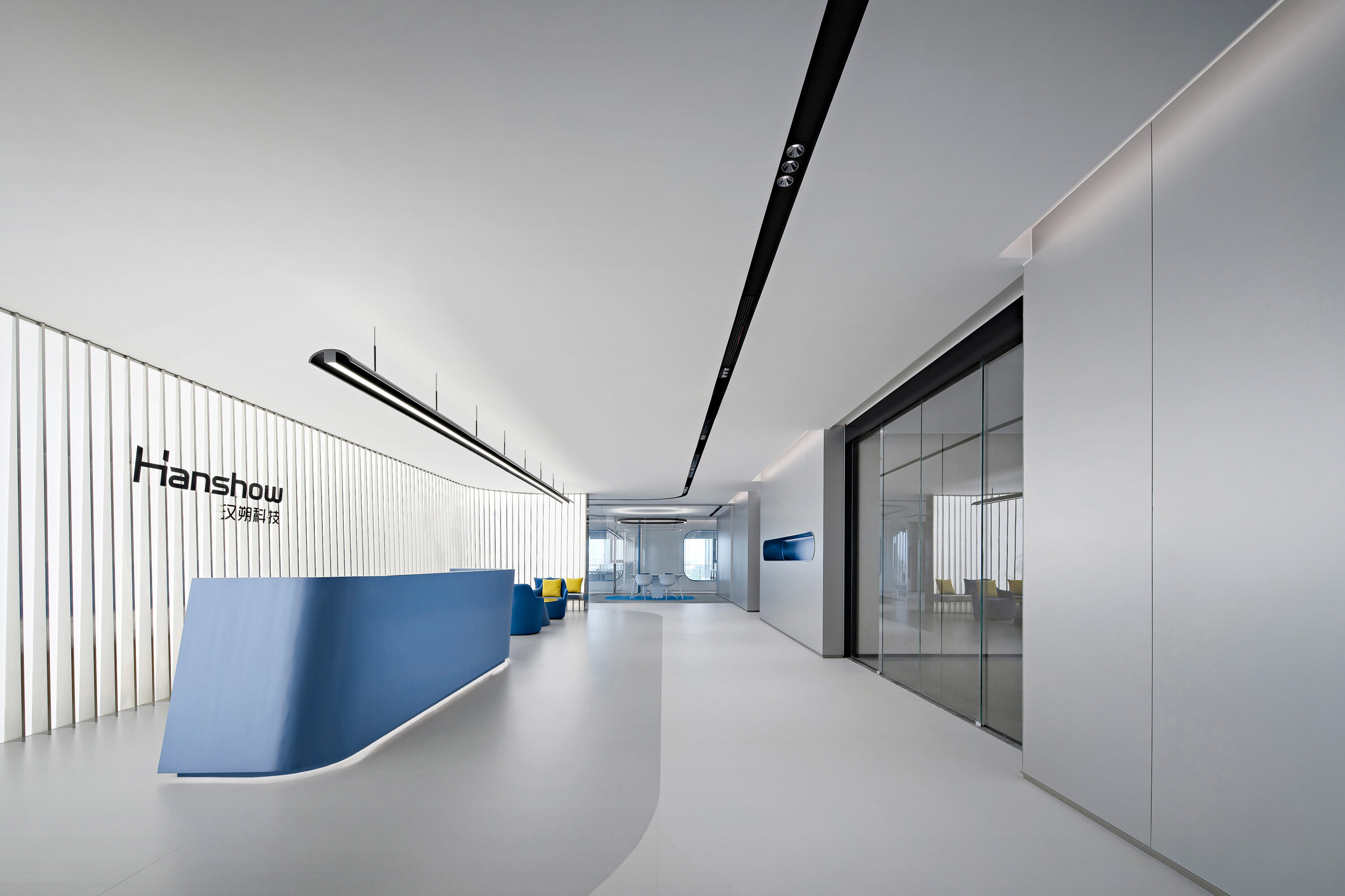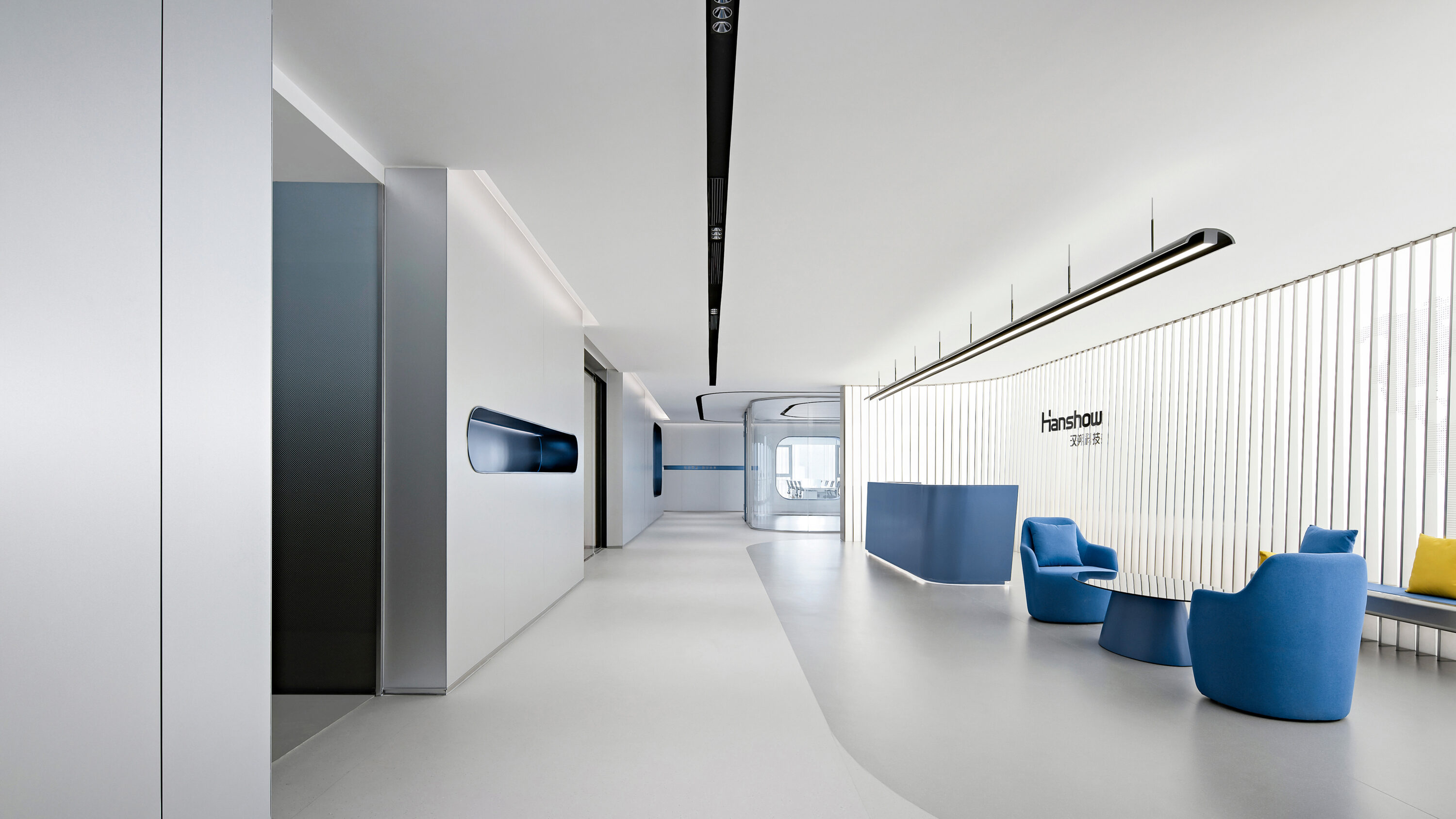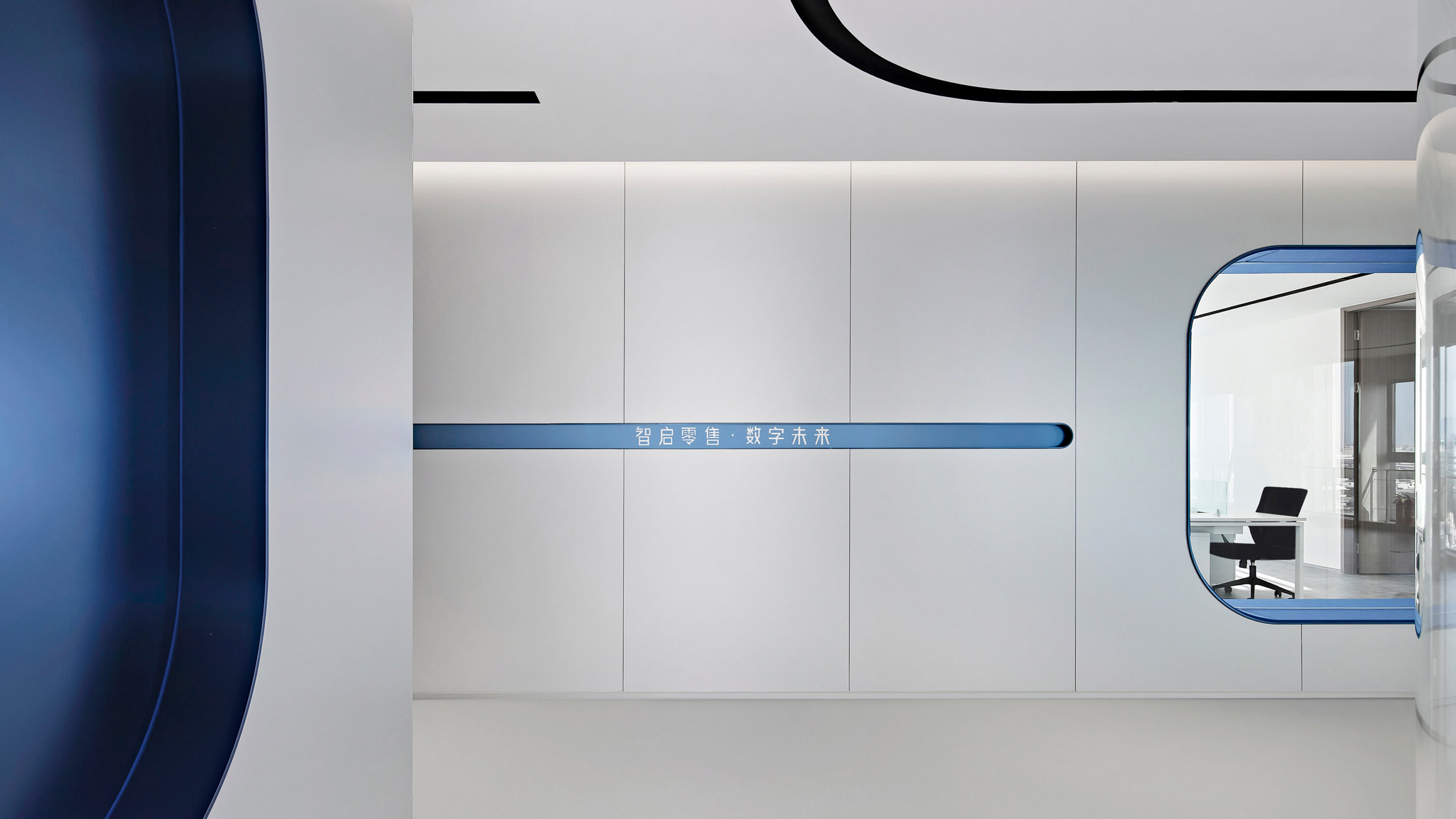 Electronic shelf label are an important window to the global market for Hanshow. The “Window to the Future” derived from electronic shelf label products is the spatial symbol that presents the office space, which can also be perceived in the refined geometric relationship of the Hanshow Logo. Window to the Future interprets various rounded rectangles in space, becoming a display interface for corporate culture, a medium for connecting different areas, and a series of furniture in the interior scenes.