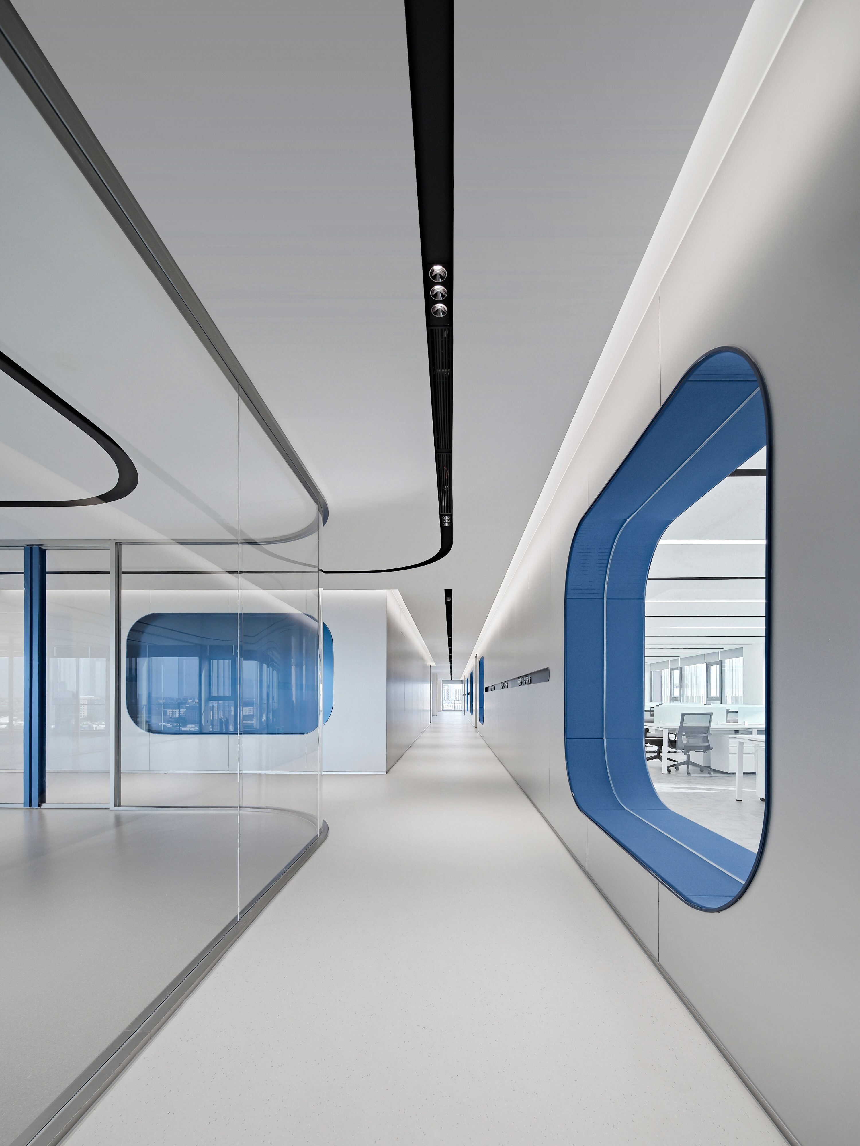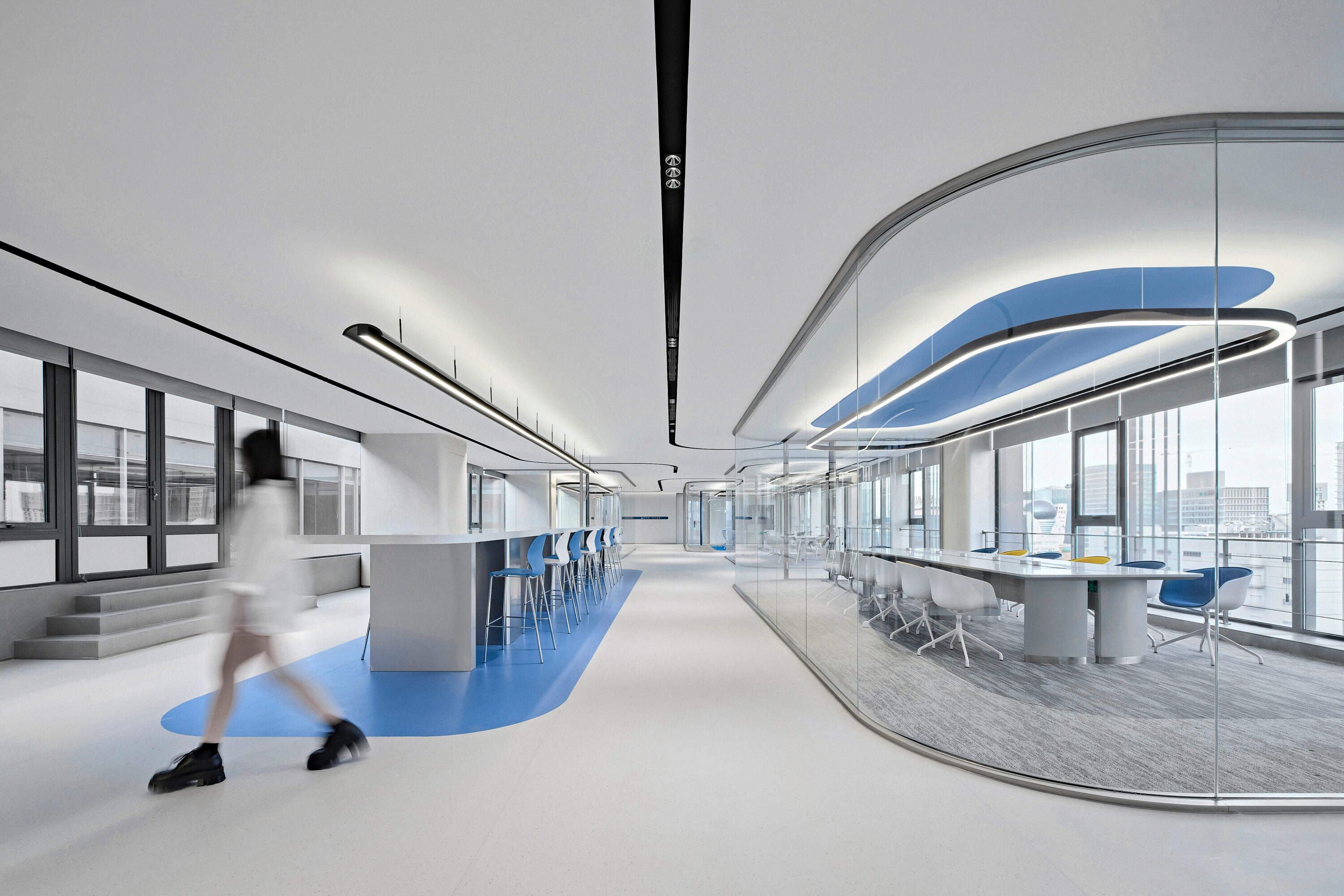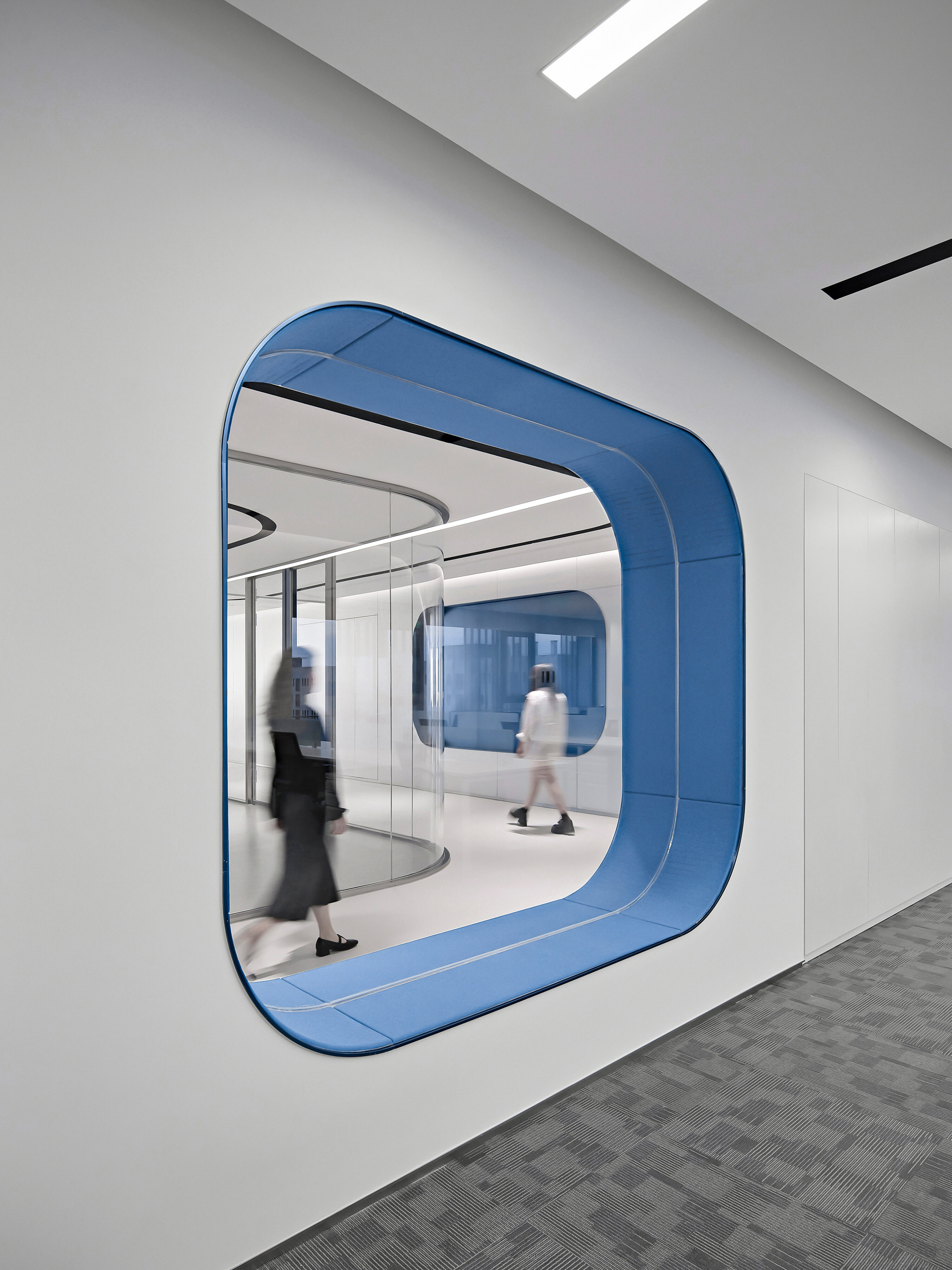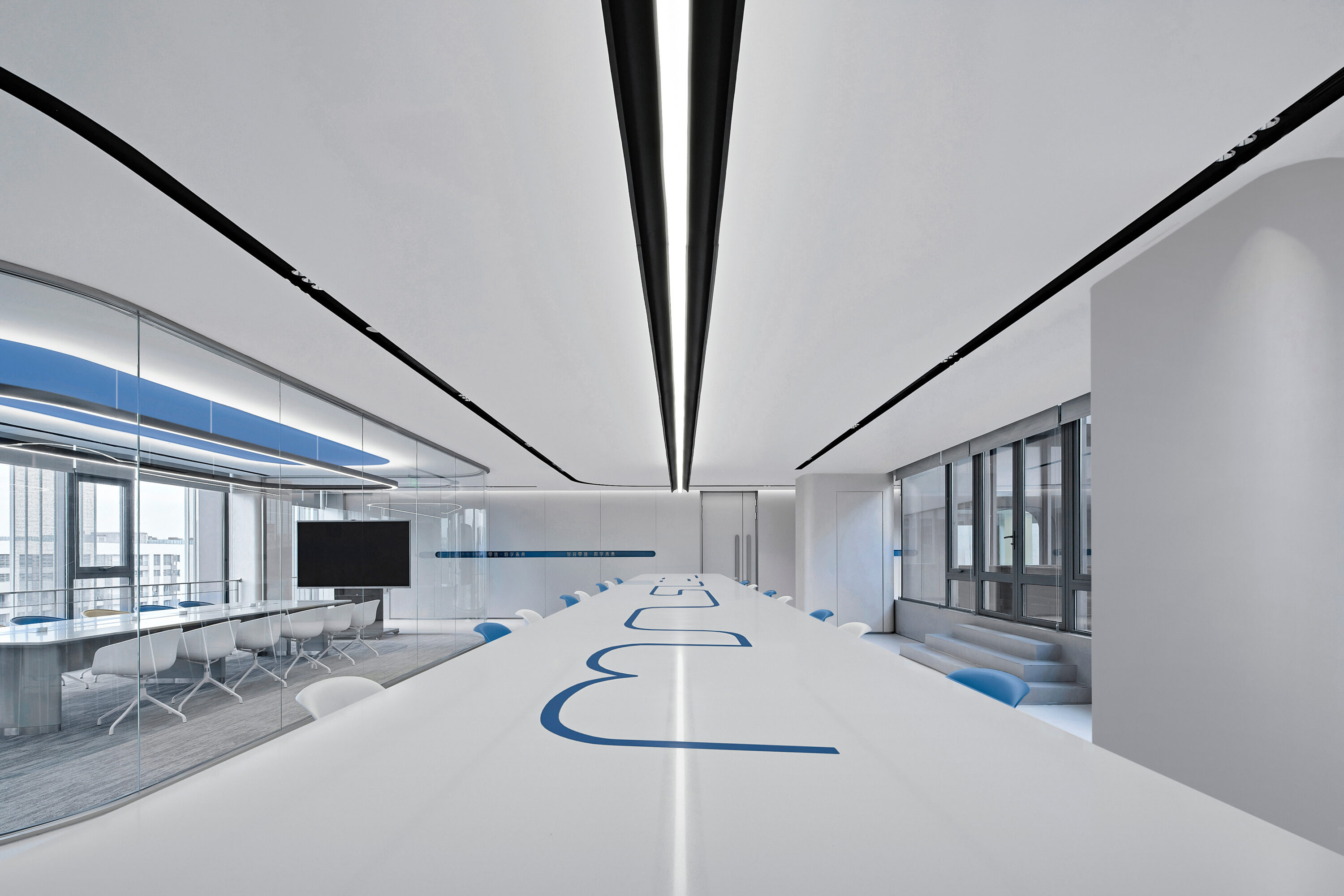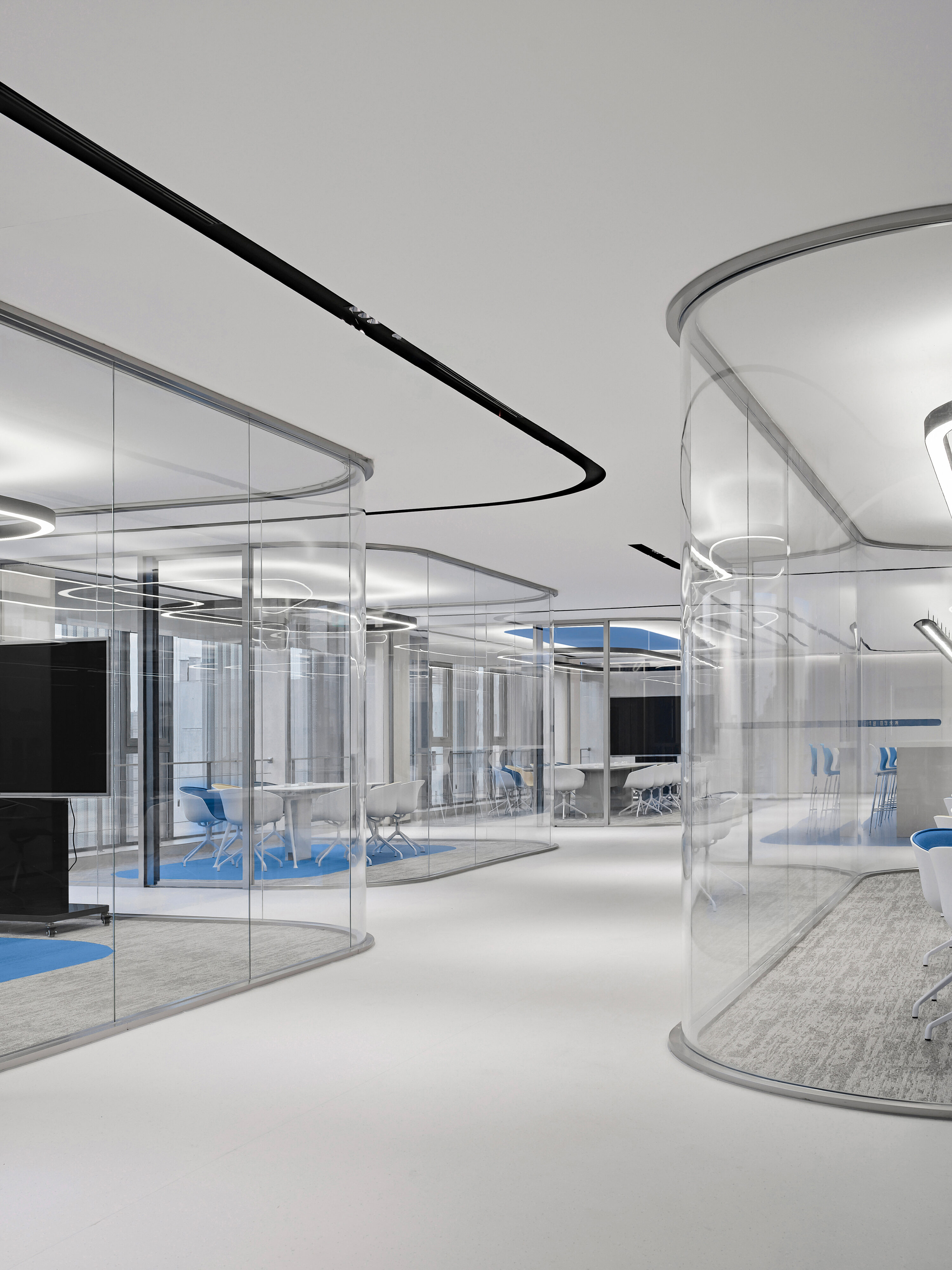 Electronic shelf label are an important window to the global market for Hanshow. The “Window to the Future” derived from electronic shelf label products is the spatial symbol that presents the office space, which can also be perceived in the refined geometric relationship of the Hanshow Logo. Window to the Future interprets various rounded rectangles in space, becoming a display interface for corporate culture, a medium for connecting different areas, and a series of furniture in the interior scenes.