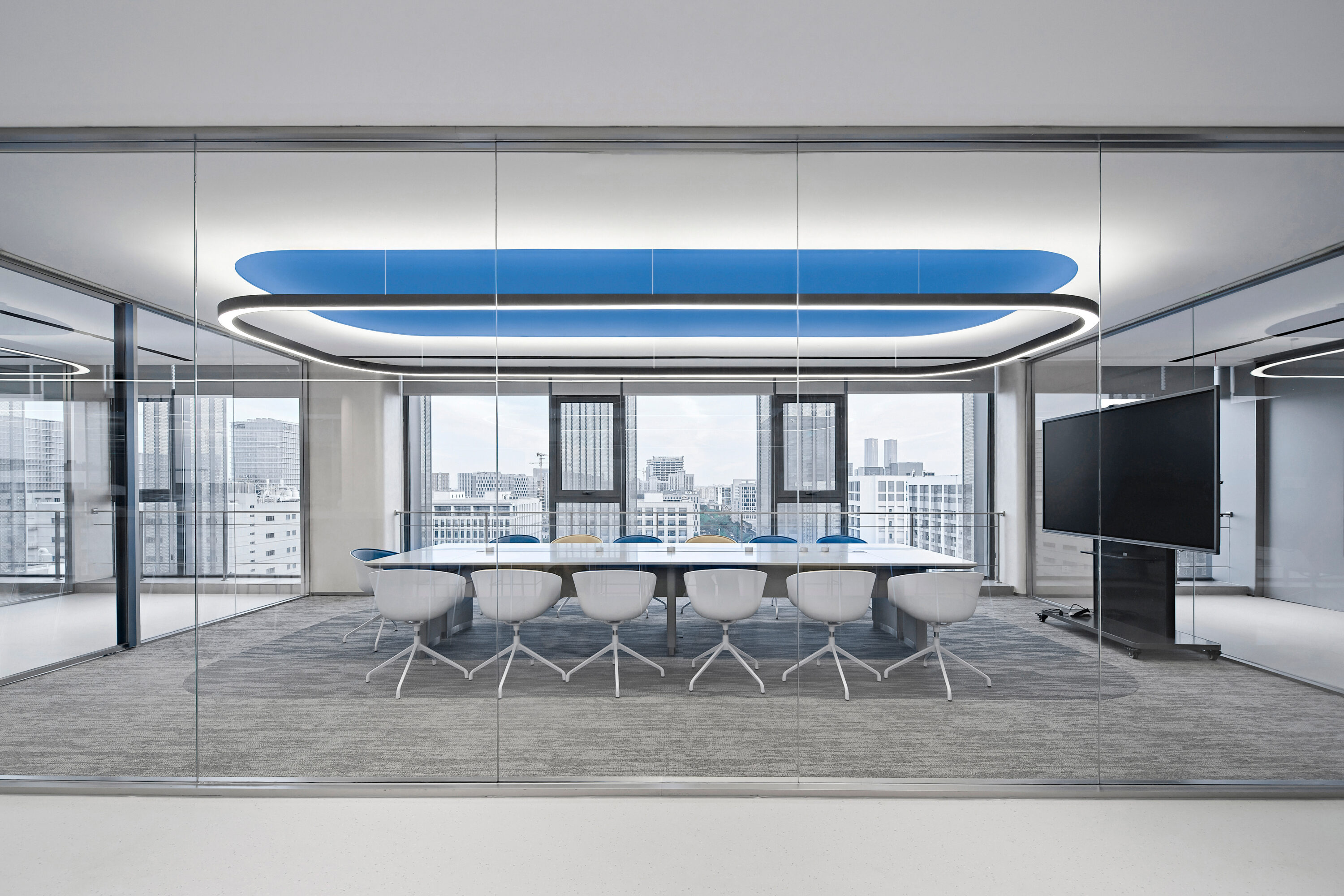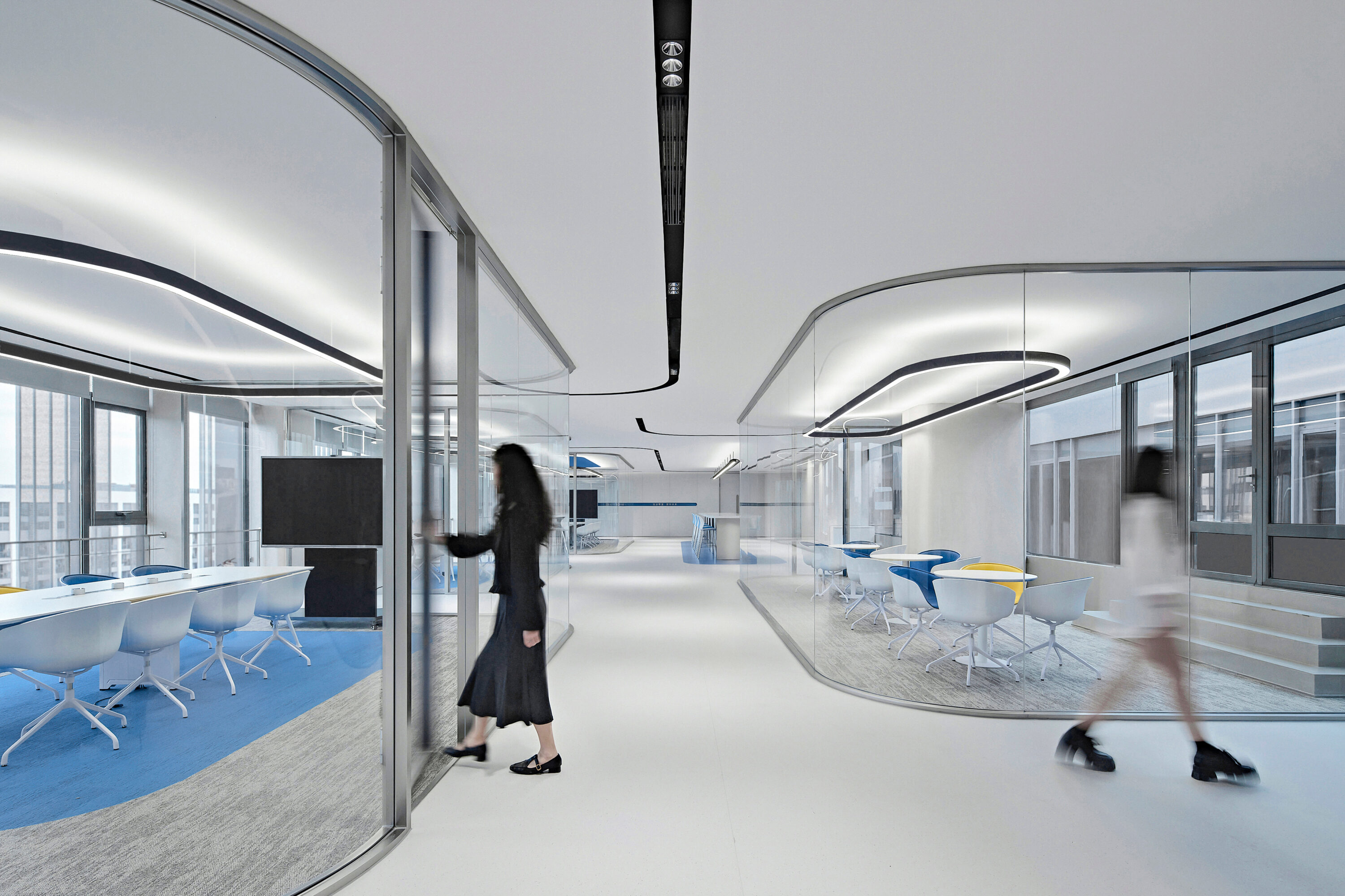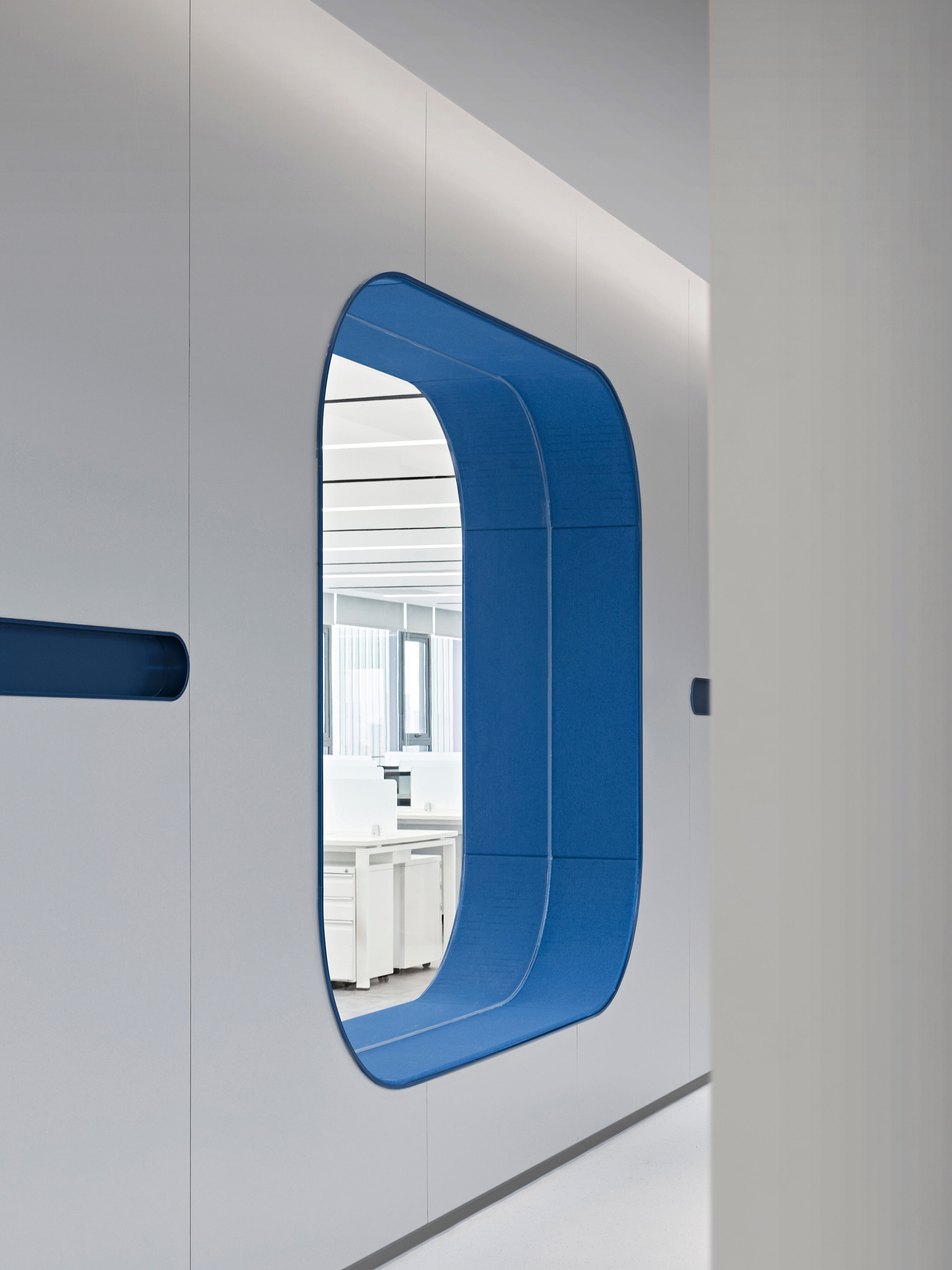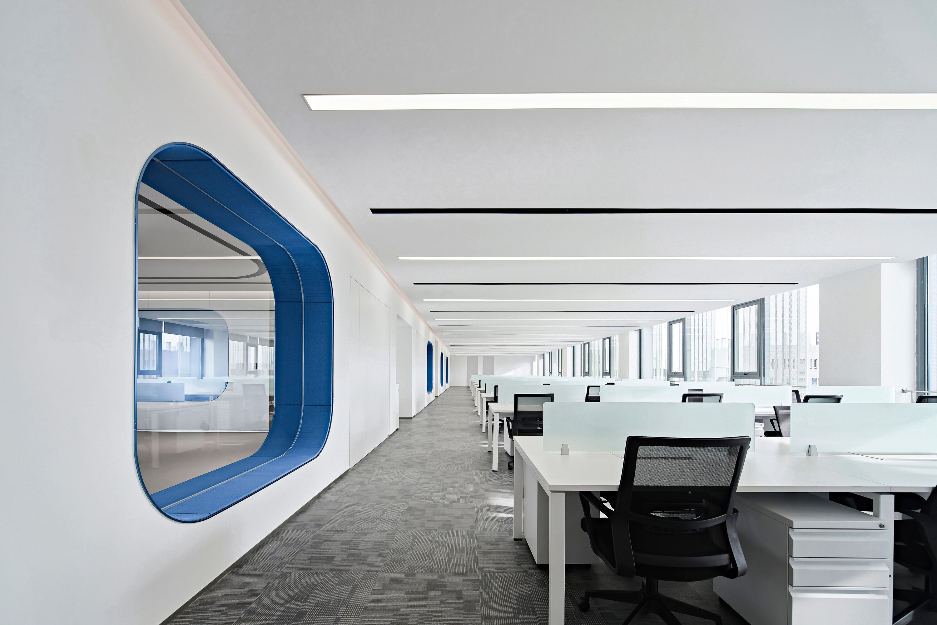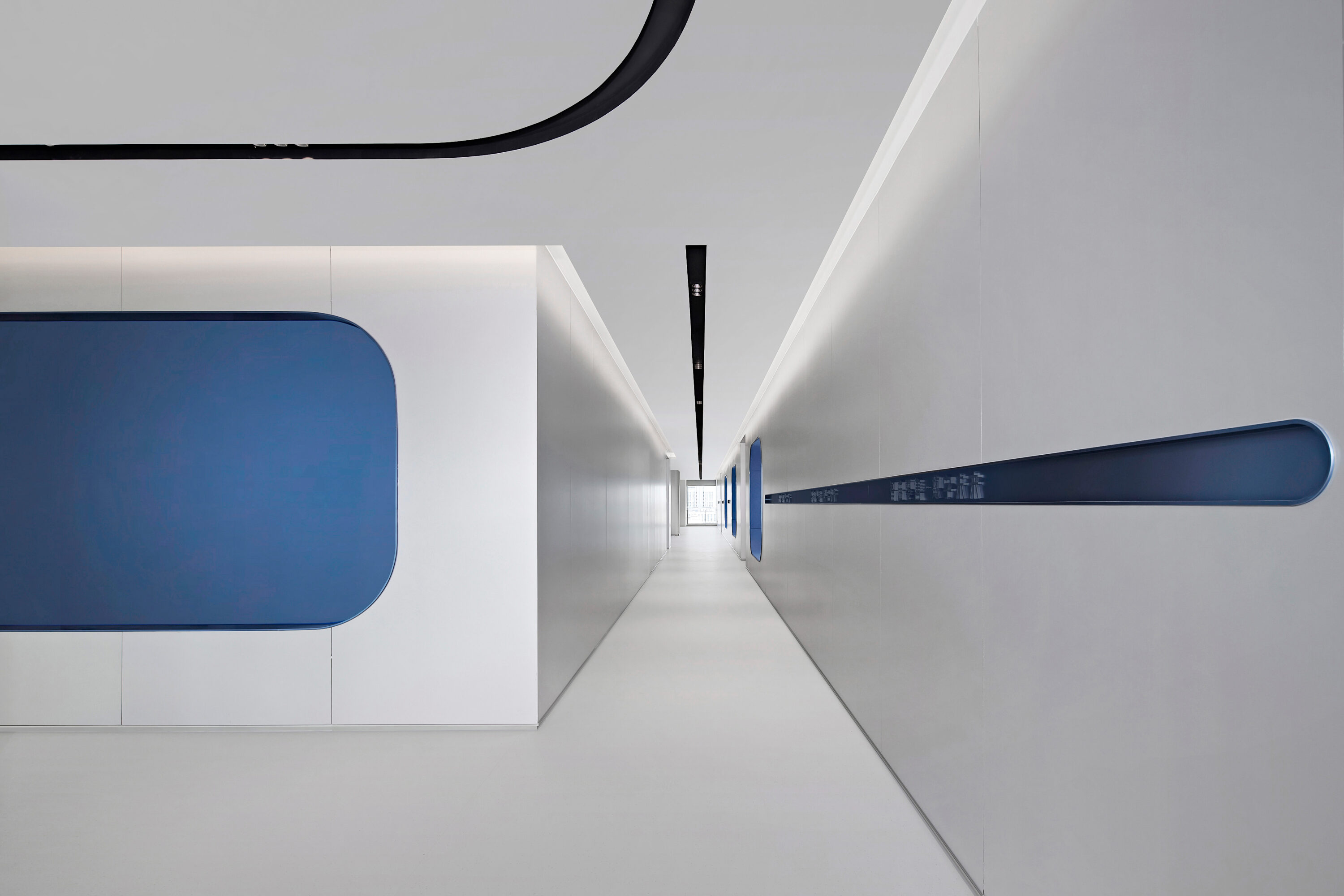 Electronic shelf label are an important window to the global market for Hanshow. The “Window to the Future” derived from electronic shelf label products is the spatial symbol that presents the office space, which can also be perceived in the refined geometric relationship of the Hanshow Logo. Window to the Future interprets various rounded rectangles in space, becoming a display interface for corporate culture, a medium for connecting different areas, and a series of furniture in the interior scenes.
