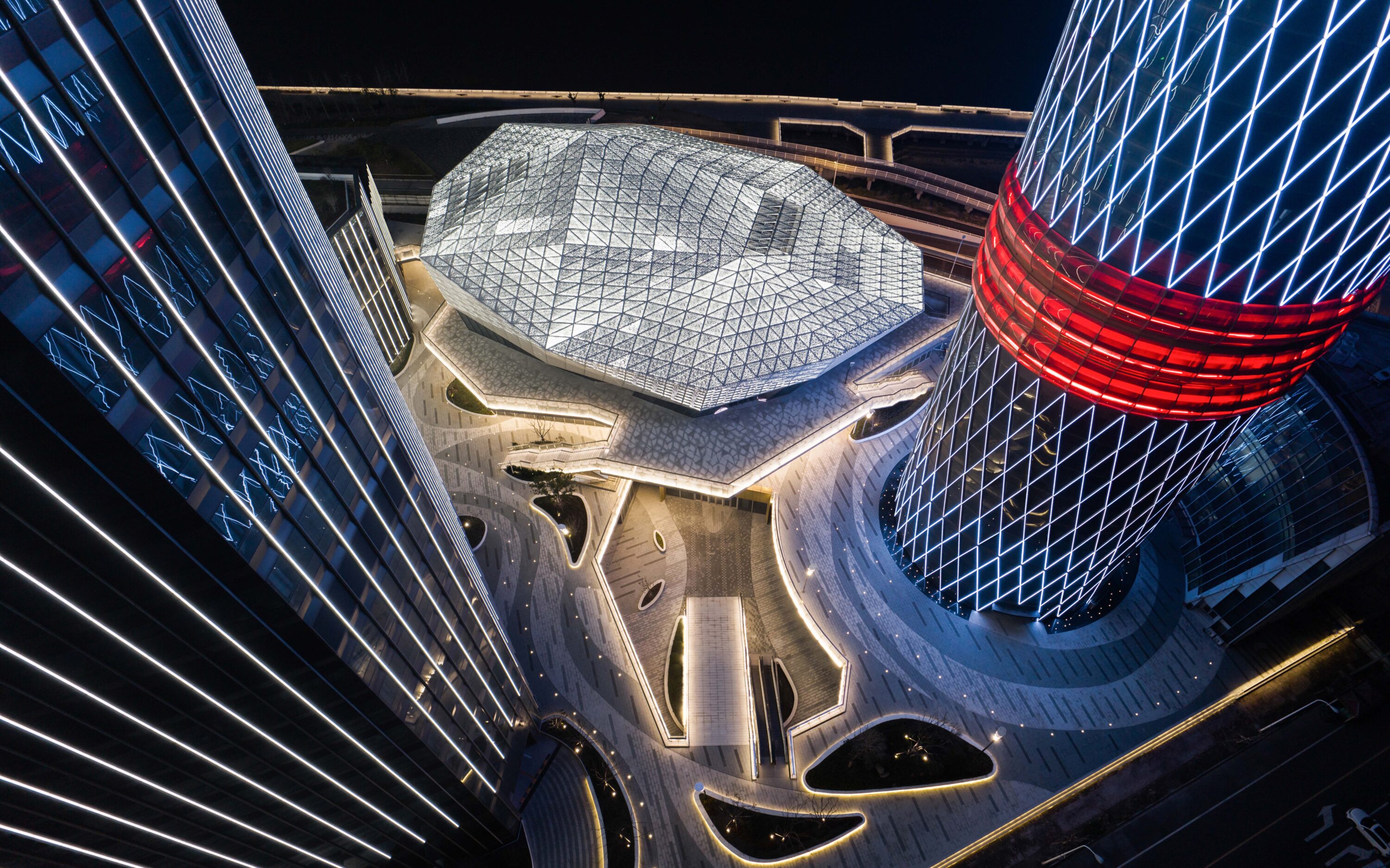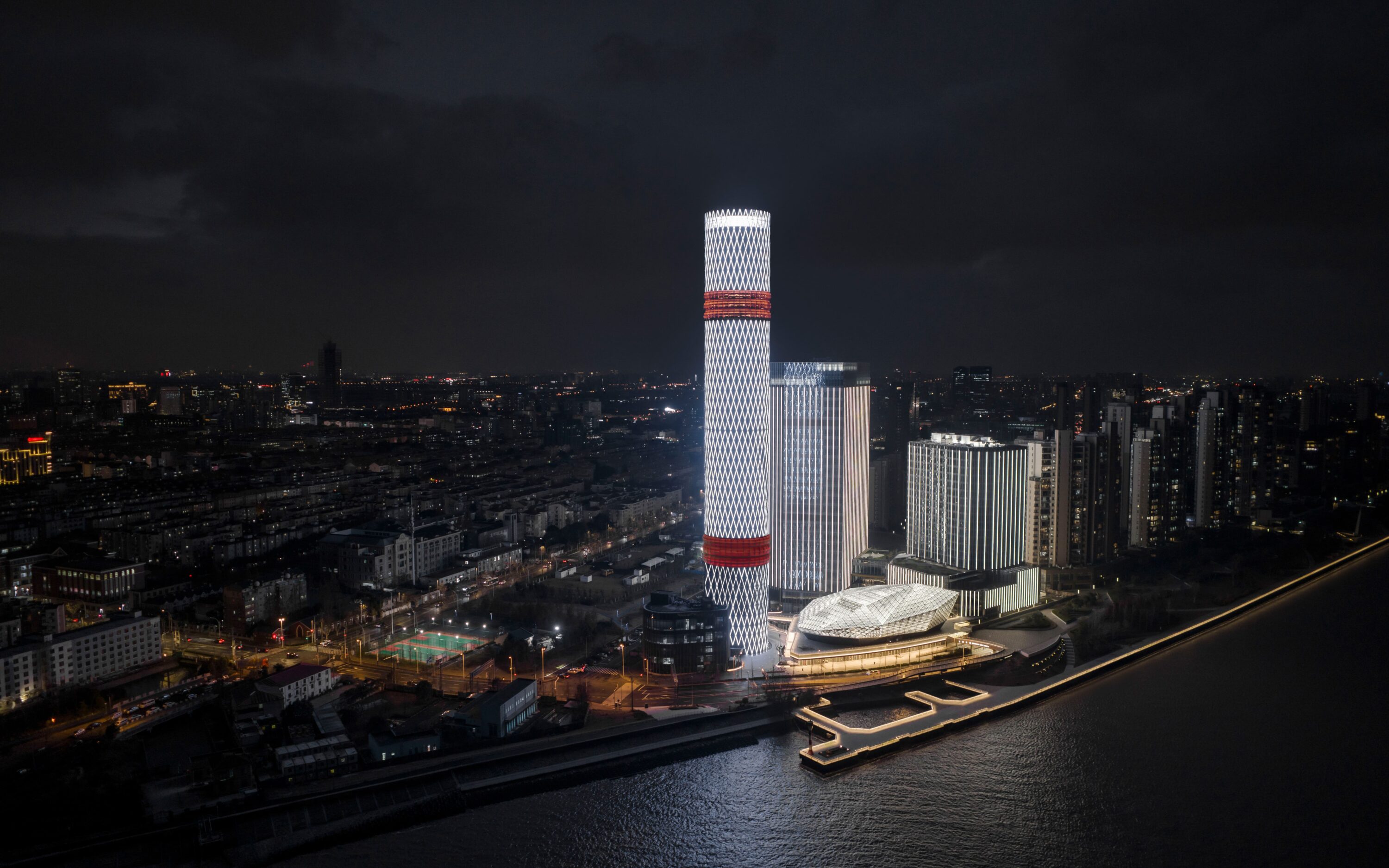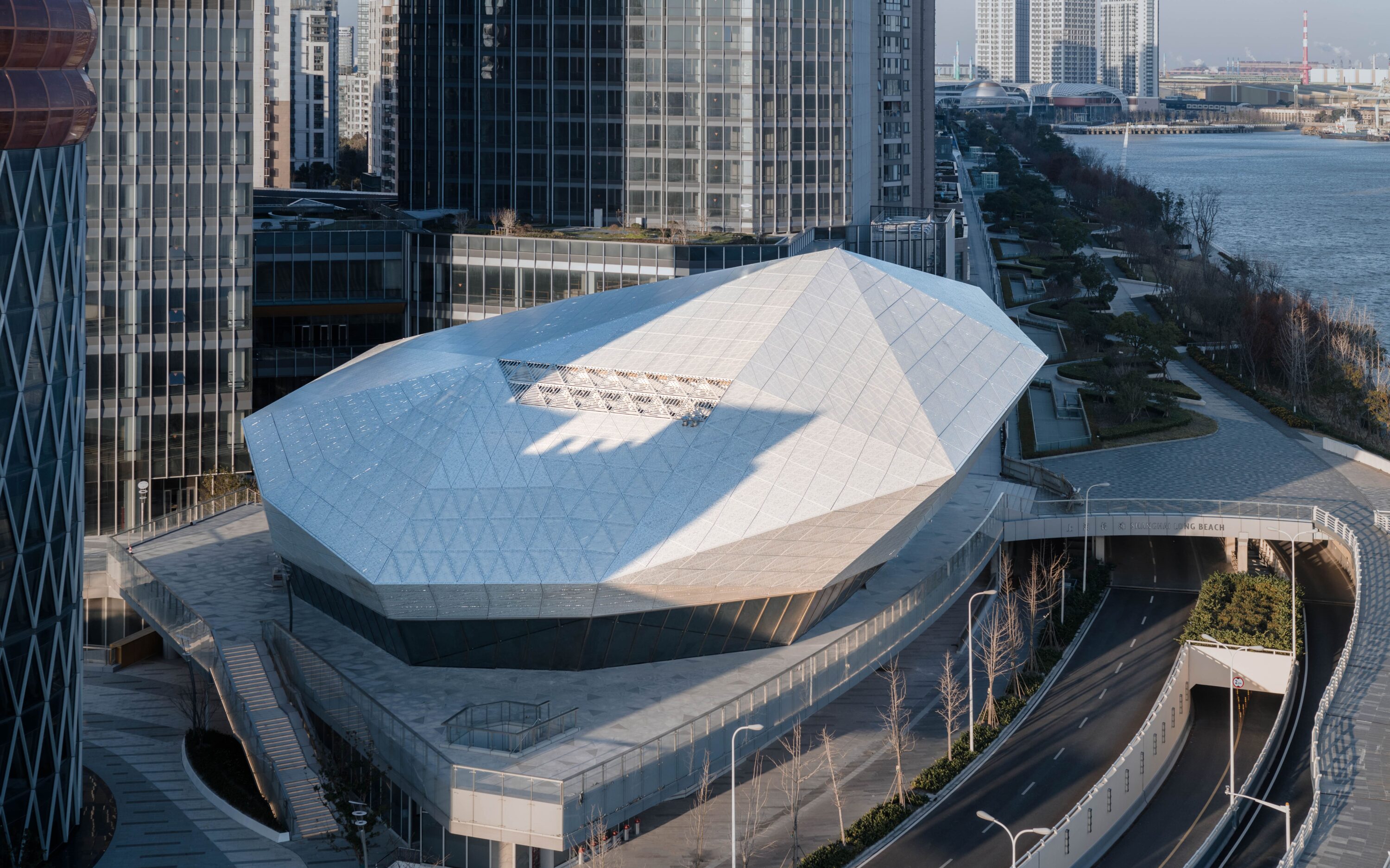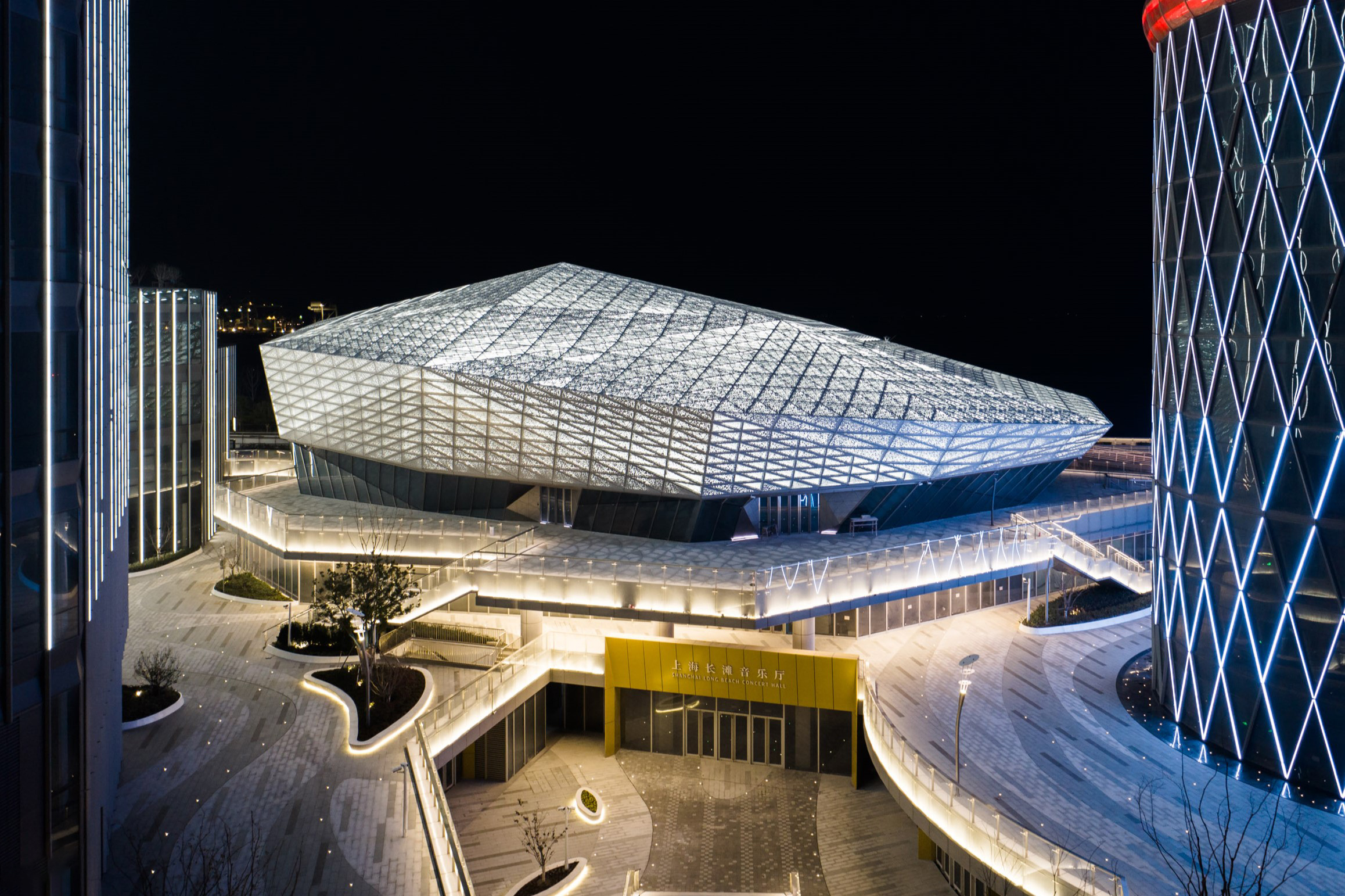 Shanghai Baoshan Long Beach Concert Hall, the first large-scale professional performance venue in Baoshan District, is strategically located at the mouth of the Yangtze River. With a total investment of 500 million yuan, this cultural landmark features parametric diamond-patterned facades creating dynamic light effects and houses a 1,027-seat auditorium with a hydraulic stage for symphony performances. As the cultural core of the Shanghai Changtan complex, it connects with a 1.75km waterfront promenade and an IMAX theater, forming a 1.46 million sqm mixed-use development that drives regional cultural revitalization.