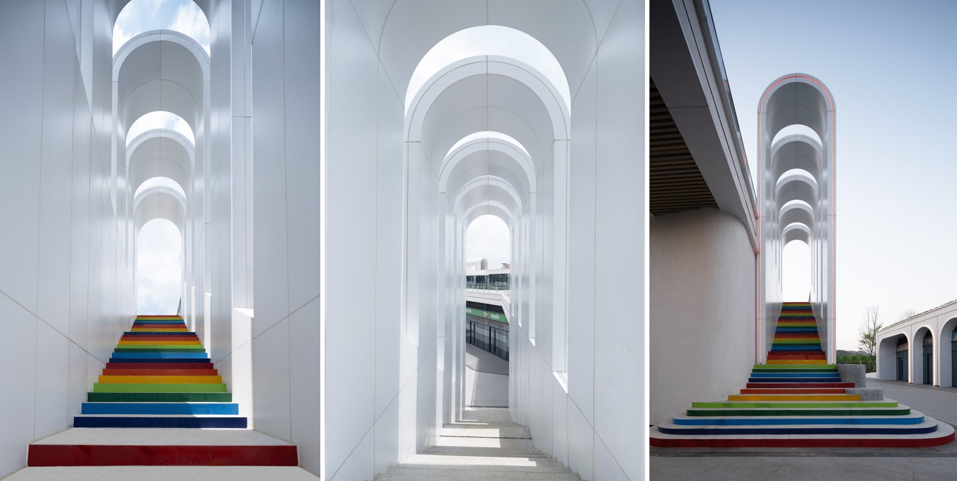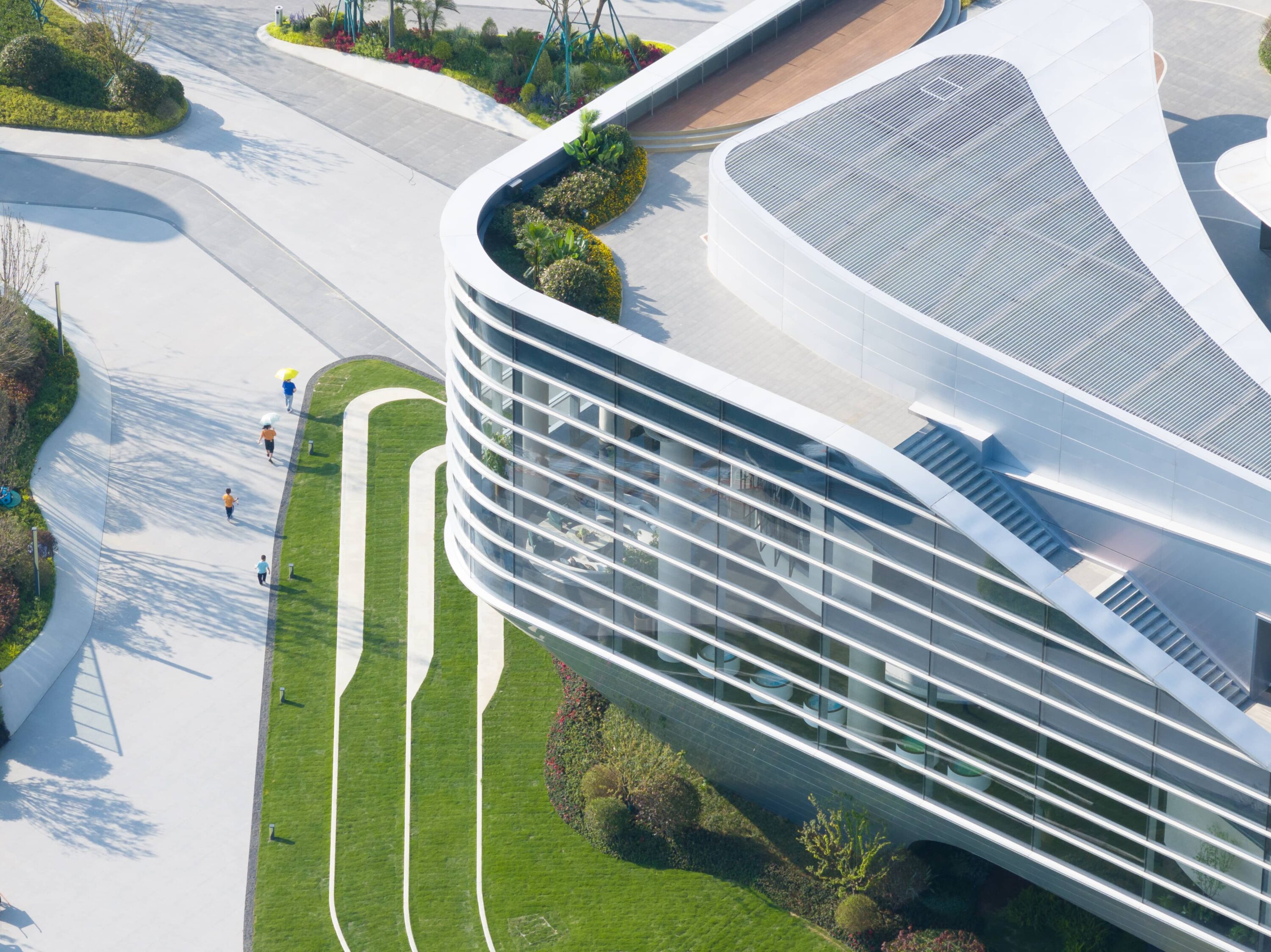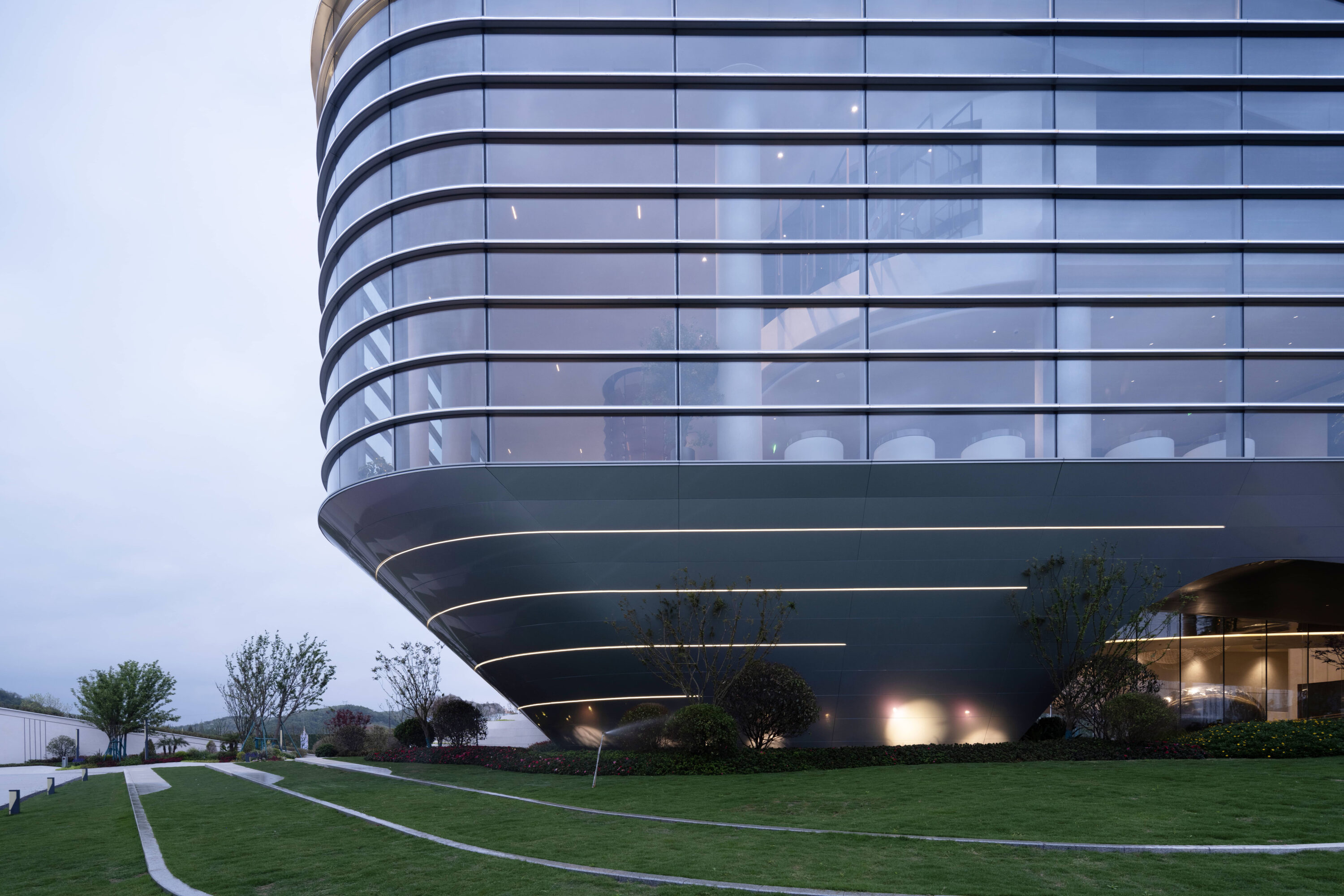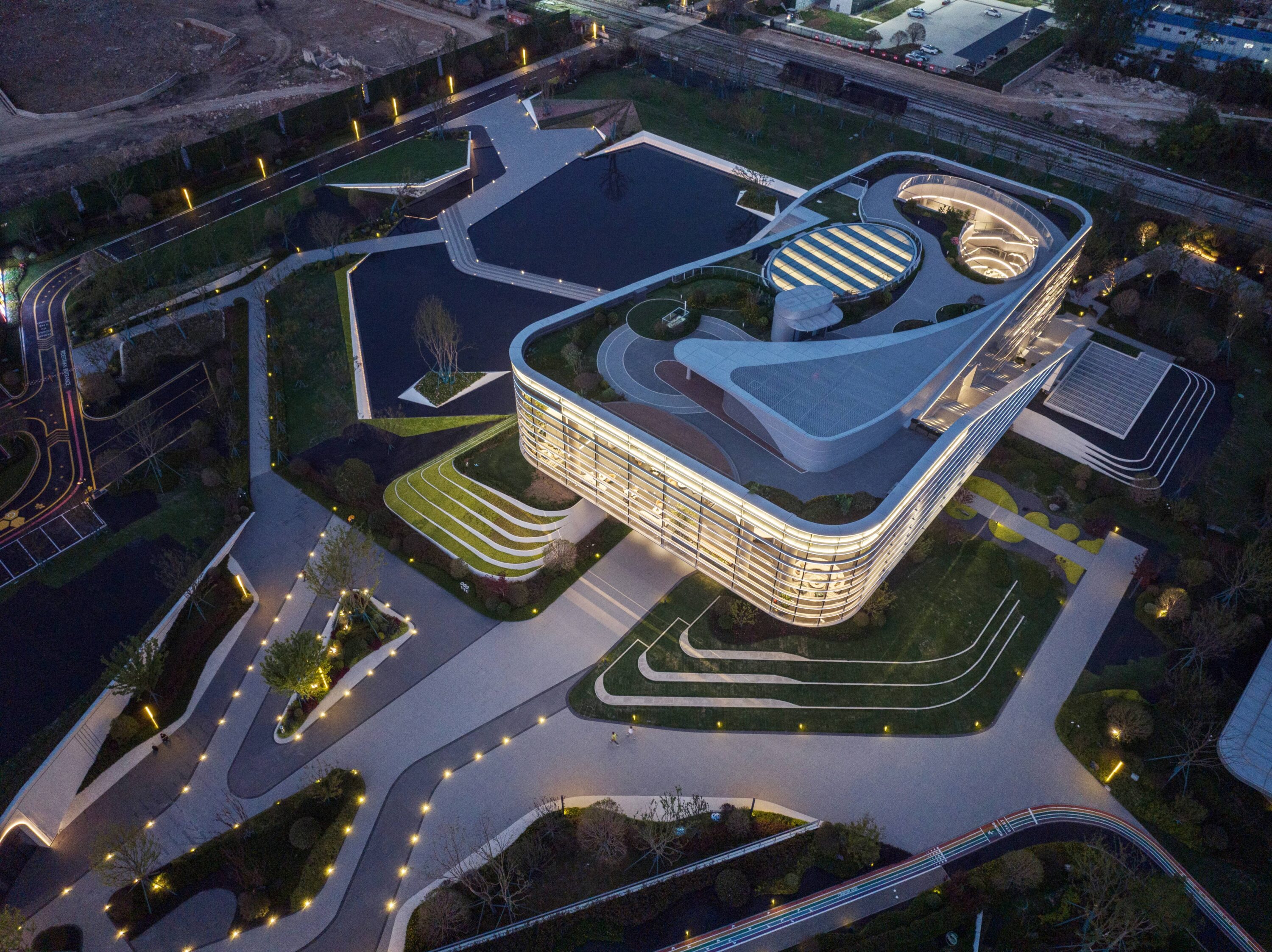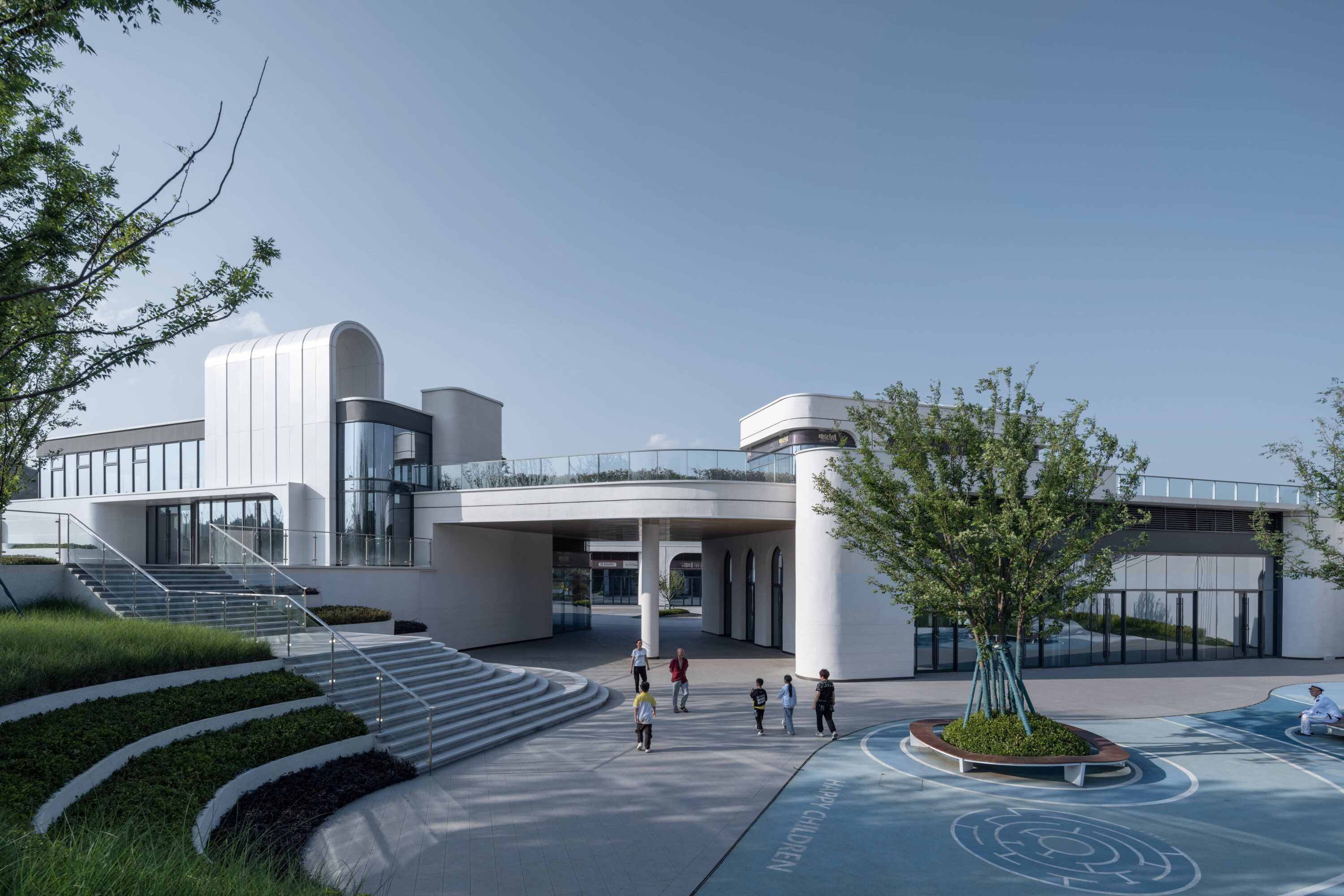 As the first project in the new district, the Guiyang Jinmao Crystal Smart New City Fan Exhibition Area has become a new living demonstration area in Guiyang New City. The city exhibition hall adopts the most minimalist form, with the meaning of “infinite star ship” as the starting point to drive the new city to “take off”. The eastern part of the exhibition hall is modeled after the unique Kashgar landform, creating an outdoor courtyard with a water moon cave. It falls from the rooftop garden, forming a rich interstellar space experience hall. The commercial area fully integrates architecture and landscape by combining the original terrain, using landscape design techniques. The design inspiration for the commercial facade comes from the shuttle orbit and the portal of time and space, using different combinations of arches to construct different themed facades.