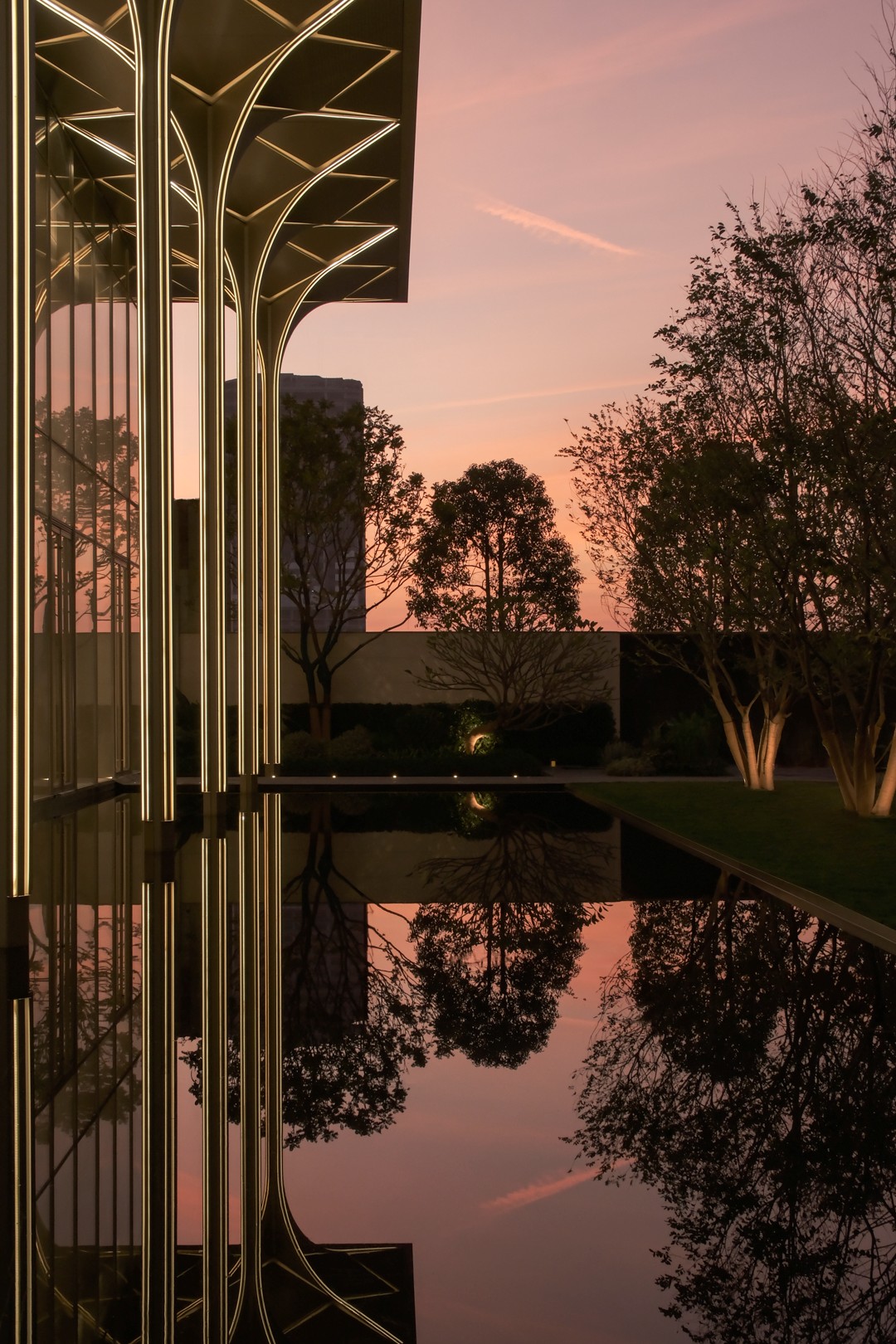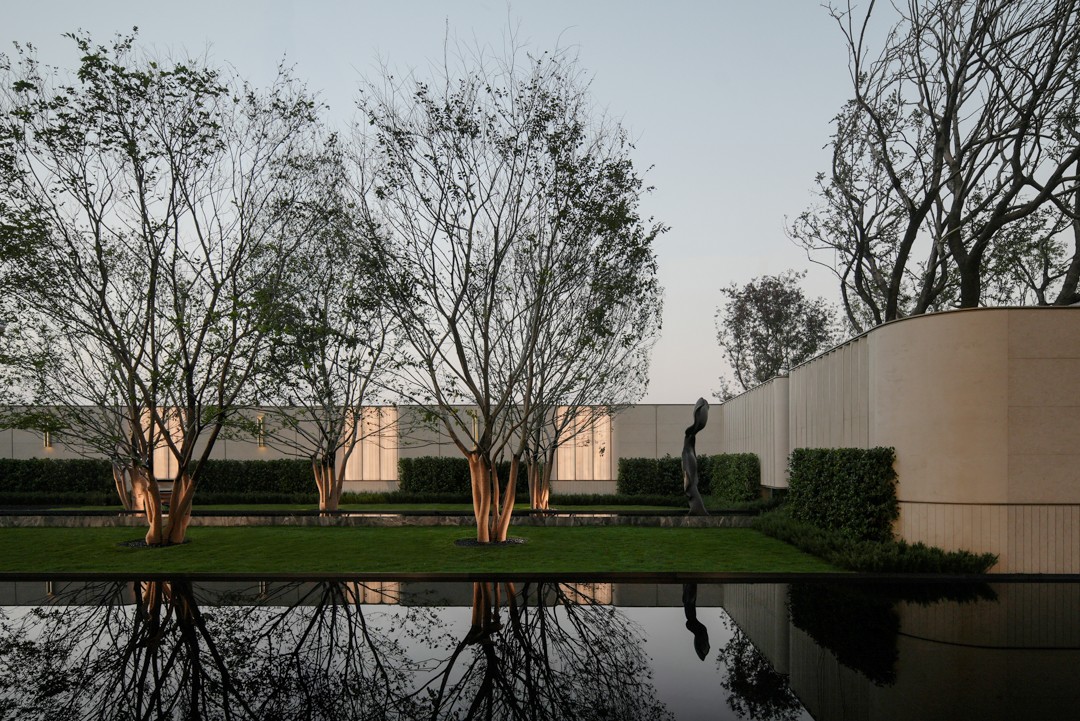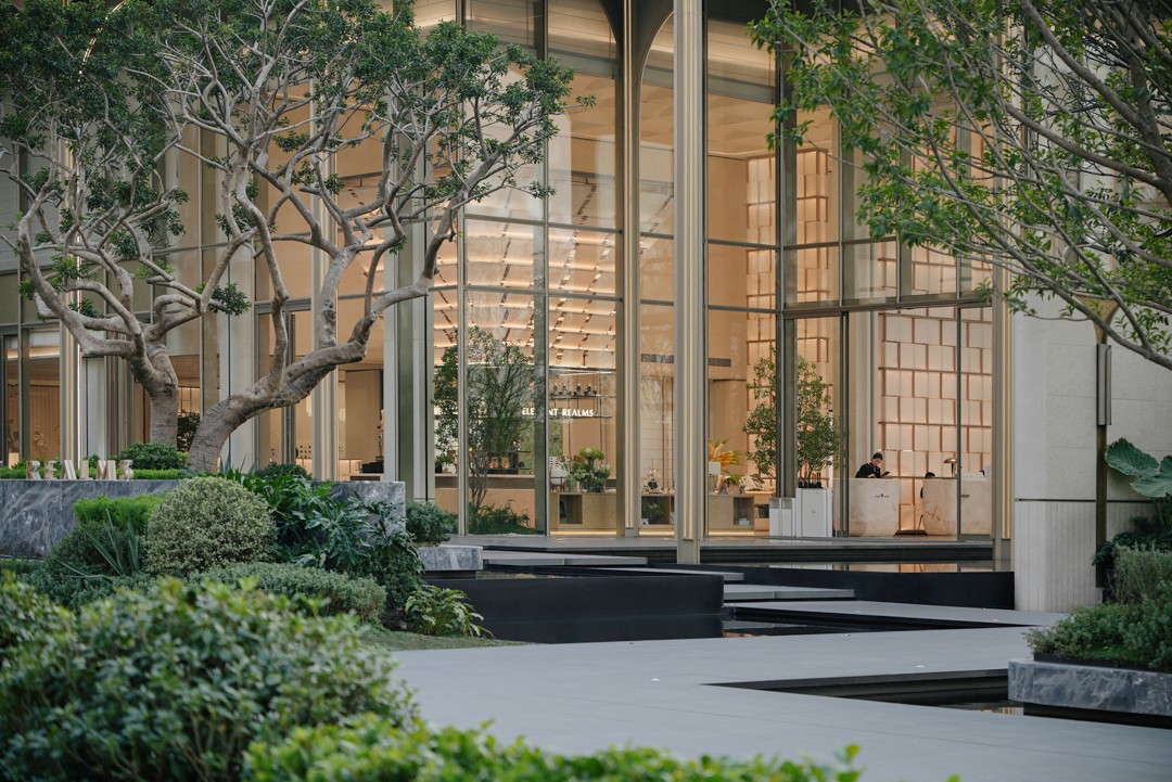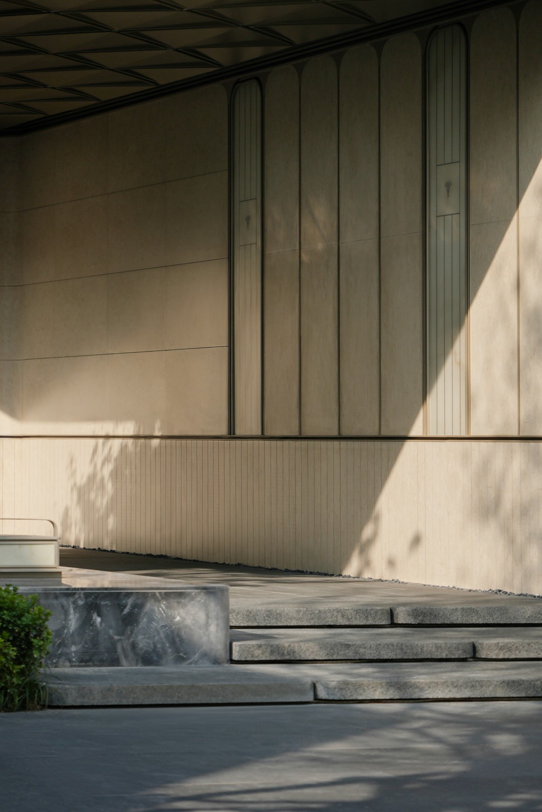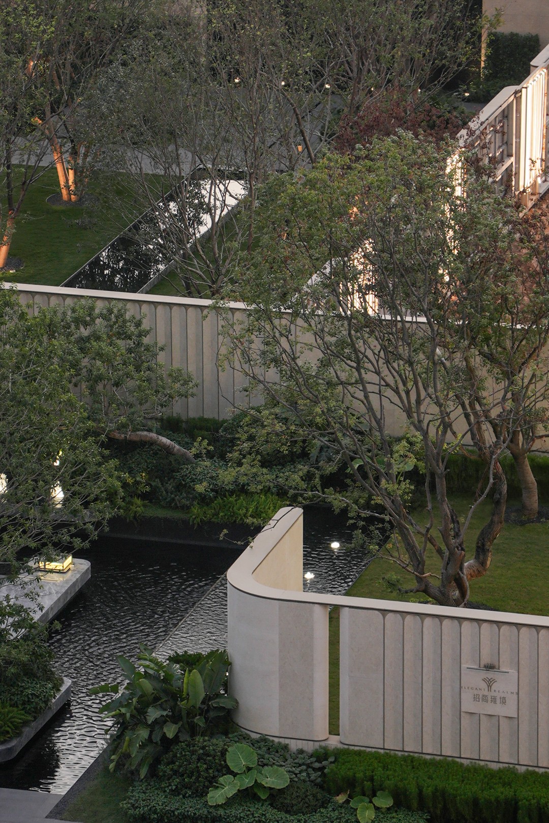 The core design concept of this project is to create a future living experience pavilion with multiple experiences through the progressive creation of spatial sequences. The welcoming entrance is set off by the champagne gold high dome of the building. The metal with rounded corners and the agate beige scenery wall collide and reflect each other, highlighting the meticulous craftsmanship. Walking along the water, the water reflects the dome, and the characteristic paving echoes the dome elements. The tree pools and flower beds are scattered in a patchwork, and the blue-gray plants create an elegant plant atmosphere. The axis water feature and the array of Chinese tallow trees float above the water, reflected on the translucent marble and elegant beige scenery wall. Strolling here, one’s steps are light, enjoying the beauty of life