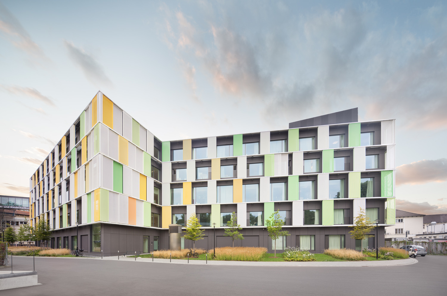 The Parent-Child Center of the Bonn University Hospital is located in an oasis in Venusberg, next to the Bonn University Medical Center. The initial idea was to create a new, harmonized and functionally independent building in both spaces. The themes of vitality and health are expressed in a clear and modern architectural language, characterized by a lively, dynamic and bright architecture.