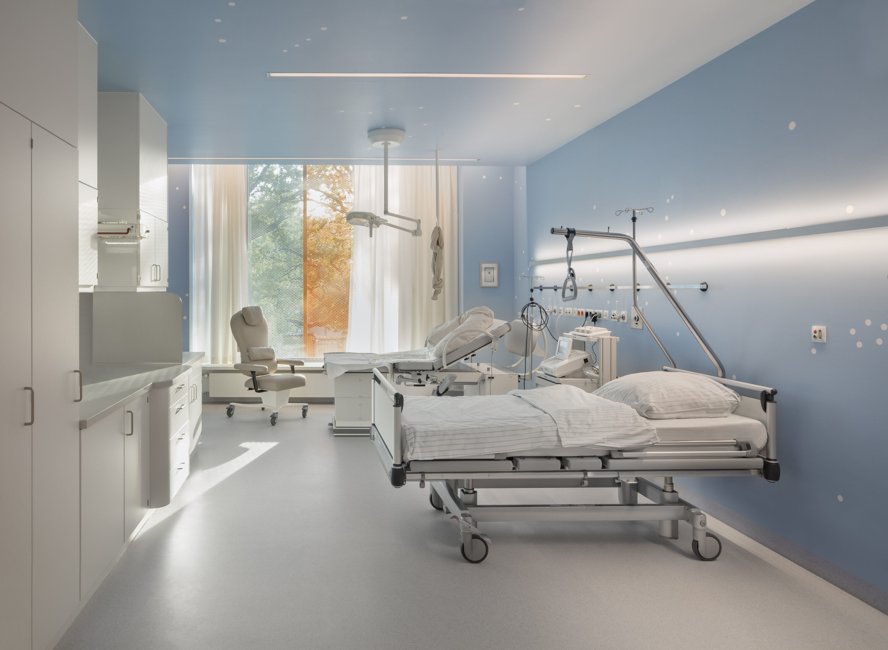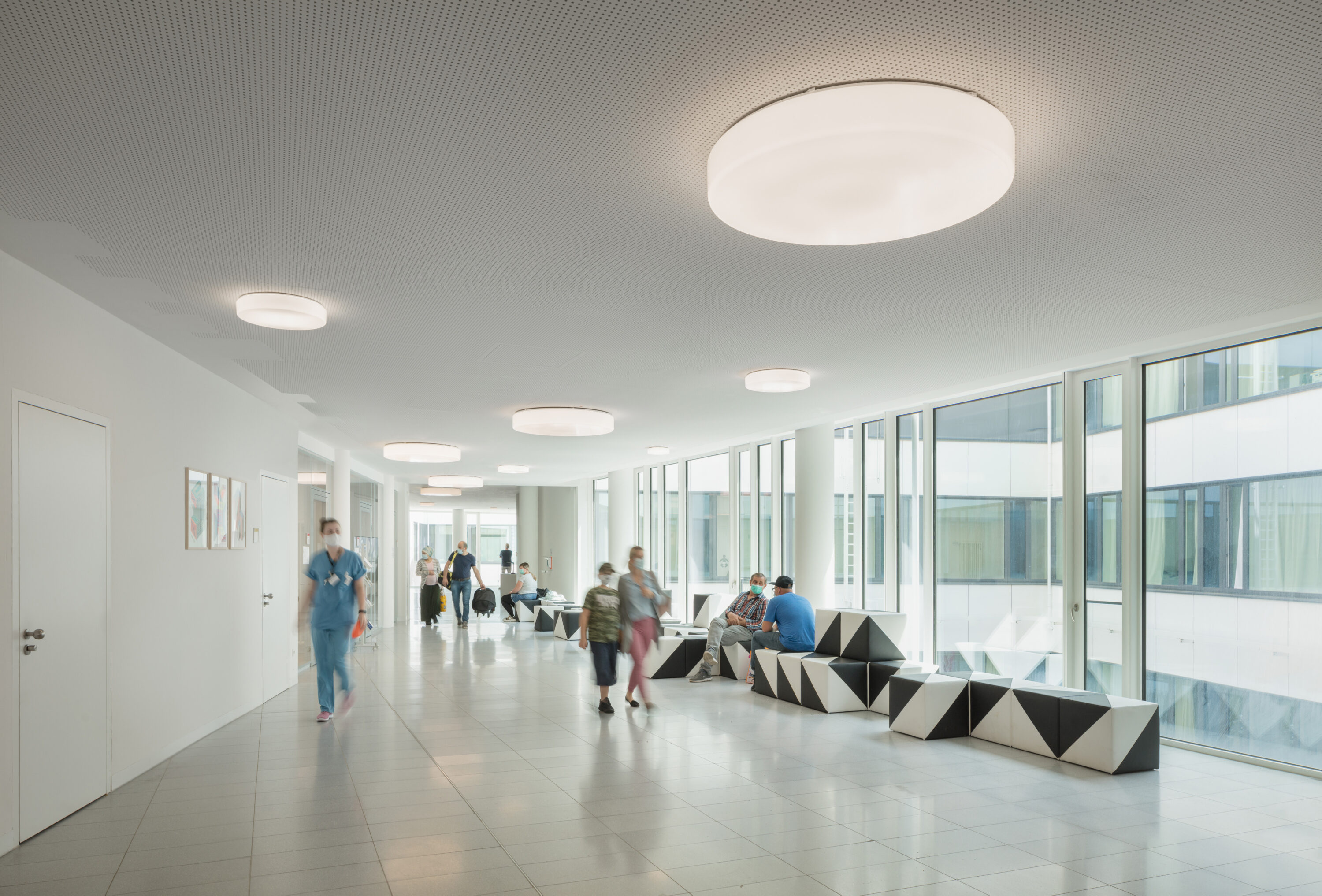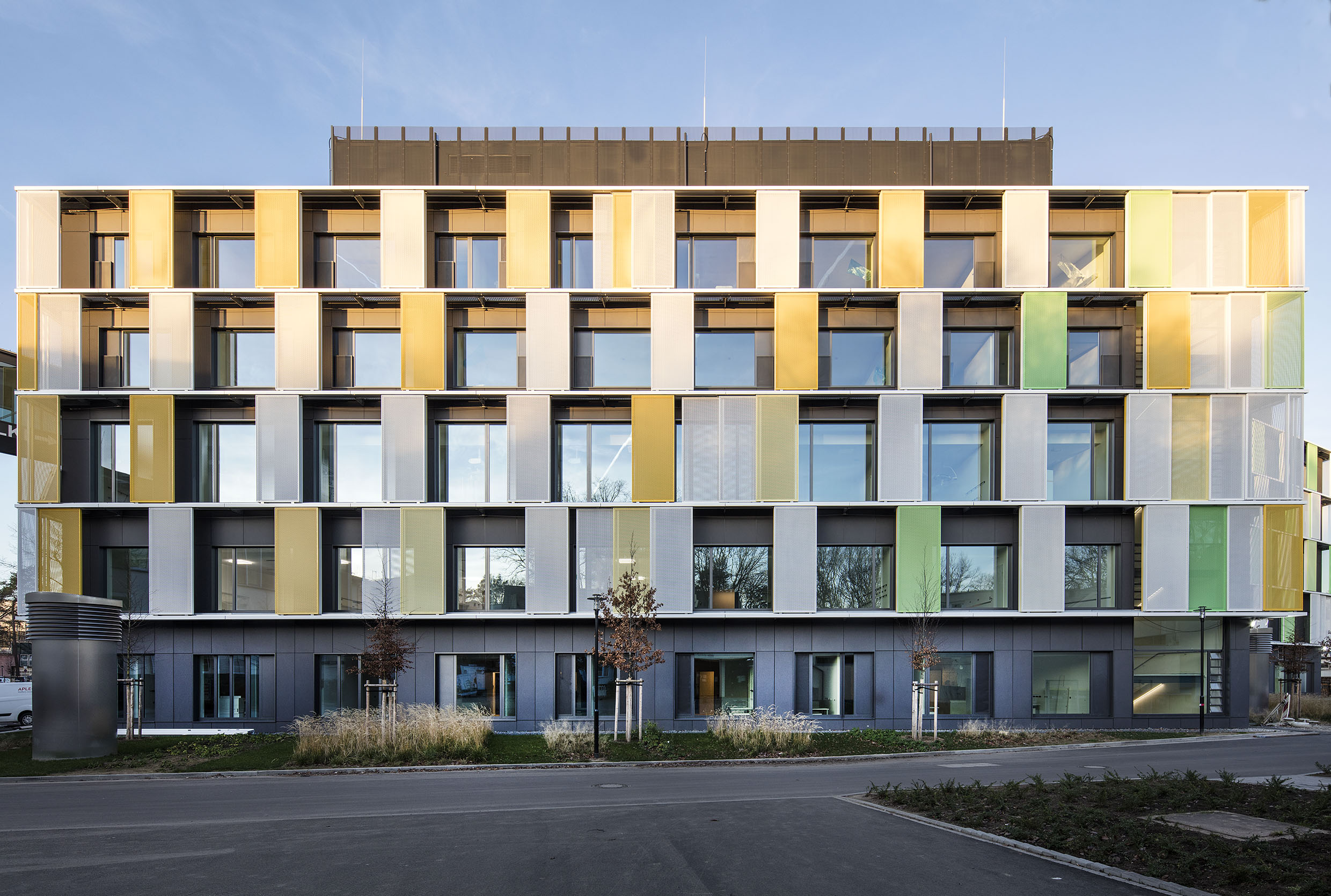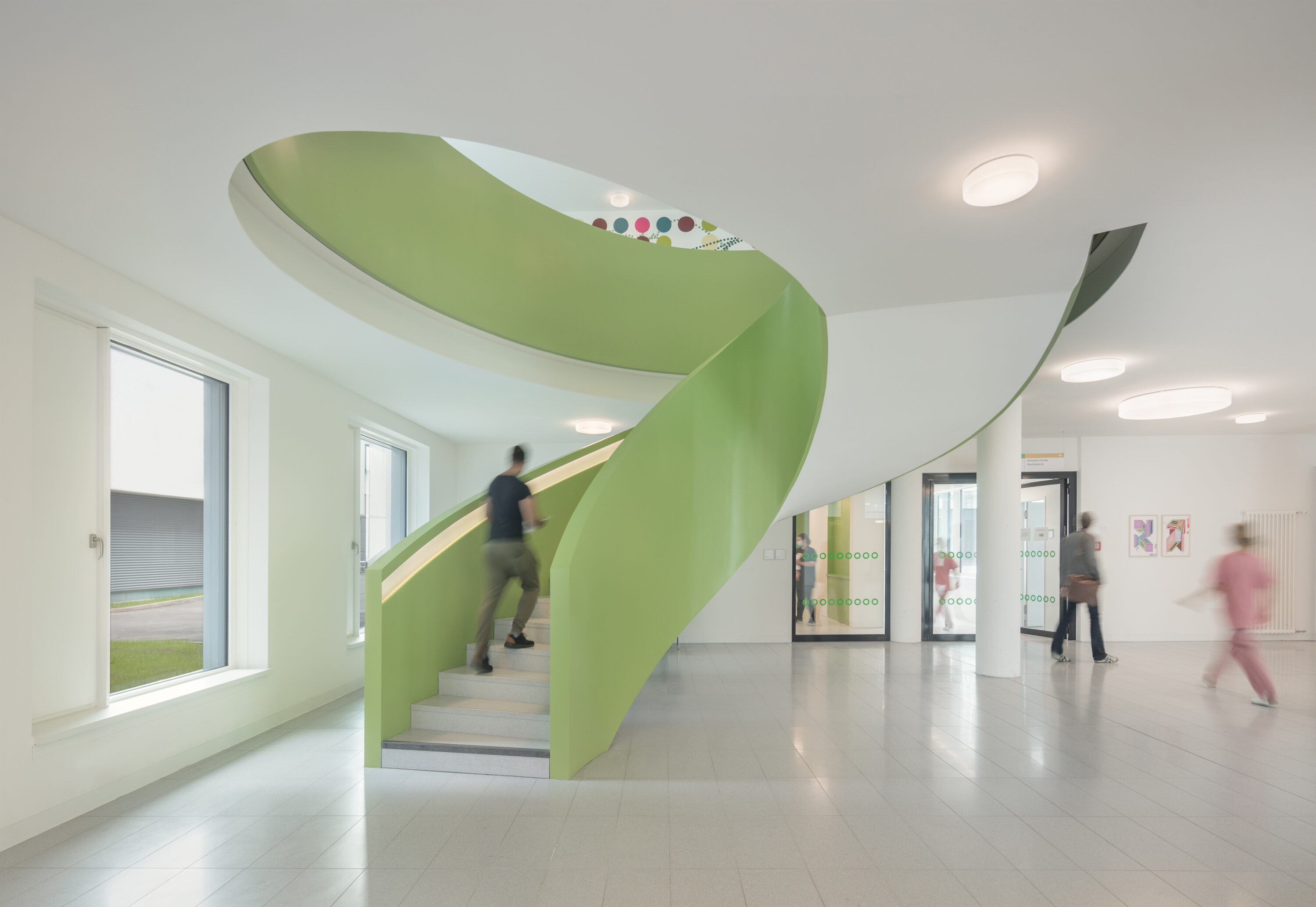 The Parent-Child Center of the Bonn University Hospital is located in an oasis in Venusberg, next to the Bonn University Medical Center. The initial idea was to create a new, harmonized and functionally independent building in both spaces. The themes of vitality and health are expressed in a clear and modern architectural language, characterized by a lively, dynamic and bright architecture.