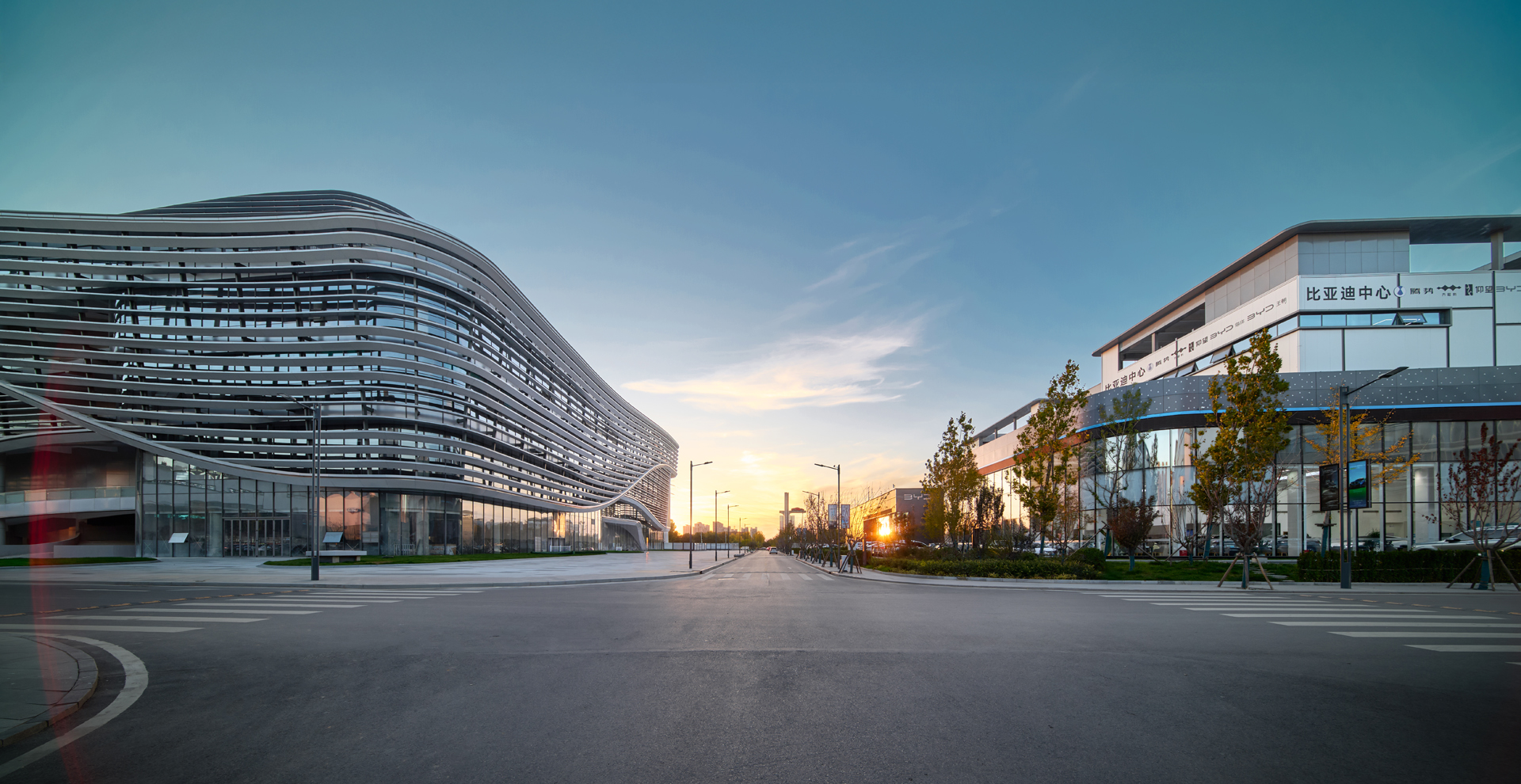 The project is located in Yuhua District, Shijiazhuang City. The park undertakes the industrial integration and image upgrading of more than 30 automobile brand stores in Yuhua District. In the design, the land form and the surrounding urban landscape environment are fully analyzed. Urban branch roads and internal passages of the park are used to reasonably divide functional blocks, and a central corridor is adopted to connect them, creating a park landscape of “grouped composition with orderly opening and closing”. By creating a block-style planning context of “one core, two axes and three belts”, it builds a high-specification, image-focused, strong-experience and open industrial park with the automobile industry cluster as the leading factor, the full ecological industrial chain of automobiles as the core, and the integration of complex business forms, functions and spaces.