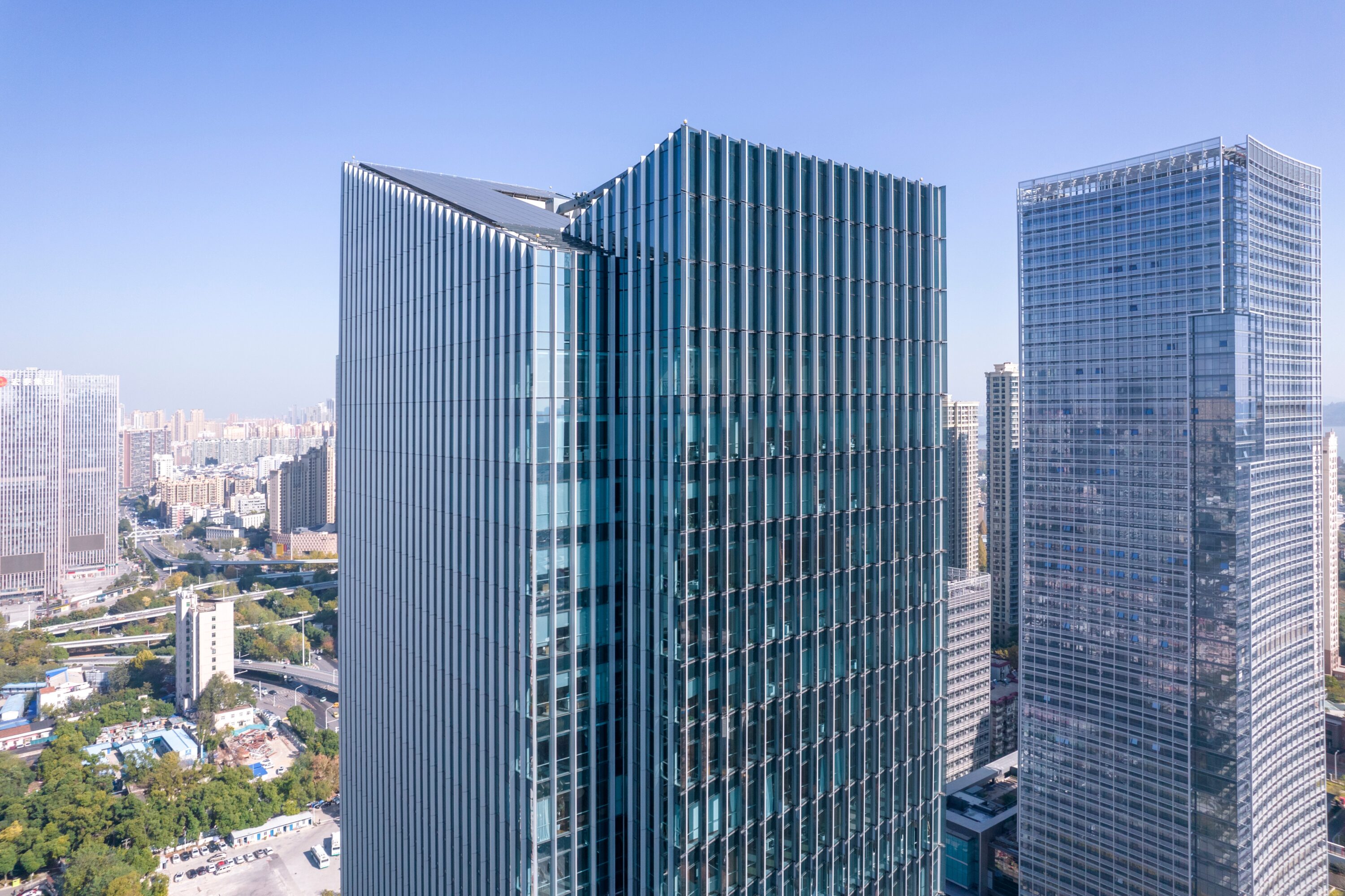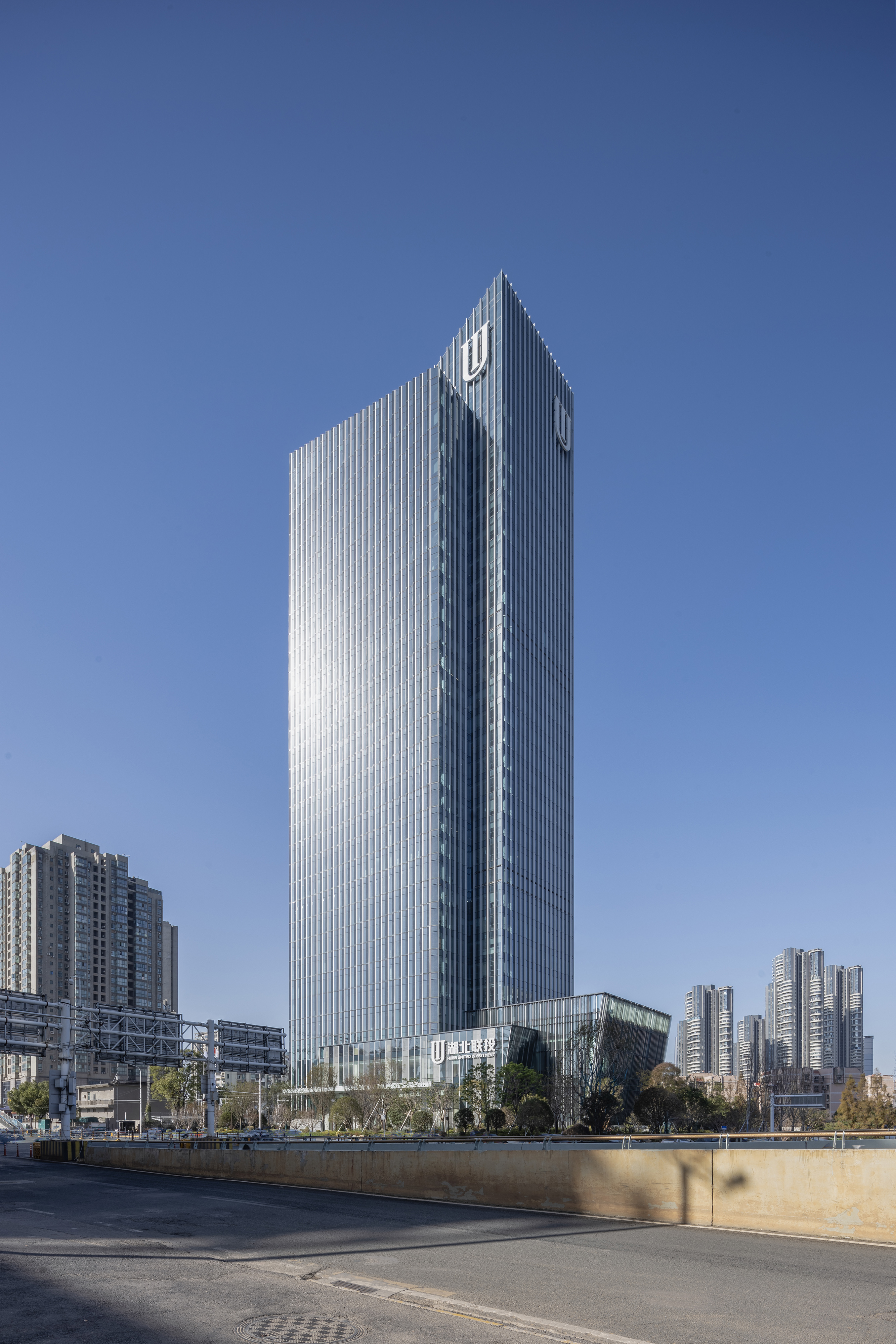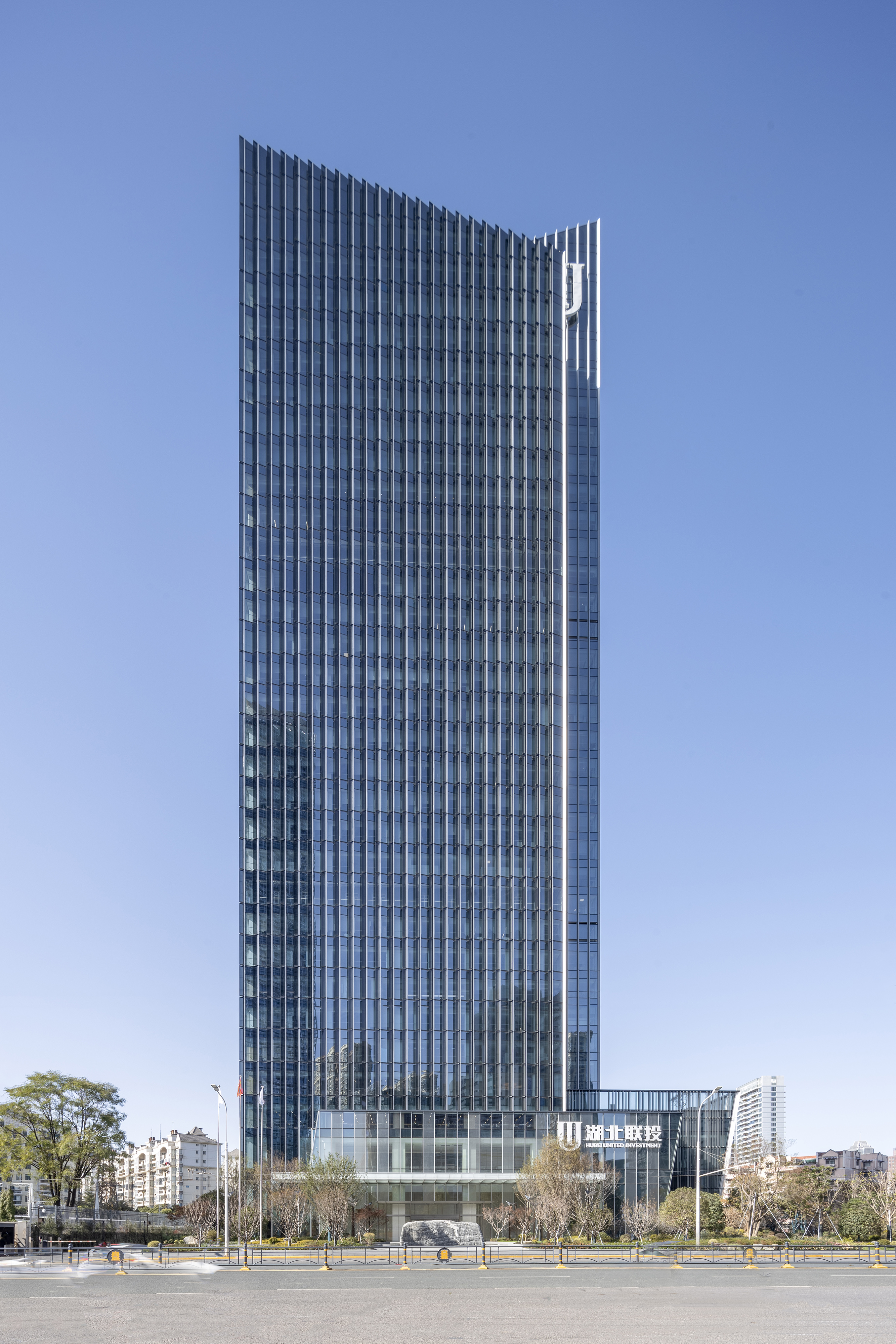 Hubei United Investment Technology Tower is located in the core area of the Financial City on Zhongbei Road in Wuhan, adjacent to the two major scenic areas of East Lake and Sand Lake, with a unique geographical advantage. This area is not only an important gathering place for Wuhan’s financial industry but also a convergence point for urban ecology and cultural landscapes. The completion of the project will inject new vitality into the regional economic development, and with its unique design concept and excellent functional positioning, it will become a shining pearl in the city skyline. The project includes one super high-rise main building and its podium, integrating functions such as headquarters office, conference exchange, restaurant fitness, and corporate display. The total construction area is 68,900 m², and the main building has a height of 158 m.