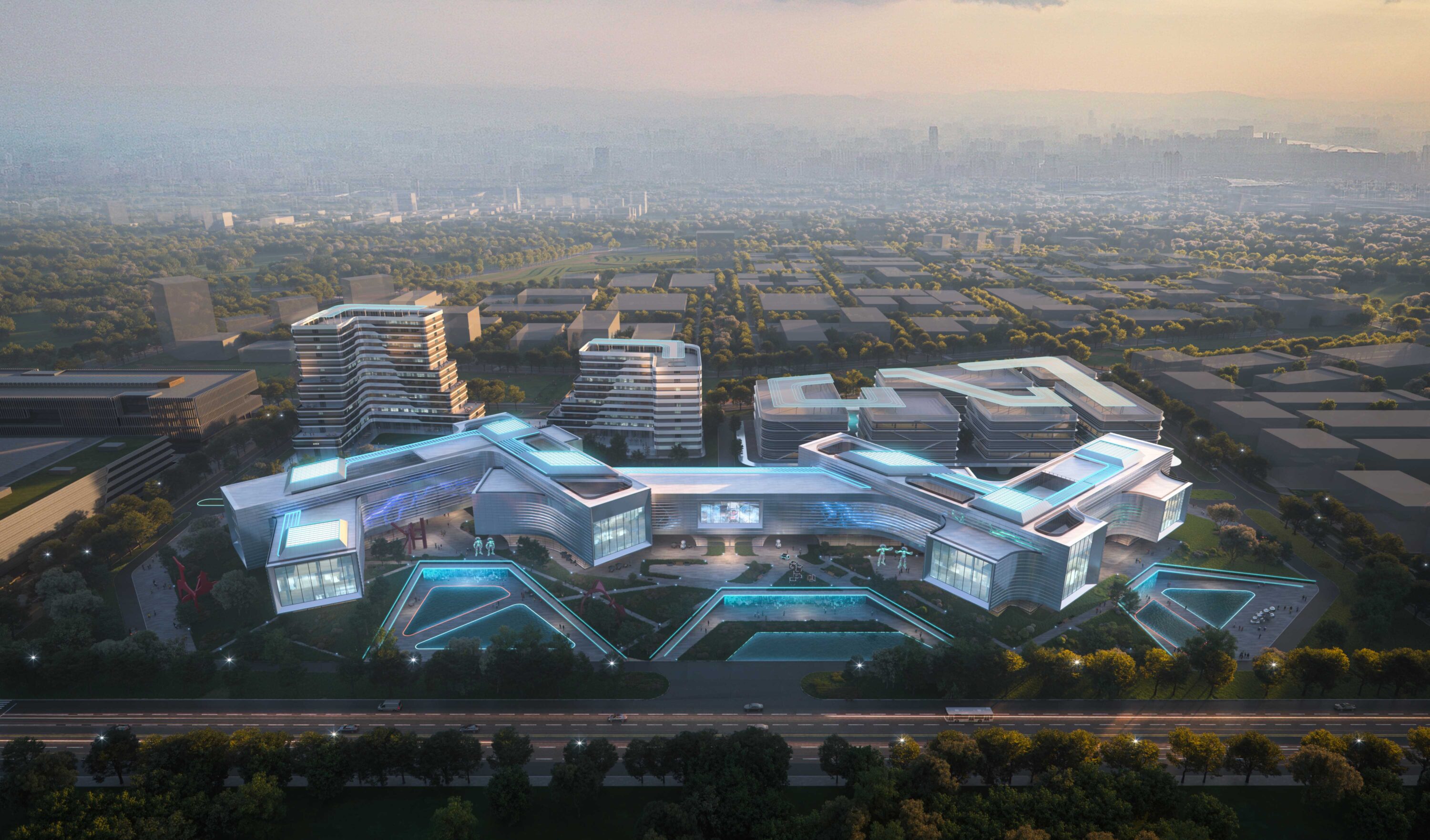 宜昌北斗产业园以北斗星图为灵感,打造“链接之星”和“共享之坝”。链接之星:七座架空研发总部通过空中花园相连,实现共享办公,呼应北斗七星特质。共享之坝:200米长架空基座结合三大峡湾广场,形成科技感与文化意象融合的城市界面。整体布局串联研发、生产与生活,塑造片区门户形象。