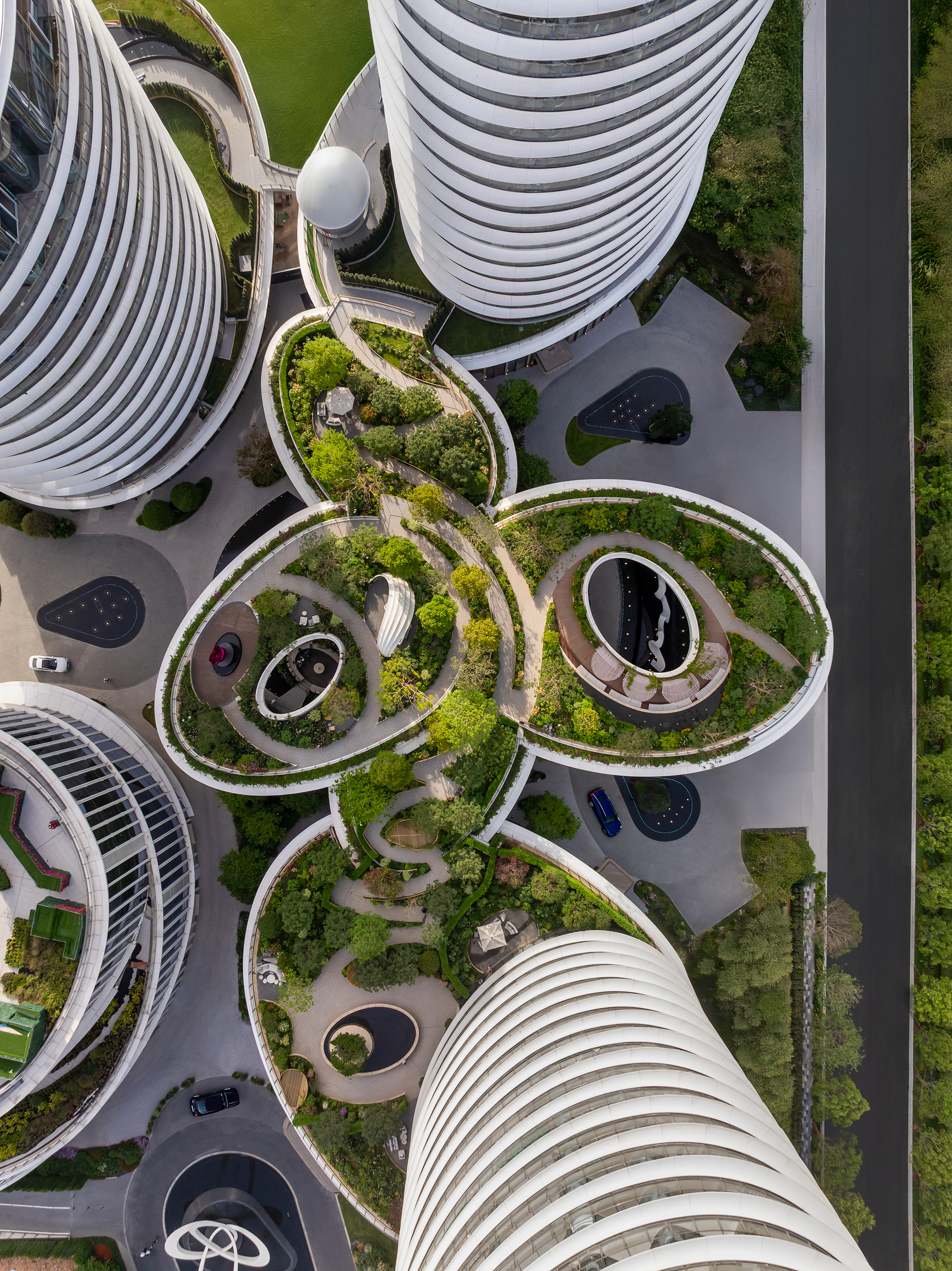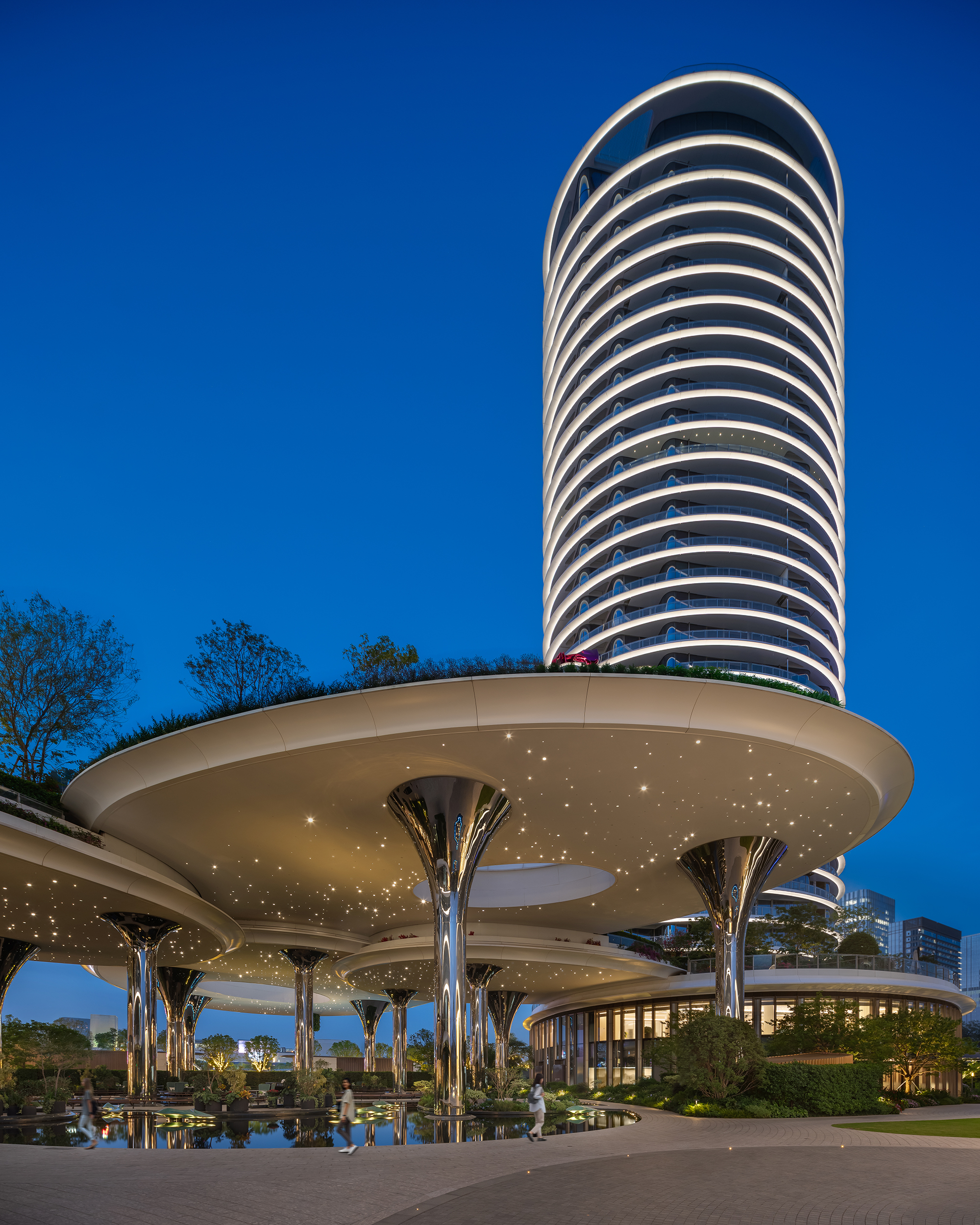 最高塔楼顶部设多层休闲空间,提供一流的休闲与酒店服务。地面层的文化之家作为娱乐中心,配备音乐厅、酒吧和餐厅,每层楼均有环绕式阳台,尽享滨江美景。