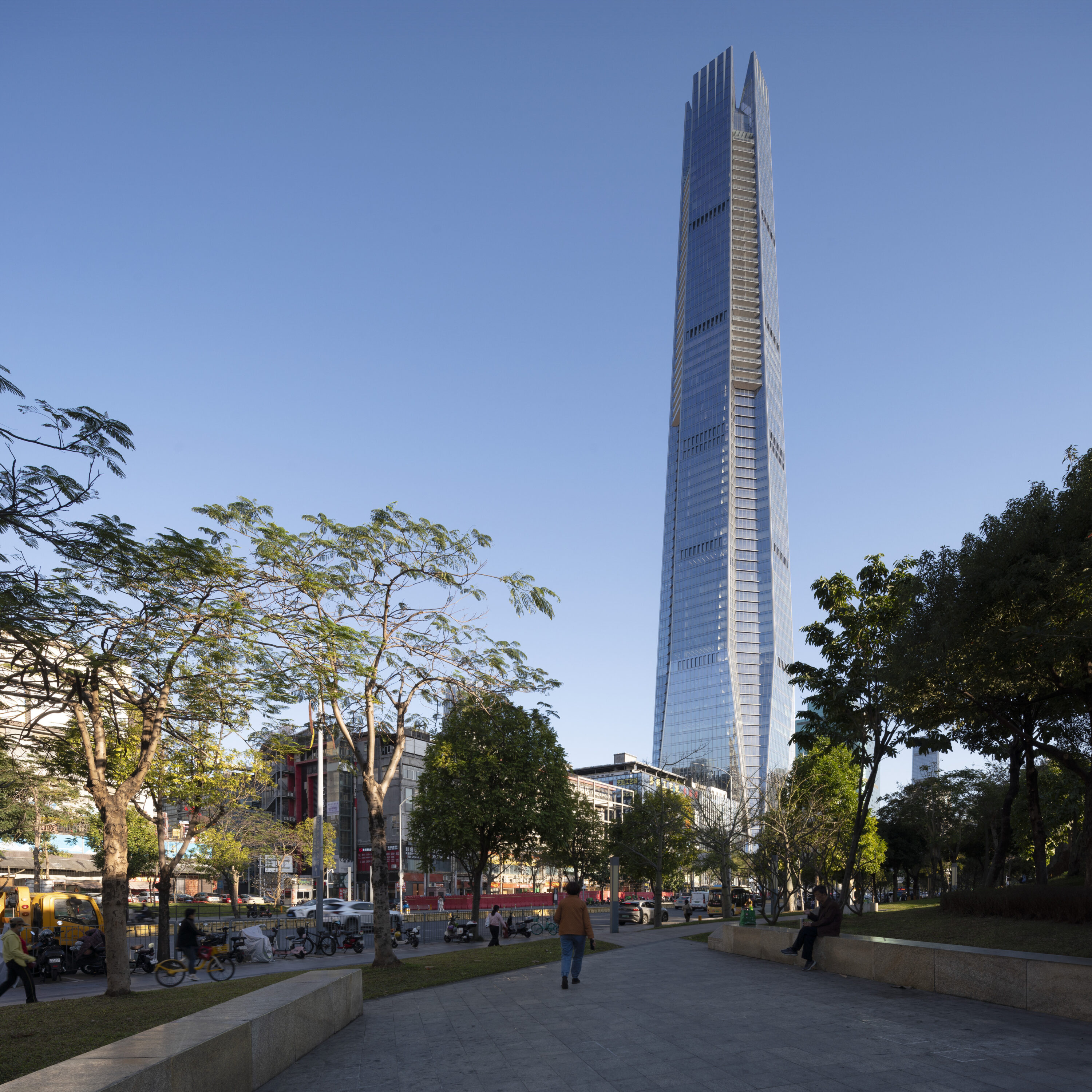 项目位于红岭新兴金融产业带,开发范围横跨五个街区。塔楼高388 米,是深圳东北片区的最高建筑之一。建筑拥有 7 层地下和 70 层地上空间,规模之大远非 18 万平米的总建筑面积所能衡量。它重塑了城市天际线,是创新与发展的象征。
