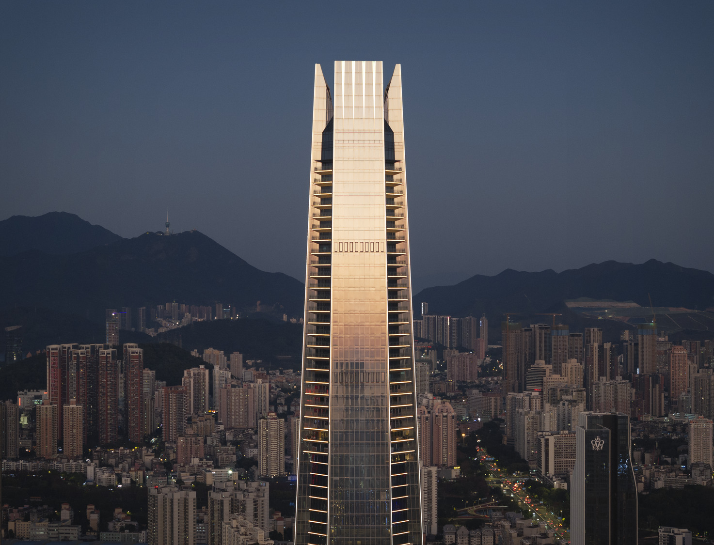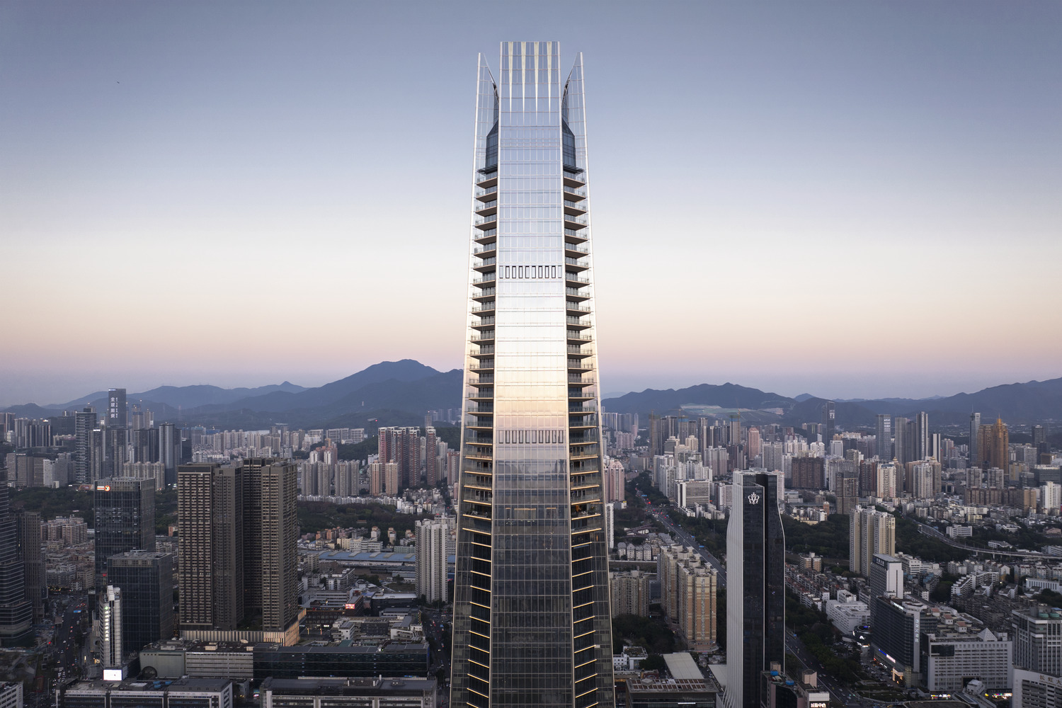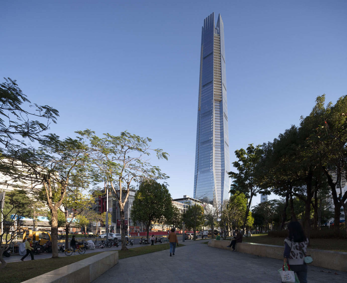 项目位于红岭新兴金融产业带,开发范围横跨五个街区。塔楼高388 米,是深圳东北片区的最高建筑之一。建筑拥有 7 层地下和 70 层地上空间,规模之大远非 18 万平米的总建筑面积所能衡量。它重塑了城市天际线,是创新与发展的象征。