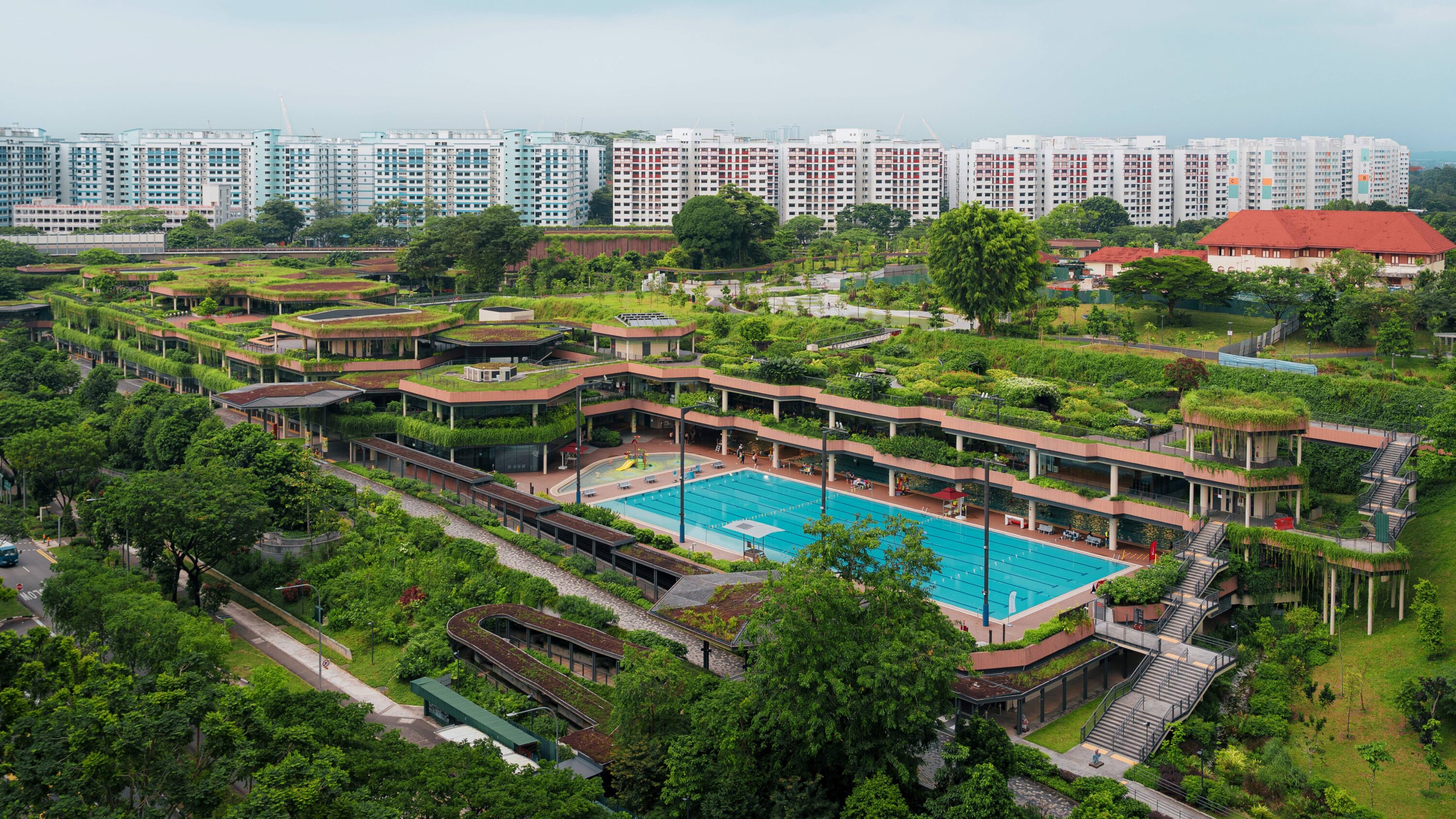 武吉坎贝拉是一个位于三巴旺、占地12公顷的综合型社区、体育与生活休闲枢纽,坐落于郁郁葱葱的森林丘陵之上,其最高点是一座国家纪念碑。该项目旨在服务约10万名居民,融合了多样的体育与社区活动,同时保留了场地原有的起伏地形与丰富的森林特色。 武吉坎贝拉遵循再生设计理念,将自然环境视为平等的利益相关方,强调社会与生态系统之间的和谐共生。这一设计方法保障了项目的长期韧性、可持续性与全面发展。