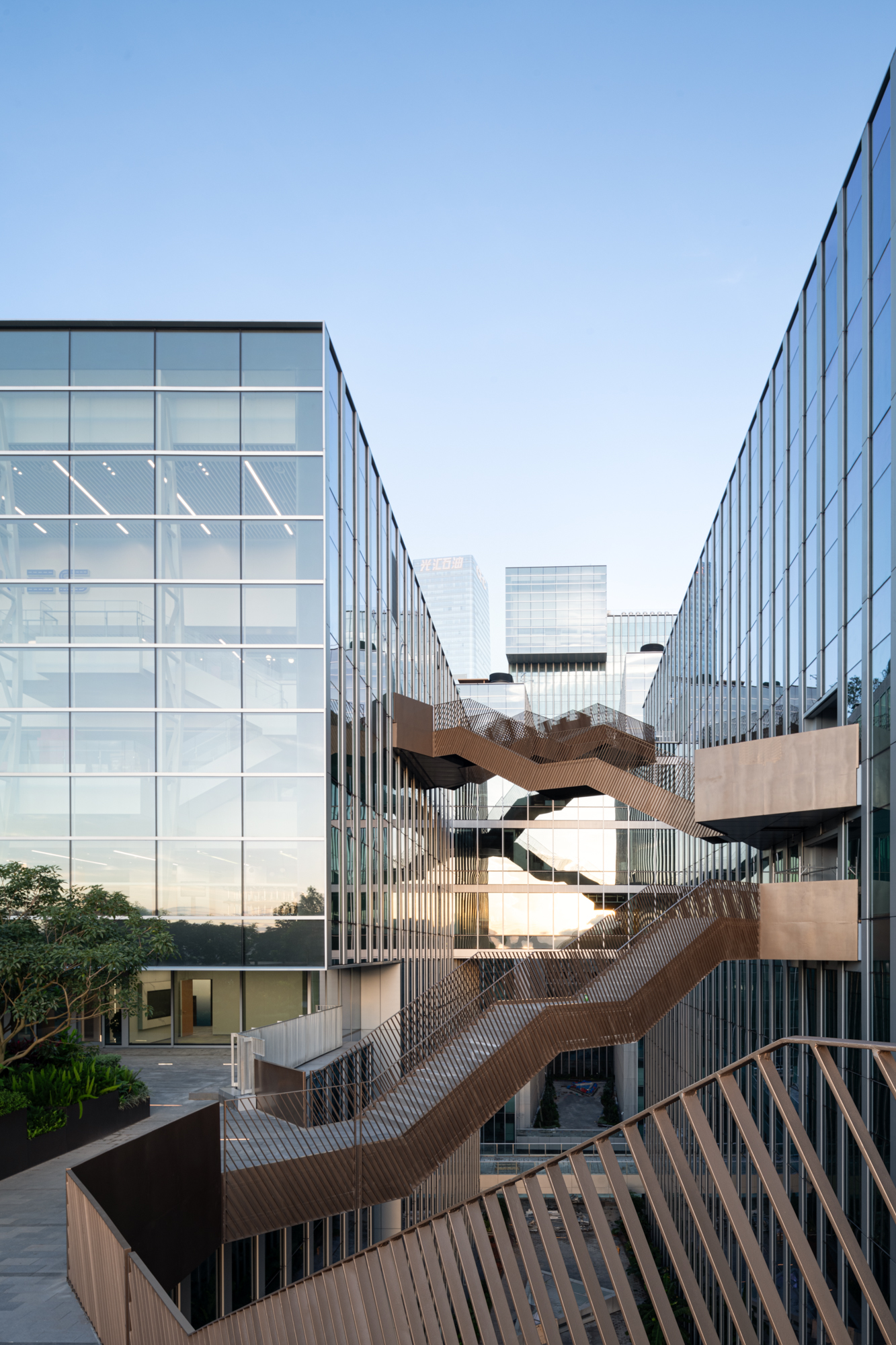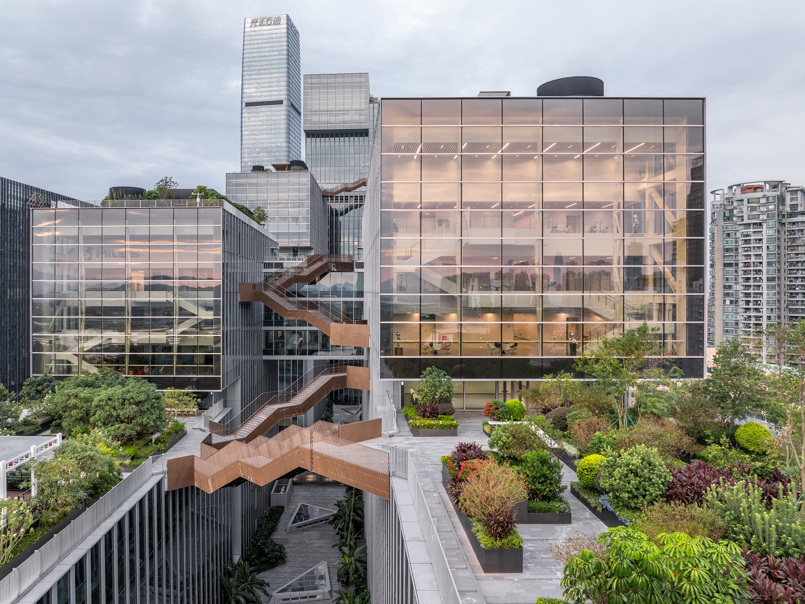 河套科创中心总占地约2.6万平方米,总建筑面积约21万平方米,以构建综合性国家科学中心为目标导向,致力营造集顶级“科技研发、实验室、配套服务、交流融合”功能于一体的高端科研综合体。河套科创中心,秉承“以用为本”的设计理念,创新布局“阶梯式独栋实验室”,实现了实验室的灵活独立运营,并形成了不同高度跌落式的屋顶公共空间,打造一座屋顶上的科学家乐园。