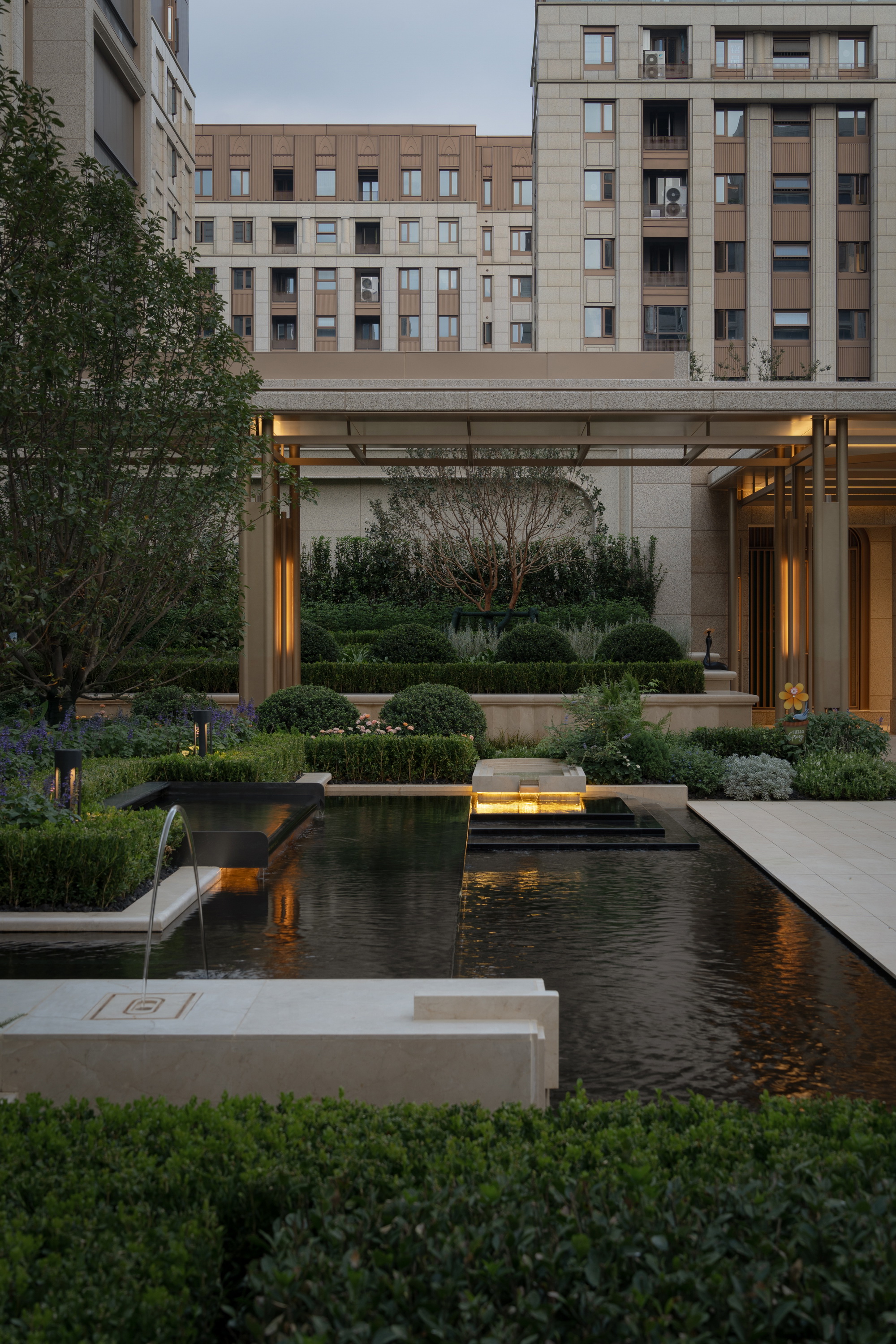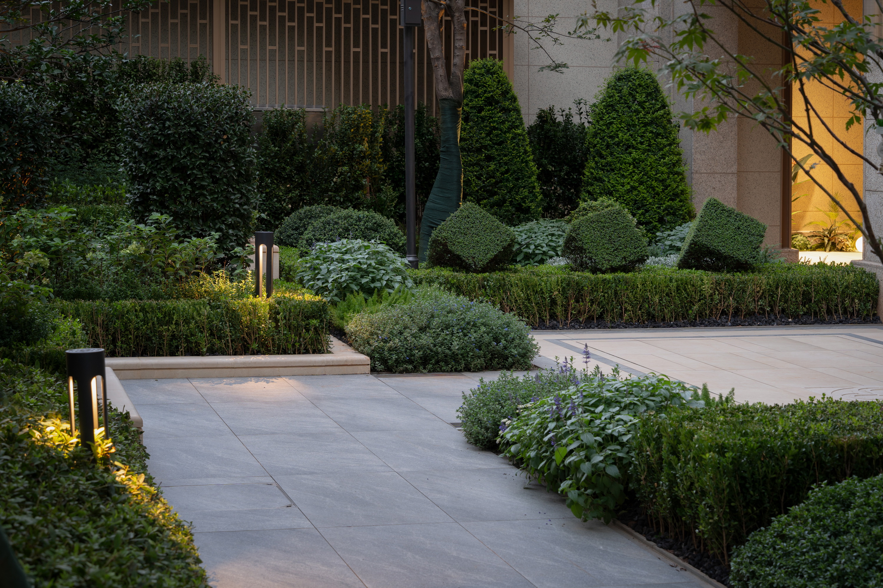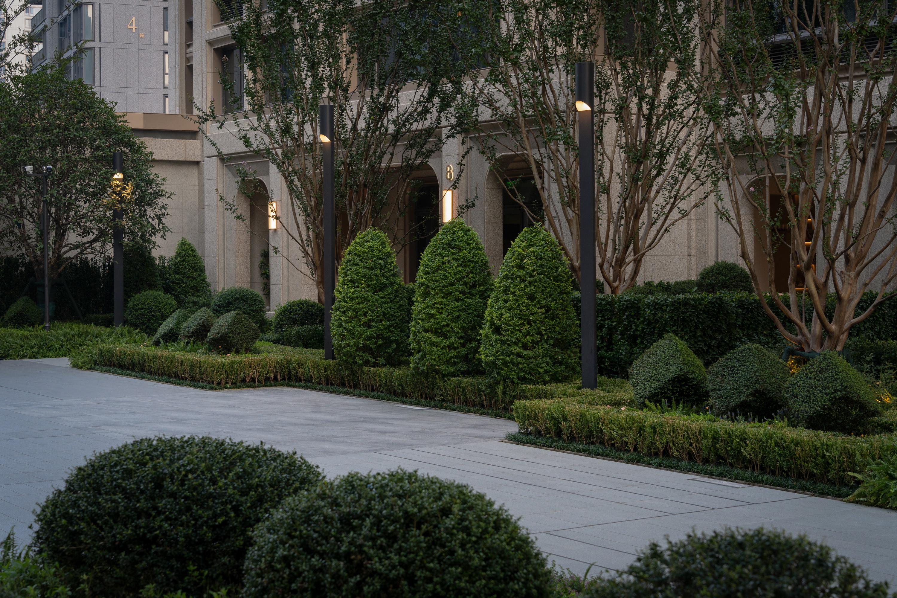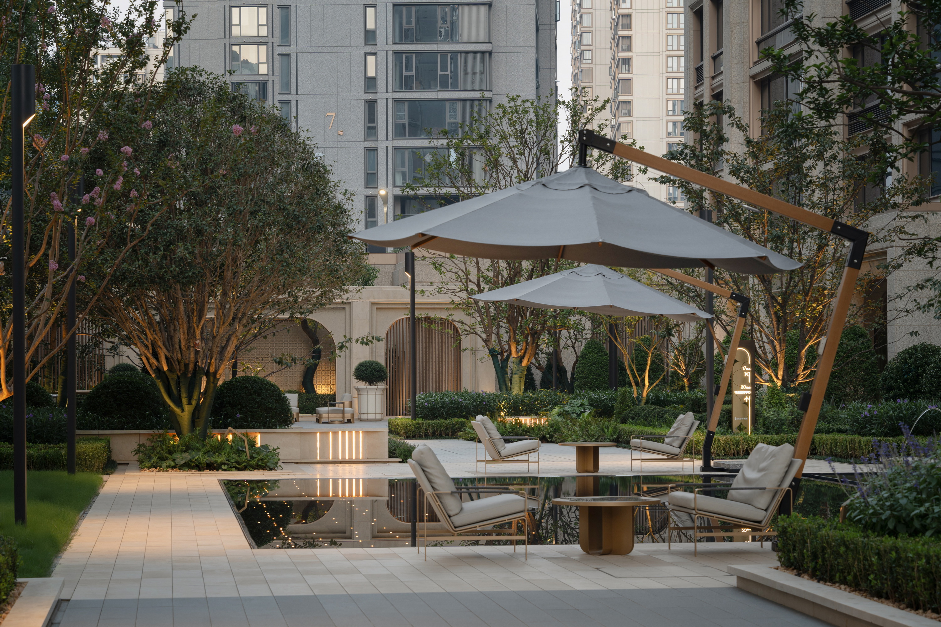 如何于城市腹地打造具有传承价值的居所? 或许优雅永不过时的气质基调是对于时间检验维度的最好回应。在严苛消防条件限制下,园林顺应建筑都会经典的当代审美;谋求建筑与园林,经典与当代的一体化交融。在密集型社区地块中,园林或许更适合扮演场所协调者的身份,比起新奇、吸睛的新鲜感,园林与建筑的一致性平衡,经典与当代的凝炼交融,优雅时尚的场域气质是我们所更为关注的营造内核。