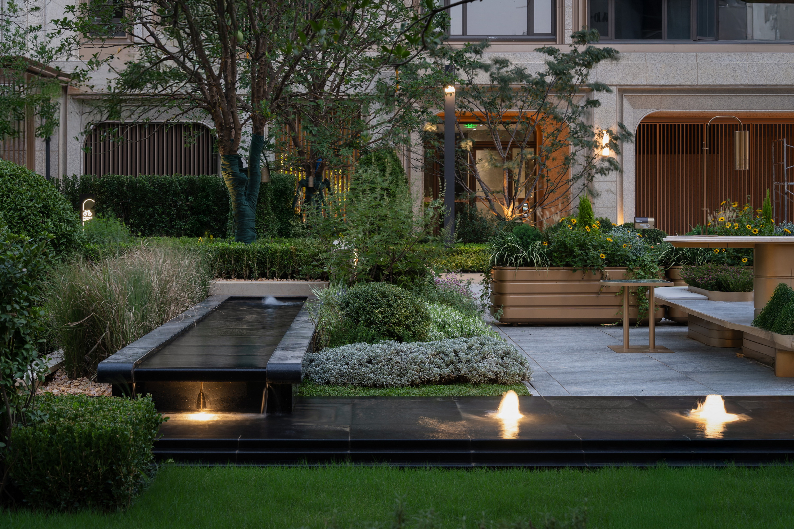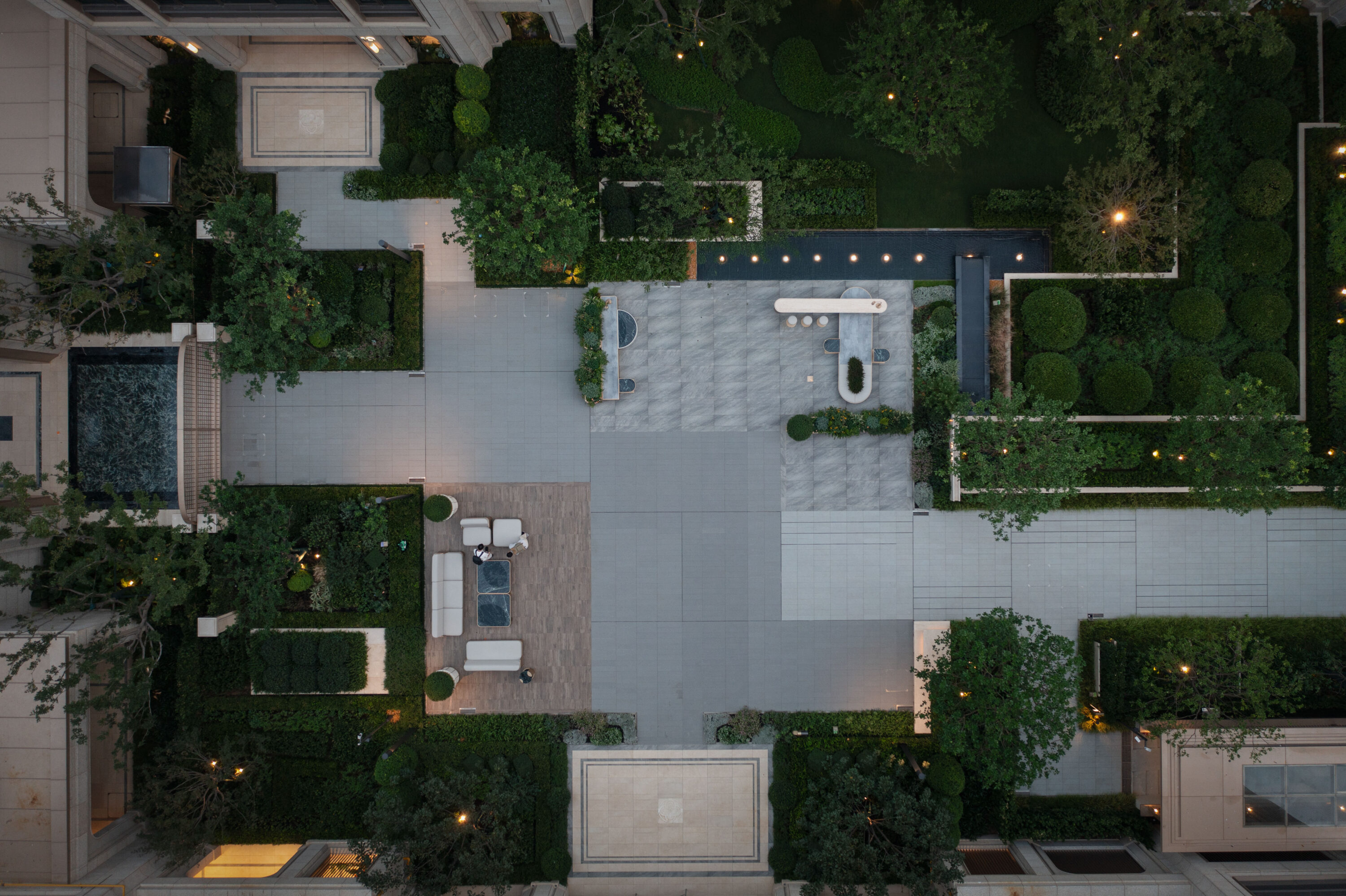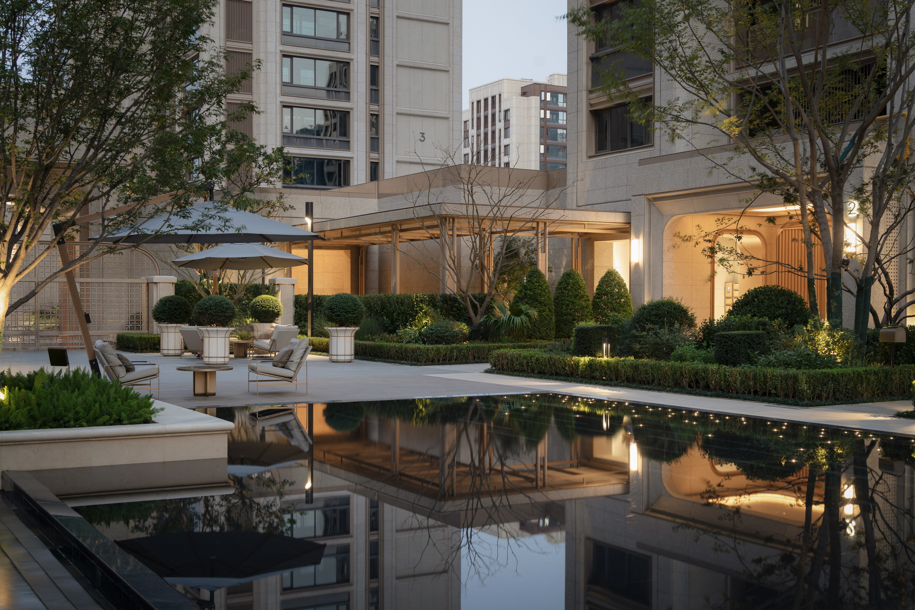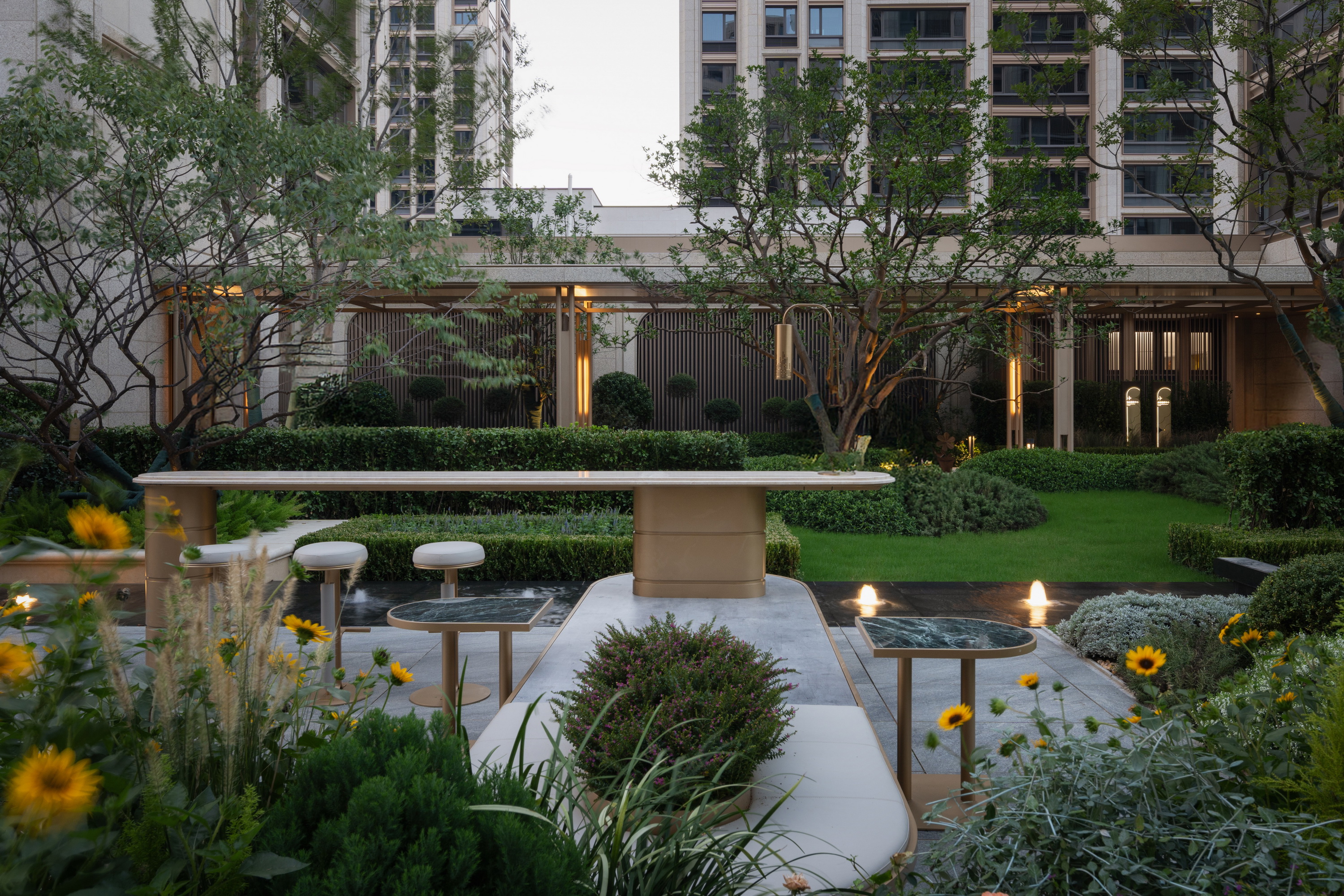 如何于城市腹地打造具有传承价值的居所? 或许优雅永不过时的气质基调是对于时间检验维度的最好回应。在严苛消防条件限制下,园林顺应建筑都会经典的当代审美;谋求建筑与园林,经典与当代的一体化交融。在密集型社区地块中,园林或许更适合扮演场所协调者的身份,比起新奇、吸睛的新鲜感,园林与建筑的一致性平衡,经典与当代的凝炼交融,优雅时尚的场域气质是我们所更为关注的营造内核。