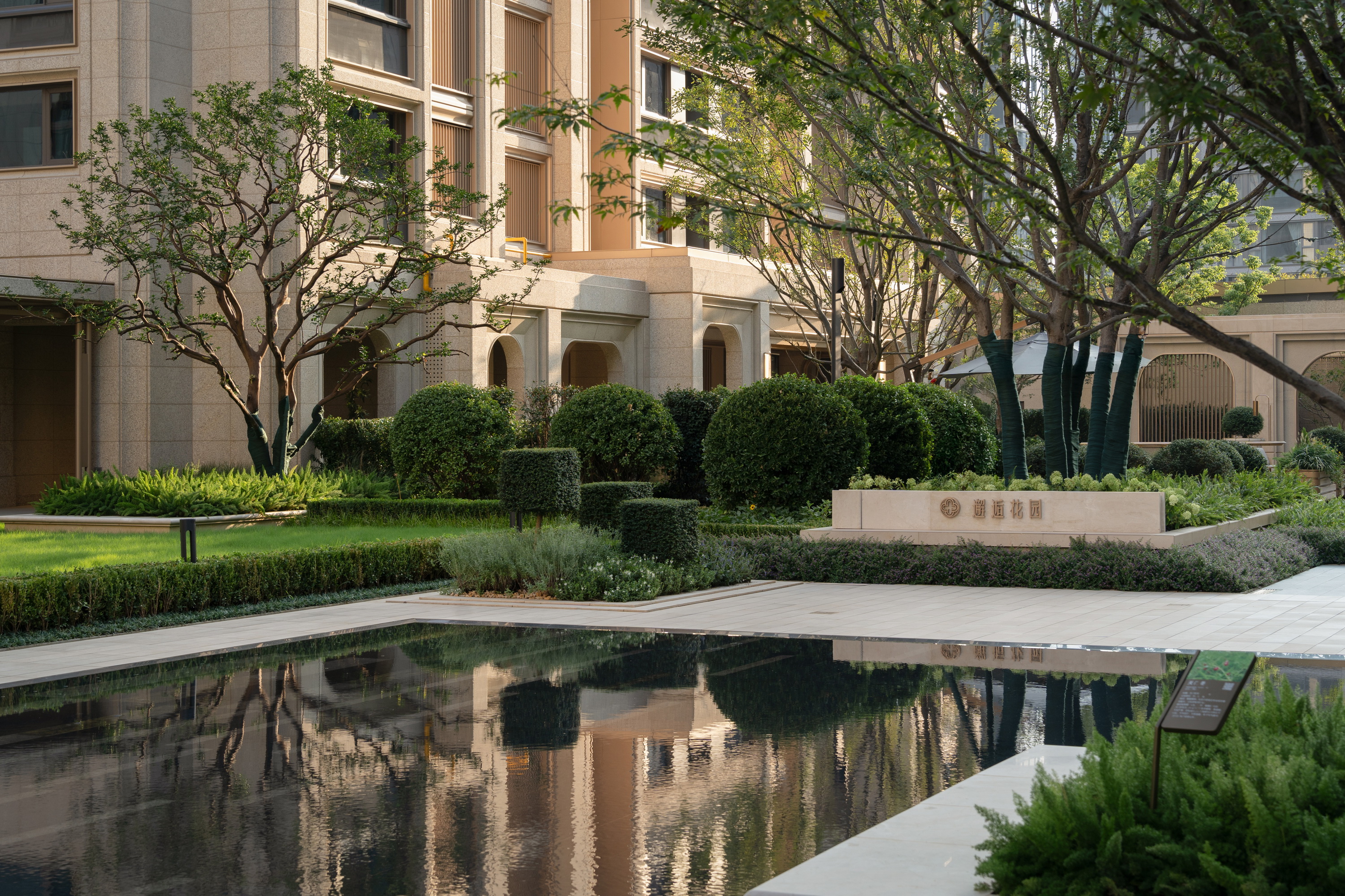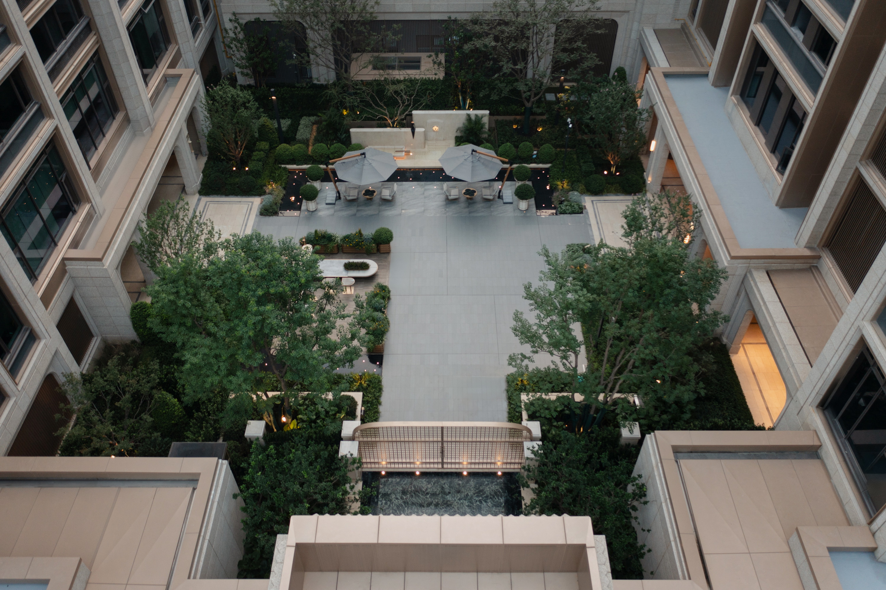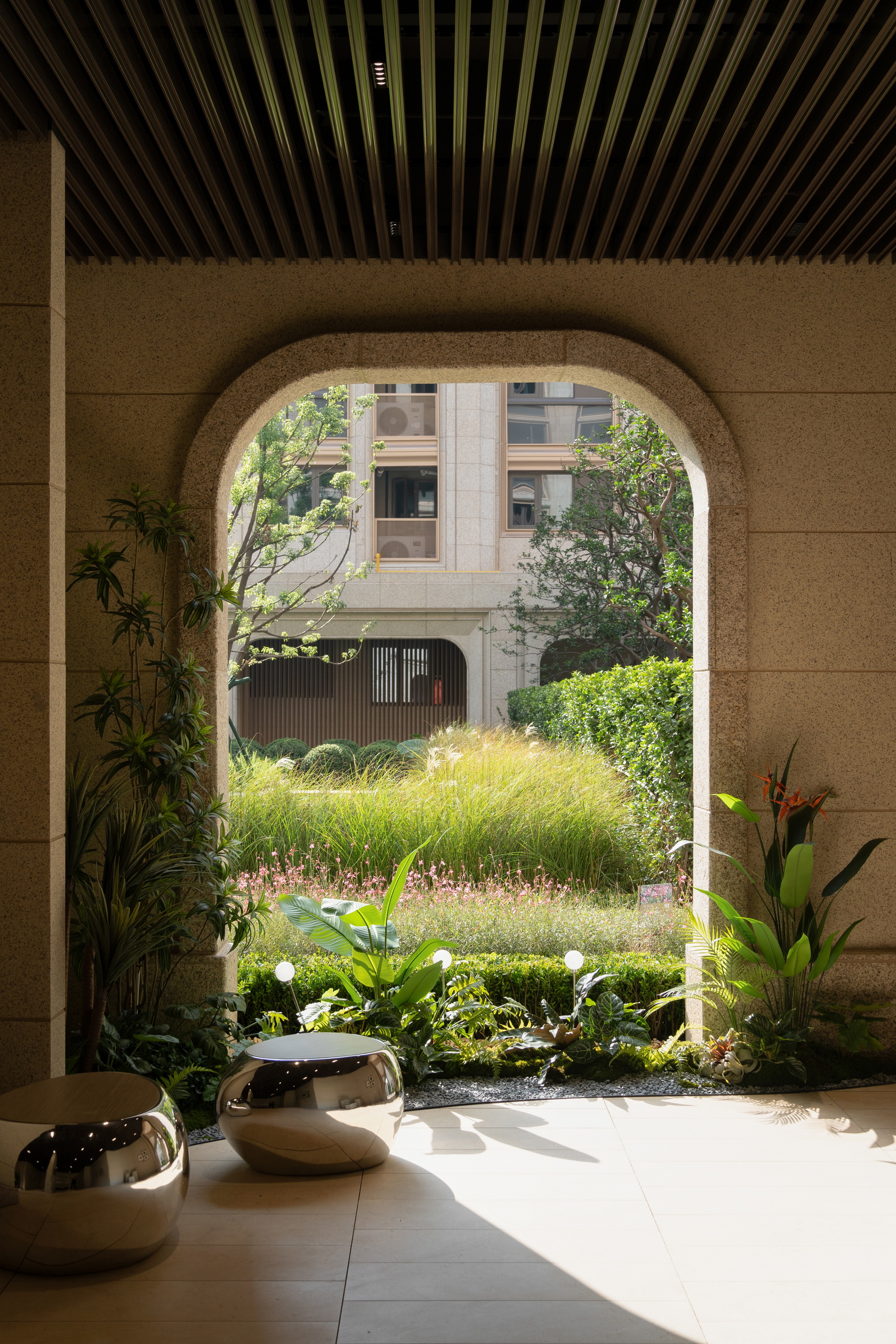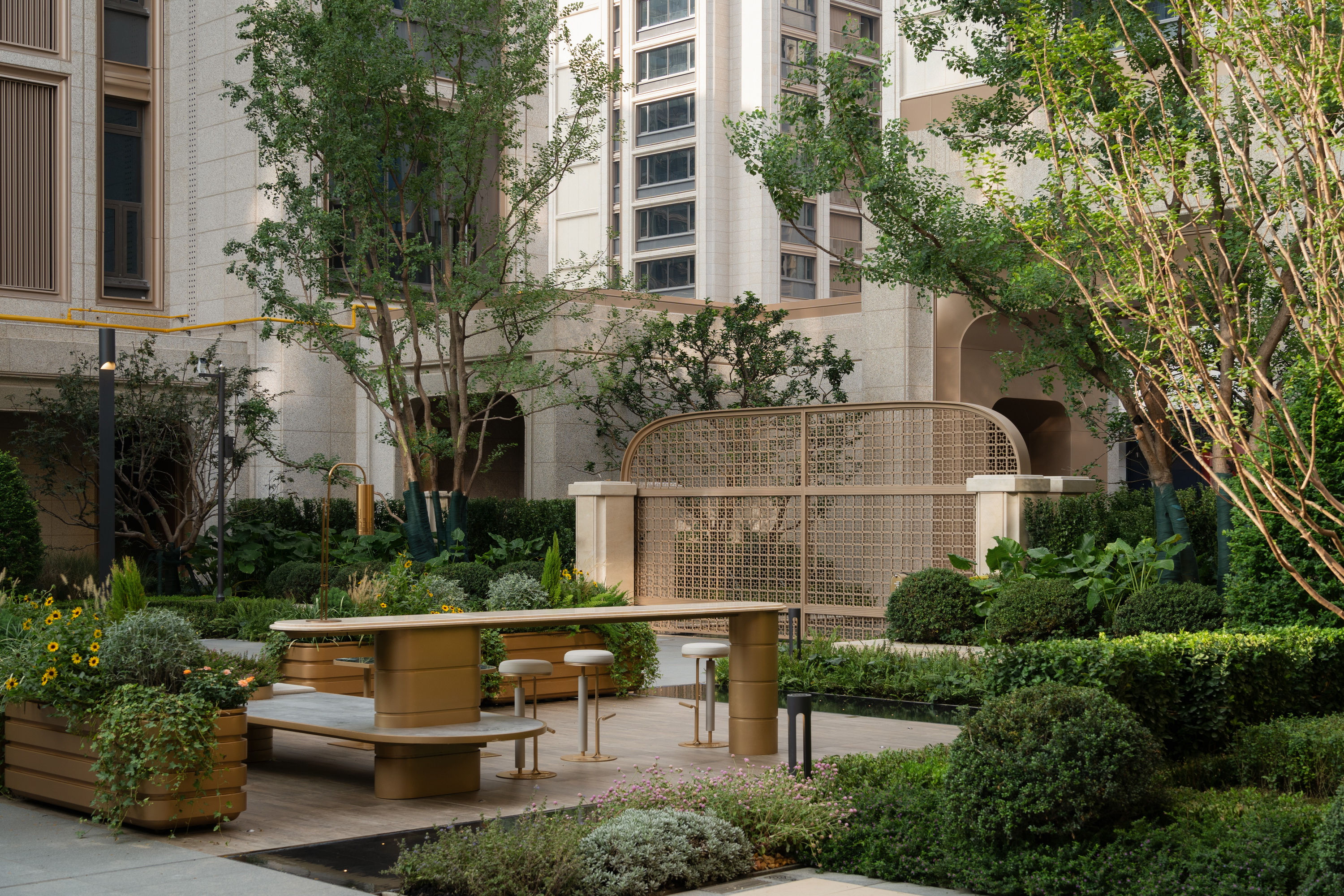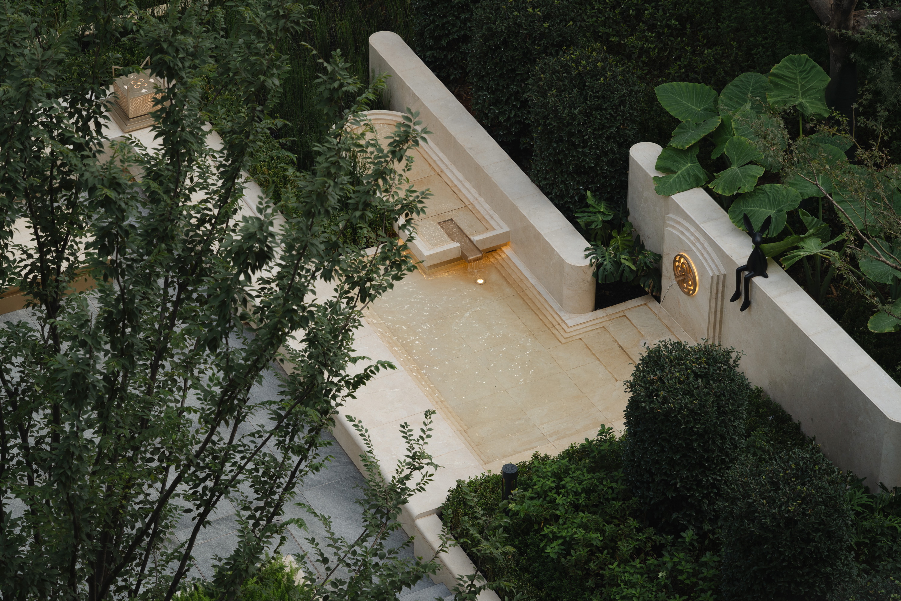 如何于城市腹地打造具有传承价值的居所? 或许优雅永不过时的气质基调是对于时间检验维度的最好回应。在严苛消防条件限制下,园林顺应建筑都会经典的当代审美;谋求建筑与园林,经典与当代的一体化交融。在密集型社区地块中,园林或许更适合扮演场所协调者的身份,比起新奇、吸睛的新鲜感,园林与建筑的一致性平衡,经典与当代的凝炼交融,优雅时尚的场域气质是我们所更为关注的营造内核。