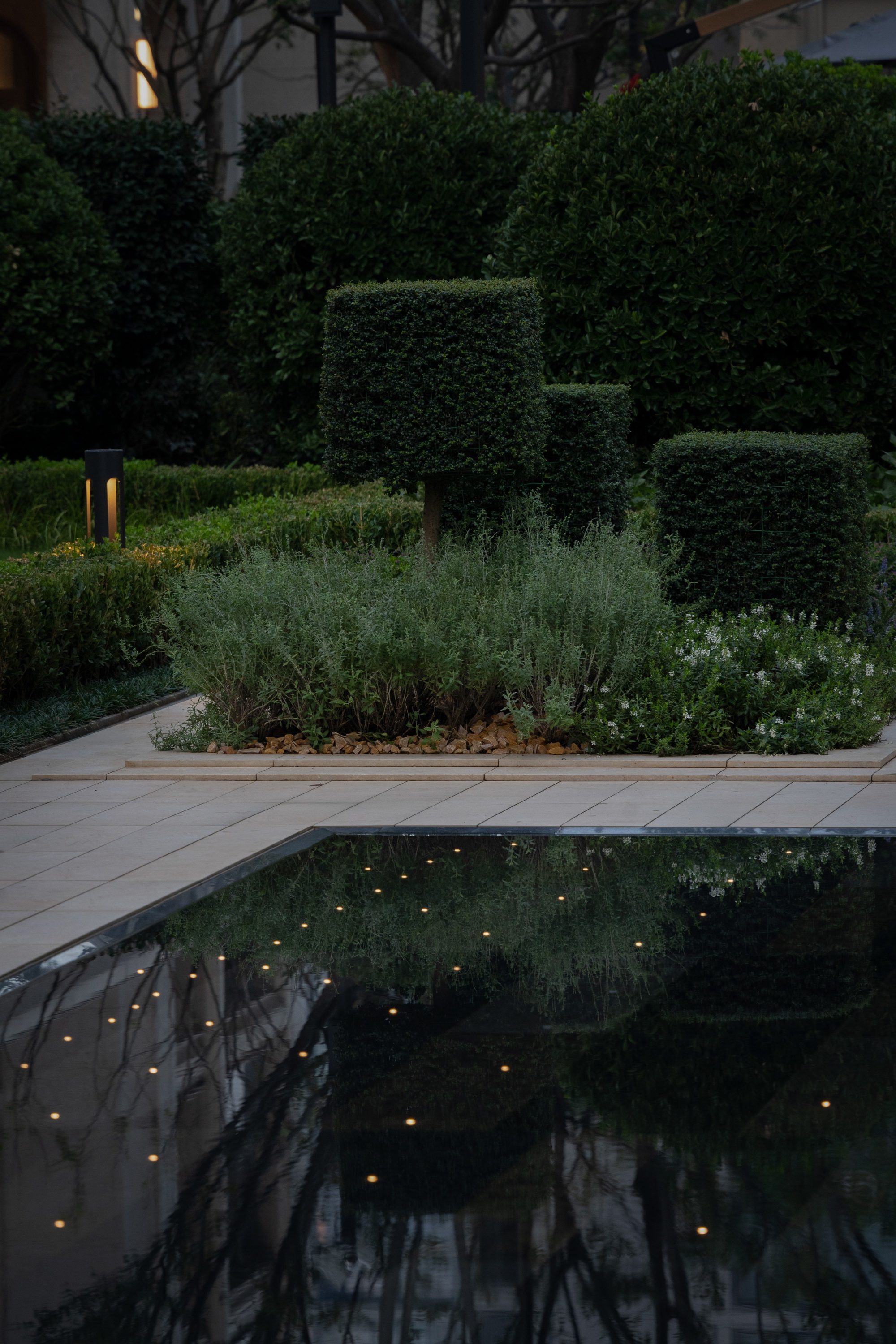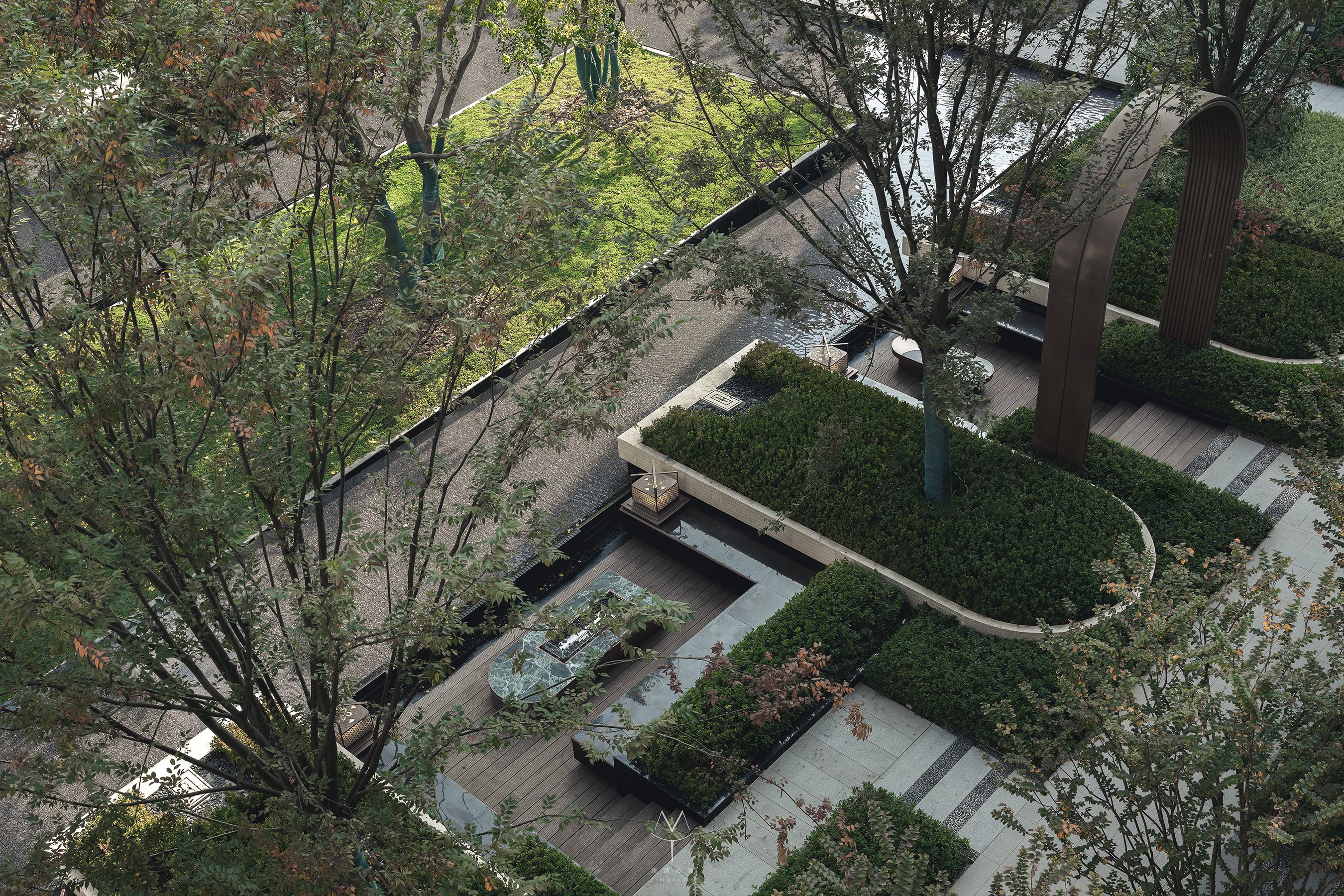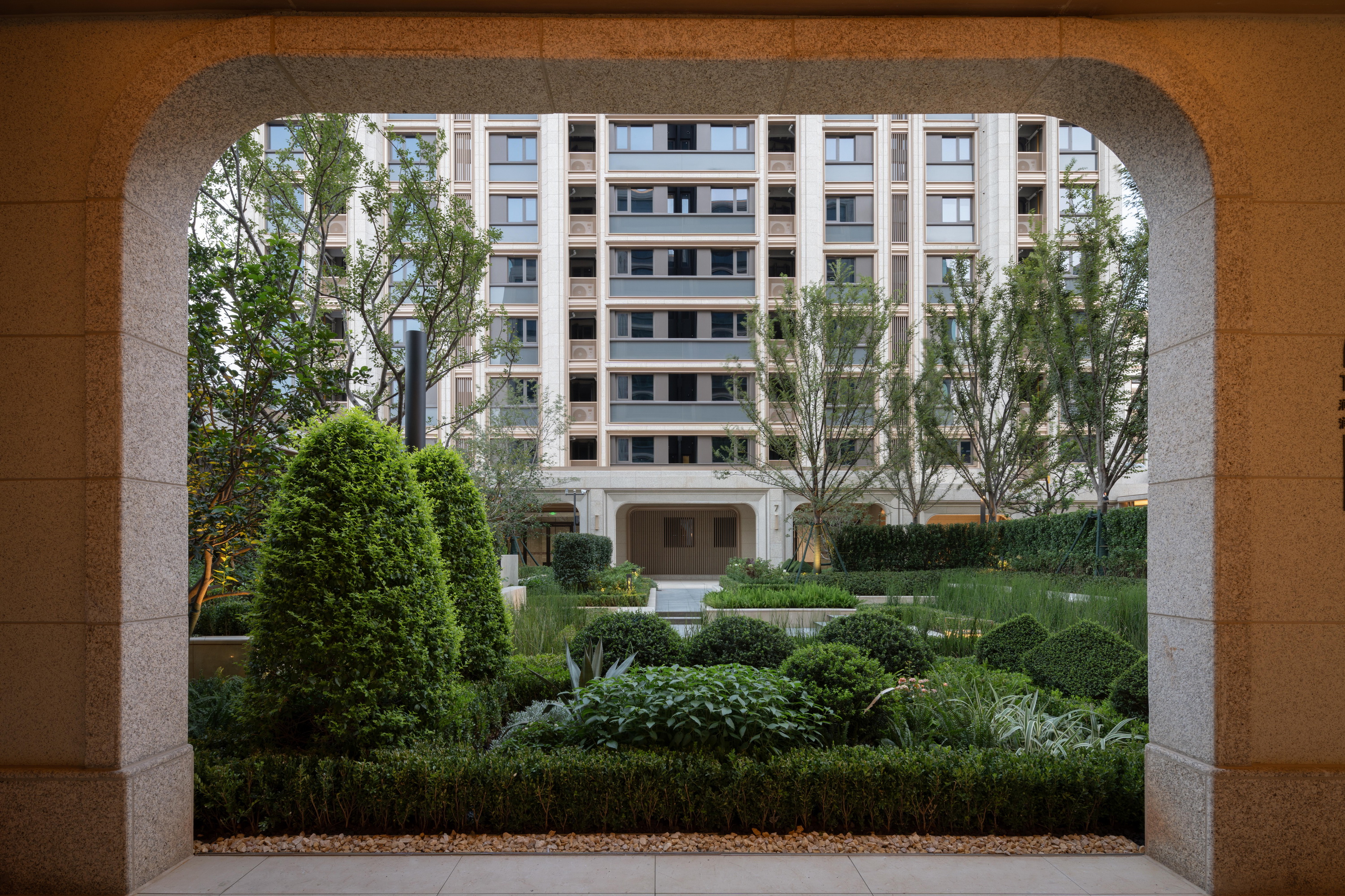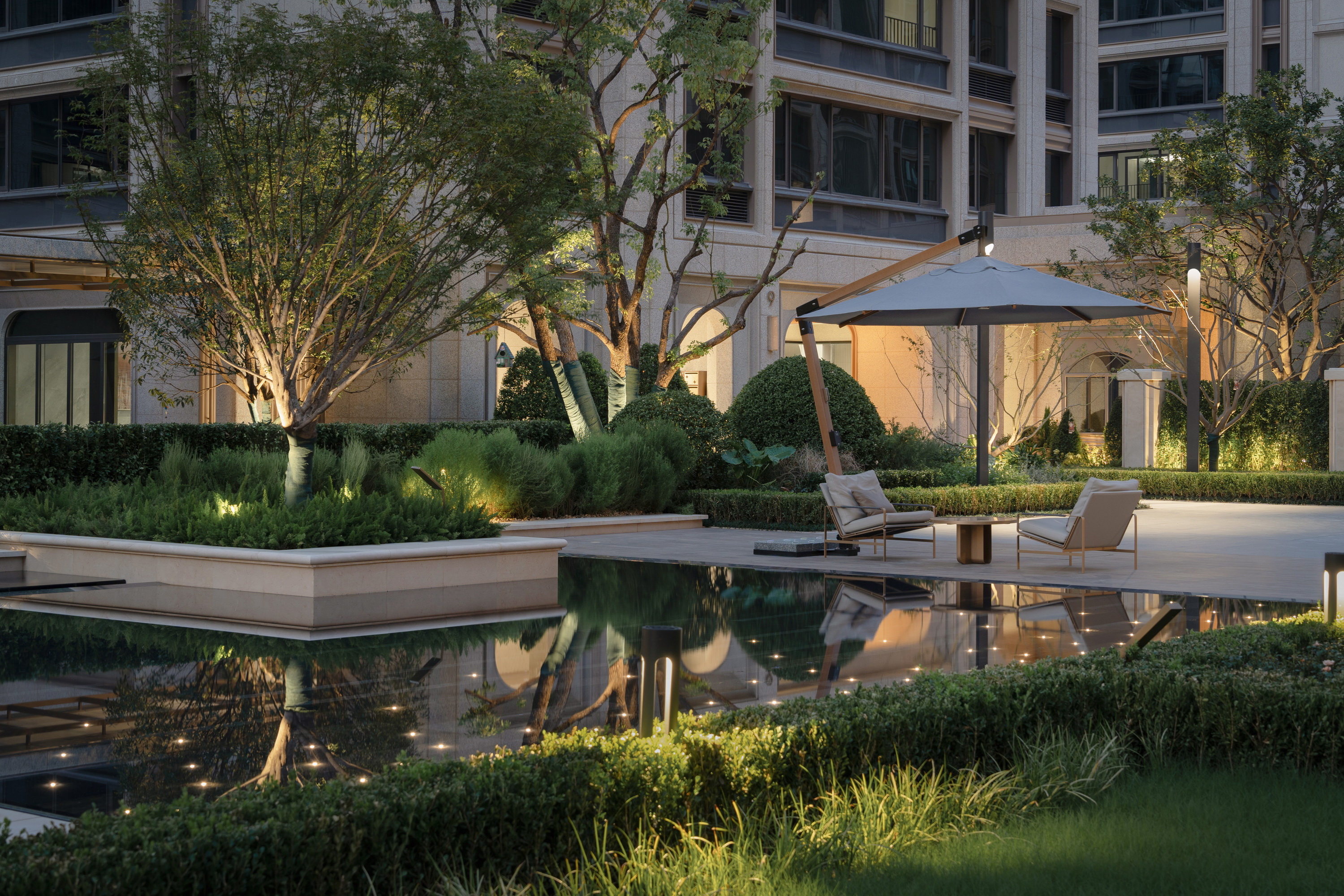 如何于城市腹地打造具有传承价值的居所? 或许优雅永不过时的气质基调是对于时间检验维度的最好回应。在严苛消防条件限制下,园林顺应建筑都会经典的当代审美;谋求建筑与园林,经典与当代的一体化交融。在密集型社区地块中,园林或许更适合扮演场所协调者的身份,比起新奇、吸睛的新鲜感,园林与建筑的一致性平衡,经典与当代的凝炼交融,优雅时尚的场域气质是我们所更为关注的营造内核。
