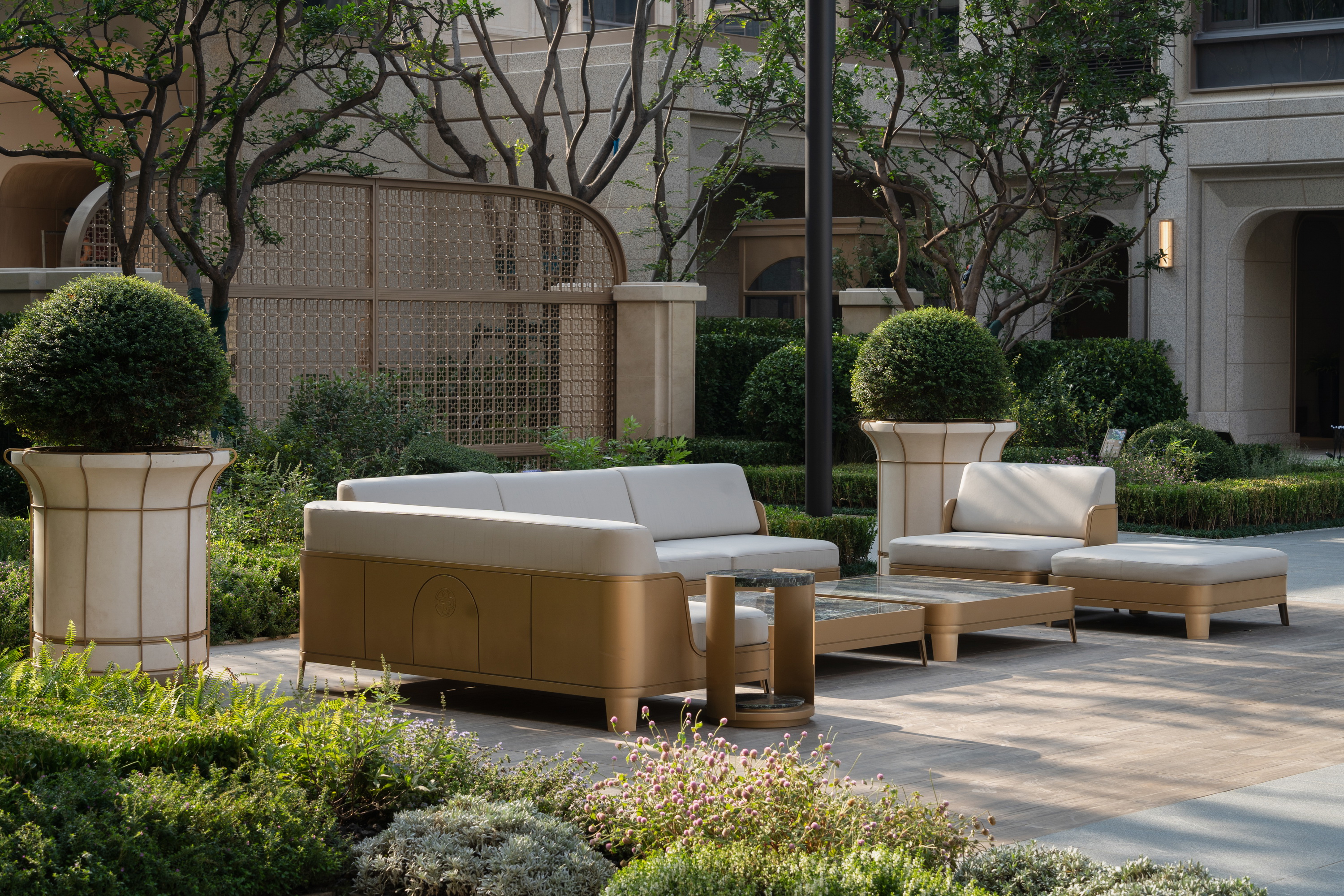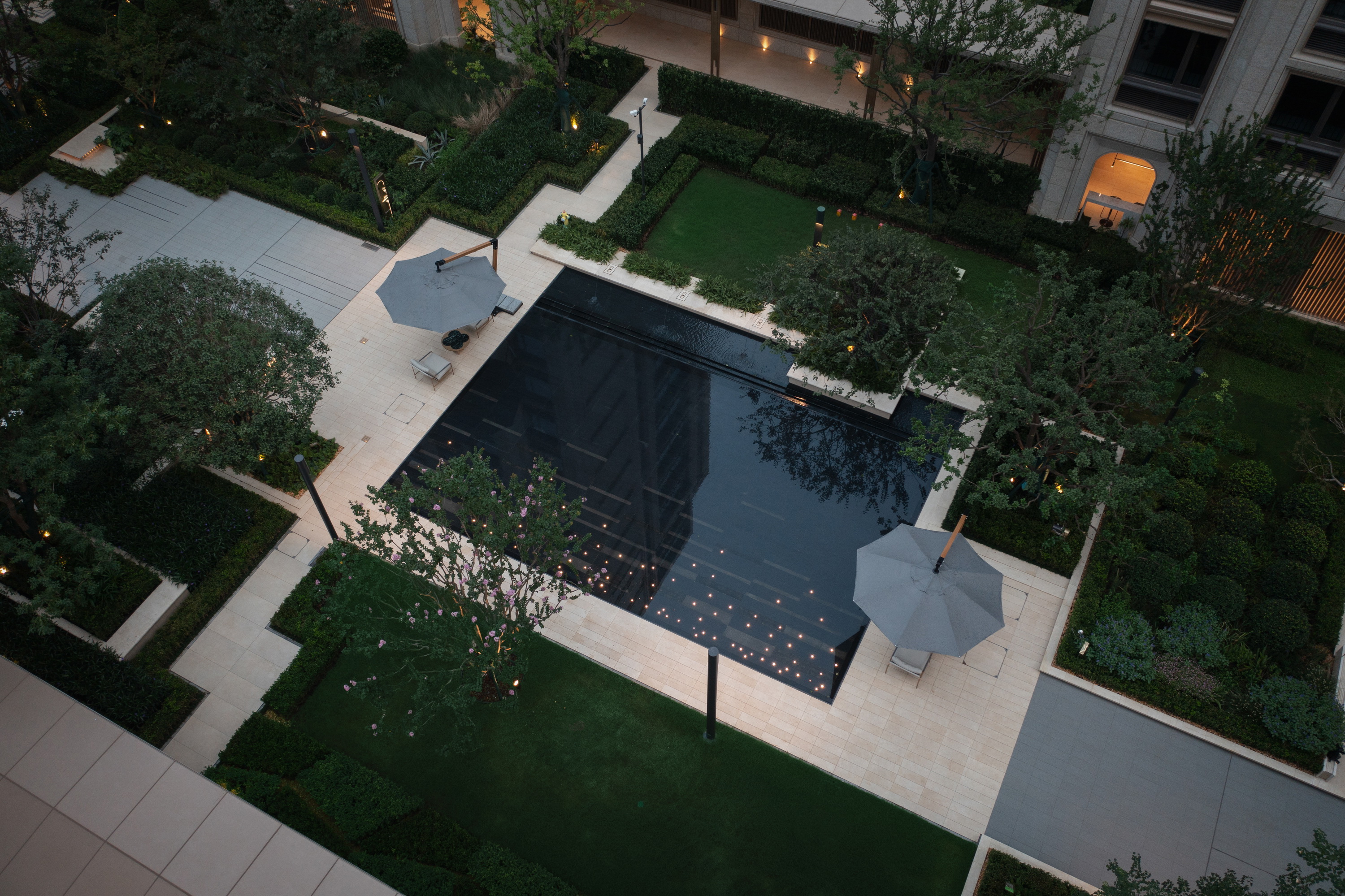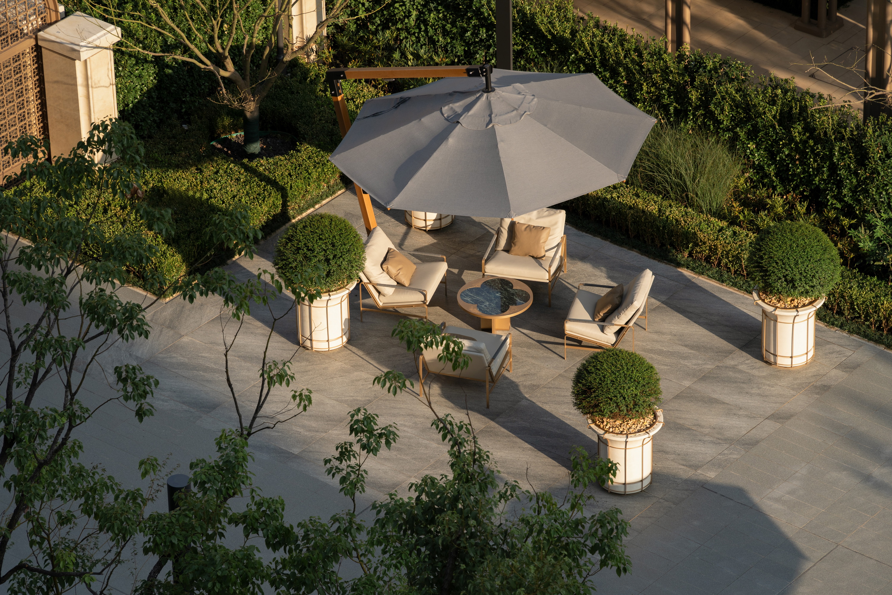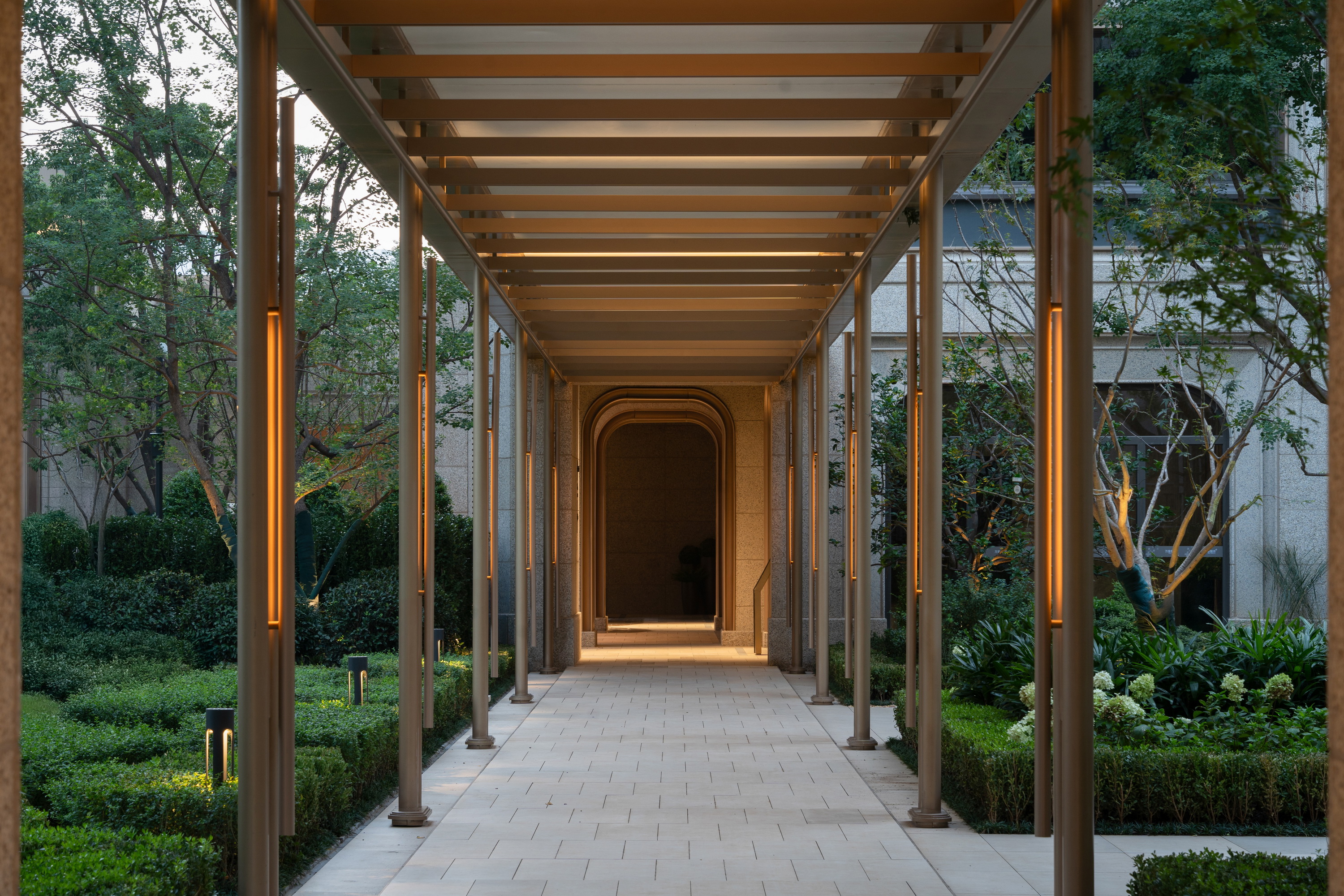 如何于城市腹地打造具有传承价值的居所? 或许优雅永不过时的气质基调是对于时间检验维度的最好回应。在严苛消防条件限制下,园林顺应建筑都会经典的当代审美;谋求建筑与园林,经典与当代的一体化交融。在密集型社区地块中,园林或许更适合扮演场所协调者的身份,比起新奇、吸睛的新鲜感,园林与建筑的一致性平衡,经典与当代的凝炼交融,优雅时尚的场域气质是我们所更为关注的营造内核。