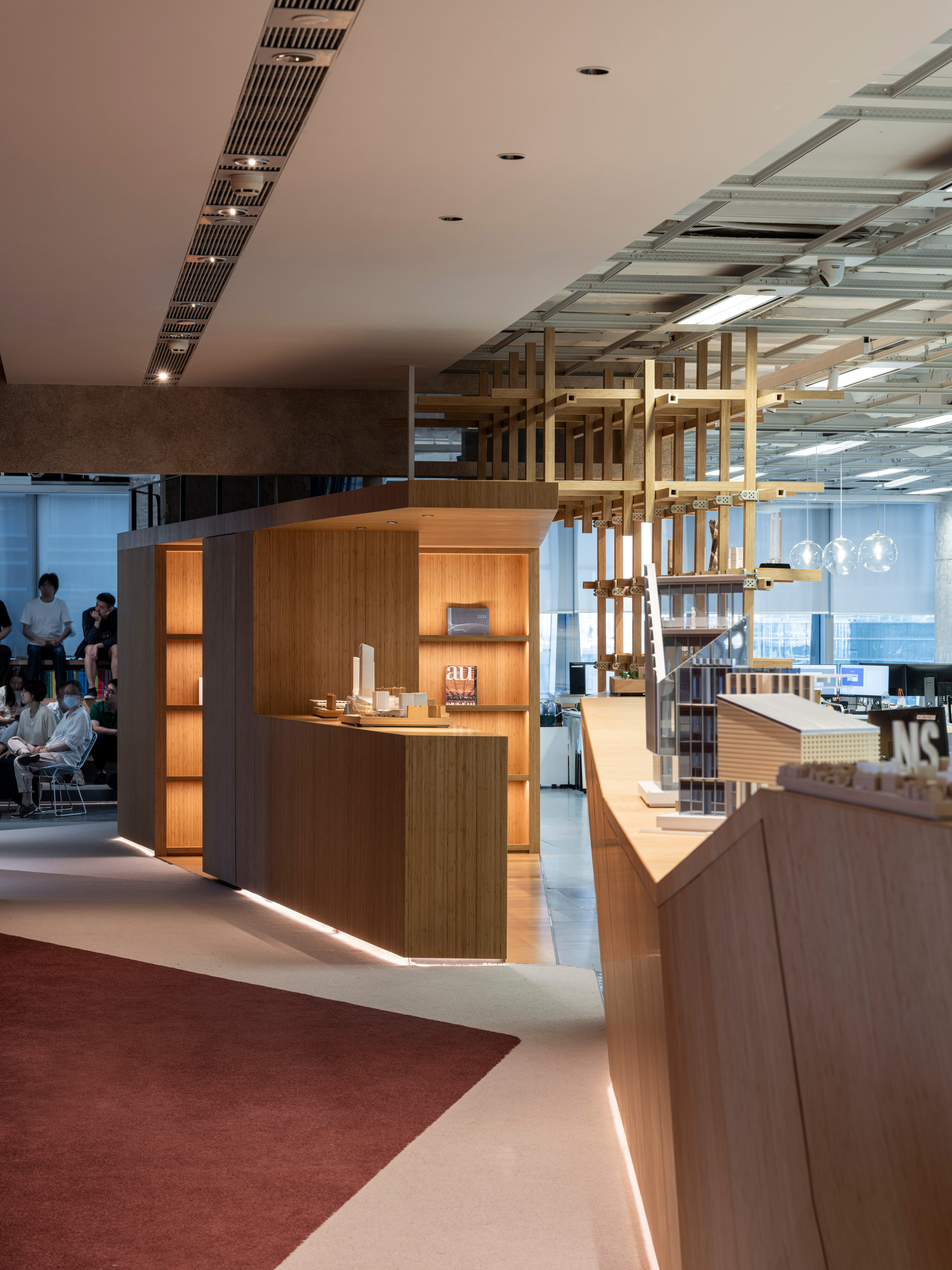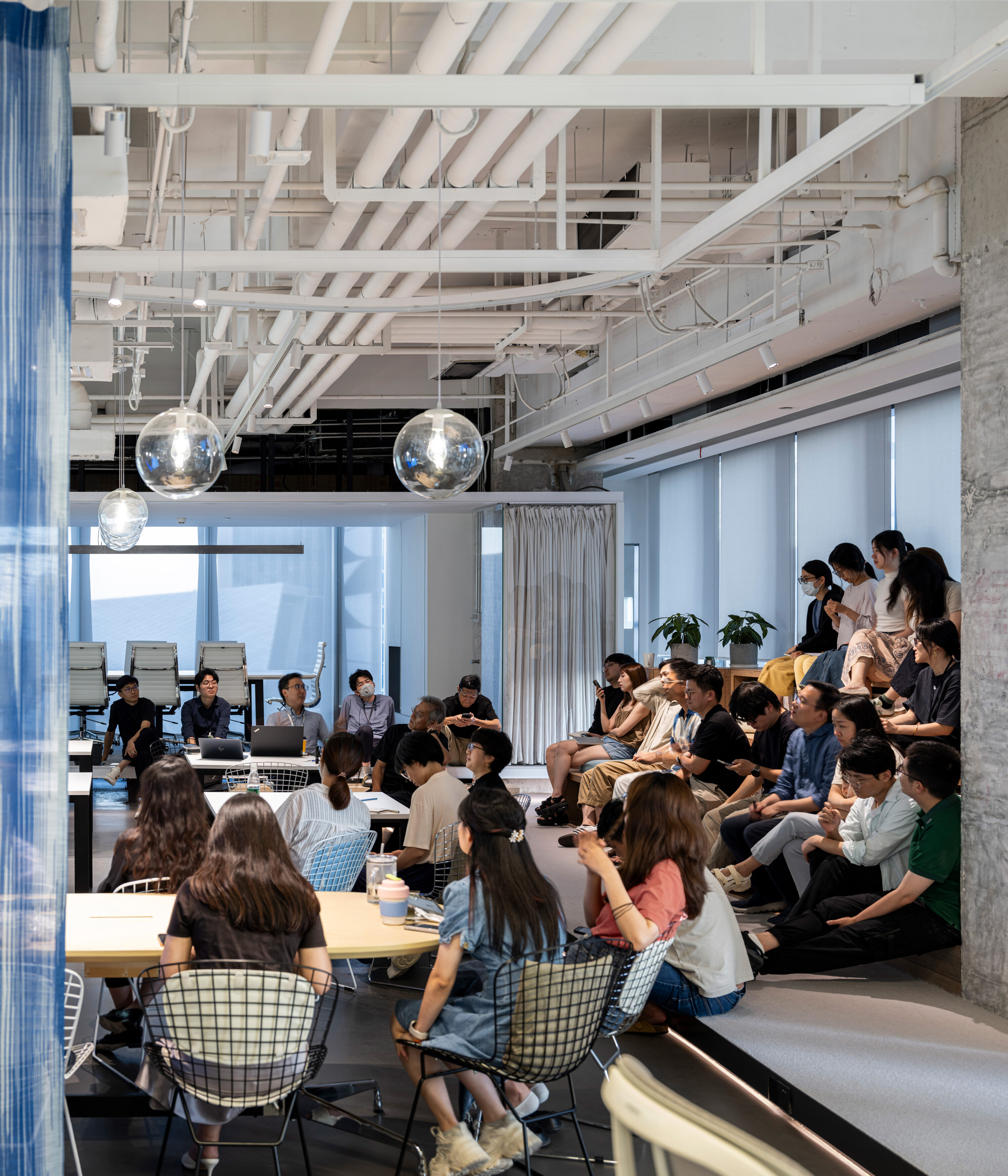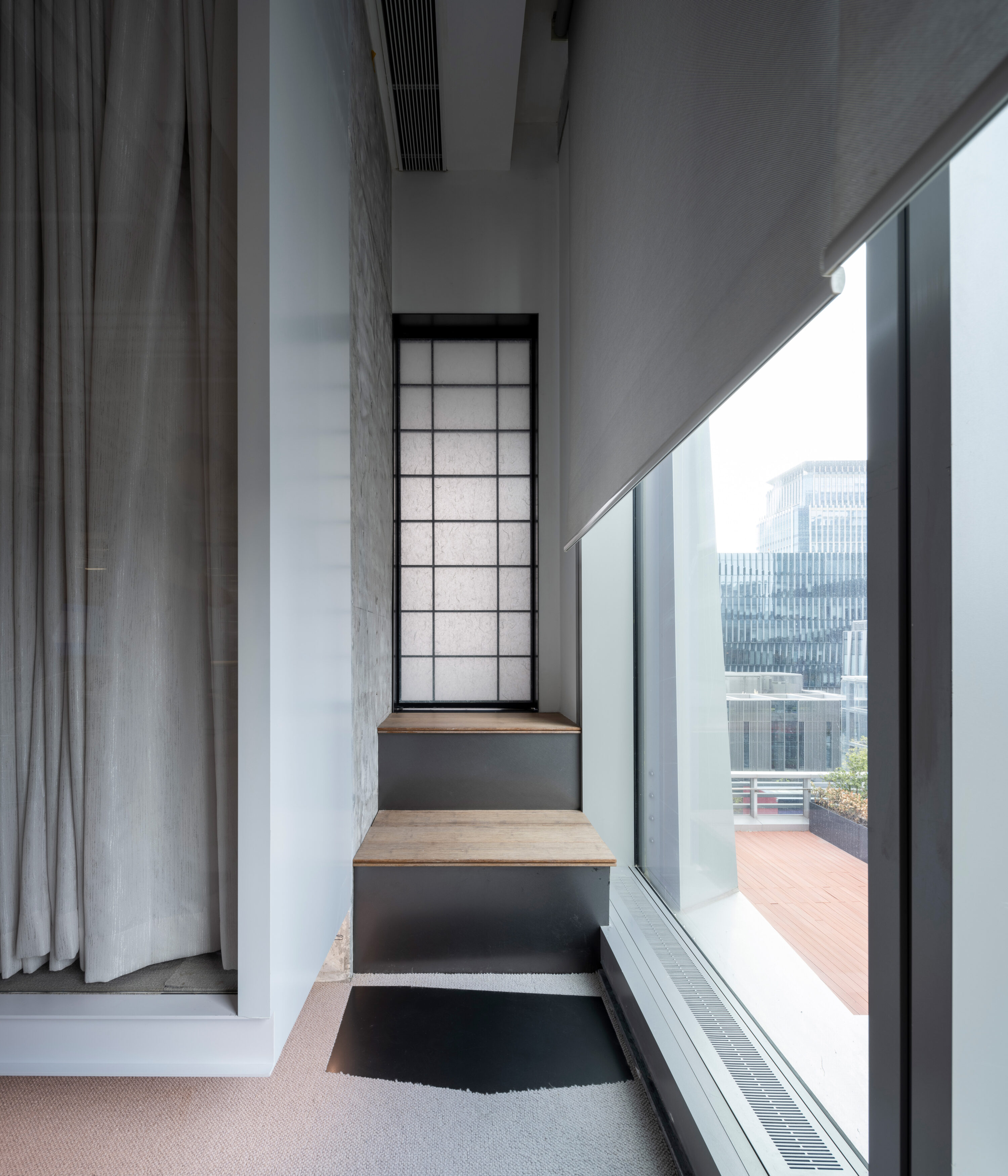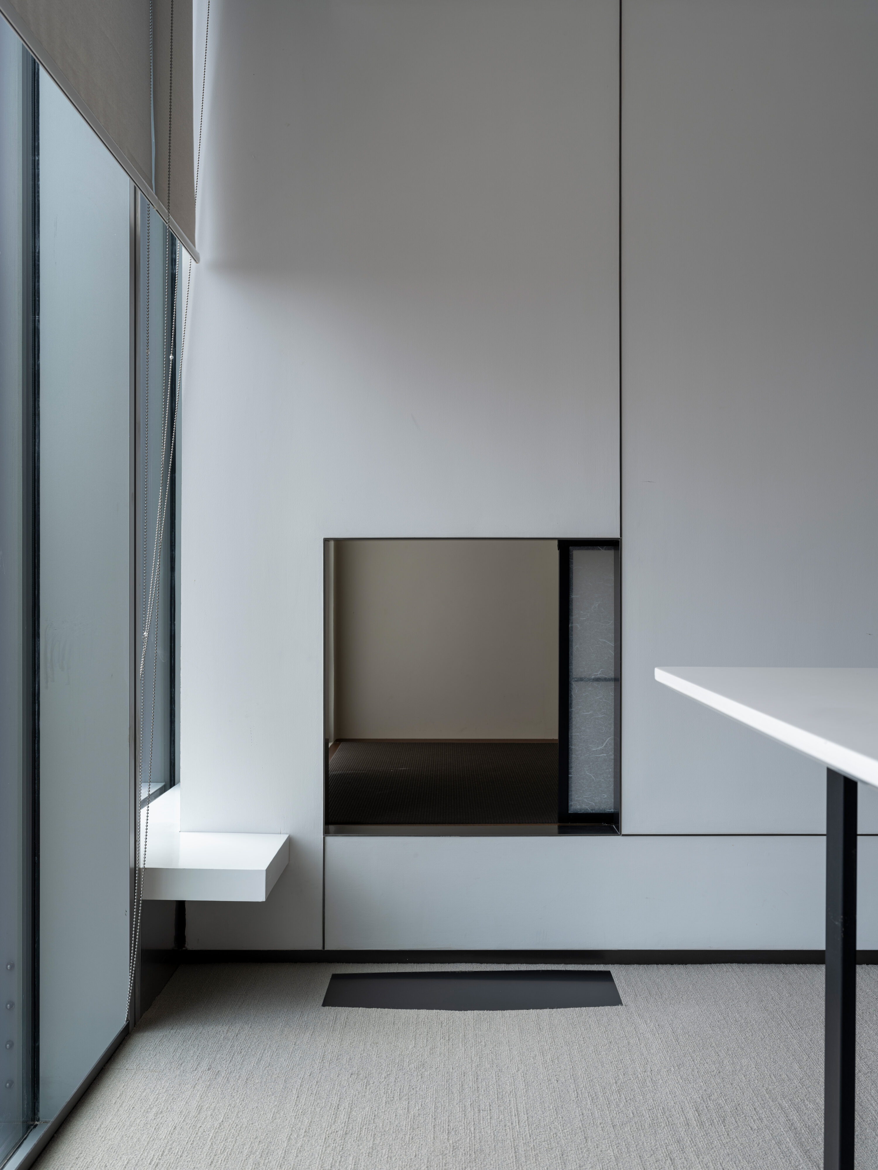 作为“风景”的办公 室内办公空间为“内庭”与“奥庭”,室外为“外庭”,将二者串联起来的主动线为“缘侧”。我们在新办公室,回归设计办公室本源,通过设置能够促进具有创造性交流的实验空间和装置,来回应这一命题。