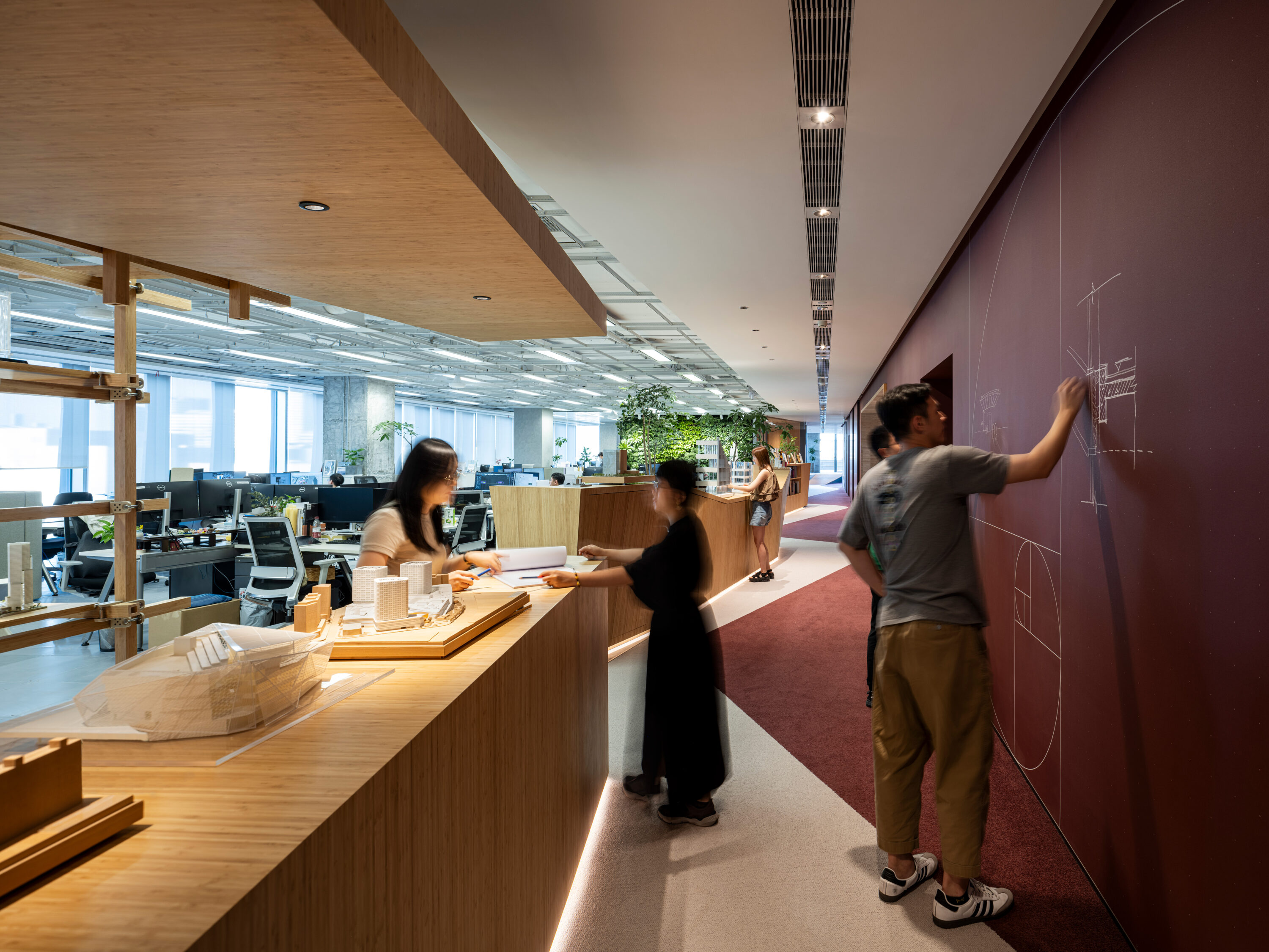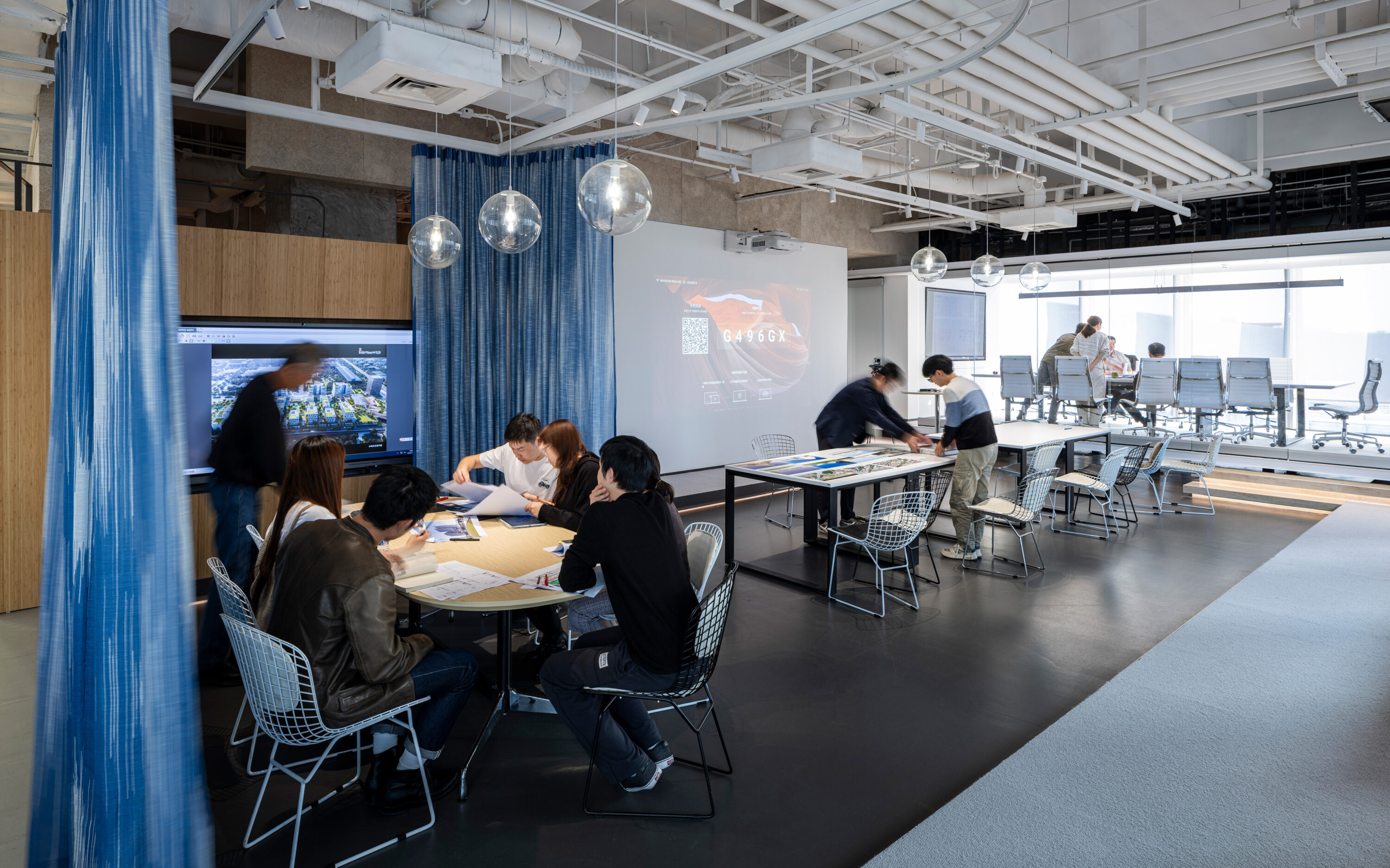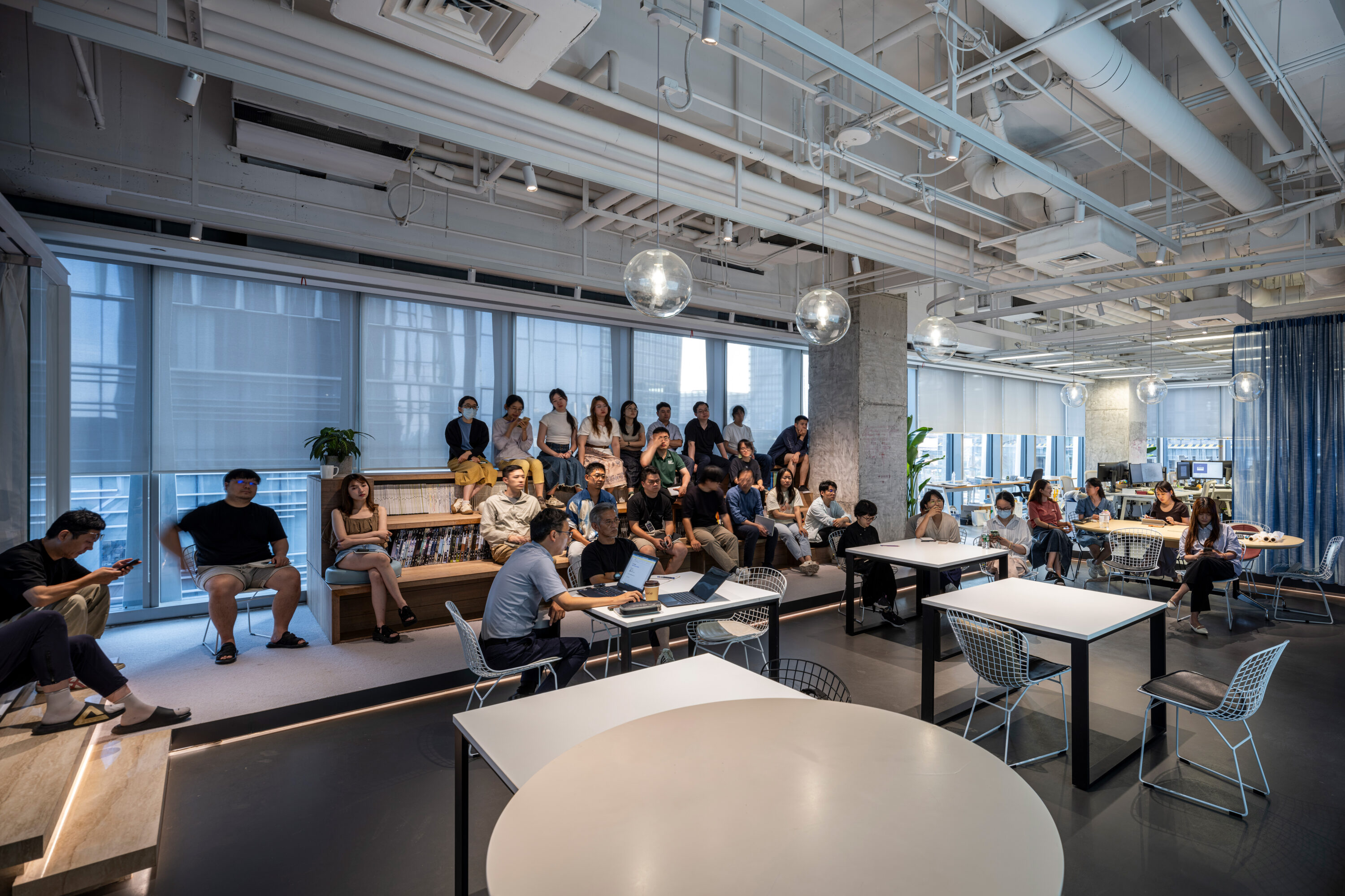作为“风景”的办公 室内办公空间为“内庭”与“奥庭”,室外为“外庭”,将二者串联起来的主动线为“缘侧”。我们在新办公室,回归设计办公室本源,通过设置能够促进具有创造性交流的实验空间和装置,来回应这一命题。