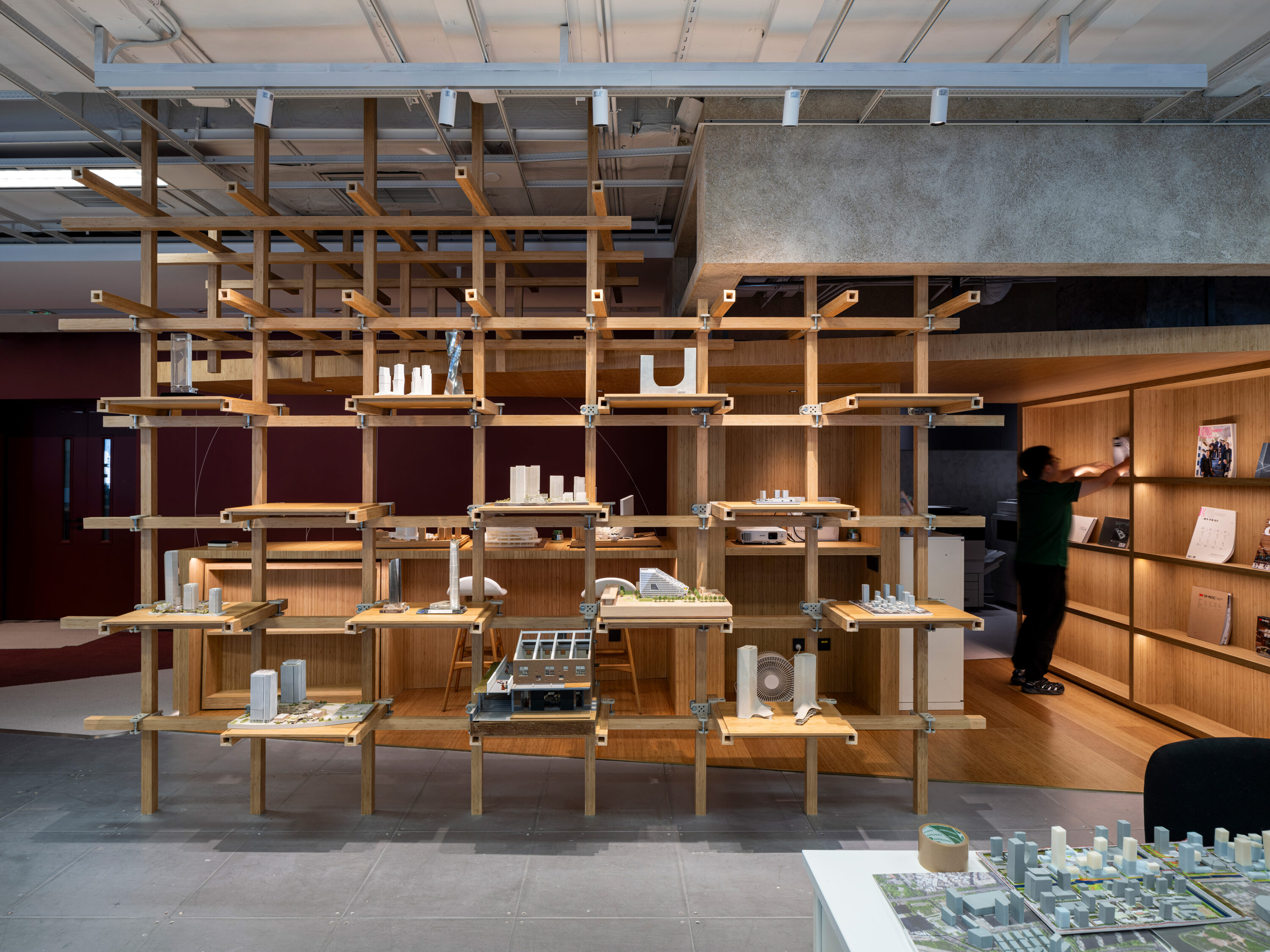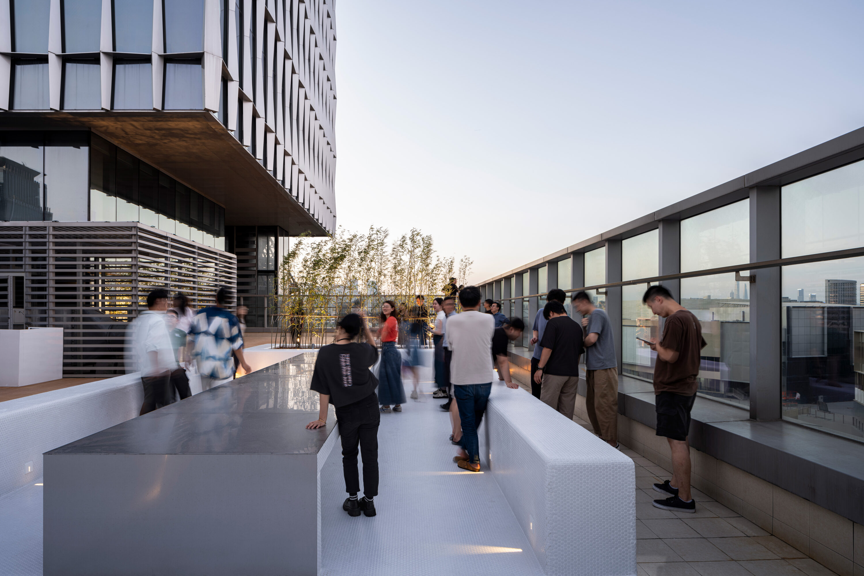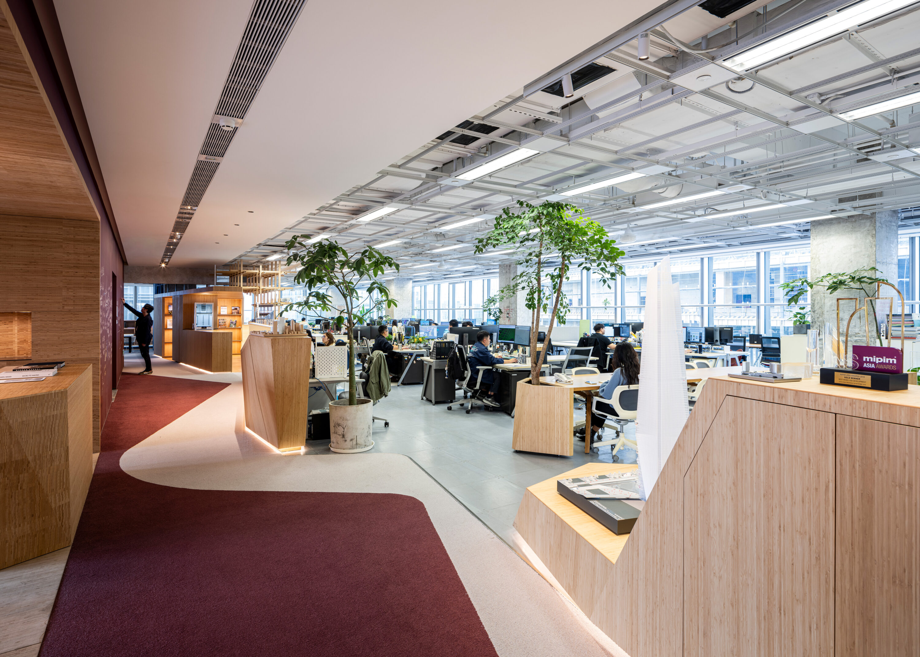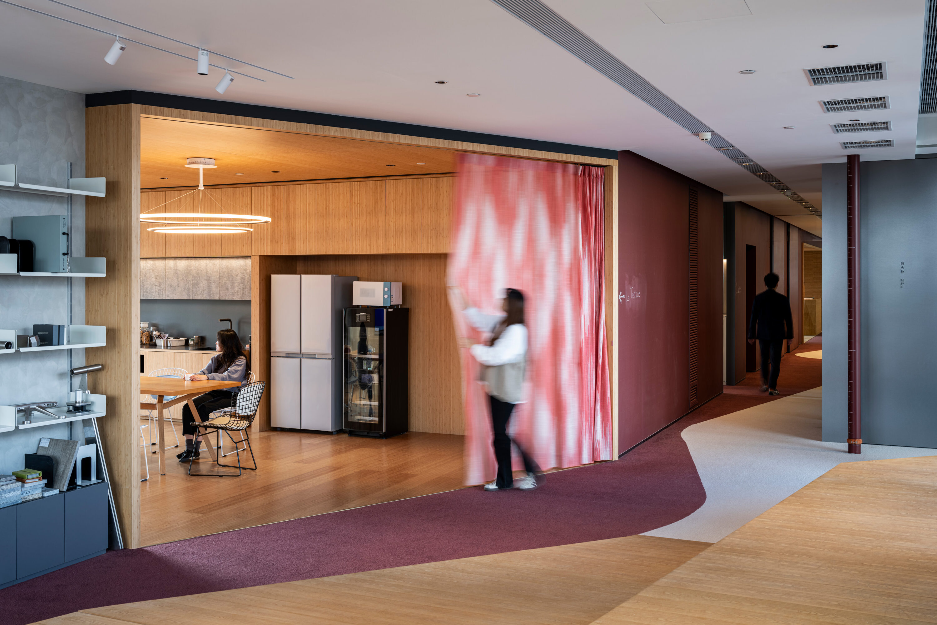 作为“风景”的办公 室内办公空间为“内庭”与“奥庭”,室外为“外庭”,将二者串联起来的主动线为“缘侧”。我们在新办公室,回归设计办公室本源,通过设置能够促进具有创造性交流的实验空间和装置,来回应这一命题。