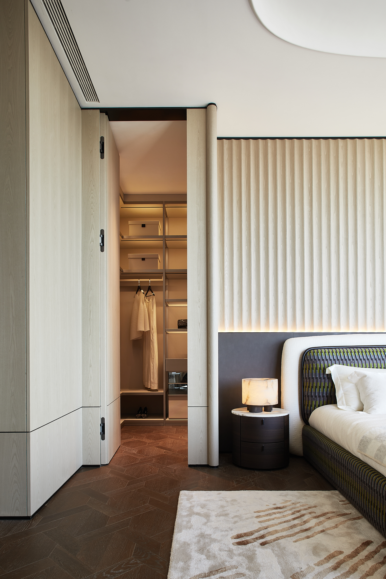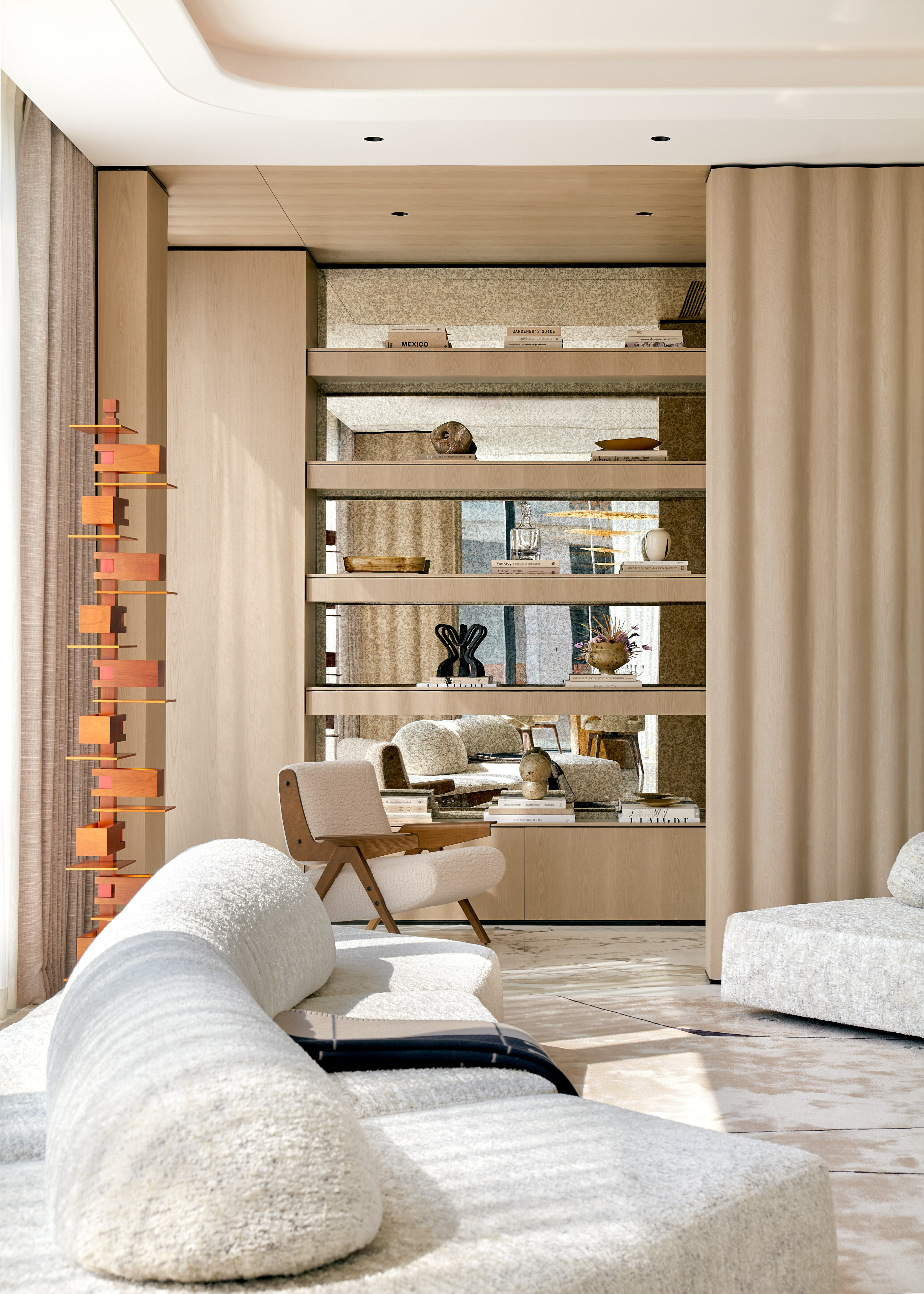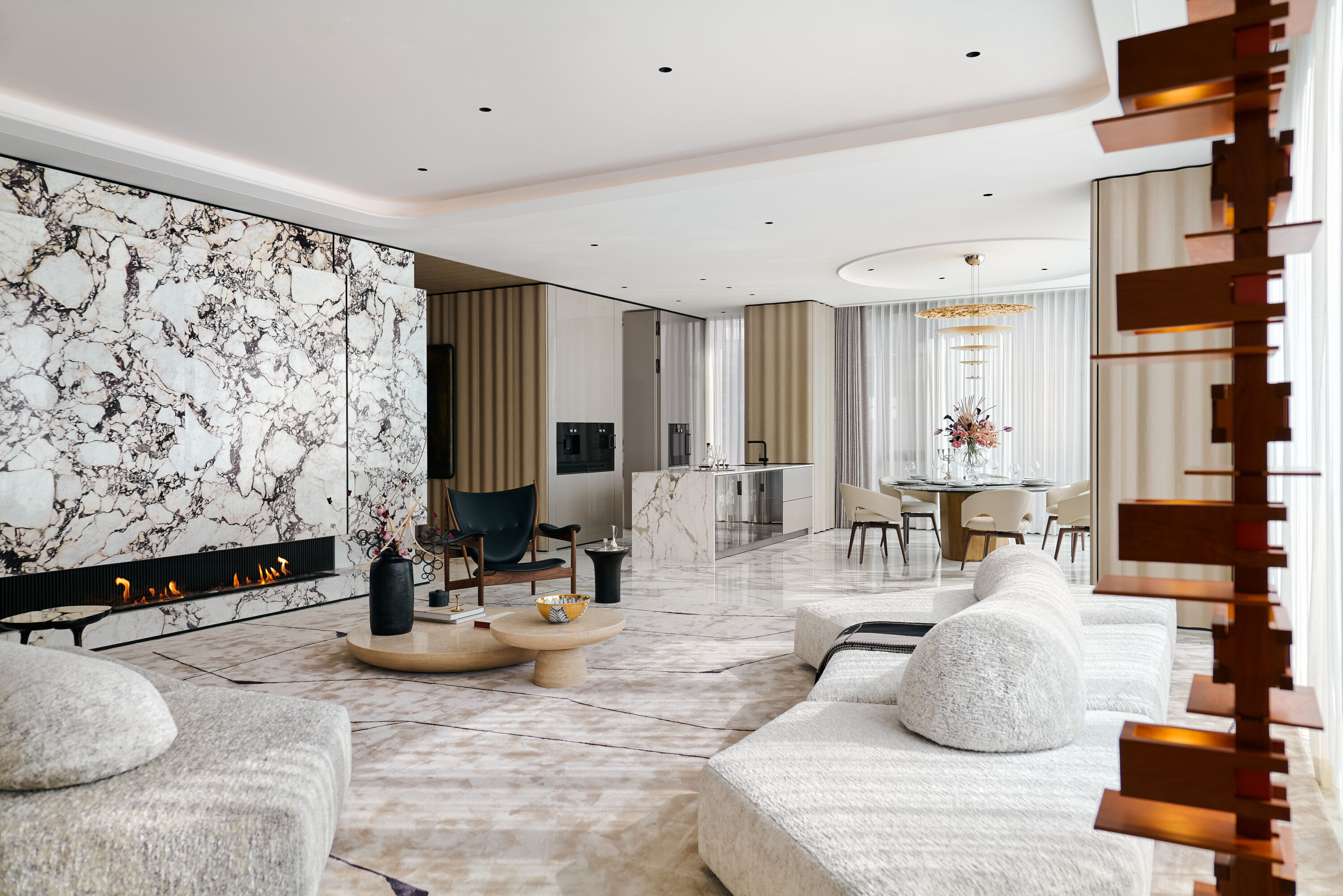 我们通过不同的方式来展现水的流动,空间流畅感和动线的自由流动,不同元素的曲线柔美形态,仿佛是水的运动雕刻而成。