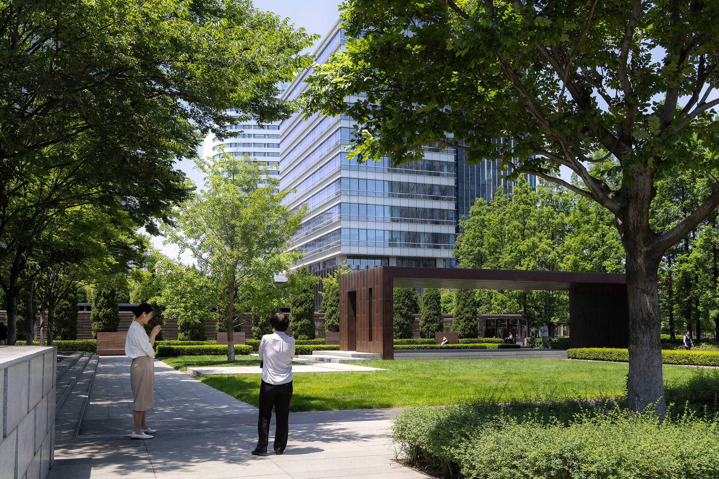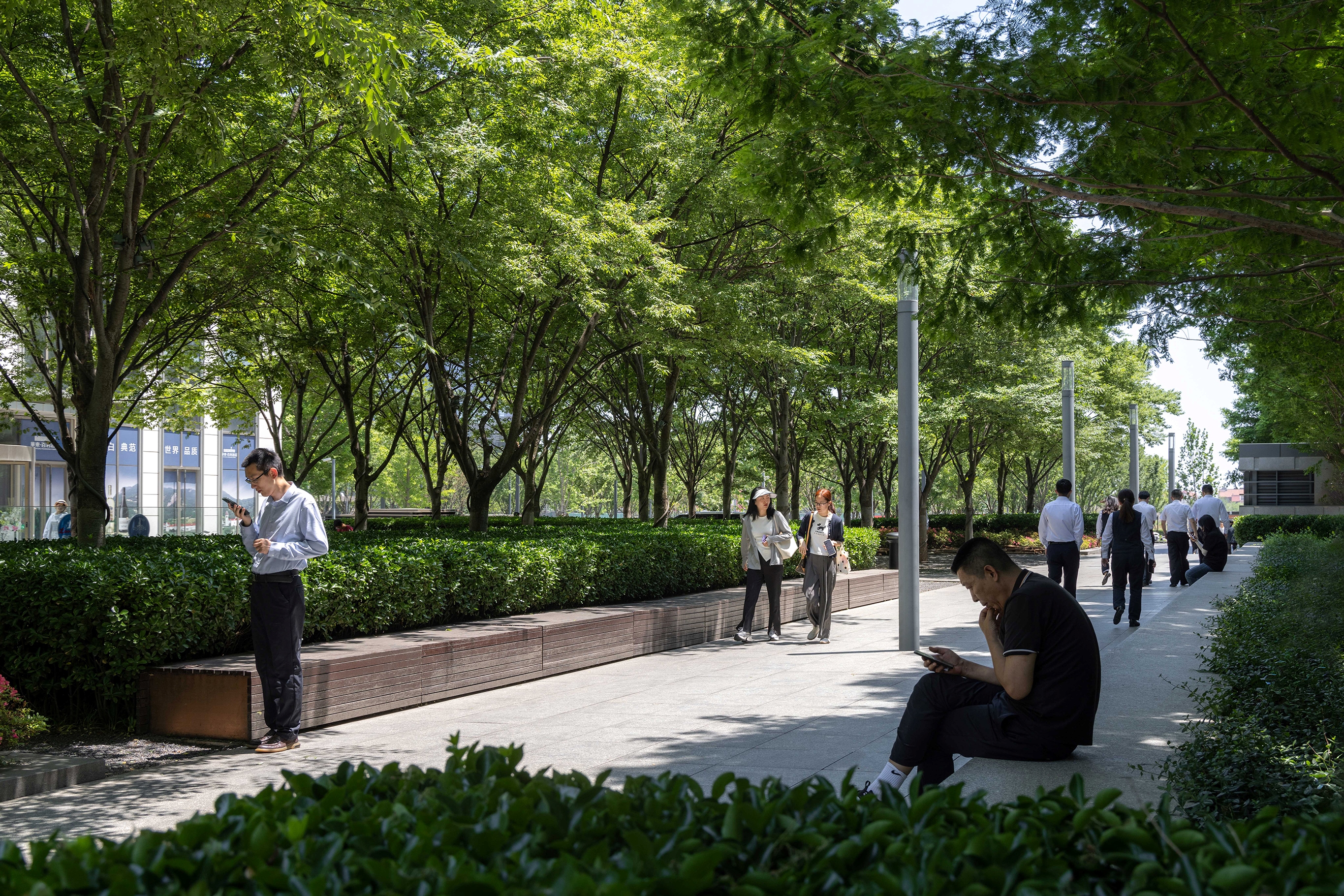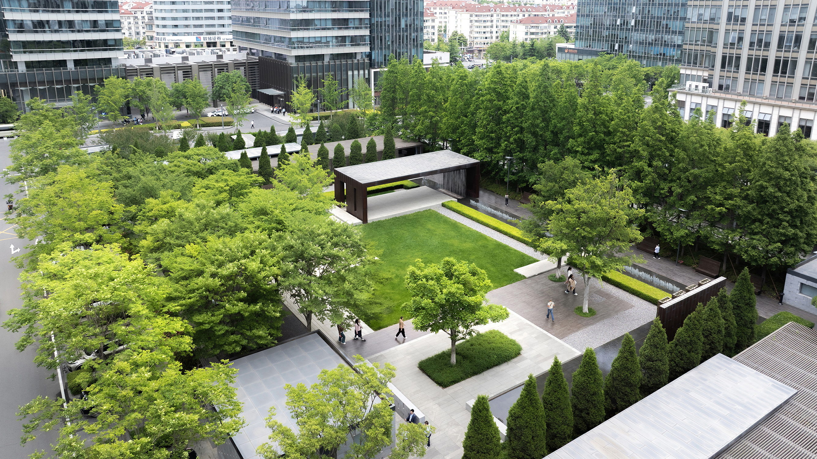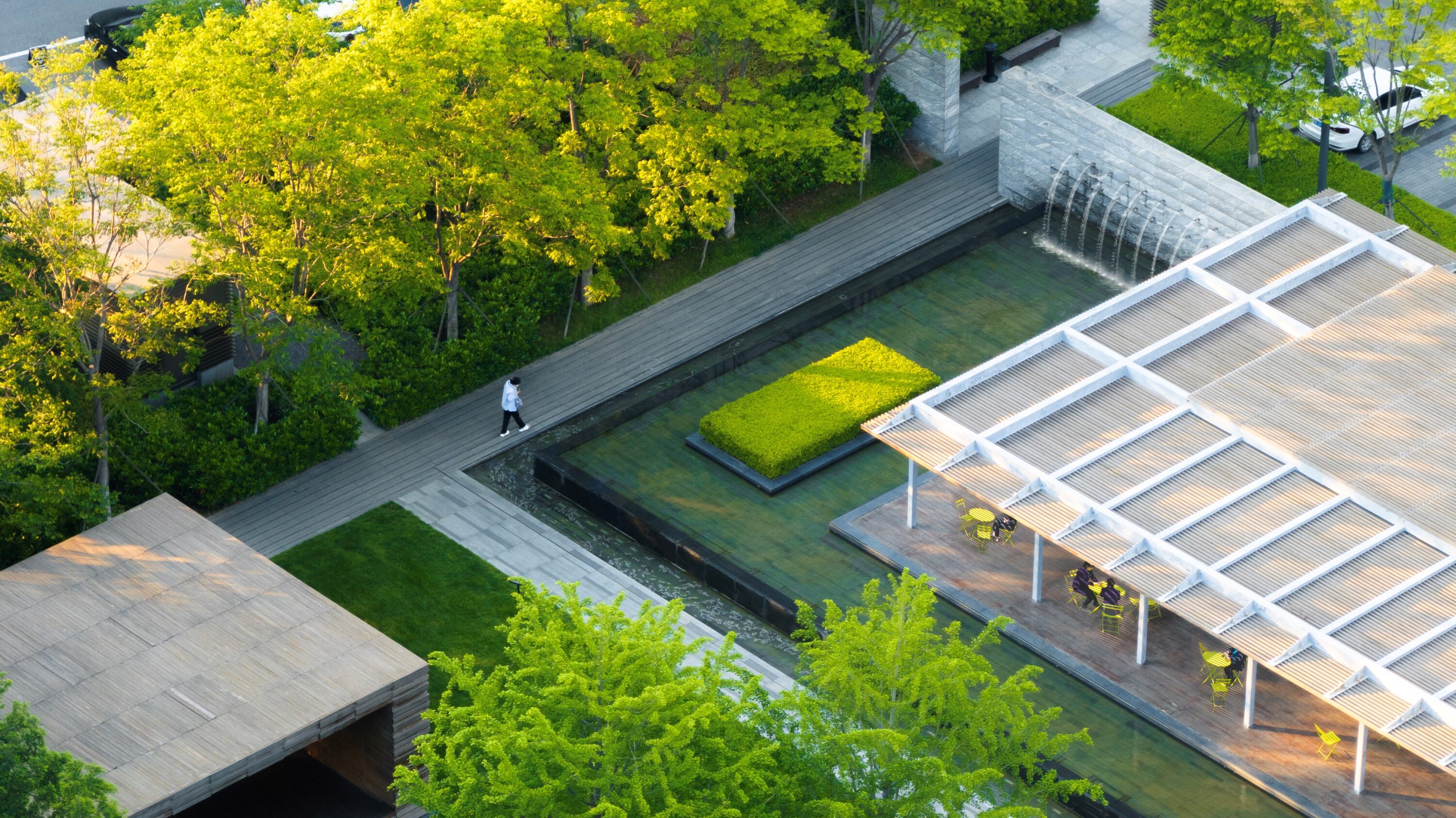 青岛上实中心位于金家岭金融区,是金融总部聚集地,涵盖高端办公、超五星级酒店及商业,成为区域文化地标。远期南广场为啤酒节主会场,延续城市记忆,赋予场地独特的文化活力。 景观通过“流动”的空间,设计多层次绿色园区。商务广场以艺术构建金融门户;办公庭院通过自由布局,营造宜人花园;庆典草坪兼顾活动与休闲;酒店花园则融合精致园林与艺术水景。 景观将金融、文化、娱乐有机融合,塑造国际化的“金融绿色客厅”。
