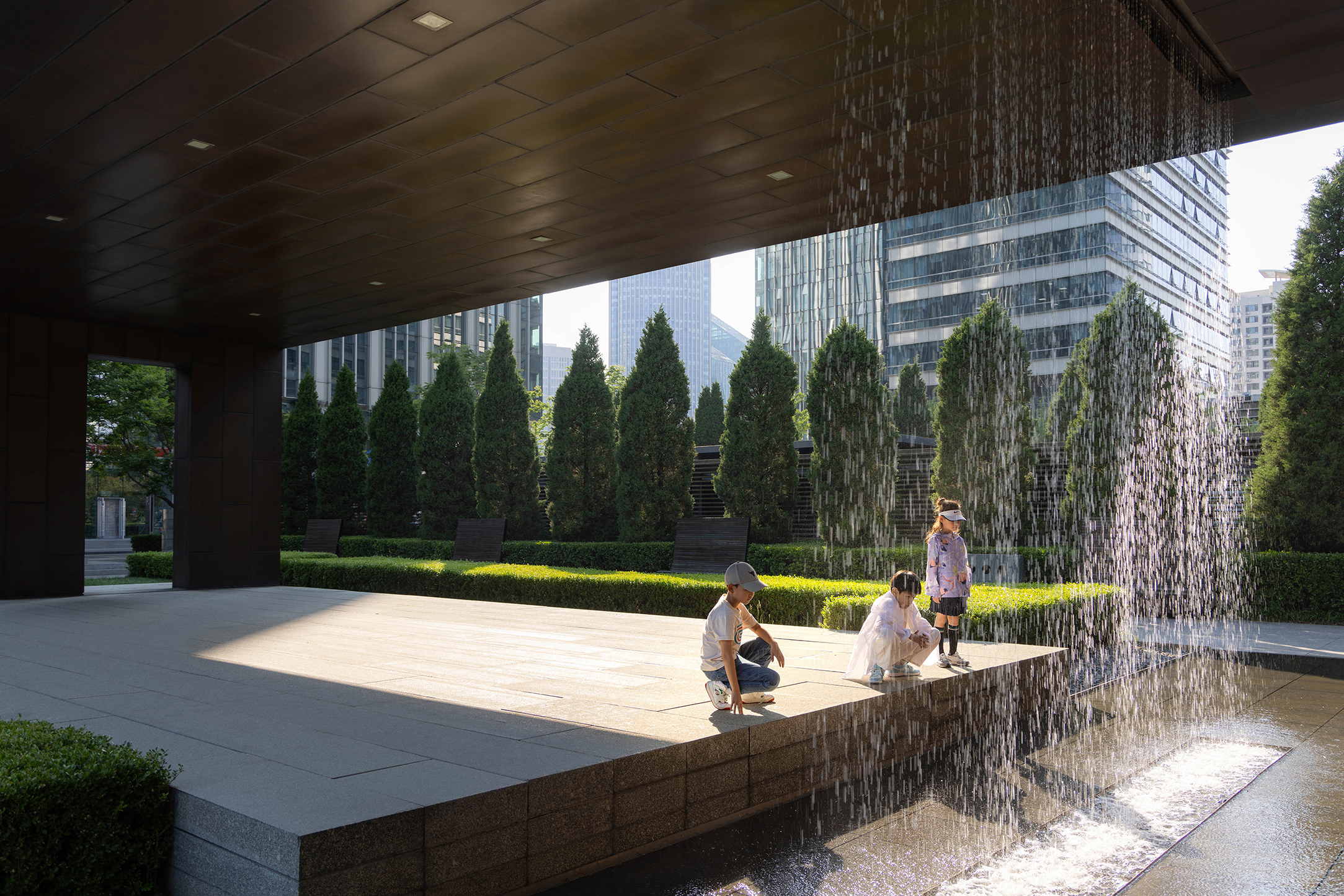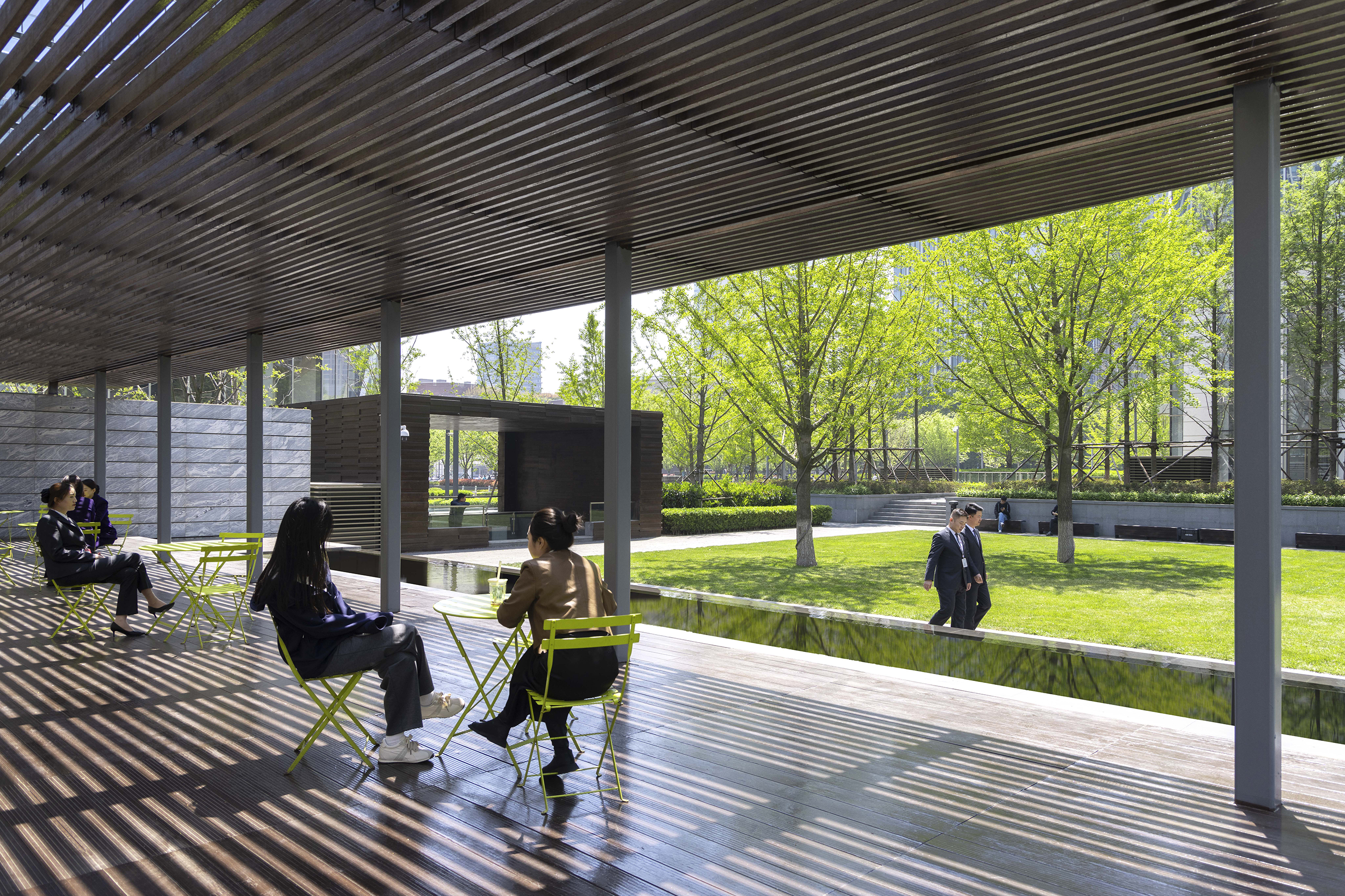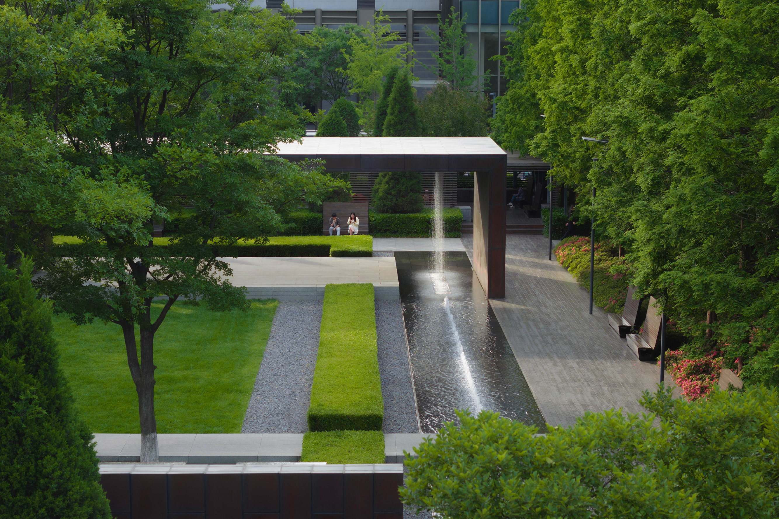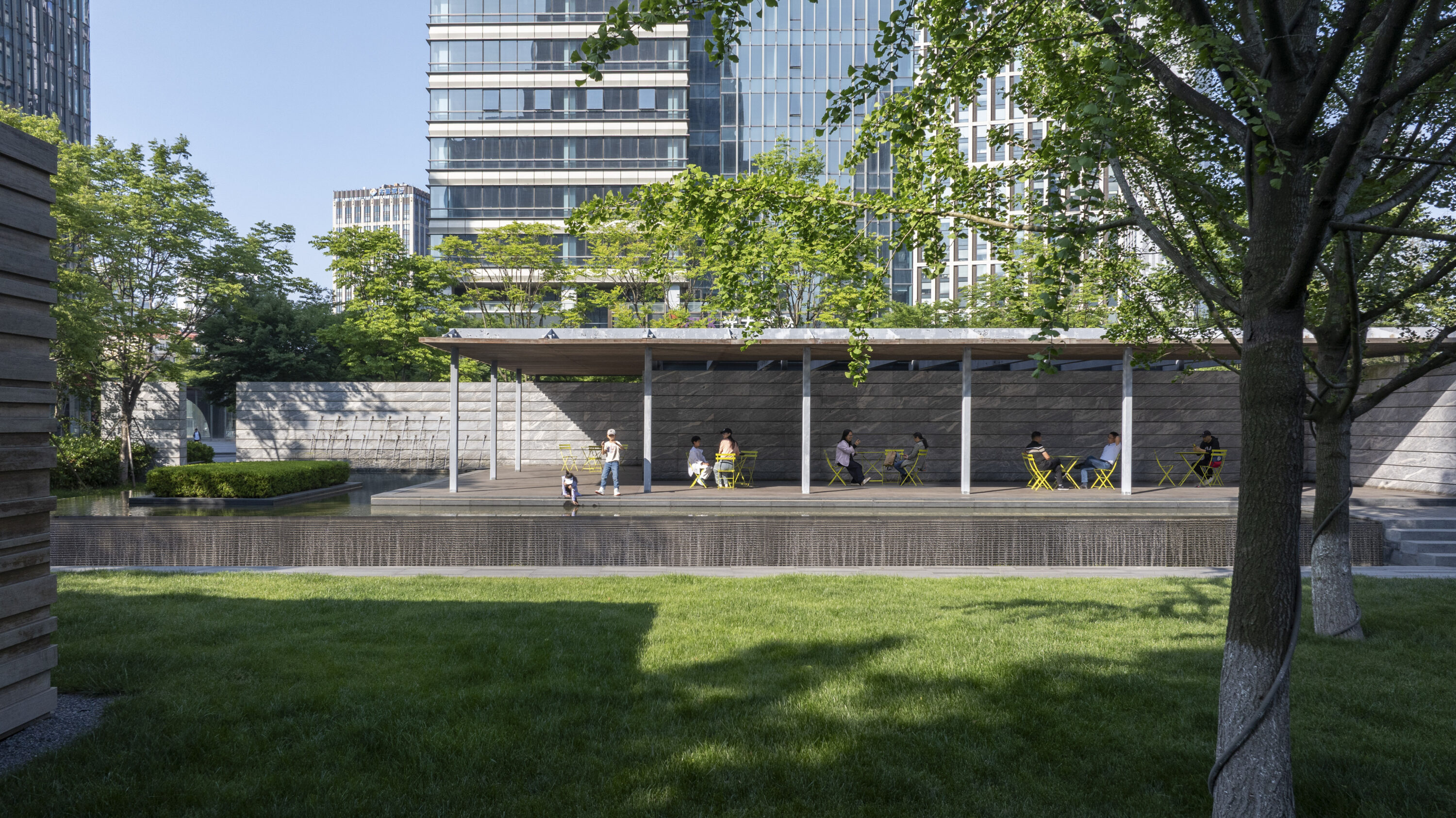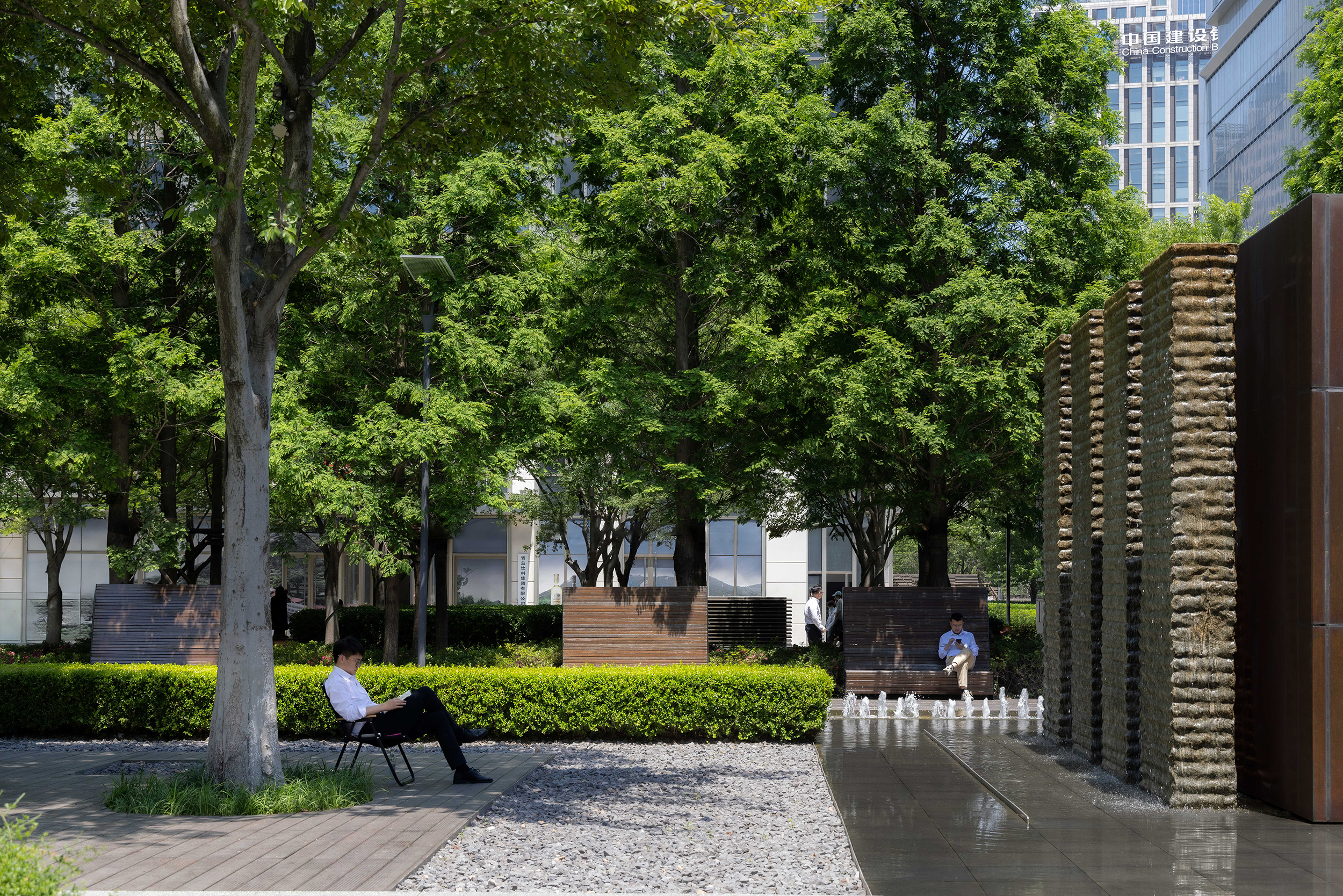 青岛上实中心位于金家岭金融区,是金融总部聚集地,涵盖高端办公、超五星级酒店及商业,成为区域文化地标。远期南广场为啤酒节主会场,延续城市记忆,赋予场地独特的文化活力。 景观通过“流动”的空间,设计多层次绿色园区。商务广场以艺术构建金融门户;办公庭院通过自由布局,营造宜人花园;庆典草坪兼顾活动与休闲;酒店花园则融合精致园林与艺术水景。 景观将金融、文化、娱乐有机融合,塑造国际化的“金融绿色客厅”。