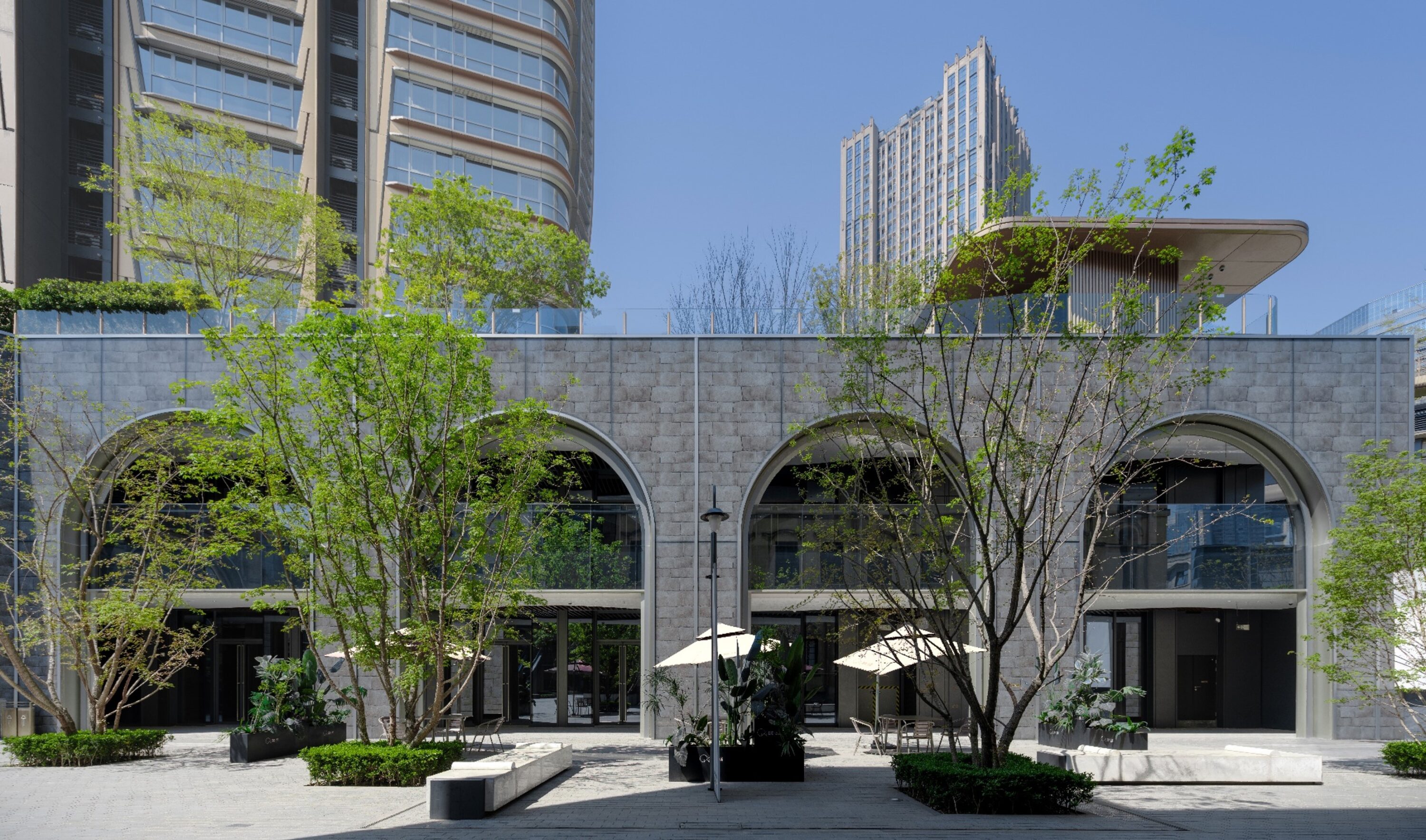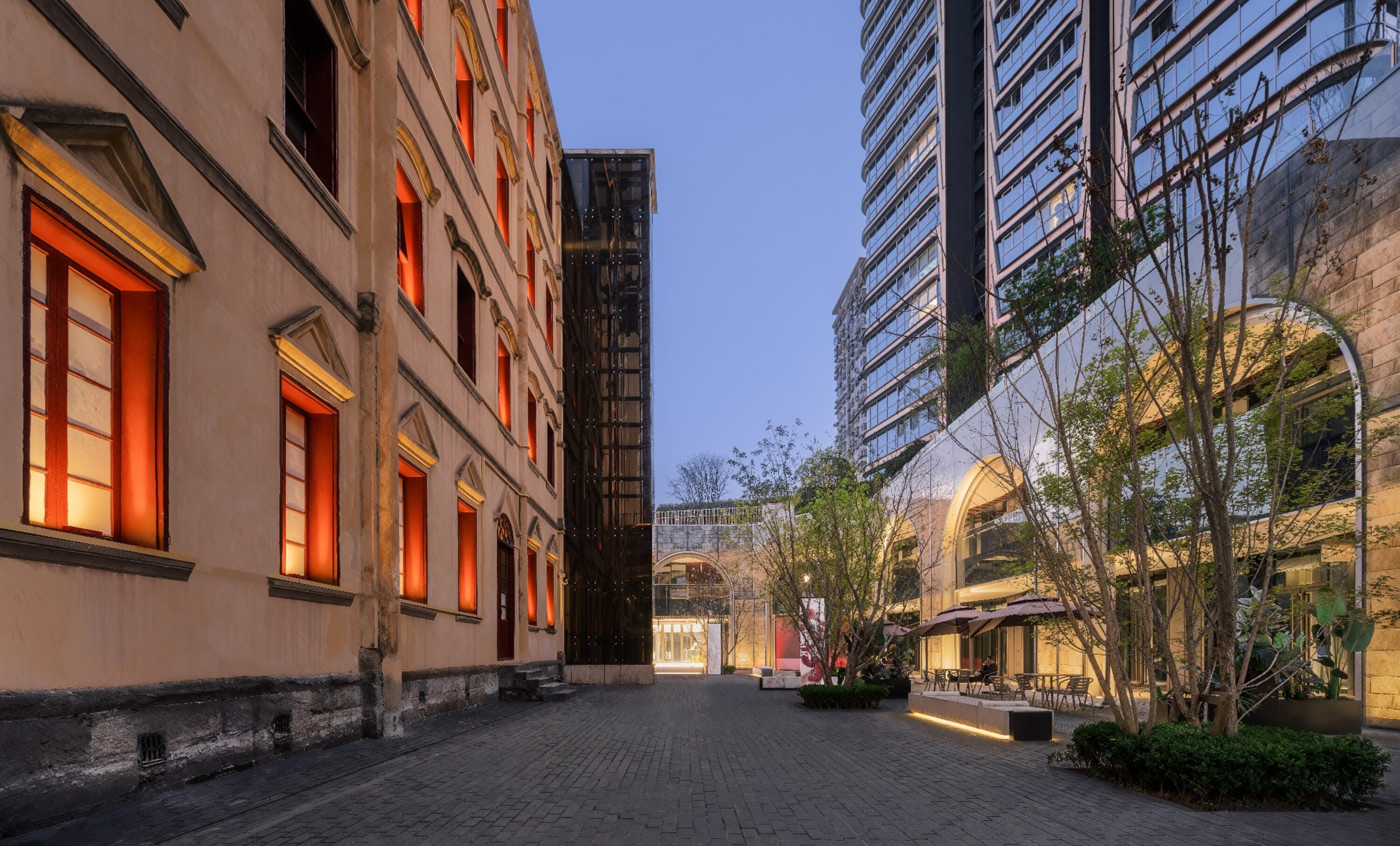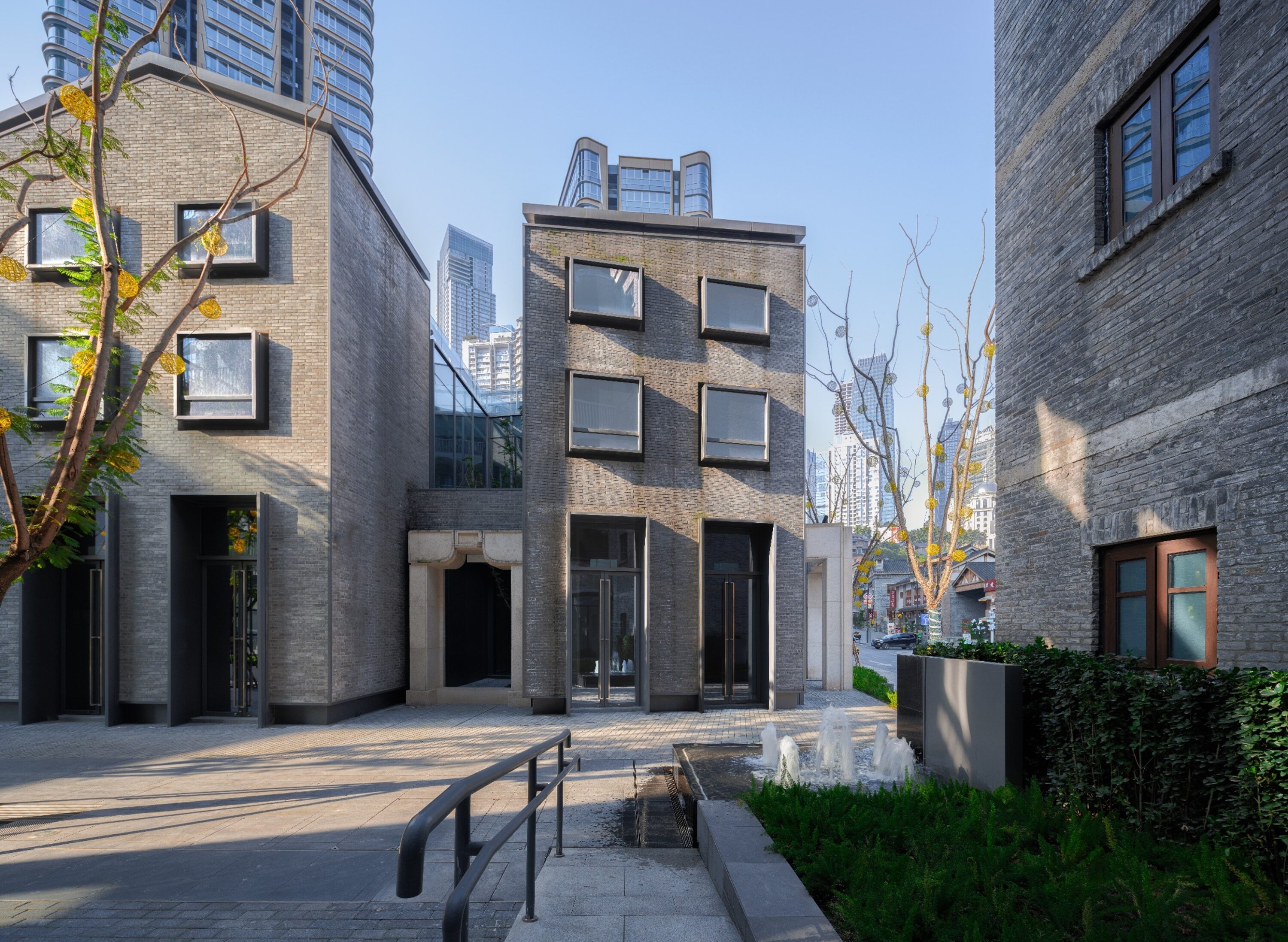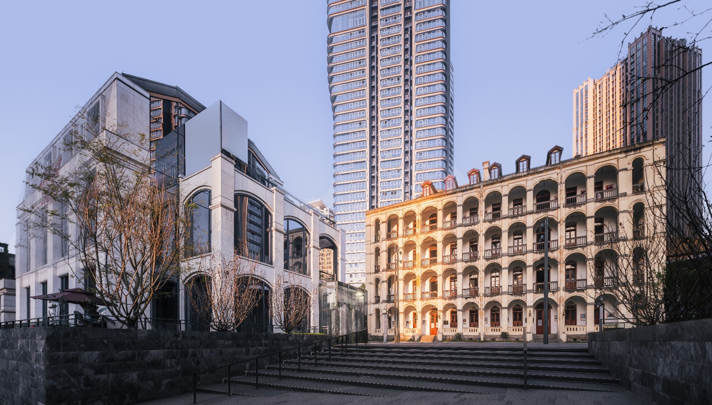 位于重庆母城核心的传统风貌保护区,毗邻著名的十八梯核心风貌区,设计力图打造出重庆核心老区中一个全新的新鲜目的地。项目周边有国家级文物法国领事馆以及大量历史建筑,区位十分重要,设计中解决了最核心的挑战:中心区域敏感地带的现代与传统的风貌融合,兼顾文物活化与传统区域的复兴的双赢。为重庆核心母城的复兴做出了贡献。