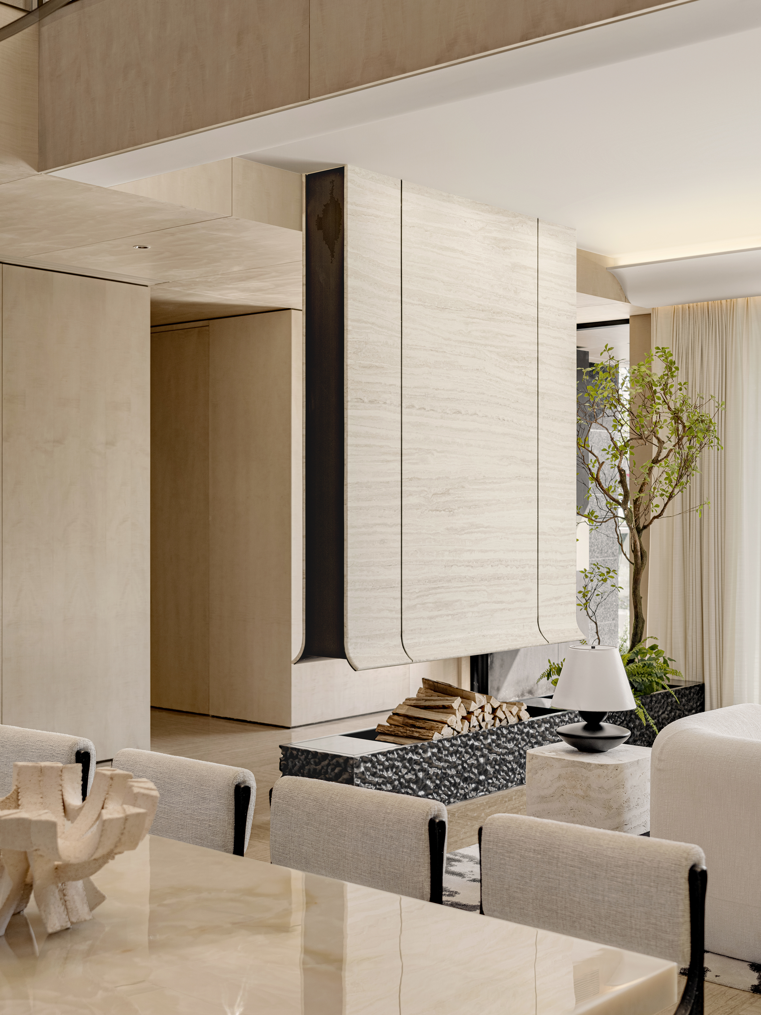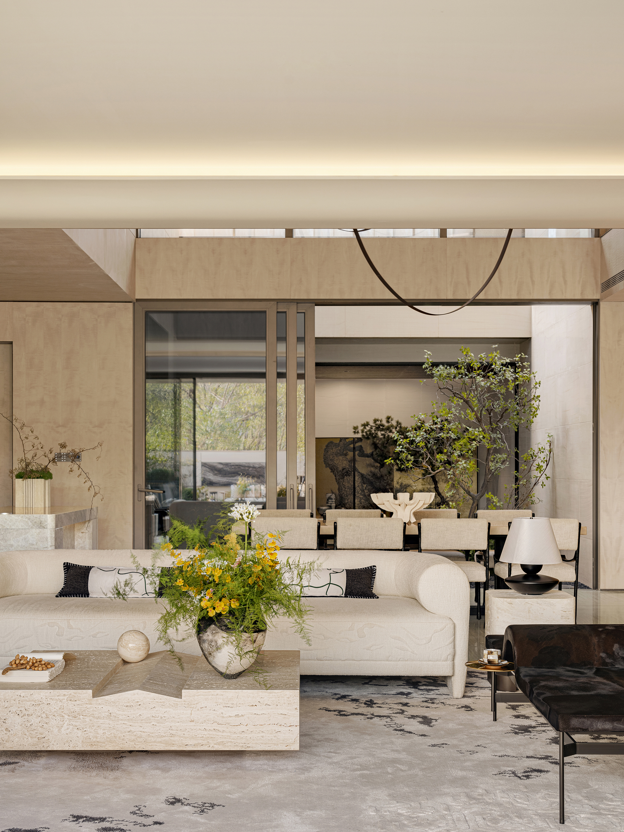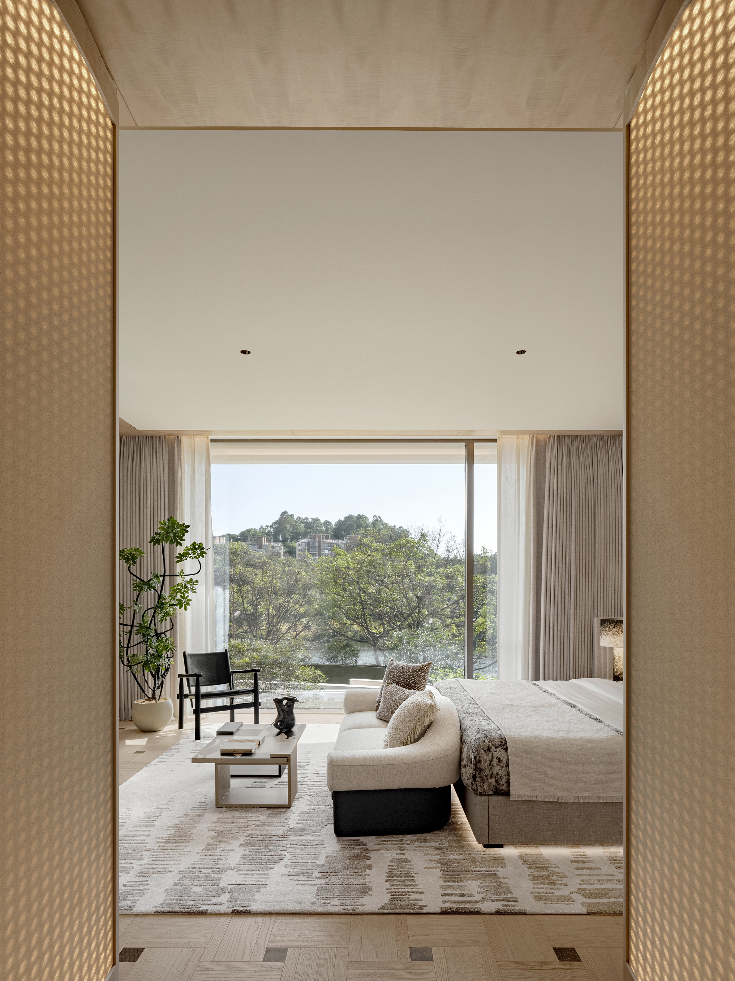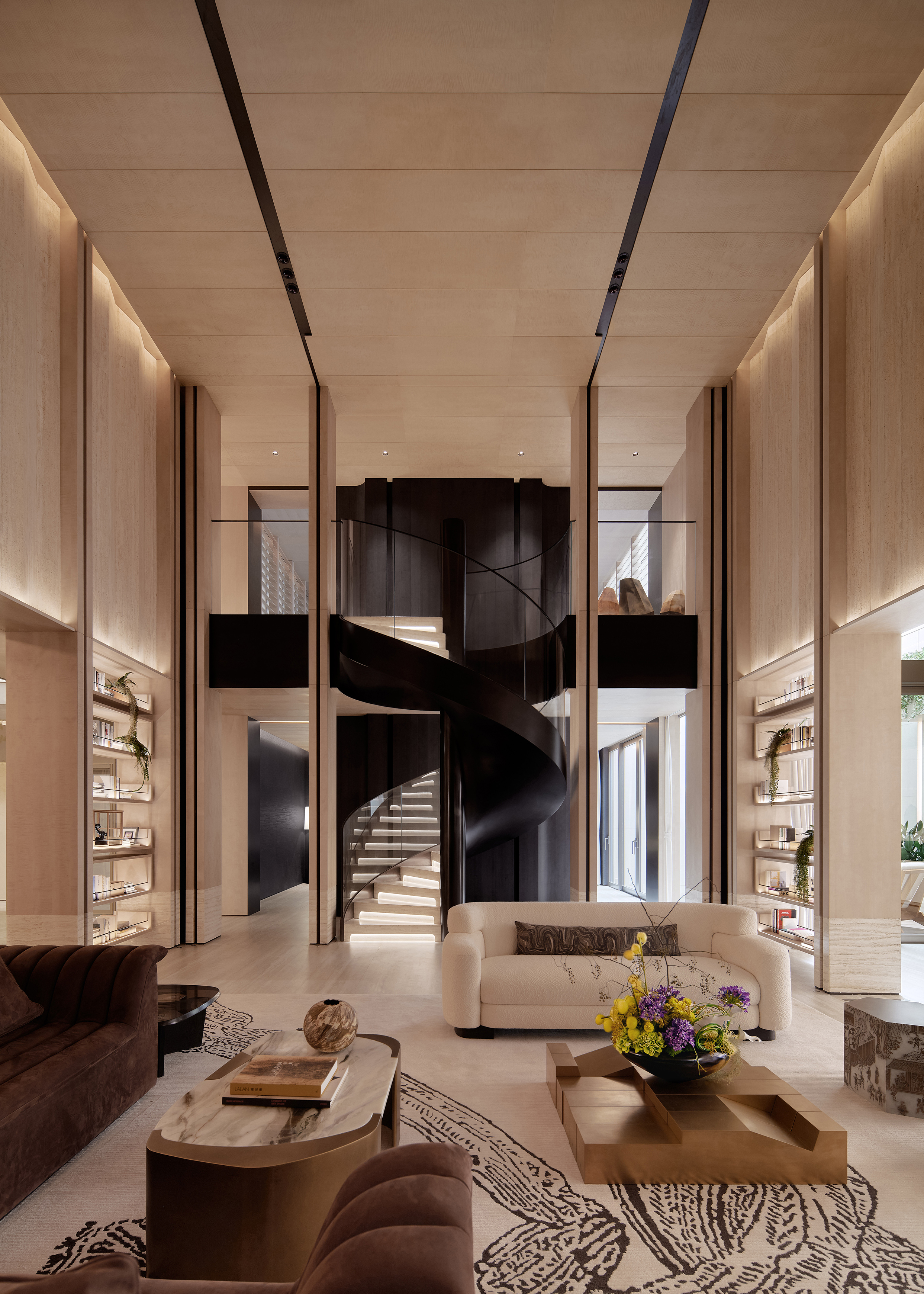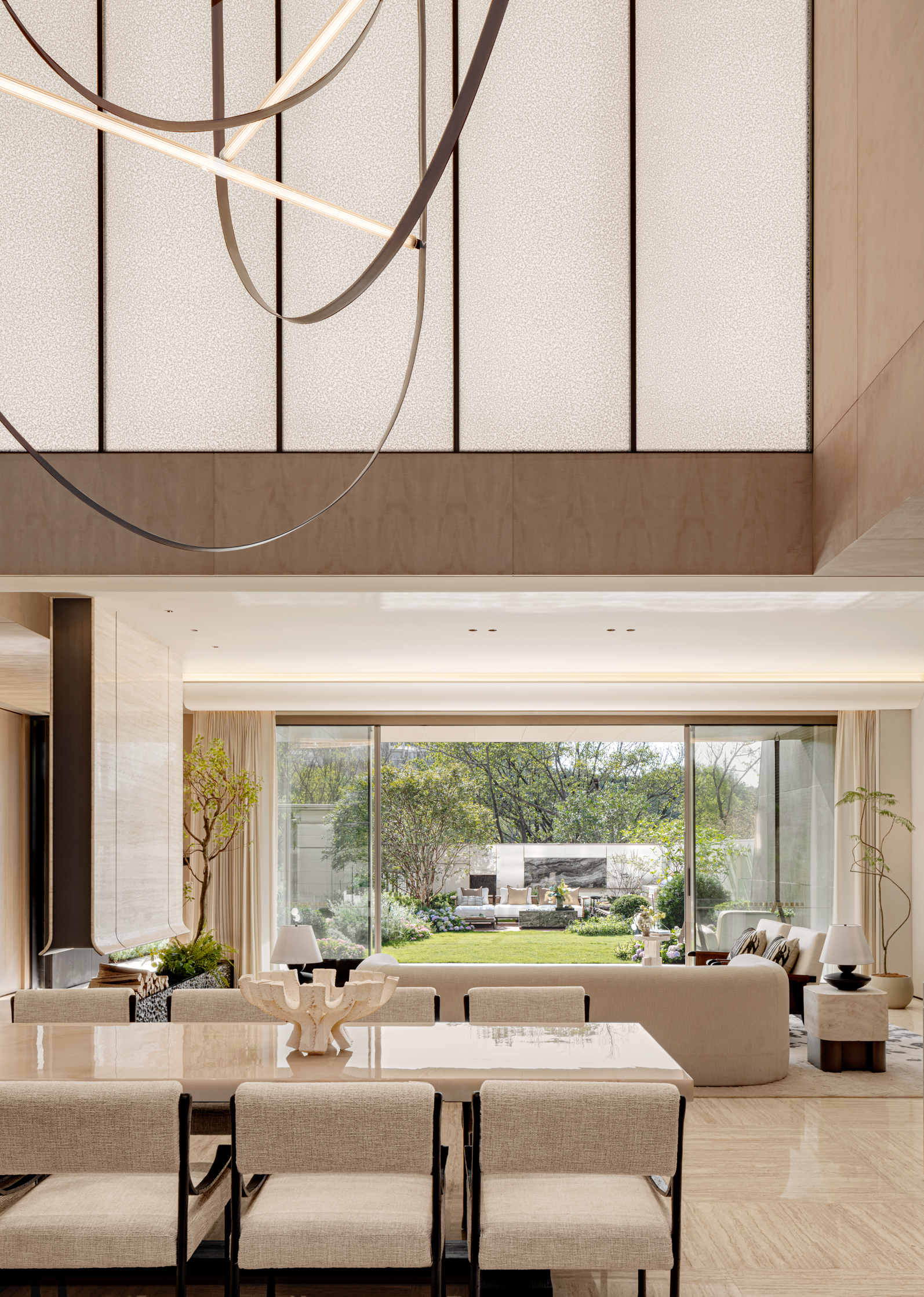 项目位于广州天河世界大观板块,坐拥太阳湖与月亮湖双湖景观,依托约71.9公里湖岸线及原生密林,保留200余棵乔木,打造低密生态社区。临湖栈道串联归家动线,将湖景四时晴雨融入生活界面,通过无界空间设计,模糊室内外界限,引自然入室。