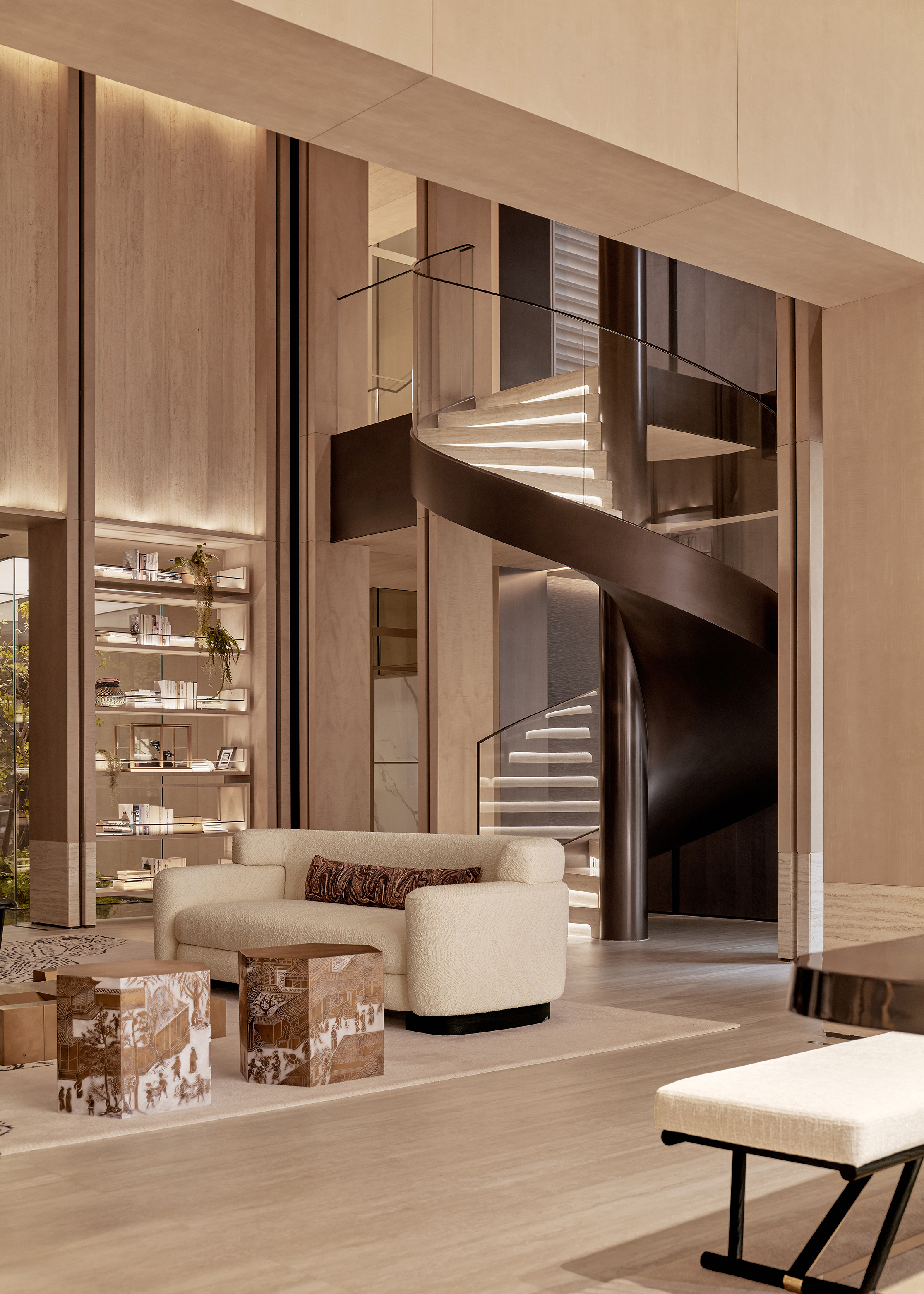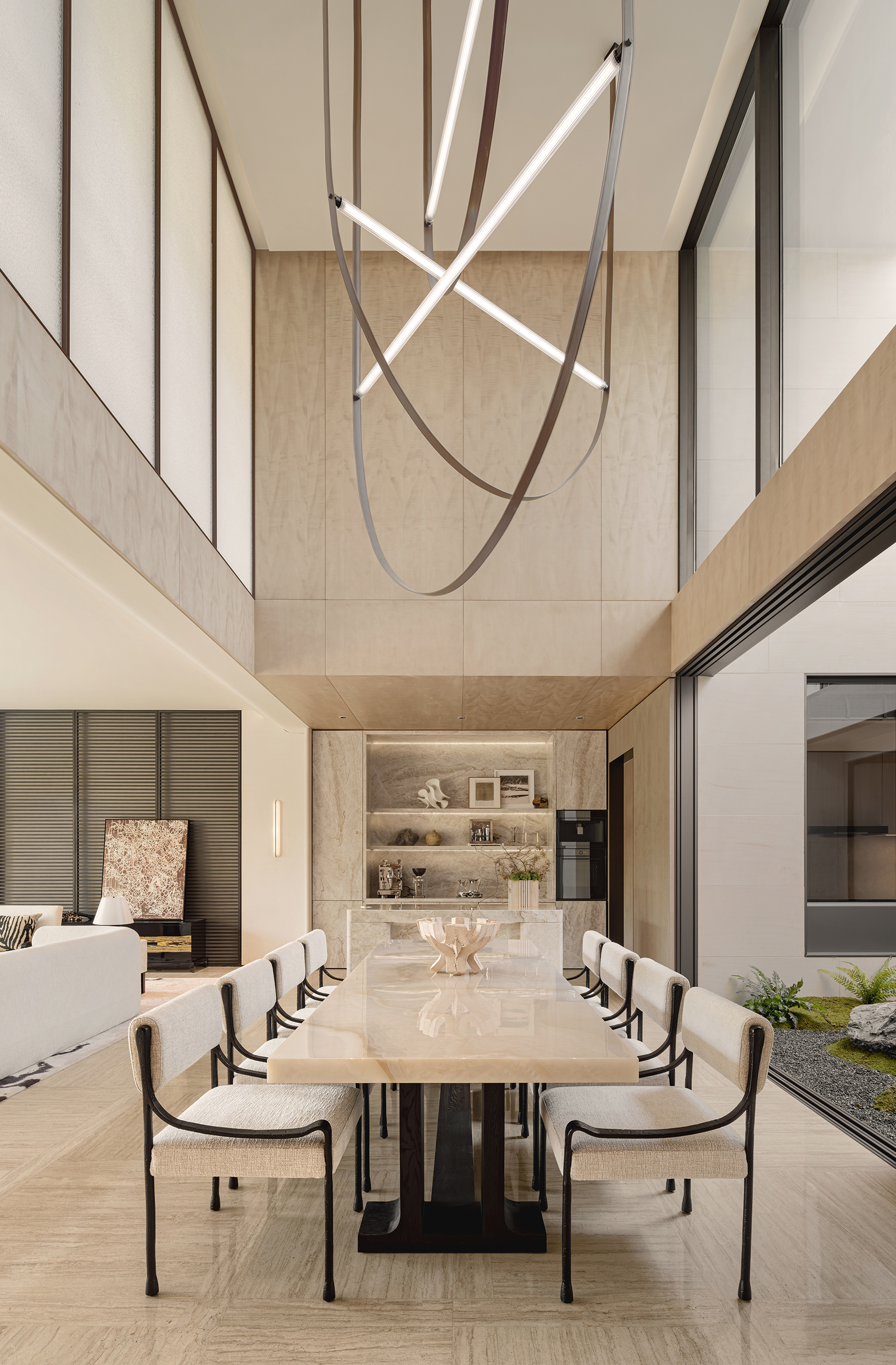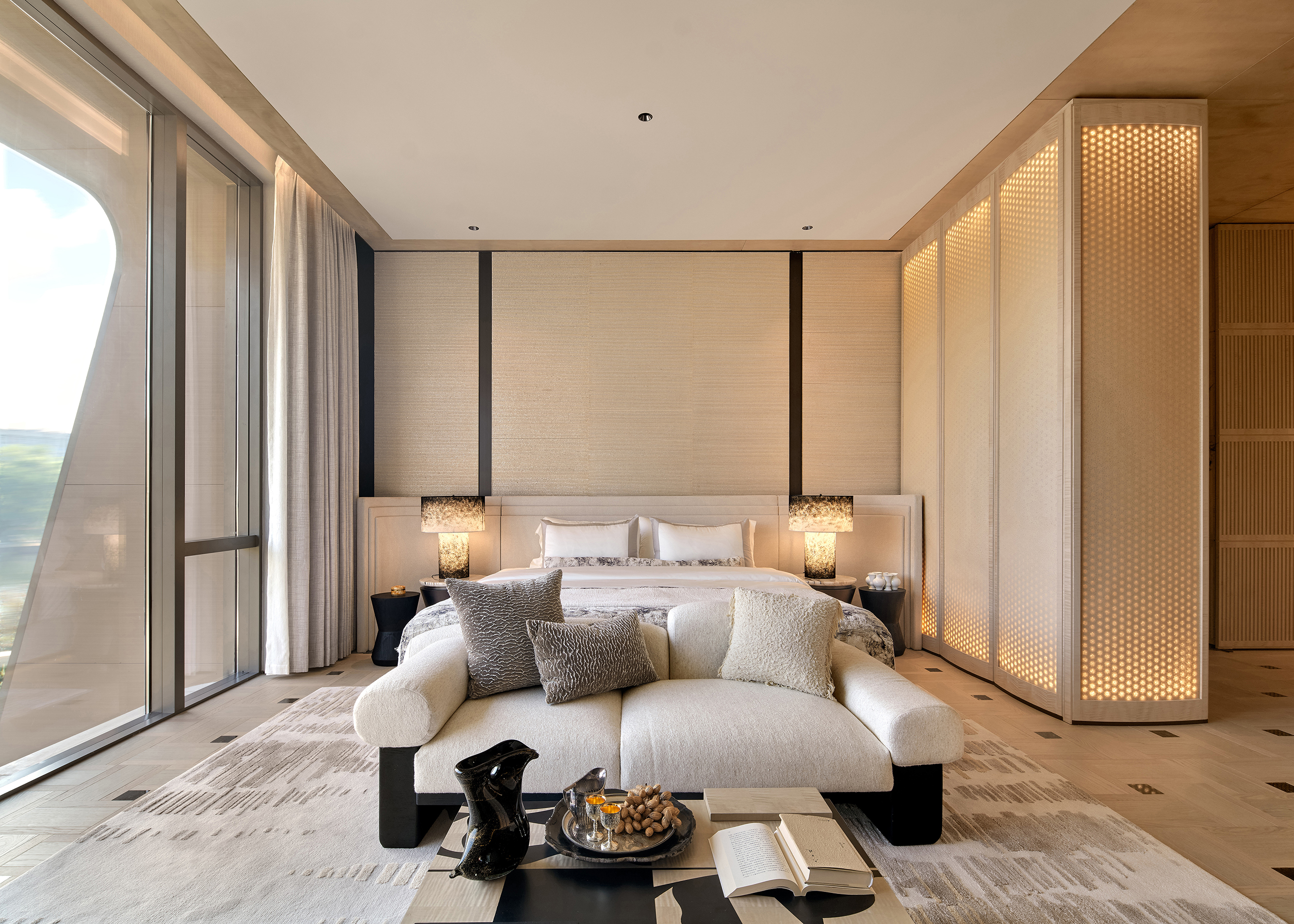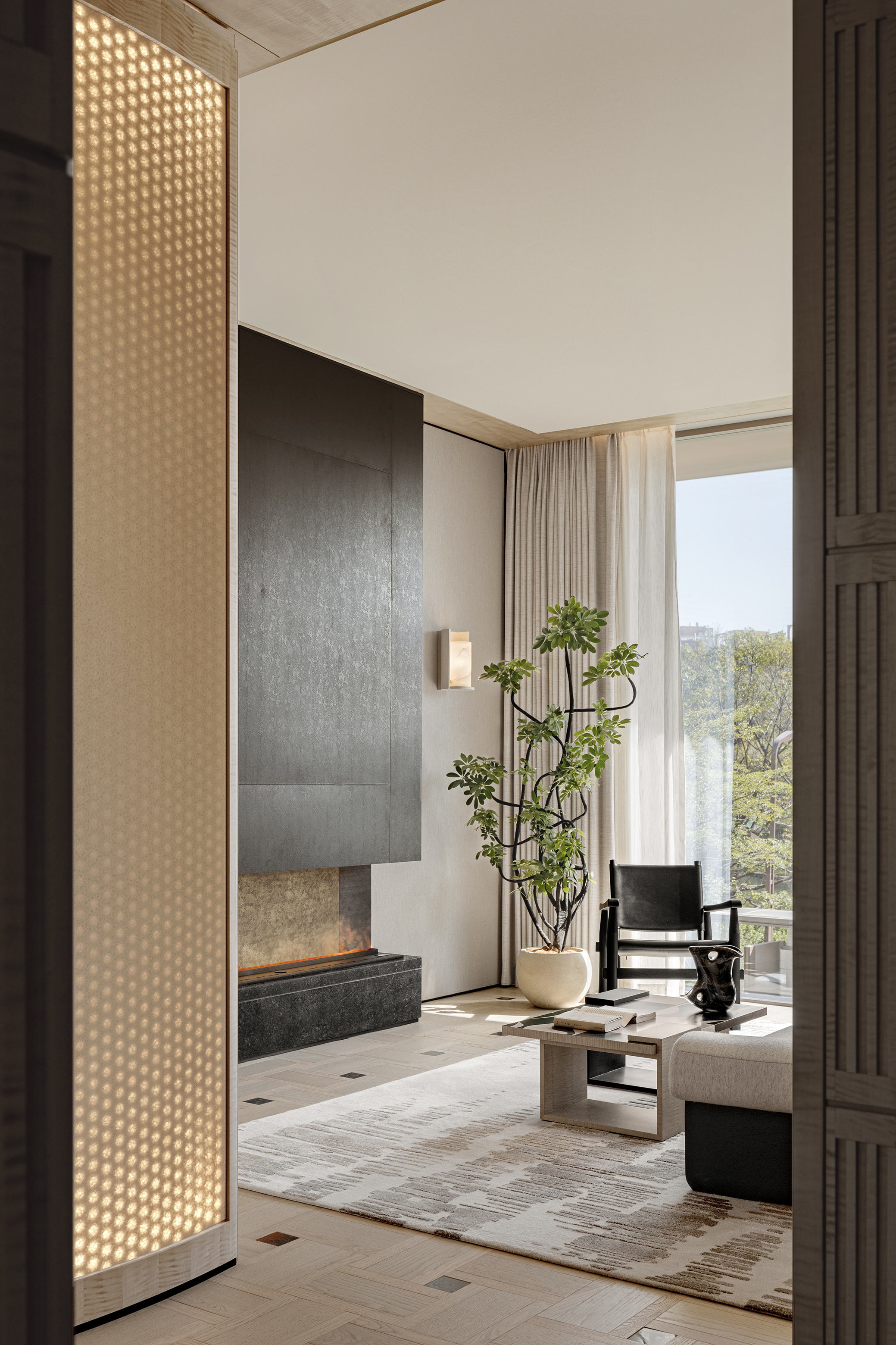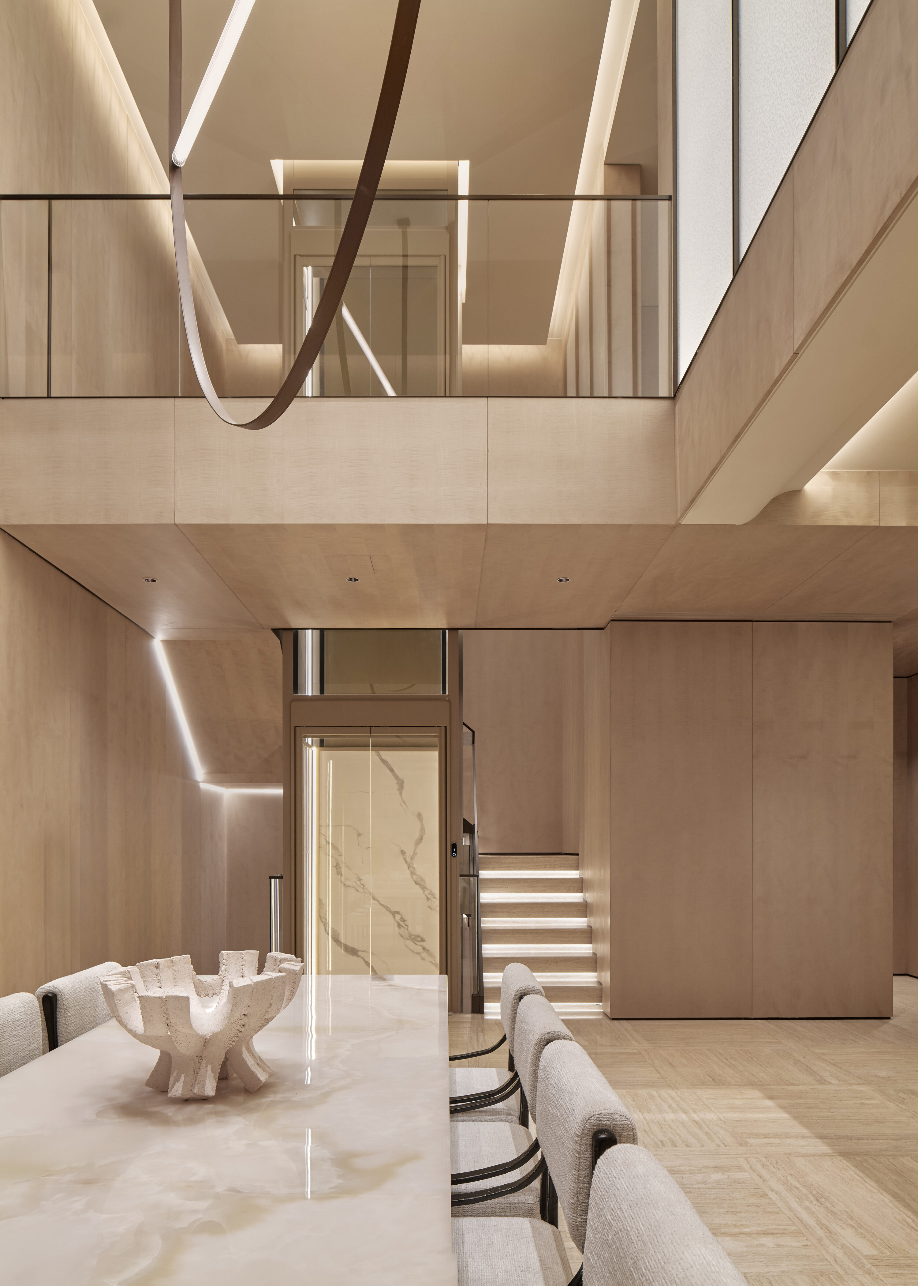 项目位于广州天河世界大观板块,坐拥太阳湖与月亮湖双湖景观,依托约71.9公里湖岸线及原生密林,保留200余棵乔木,打造低密生态社区。临湖栈道串联归家动线,将湖景四时晴雨融入生活界面,通过无界空间设计,模糊室内外界限,引自然入室。