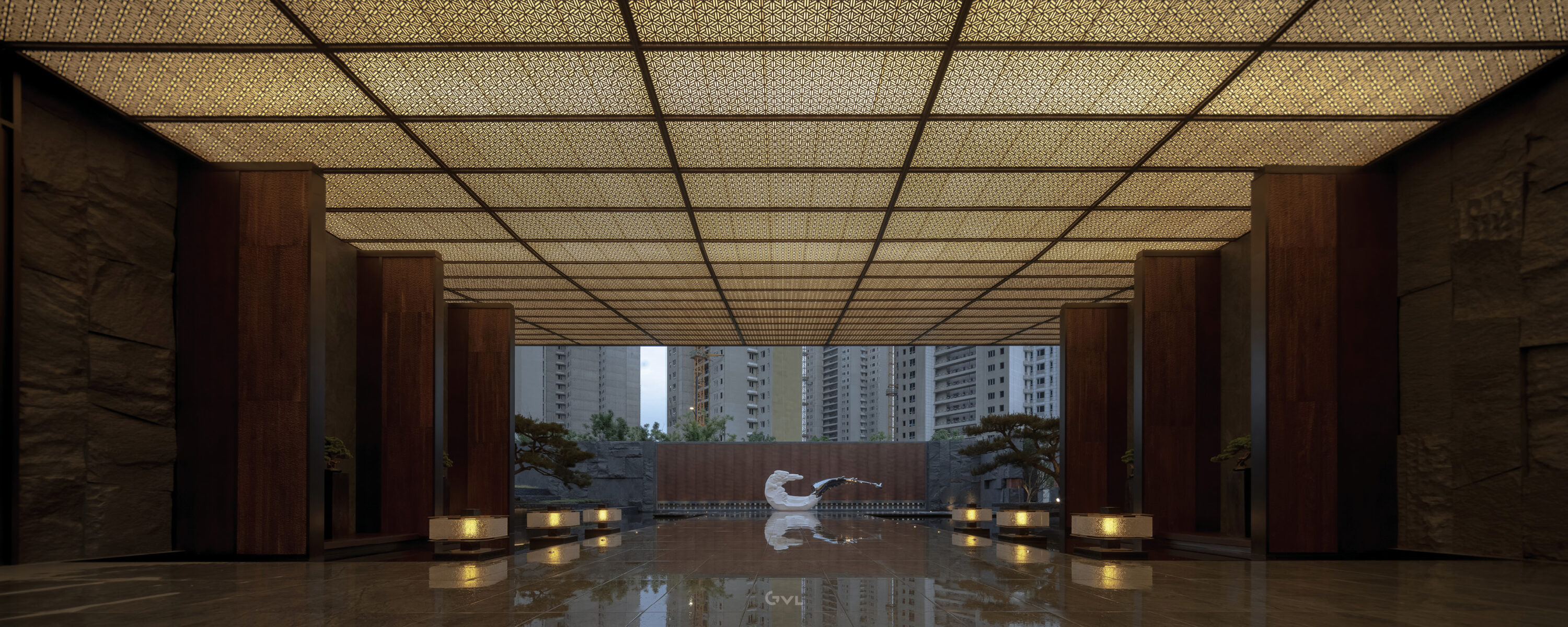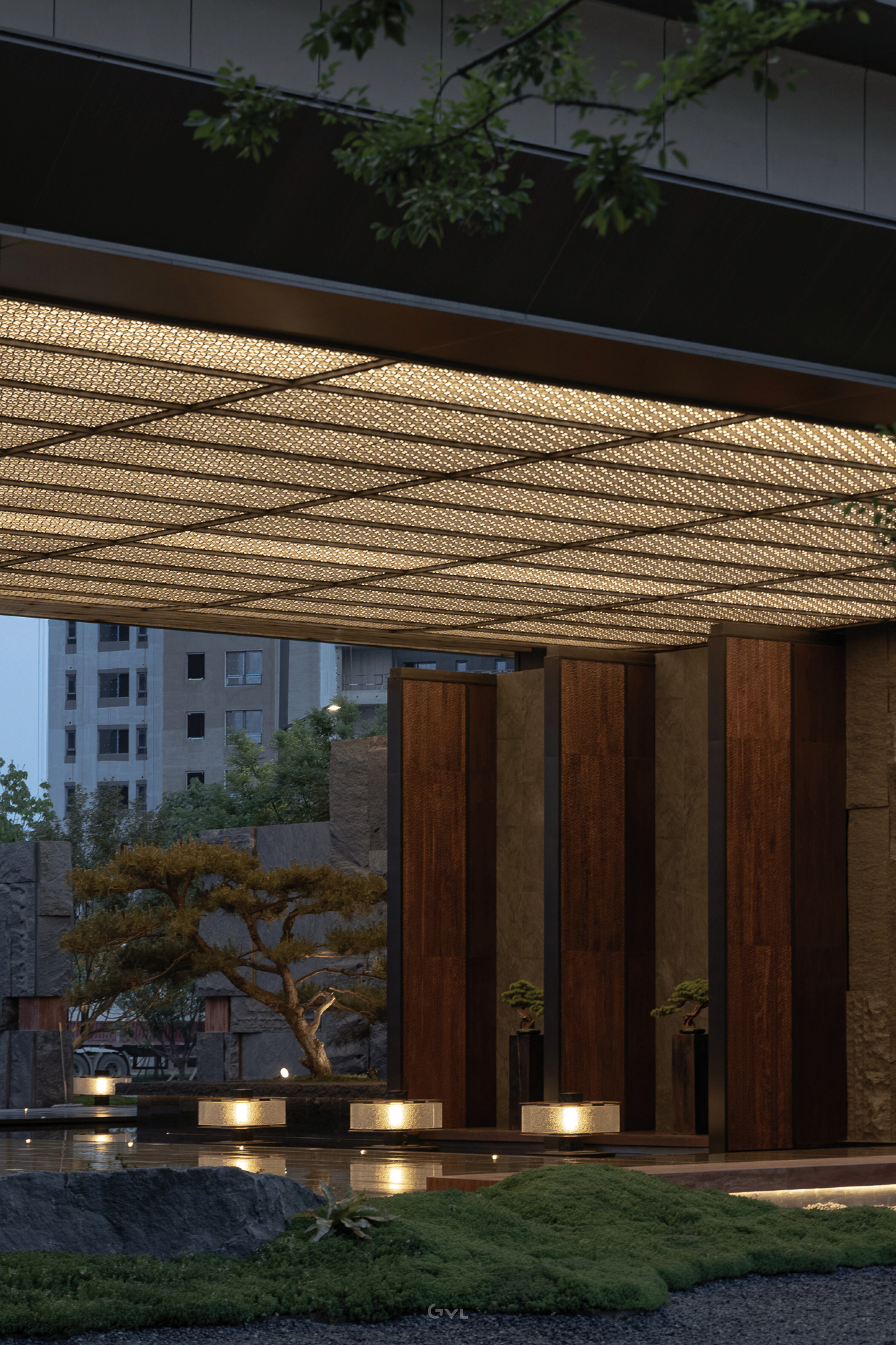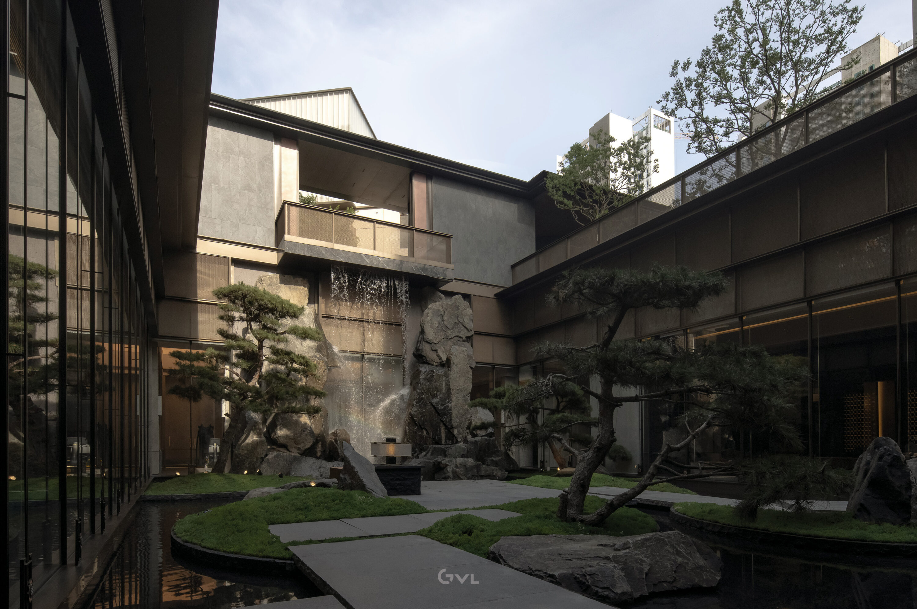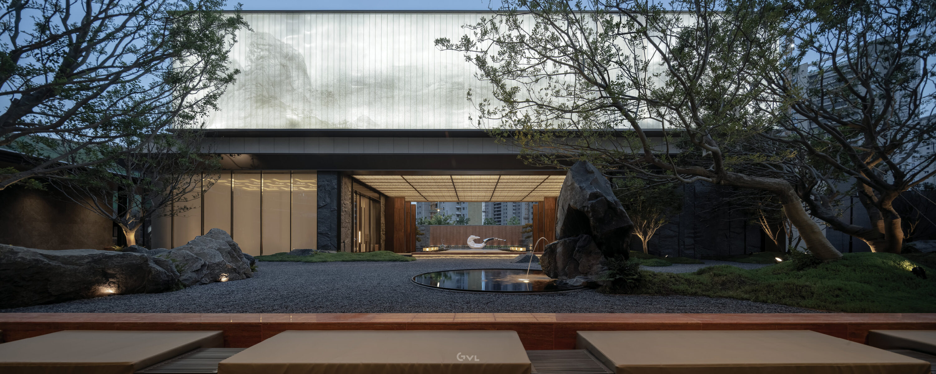 项目位于西安市高新区,属中央创新区位置,展示区景观设计面积4400㎡,整体设计风格为安缦式拙朴隐奢风,设计理念缘起安缦,通过解读安缦精神——空间与格局/文化与艺术/自然与重生,融合自然与隐逸,传达质朴隐奢之美。 整个展示区分为三大空间: ①【云河玉宴】院落式隐奢门庭礼序—隐市庭院; ②【石泉叶台】自修而隐秘—大师庭院; ③【琉璃水院】悬瀑之下—下沉松石庭院。