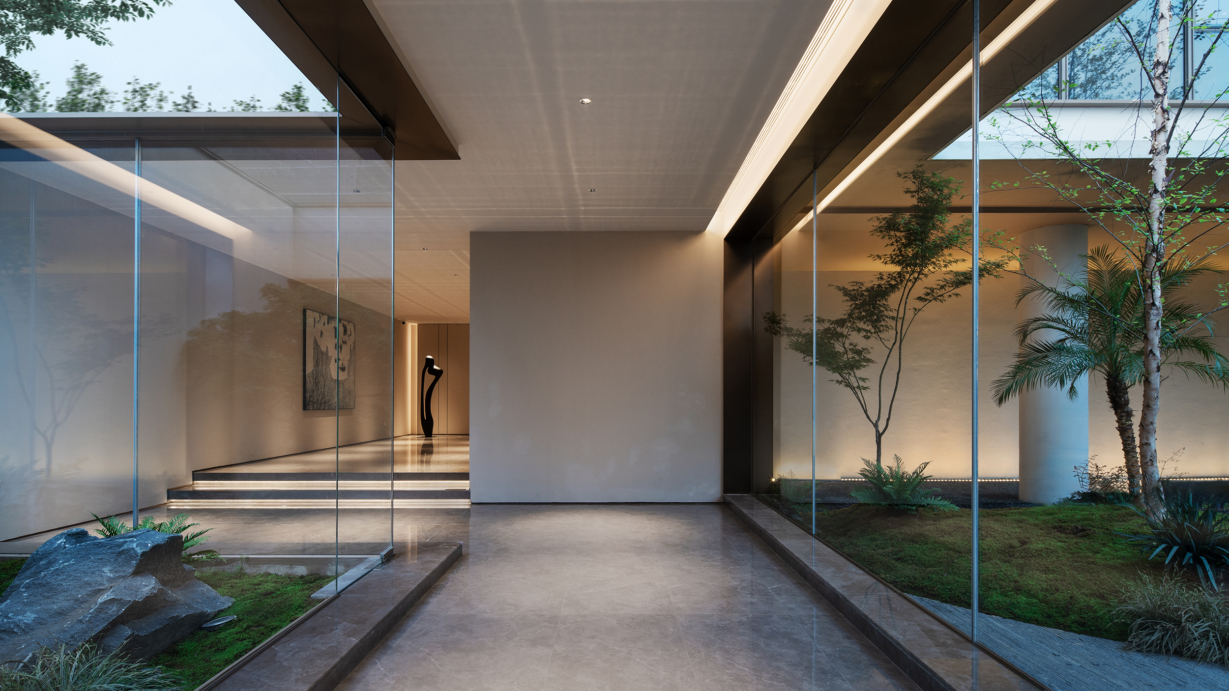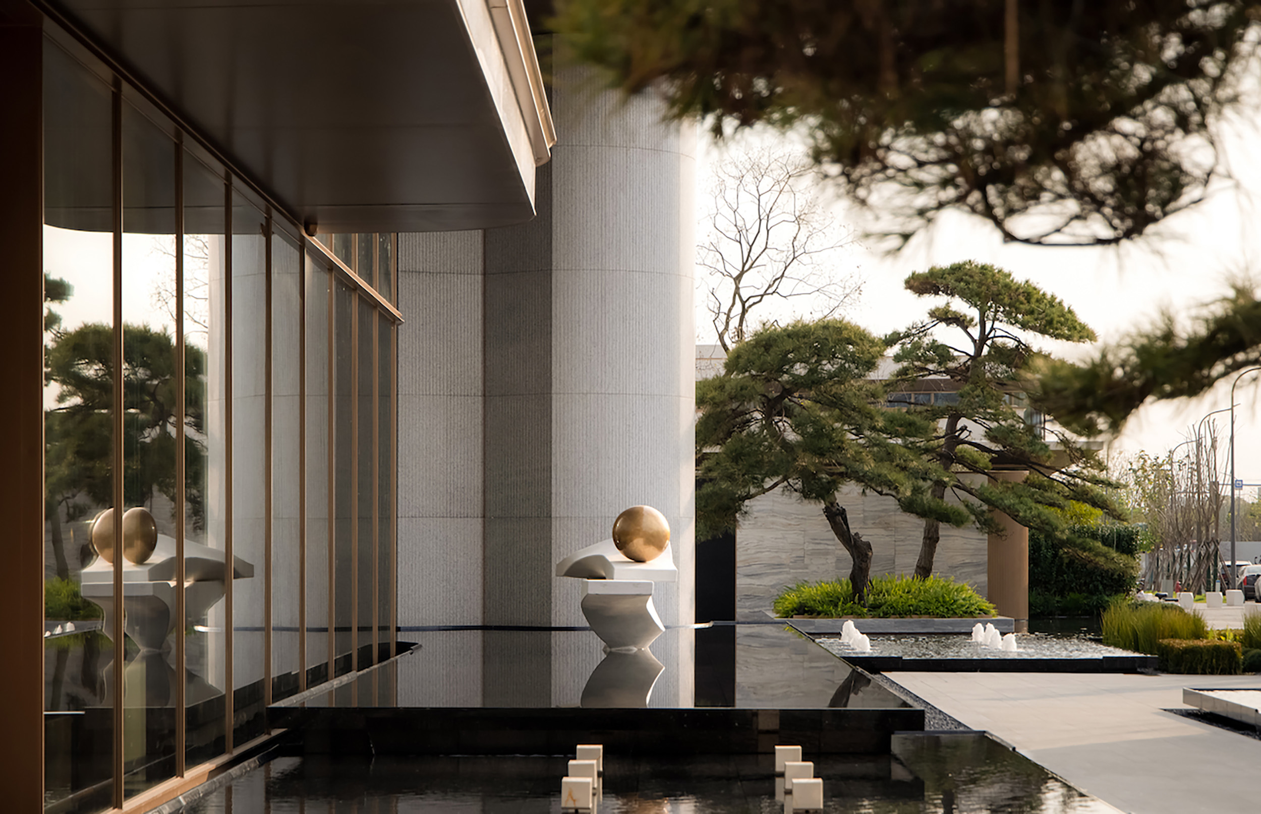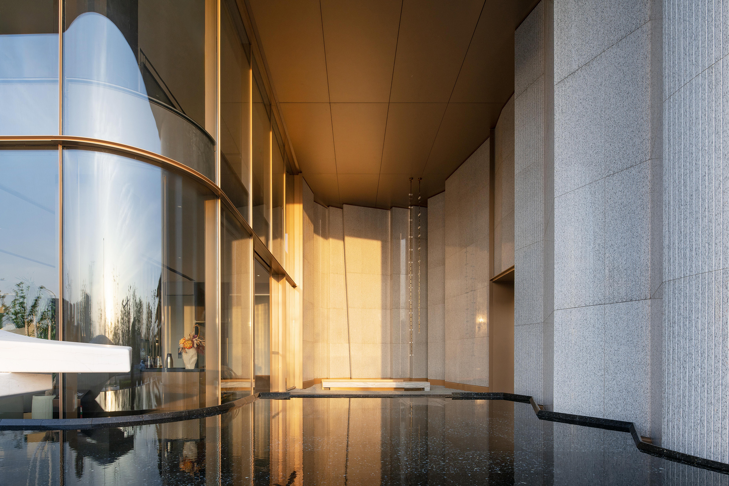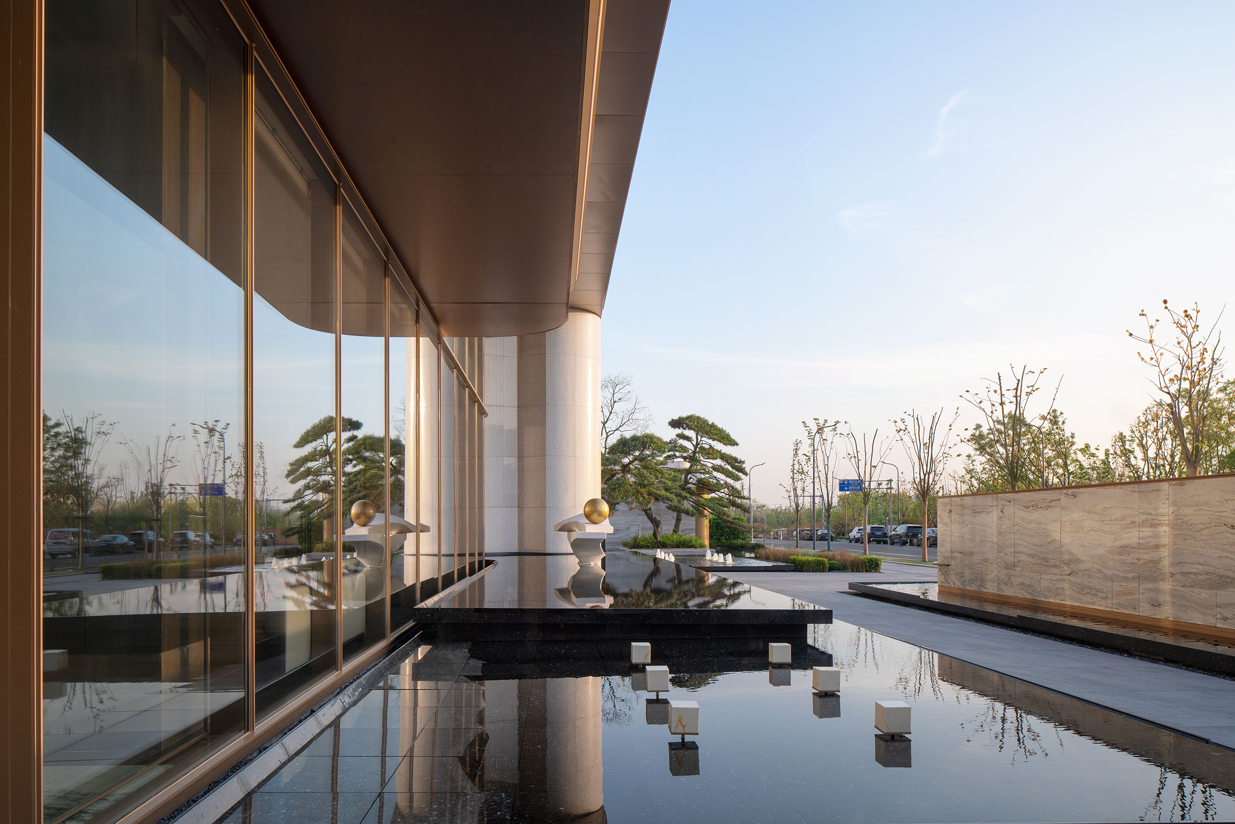 项目位于宁波明湖之畔,坐拥一线湖景,与明湖公园水系景观共同勾勒出一线湖景大宅。 弧形转角造型,温和建筑体量,呈现温润典雅的建筑气质。 大面积落地玻璃,270°环幕曲面屏,打造无界宽幕立面,极致视野。 机翼式弧形外挑铝板,轻盈建筑体量,同时起到遮阳功能,降低能耗。 取中国古典金镶玉的韵味,融于建筑白+金的组合之中,精致搭配,延续经典。