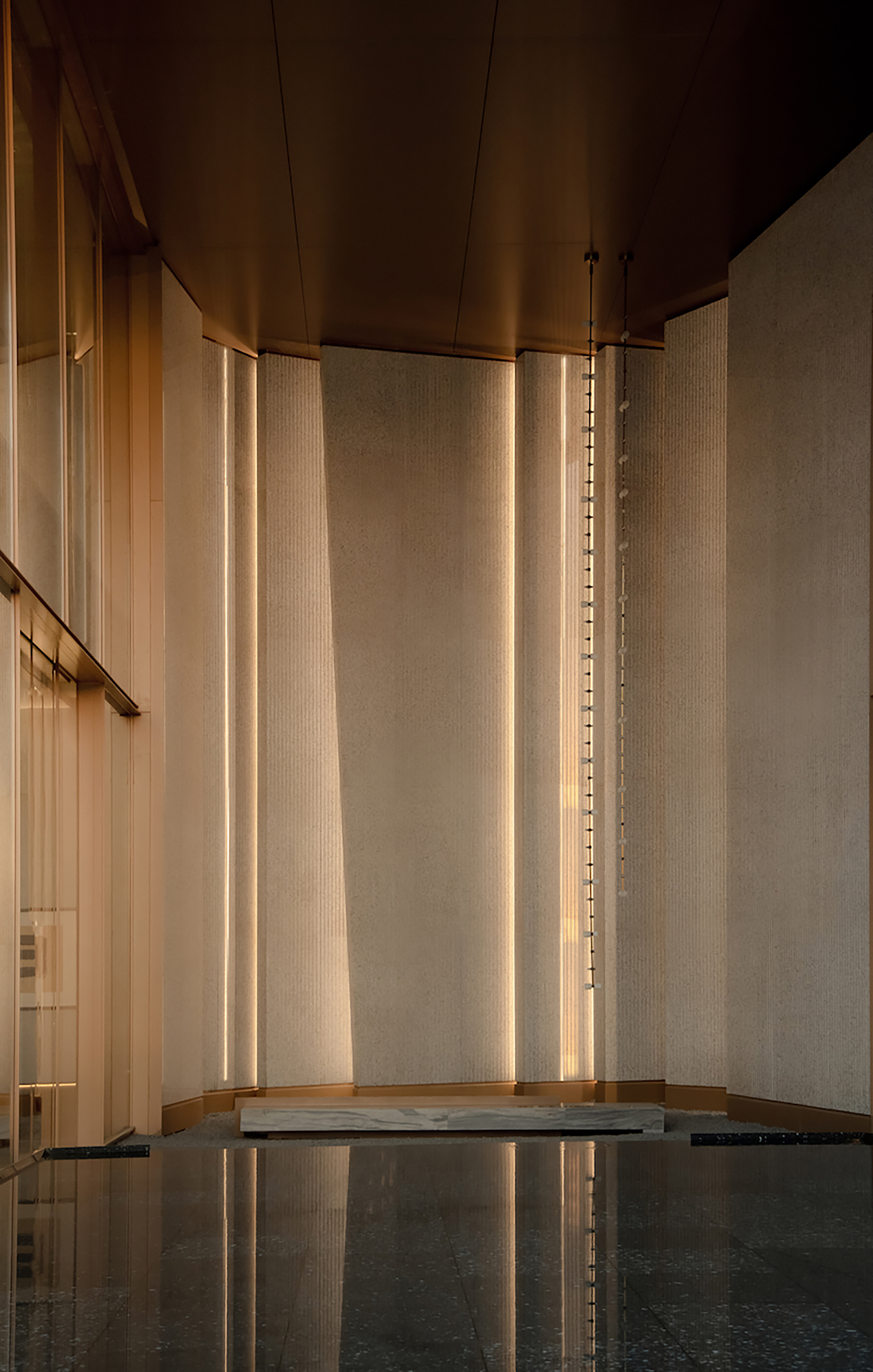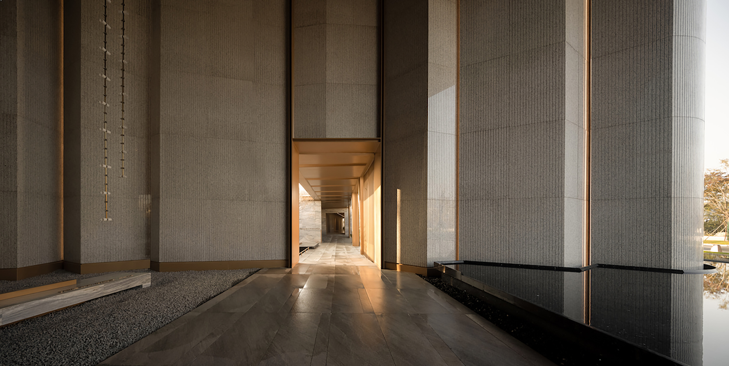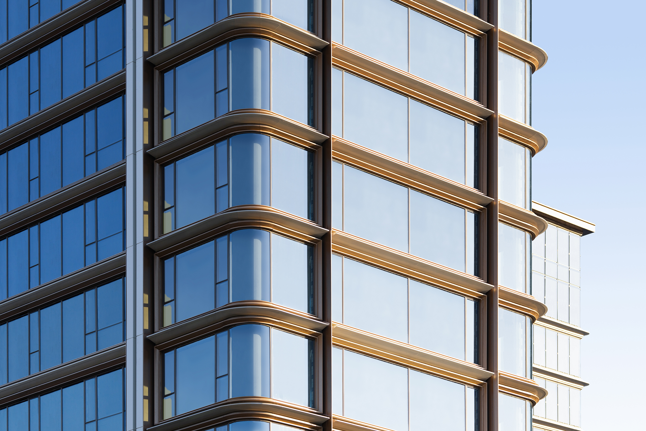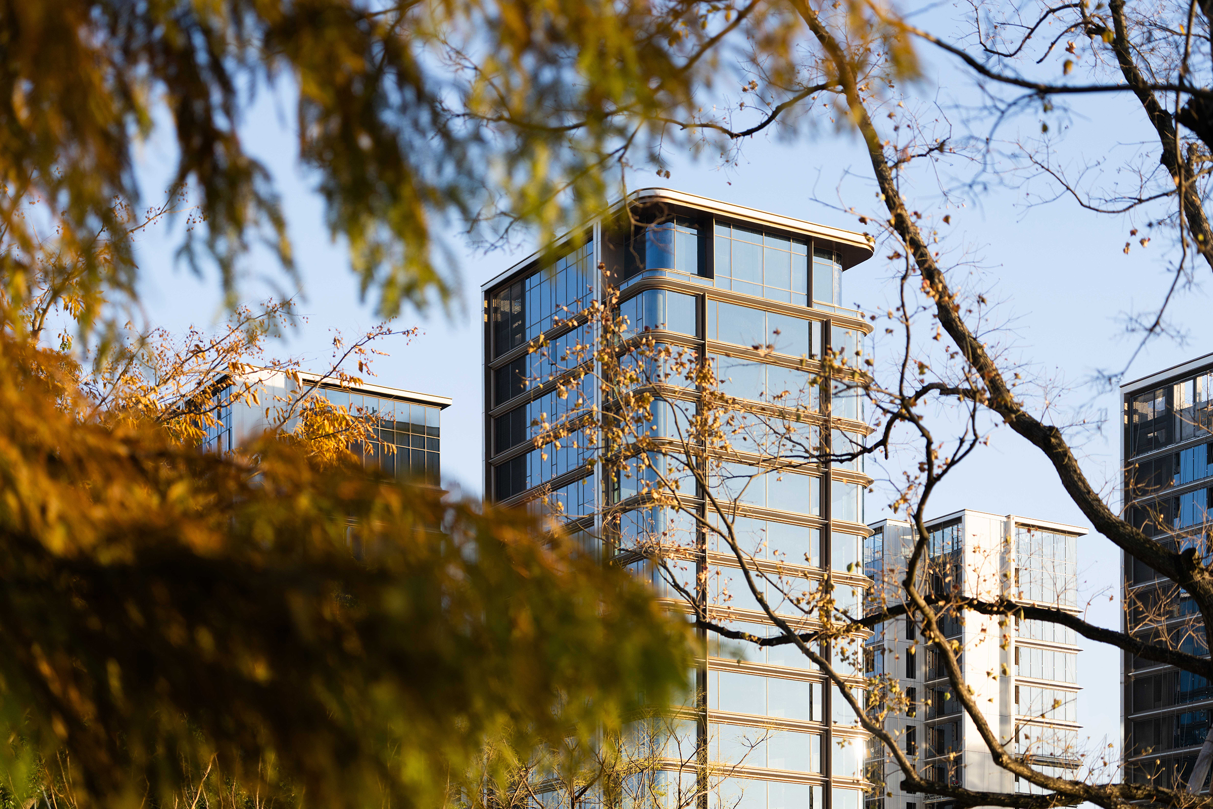 项目位于宁波明湖之畔,坐拥一线湖景,与明湖公园水系景观共同勾勒出一线湖景大宅。 弧形转角造型,温和建筑体量,呈现温润典雅的建筑气质。 大面积落地玻璃,270°环幕曲面屏,打造无界宽幕立面,极致视野。 机翼式弧形外挑铝板,轻盈建筑体量,同时起到遮阳功能,降低能耗。 取中国古典金镶玉的韵味,融于建筑白+金的组合之中,精致搭配,延续经典。