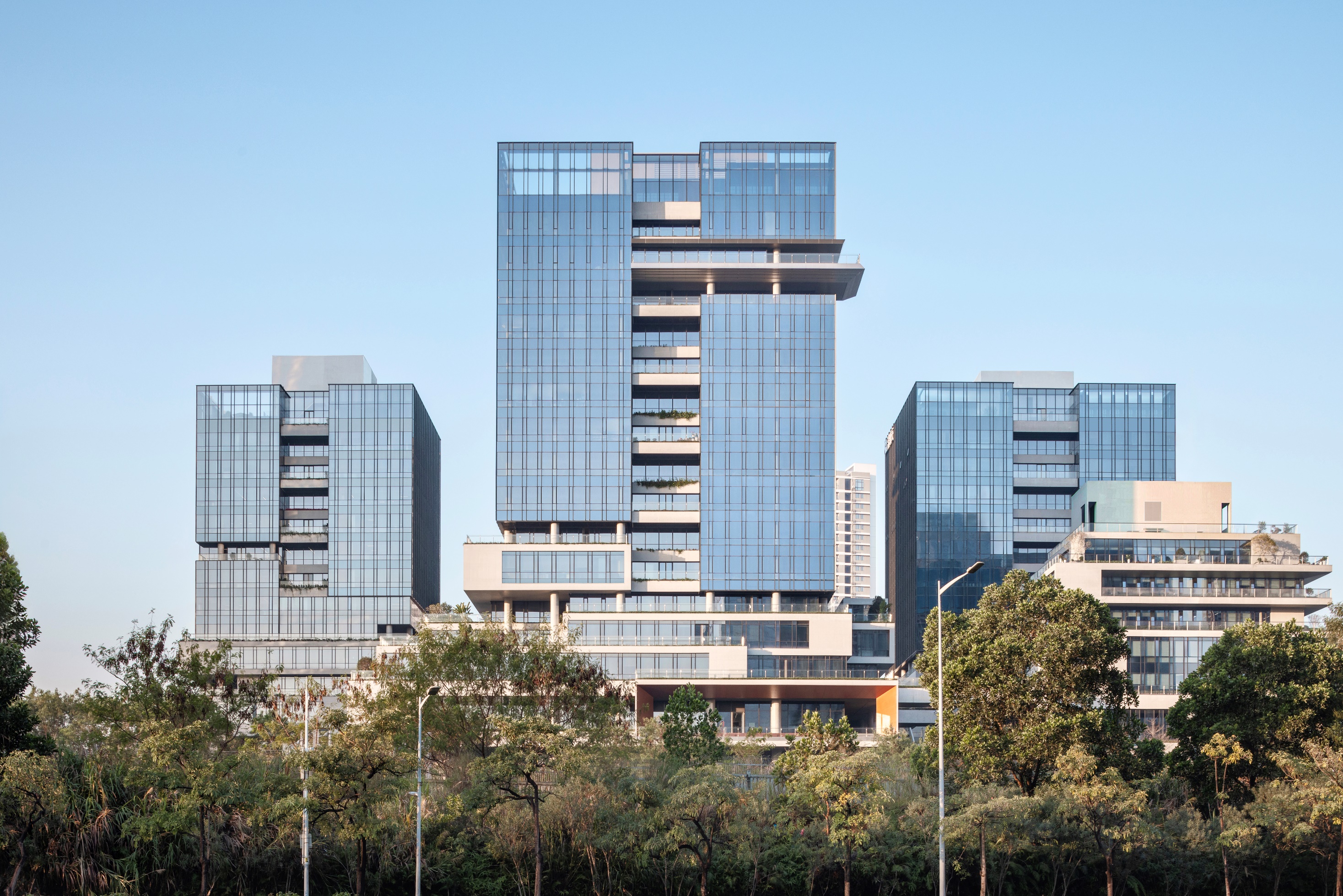 基于深圳高温、高湿、高层、高密的地域特色,以及项目“东城西山”的独特地理环境,项目以开放的设计理念,提出“火烈鸟”模式建筑构想,积极回应岭南建筑的创新实践:提供舒适便捷的建筑环境,创造绿色共享的城市公园,并使城市与山林自然融合共生。
