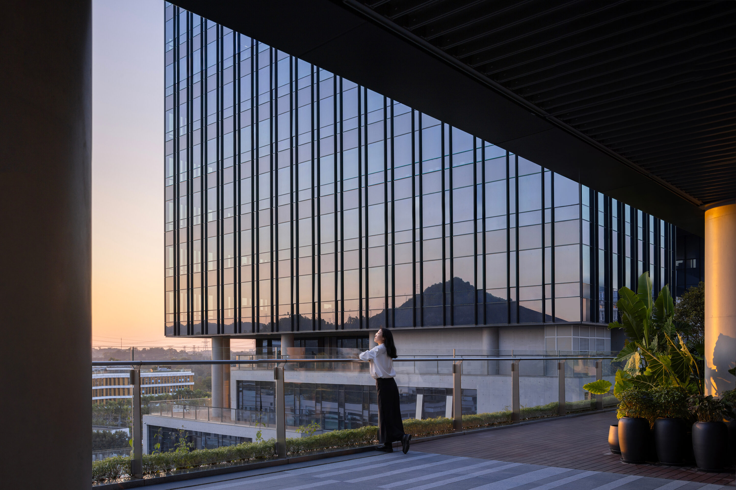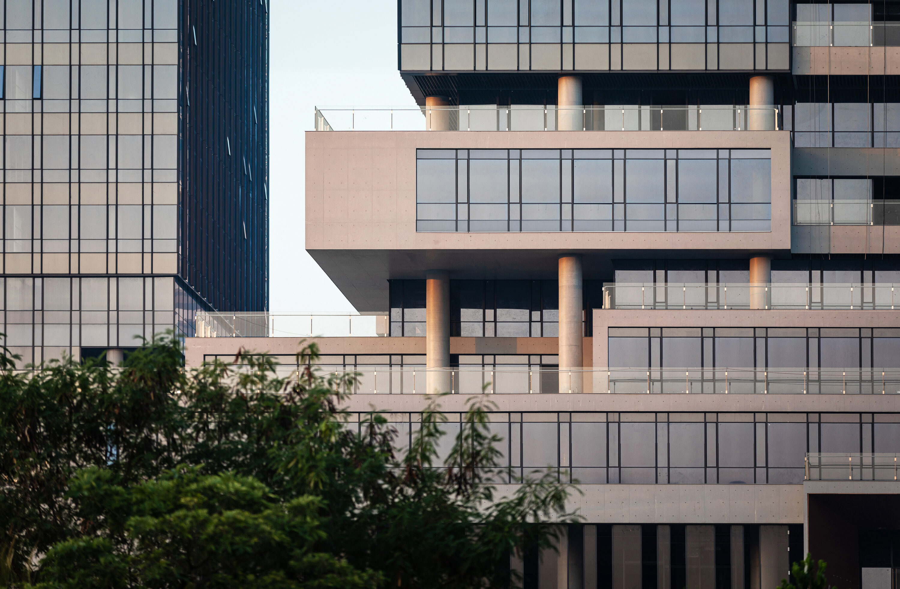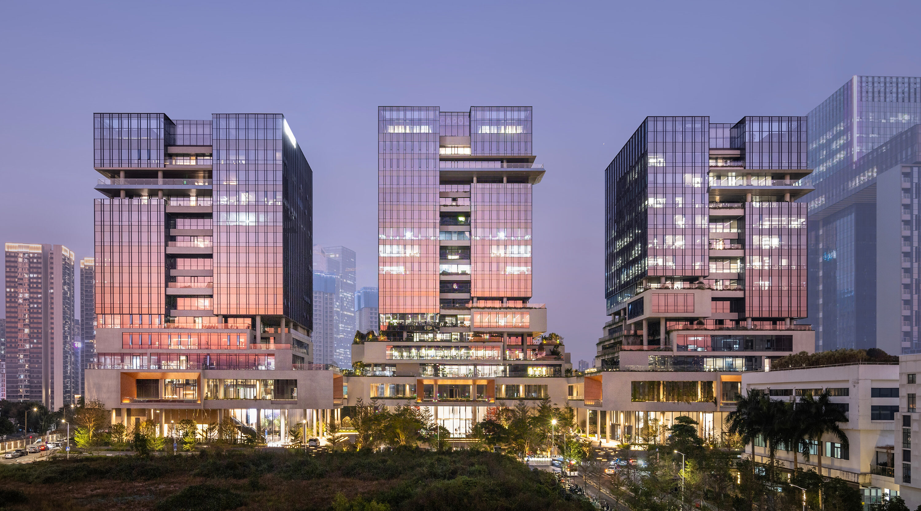基于深圳高温、高湿、高层、高密的地域特色,以及项目“东城西山”的独特地理环境,项目以开放的设计理念,提出“火烈鸟”模式建筑构想,积极回应岭南建筑的创新实践:提供舒适便捷的建筑环境,创造绿色共享的城市公园,并使城市与山林自然融合共生。