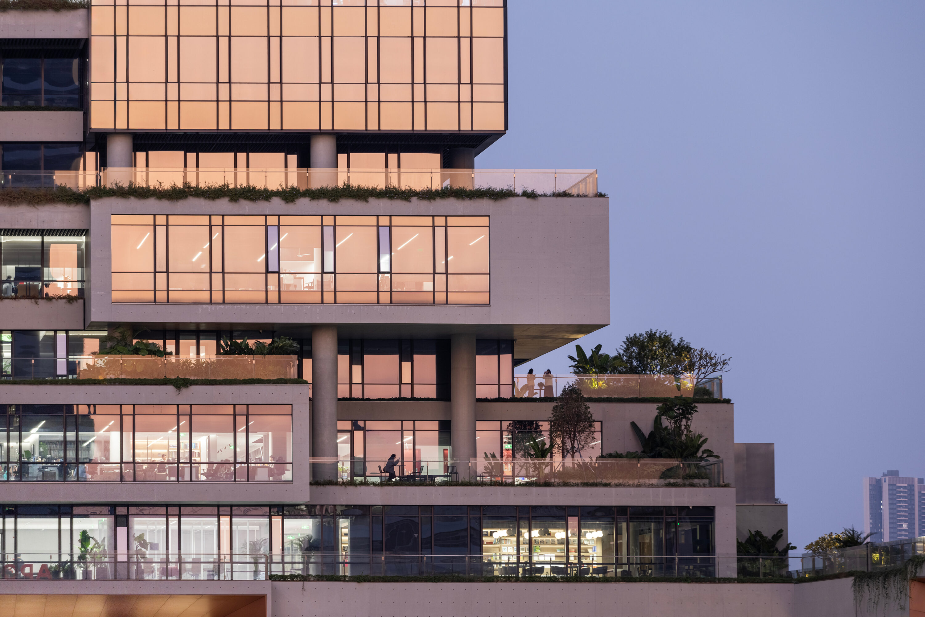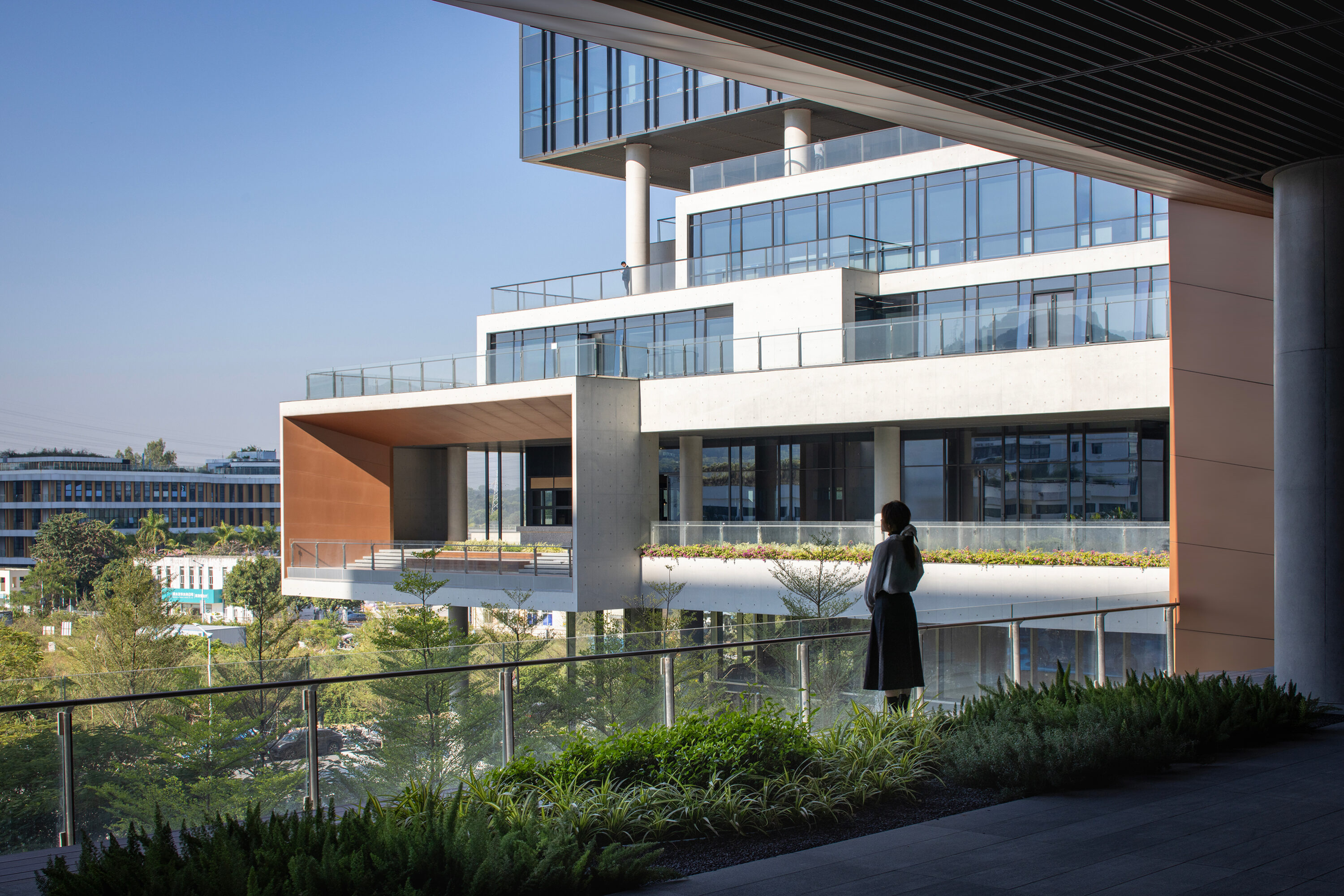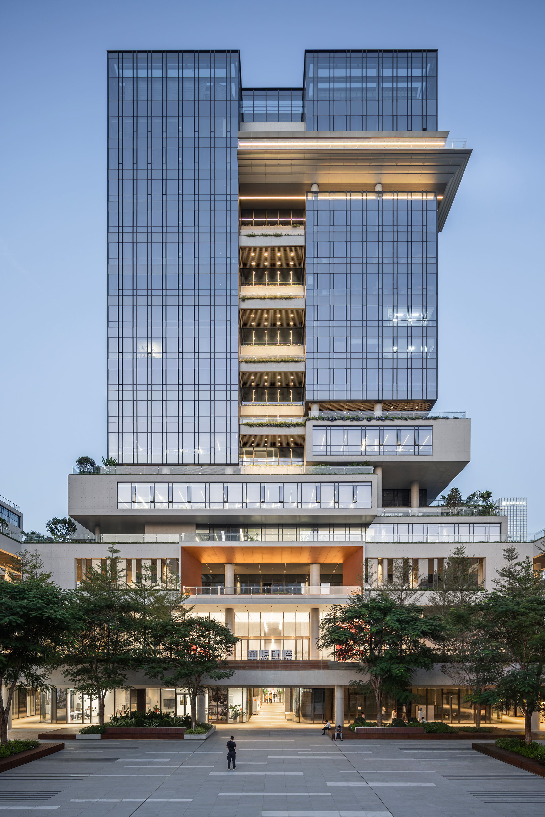 基于深圳高温、高湿、高层、高密的地域特色,以及项目“东城西山”的独特地理环境,项目以开放的设计理念,提出“火烈鸟”模式建筑构想,积极回应岭南建筑的创新实践:提供舒适便捷的建筑环境,创造绿色共享的城市公园,并使城市与山林自然融合共生。