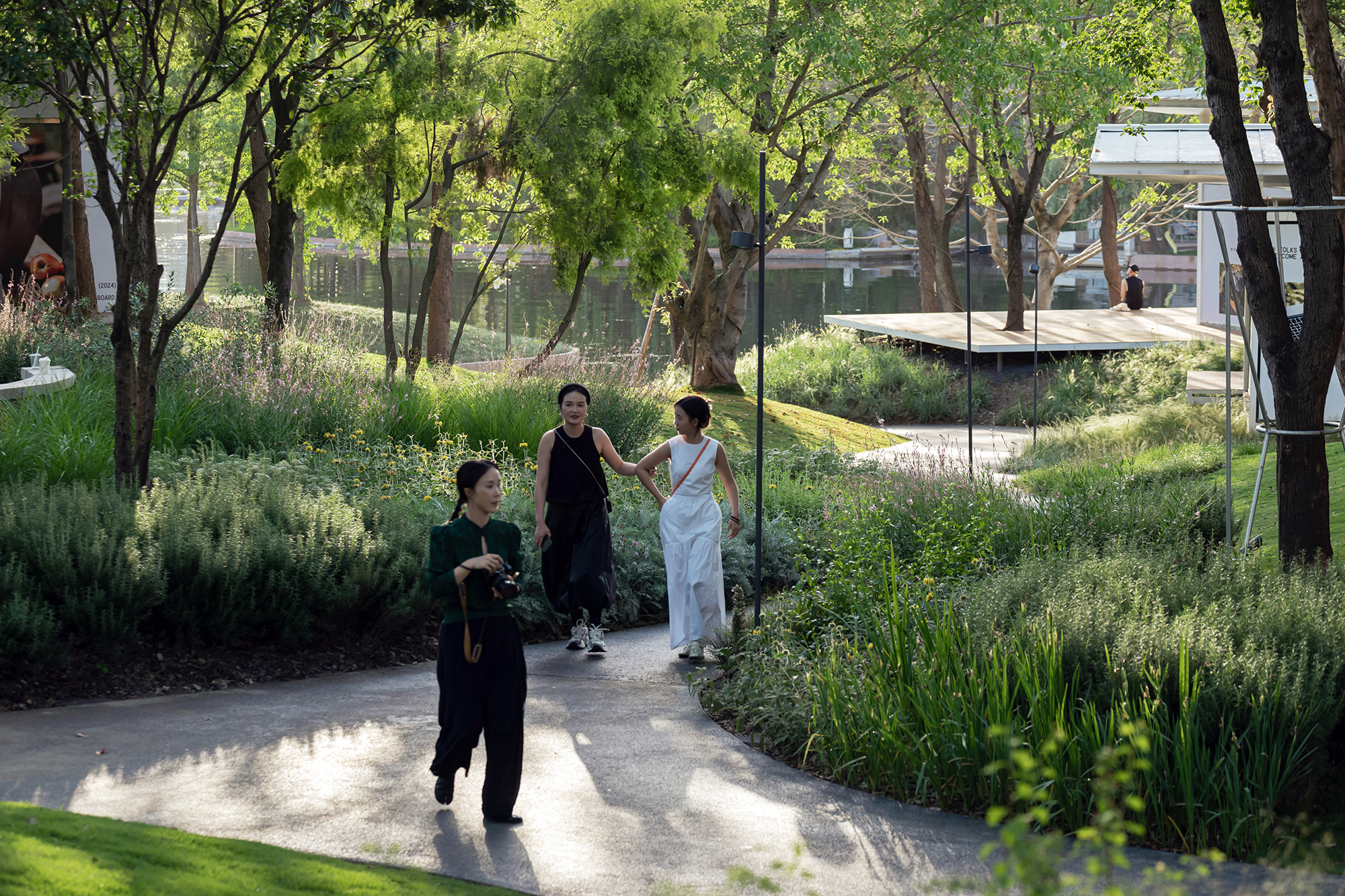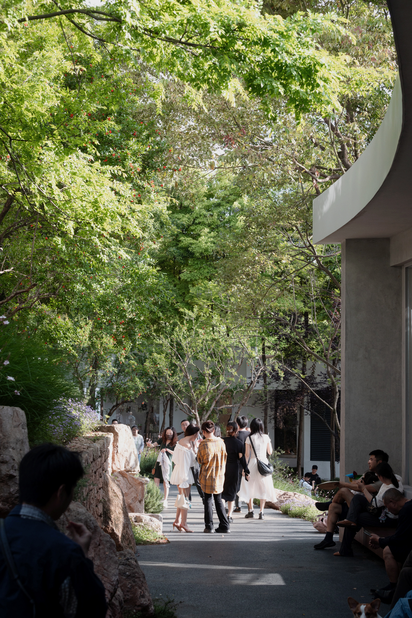 CPI是成都万华在麓湖的一处新零售业态的目的地。通过因地制宜的设计原则,对原有场地的改造更新,将”去设计化”概念贯穿始终,使其更适应新的场所使命。利用现状植物群落、错落的建筑布置、场地的丰富地形,穿插布置各种游逛通道,拓展商业品牌景观面、经营外拓空间等,打造出移步易景、轻松丰富的环境空间,使场地环境对商业支撑得到最大程度体现。