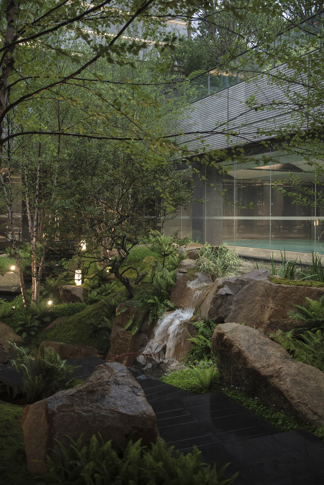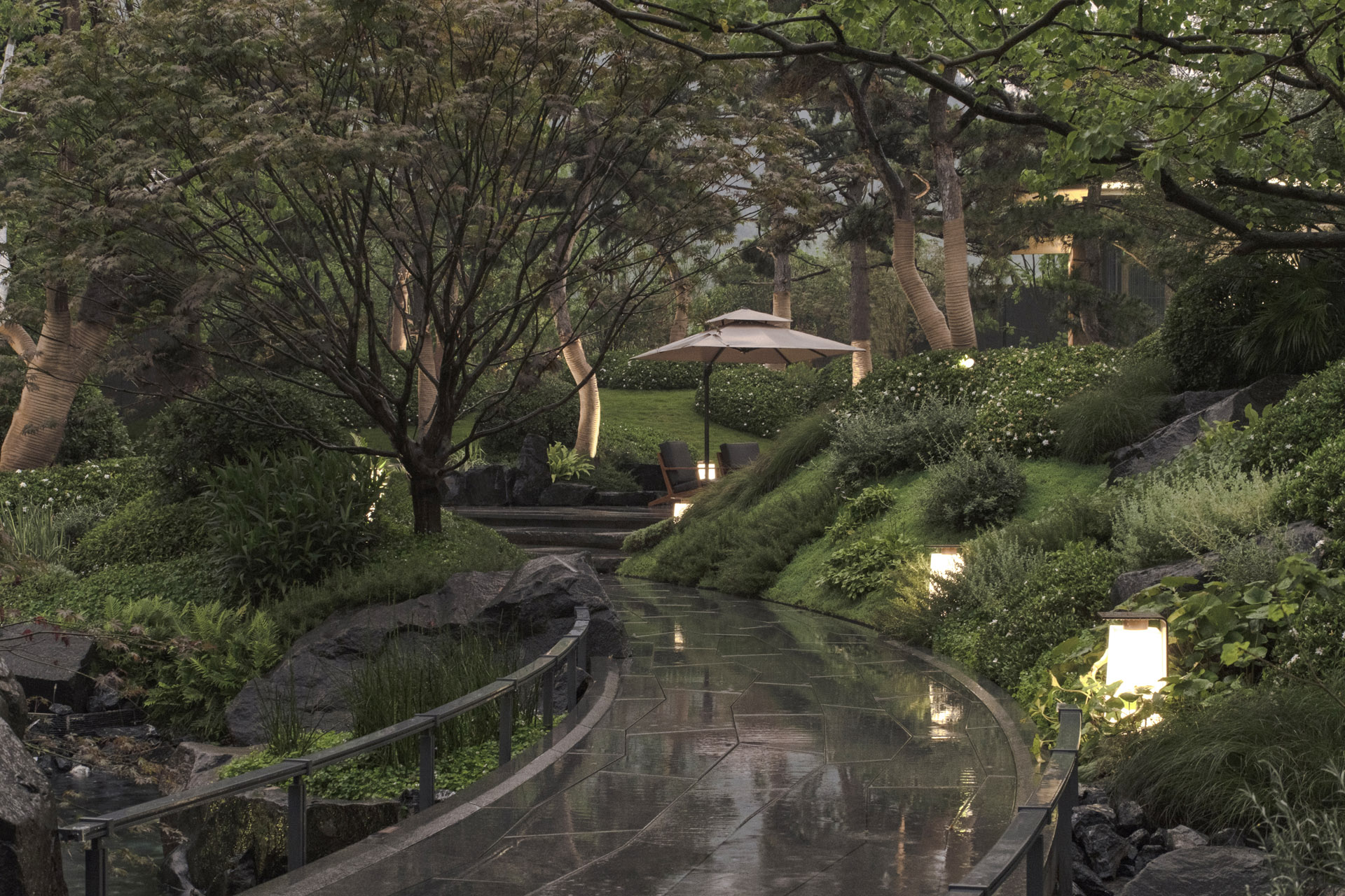 坐落于梅溪湖板块的长沙天青府,犹如城市臻稀山麓里生长出来的精神庇护所,隐入象鼻山,与梅溪湖相伴,在自然描绘的画卷中,我们秉承山水的风度,对外打造烟火气环绕的城芯繁华圈,对内则为遁入山水的自然东方园林。园内步移景异的游园体验结合“虽由人做宛自天开”的匠心雕琢,皆精细化演绎东方雅致生活场景,最终形成高端隐奢极具东方雅致的展示区,将一方诗意山水收藏于此,与山共生,与水共鸣,隐于苍翠,归于质朴。