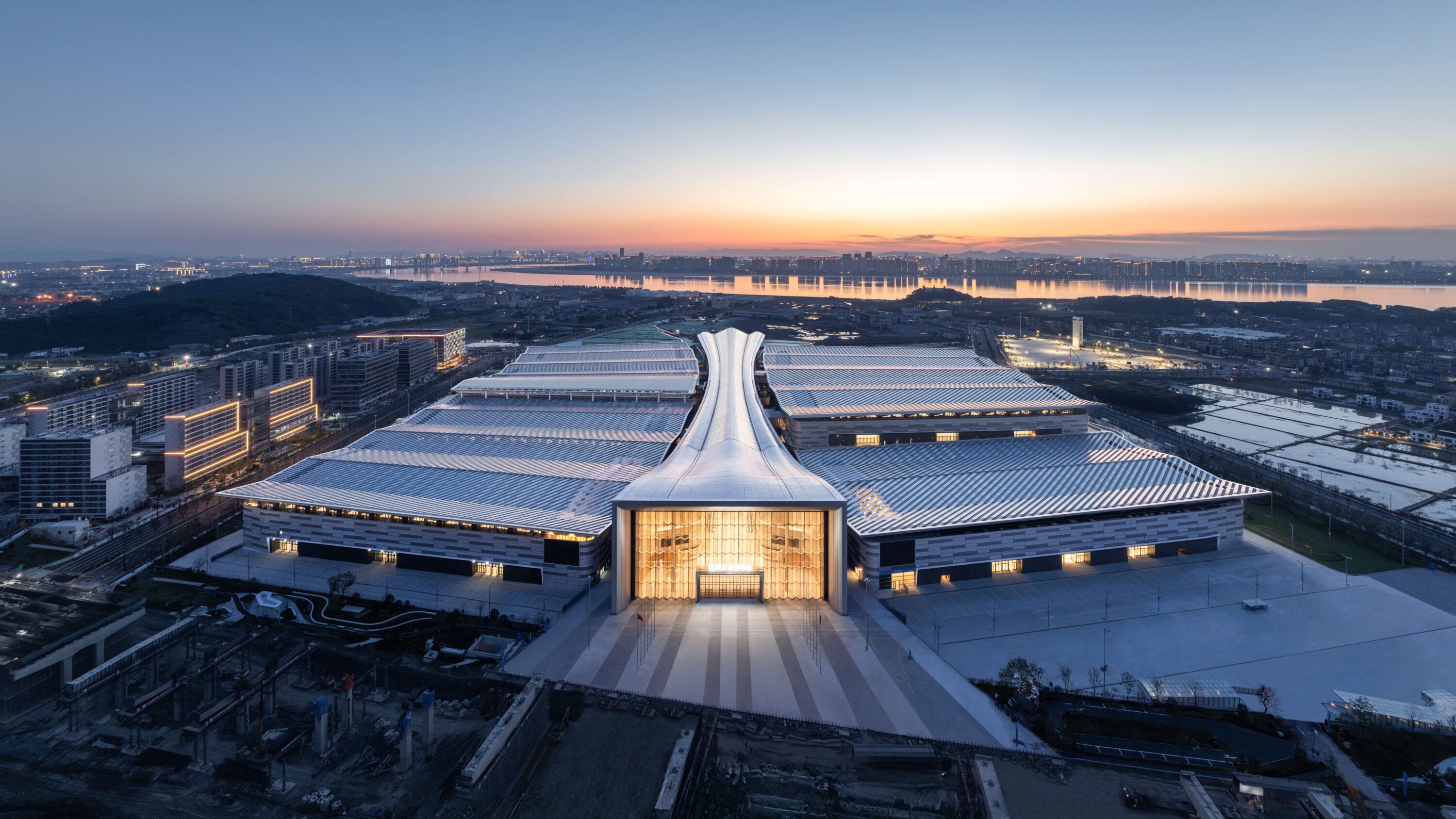 杭州大会展中心总建筑面积134万方、净展面积30万方,已投用的一期项目建筑面积64万方、净展面积15.5万方。作为国内领先的一流复合型会展场馆,场馆采用“杭扇、丝绸”传统文化元素,以钱塘江畔“风帆”造型为整体设计,巧妙地将江南韵味与现代会展的需求相结合,是后亚运时期杭州打造国际“赛”“会”之城的新地标建筑。
